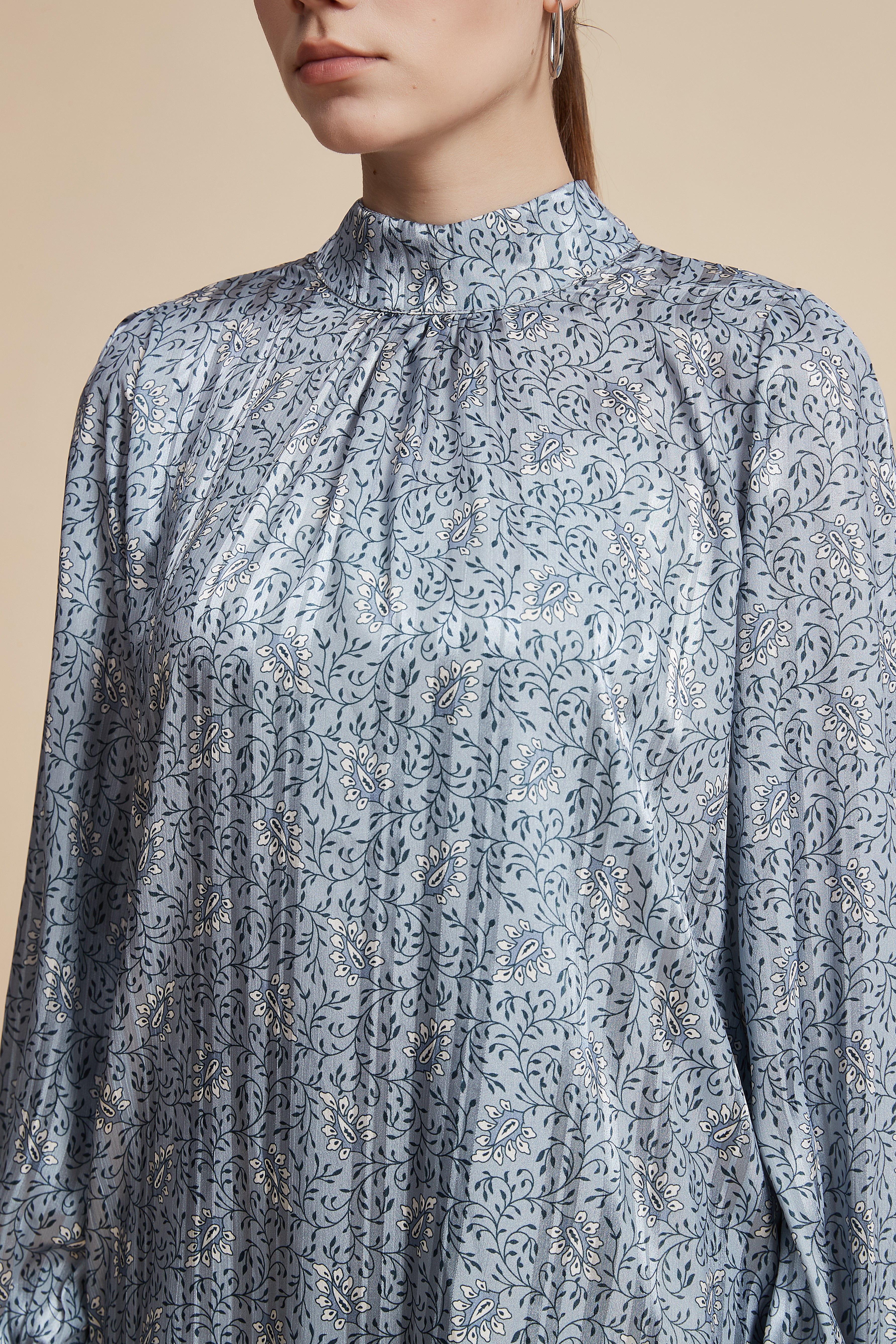 بلوزة مشجرة بكم طويل واسع