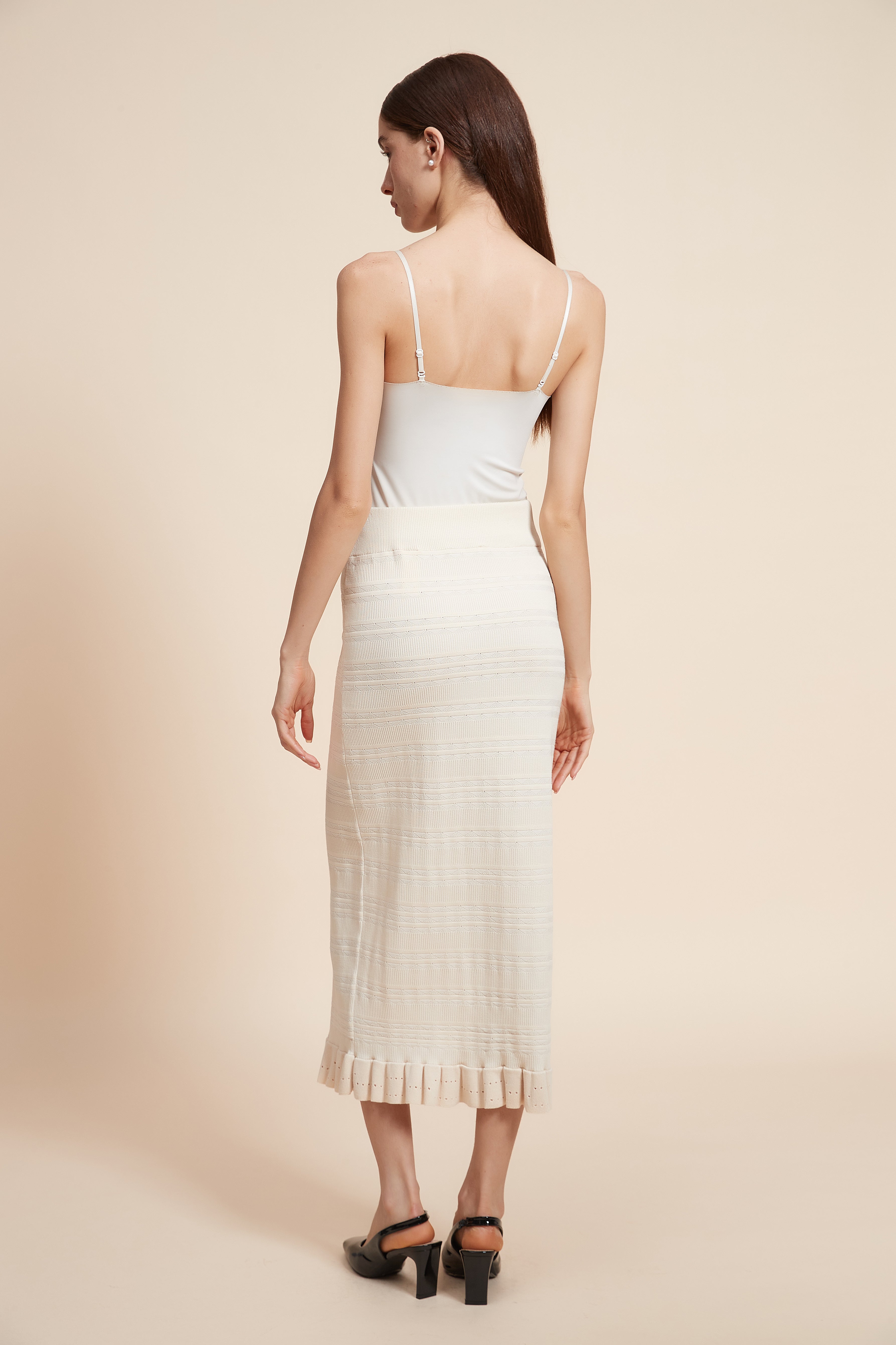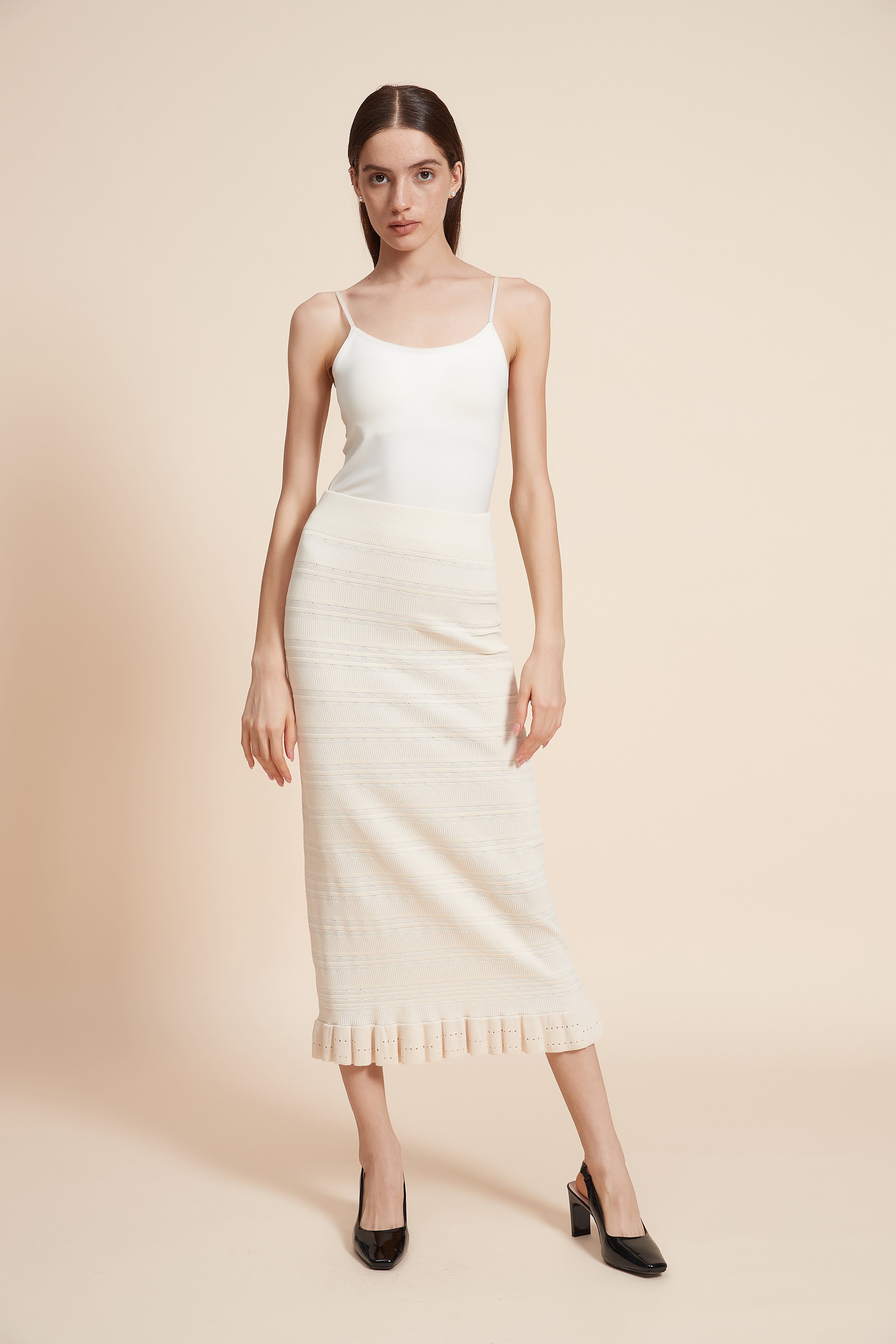 تنورة ميدي مخططة بالعرض مكشكشة من أسفل