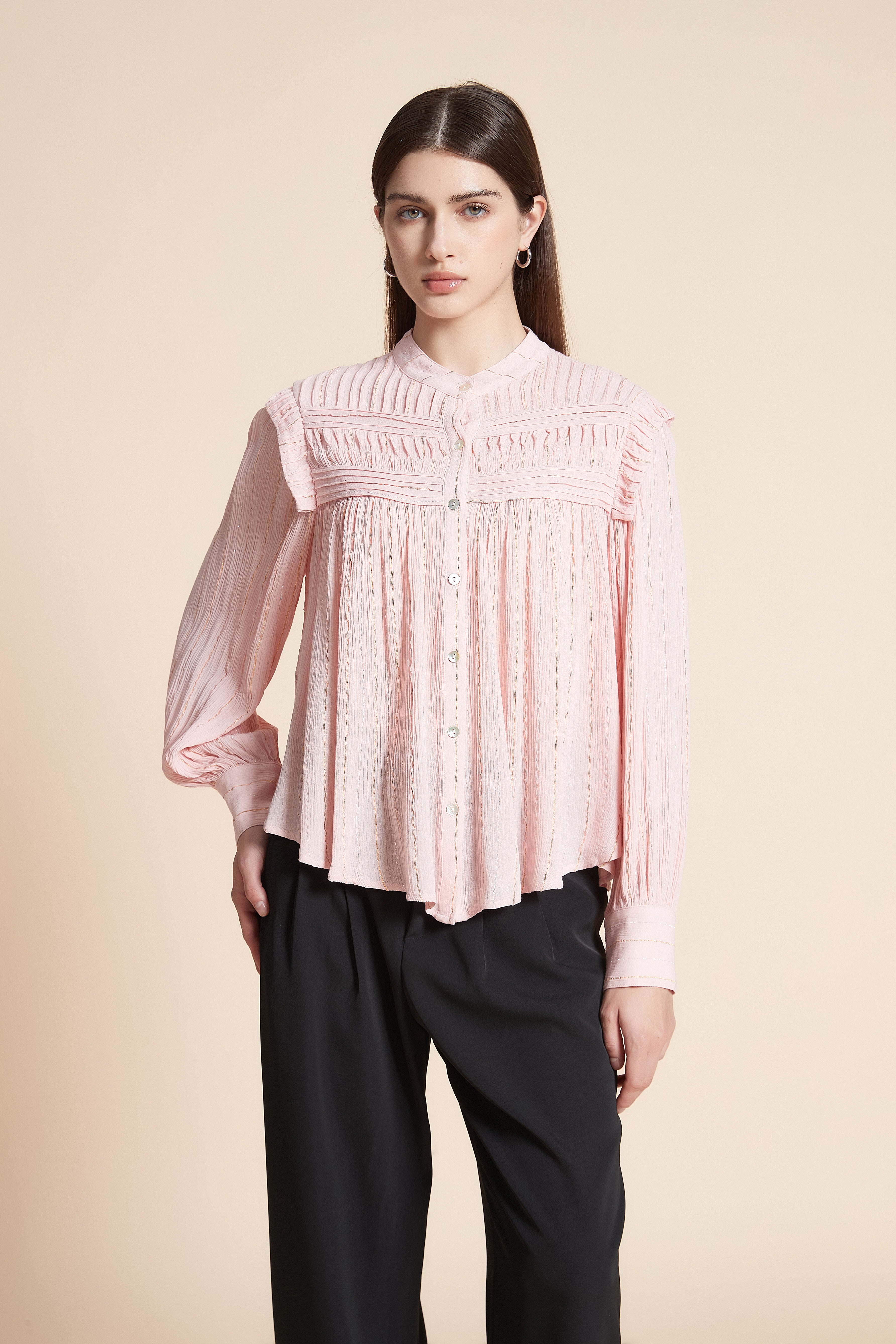 بلوزة متوسطة الطول سادة كم طويل