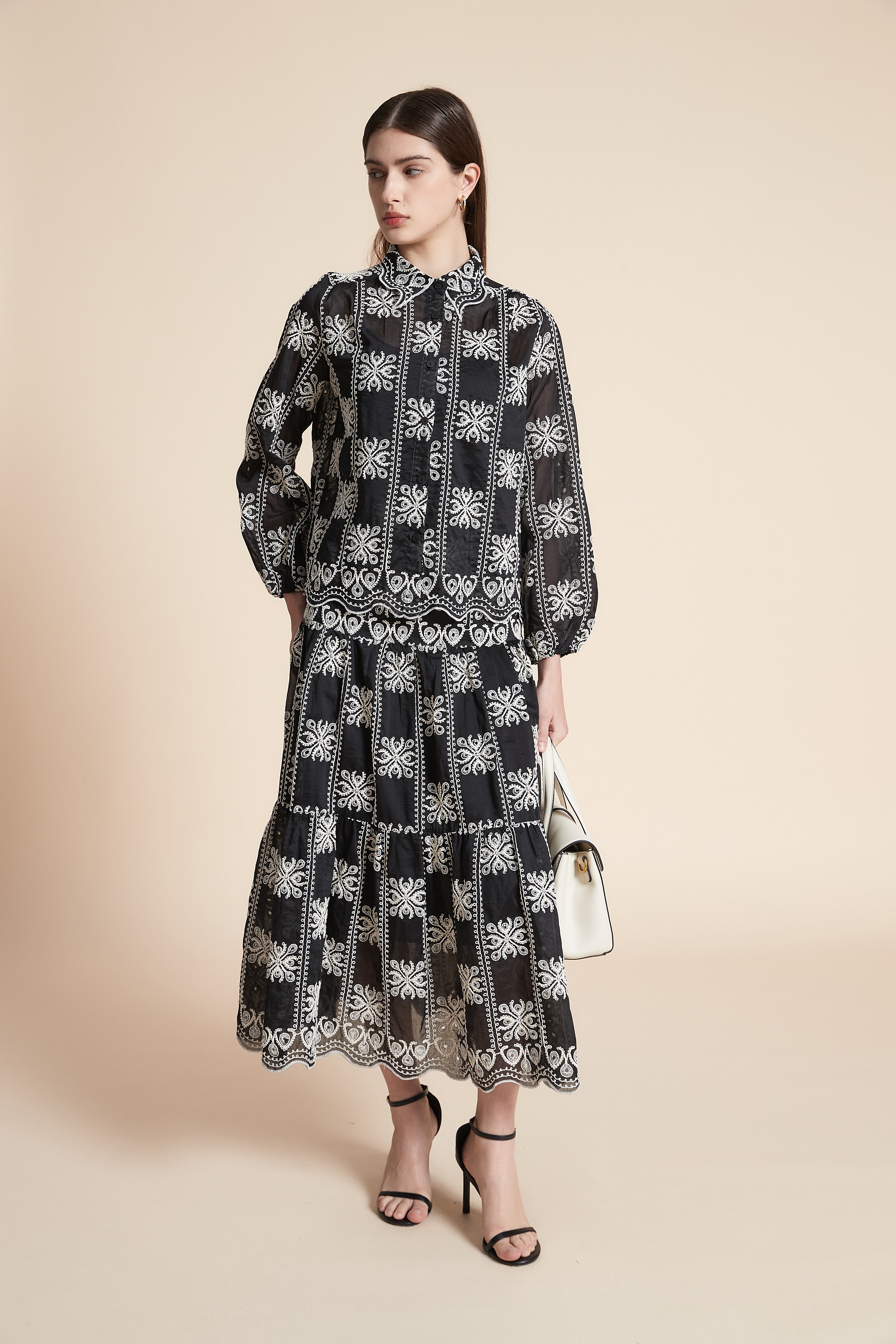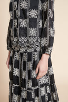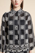 بلوزة متوسطة الطول منقوشة كم طويل