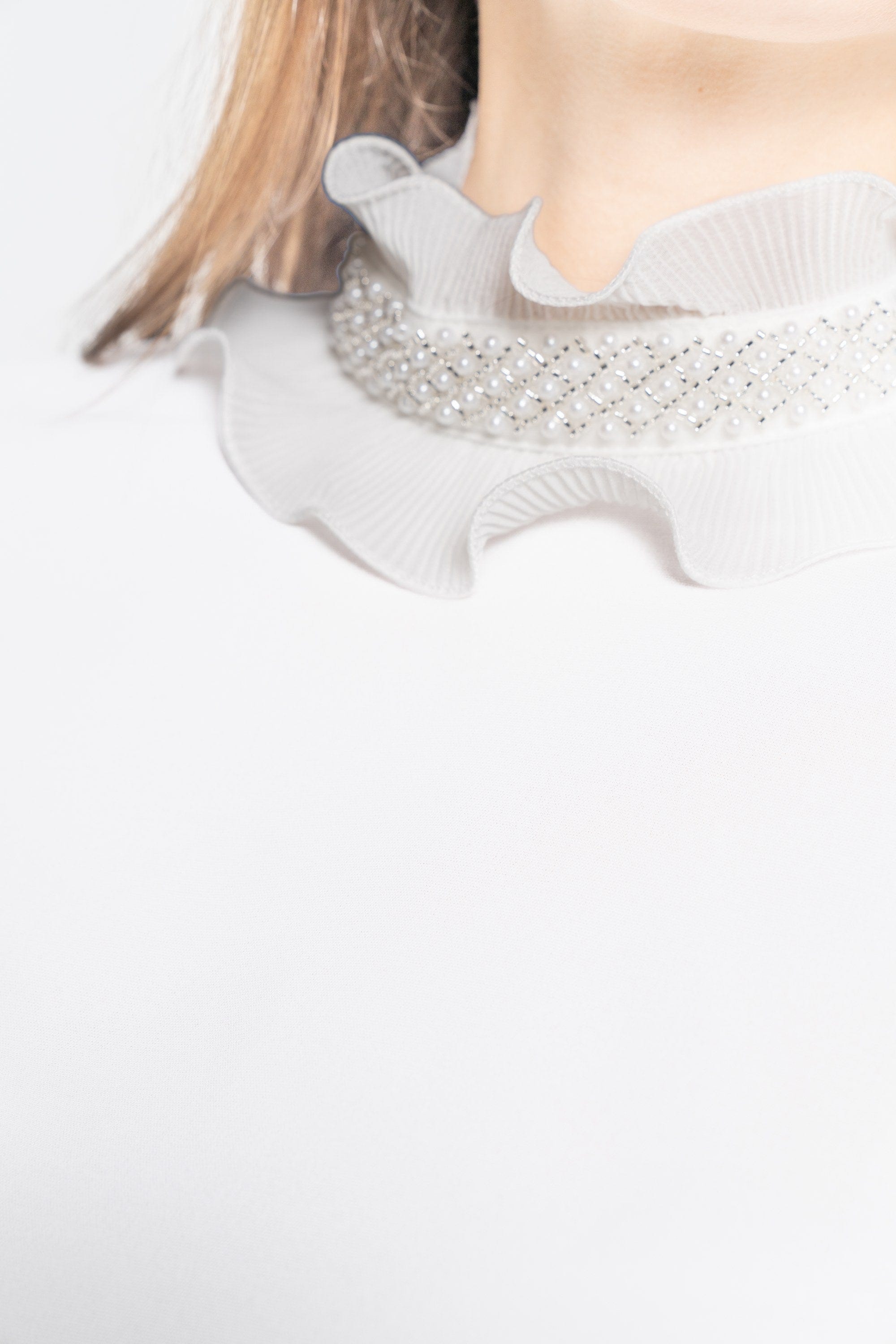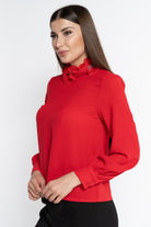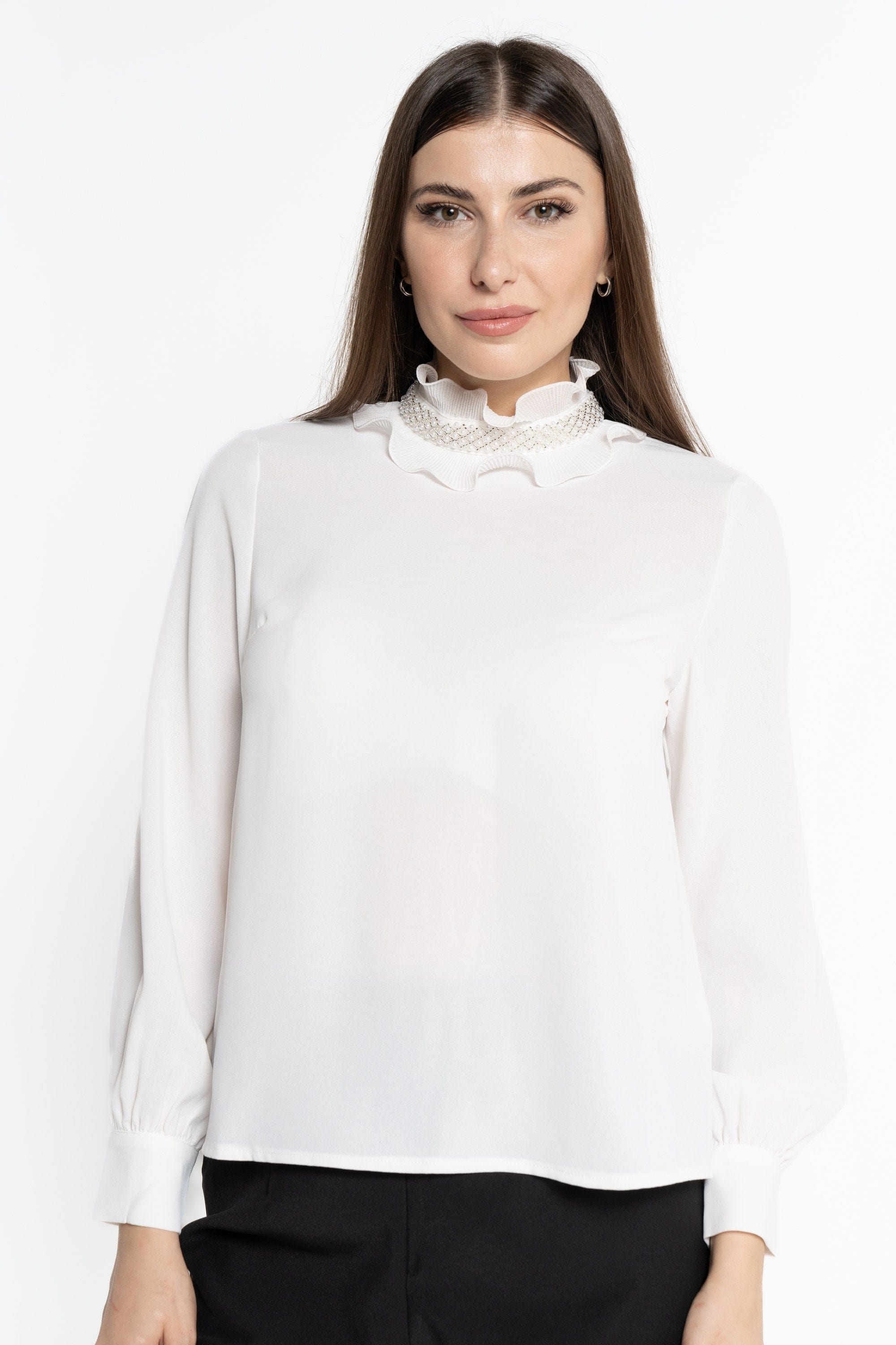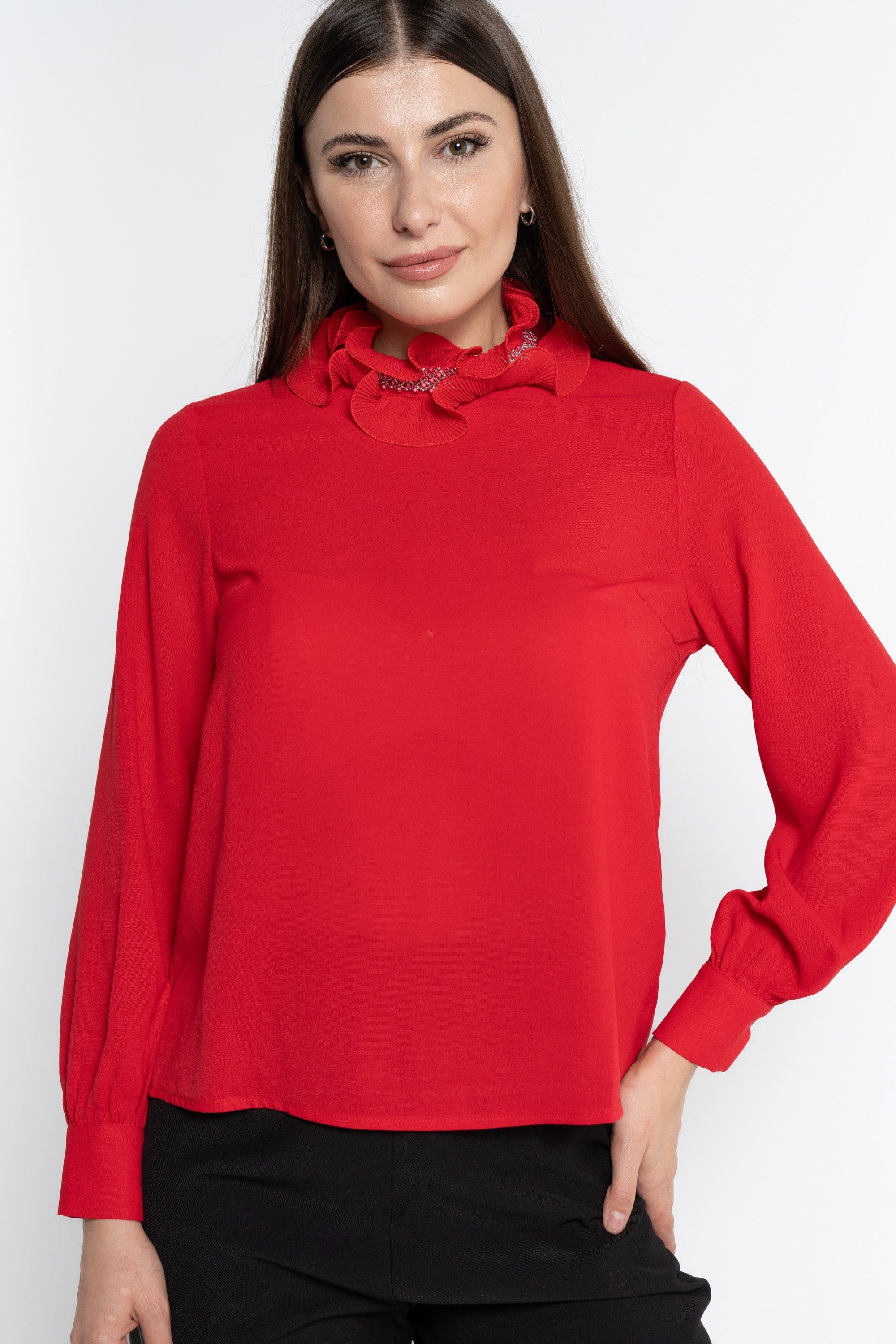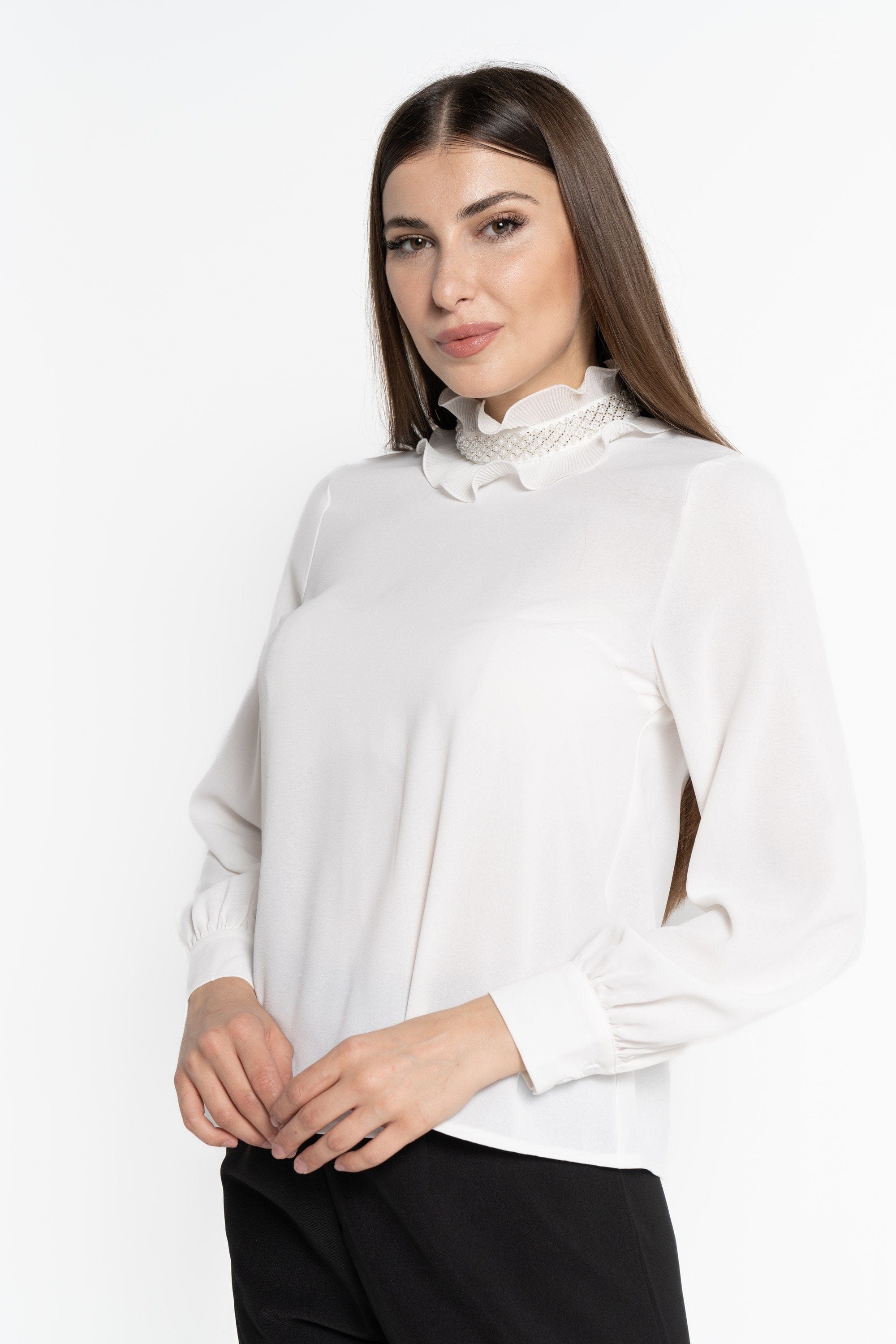 بلوزة بأكمام طويلة سادة بياقة مكشكشة مطرزة نسائي