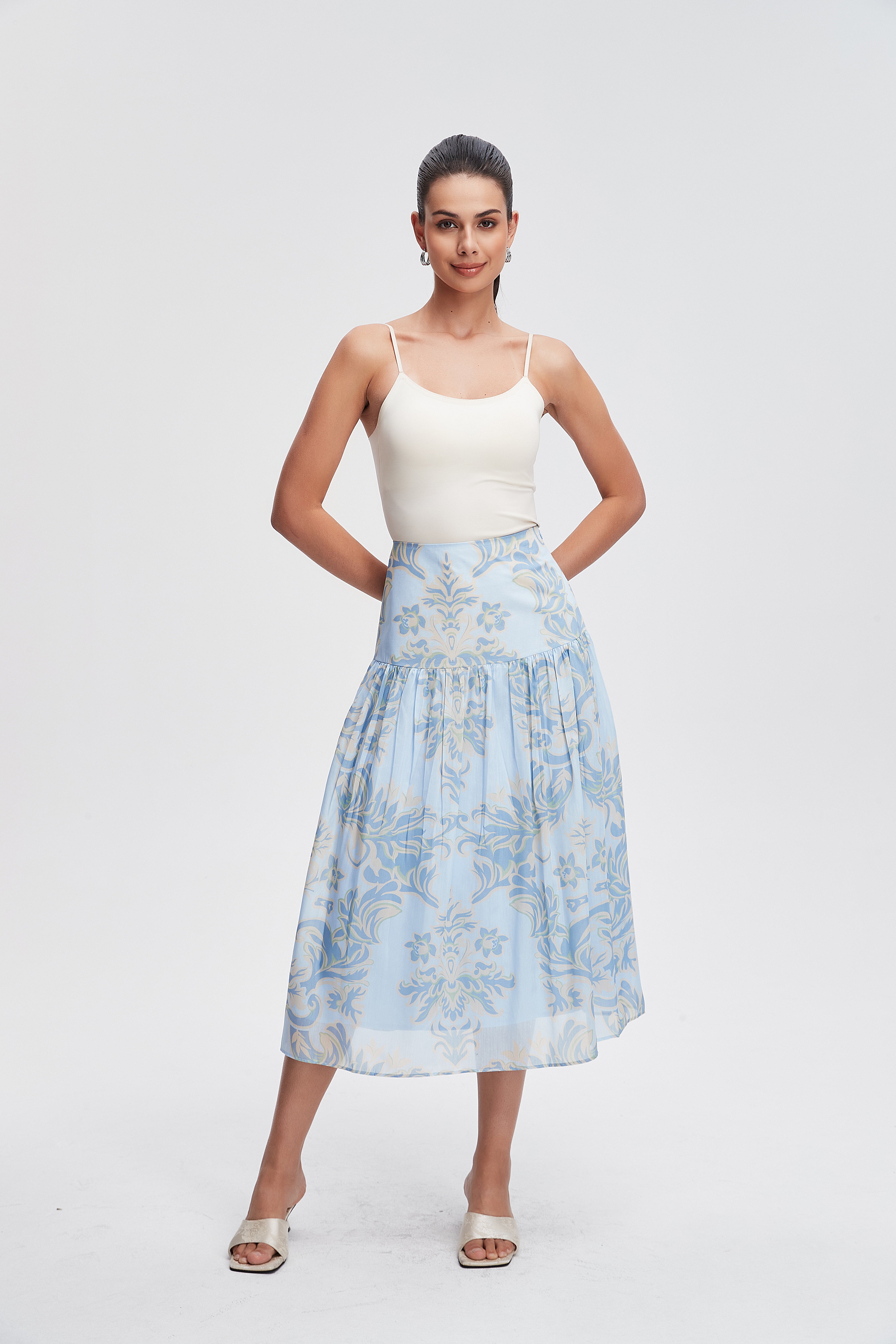 اجعلي إطلالتك تتألق بأناقة لا تضاهى مع تنورة ميدي منقوشة بقصة واسعة تجمع بين الأنوثة والطابع العصري في تصميم واحد. النقاط تضيف لمسة مرحة بينما قصة البليسيه تمنح حركة وانسيابية أنيقة. مناسبة للإطلالات اليومية أو المناسبات البسيطة وسهلة التنسيق. أطلبي الآن ولا تفوتي الفرصة