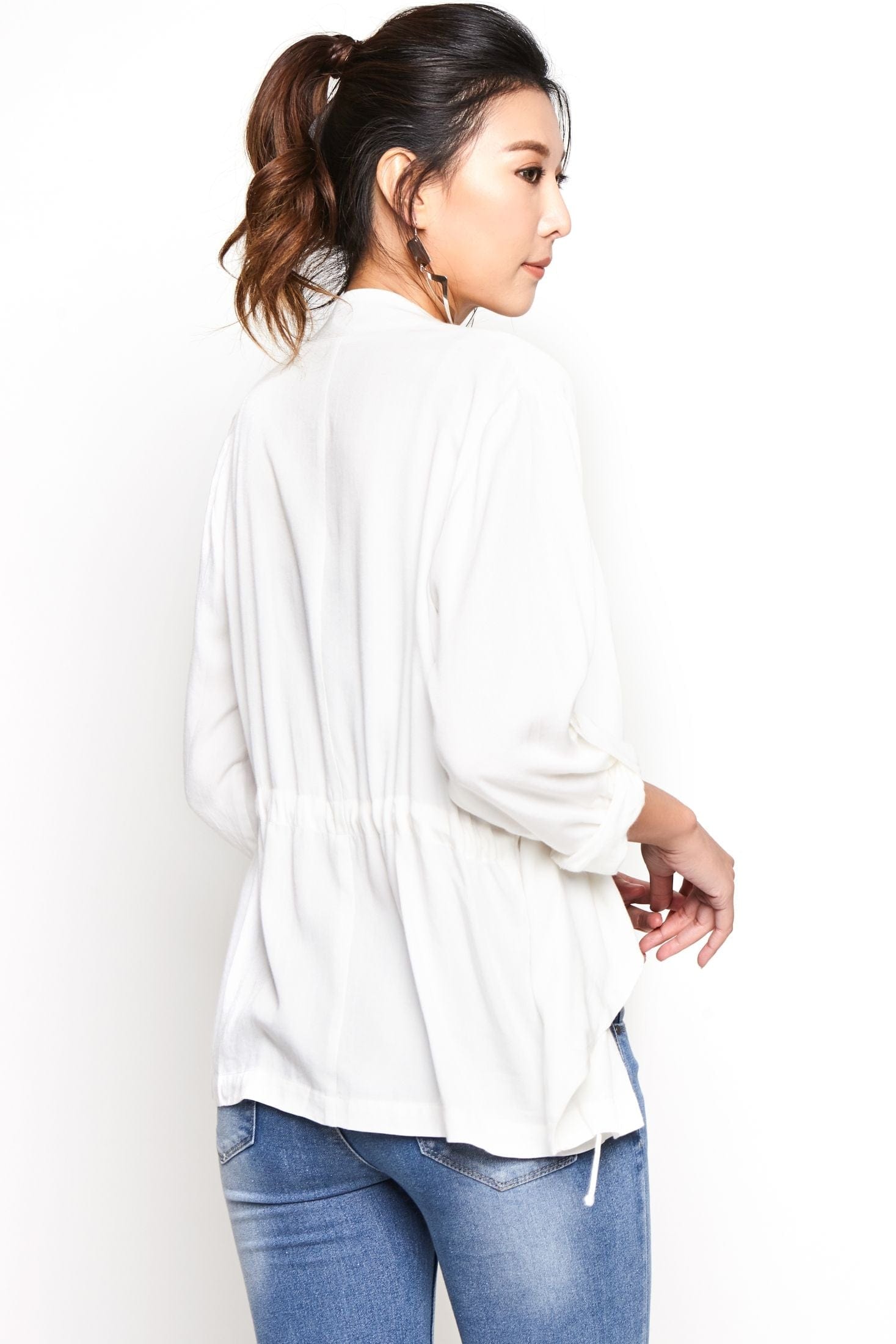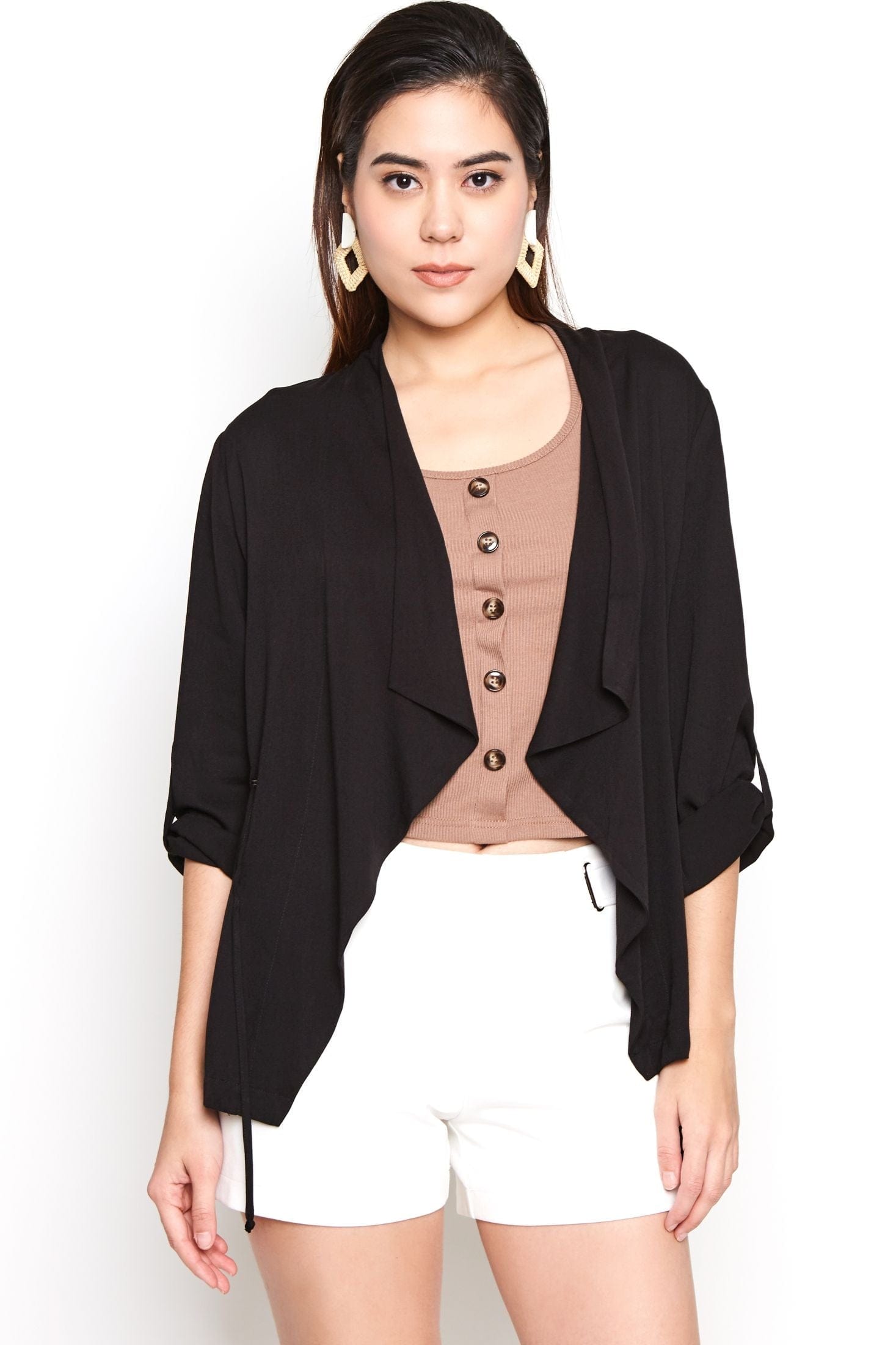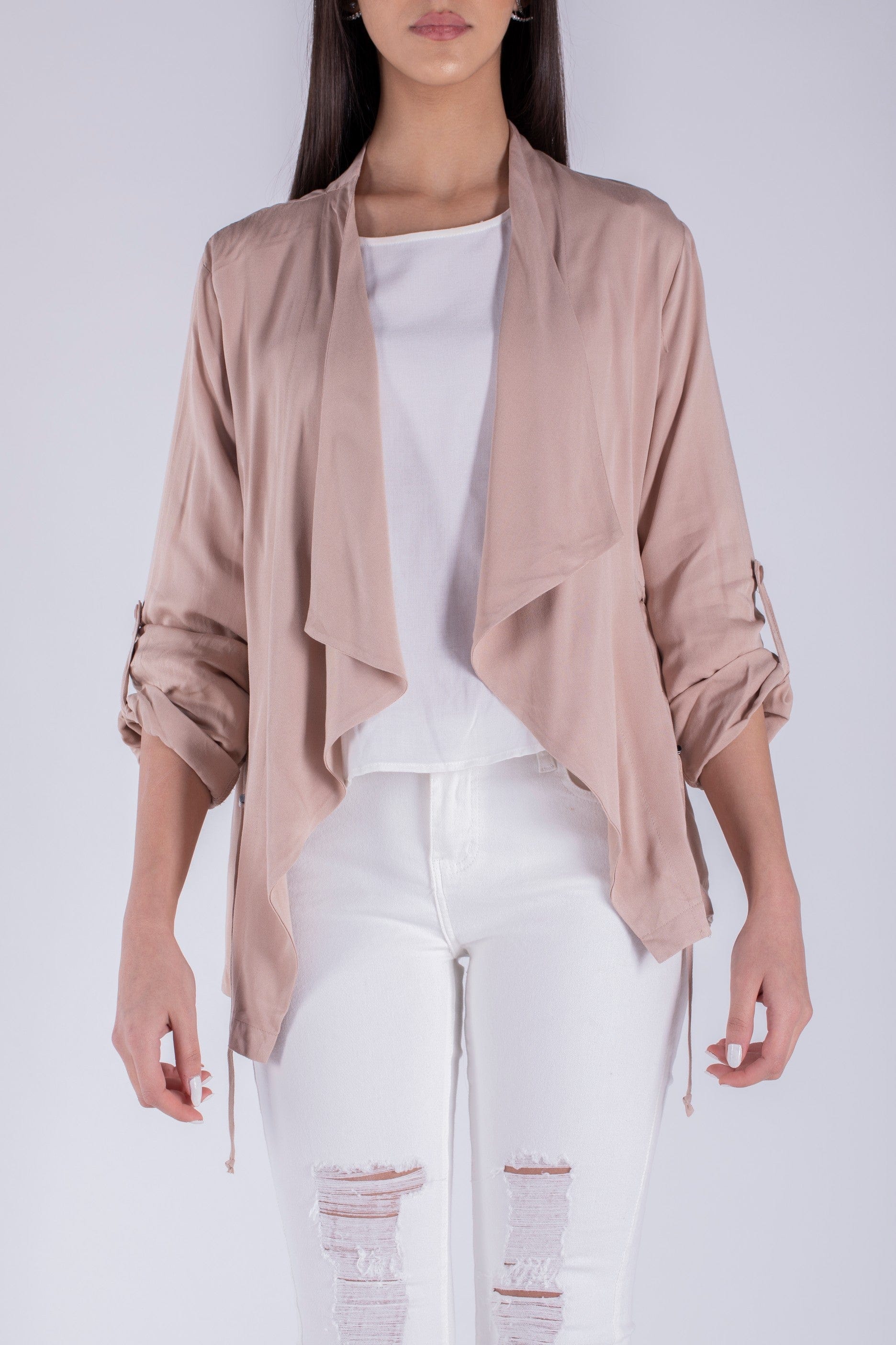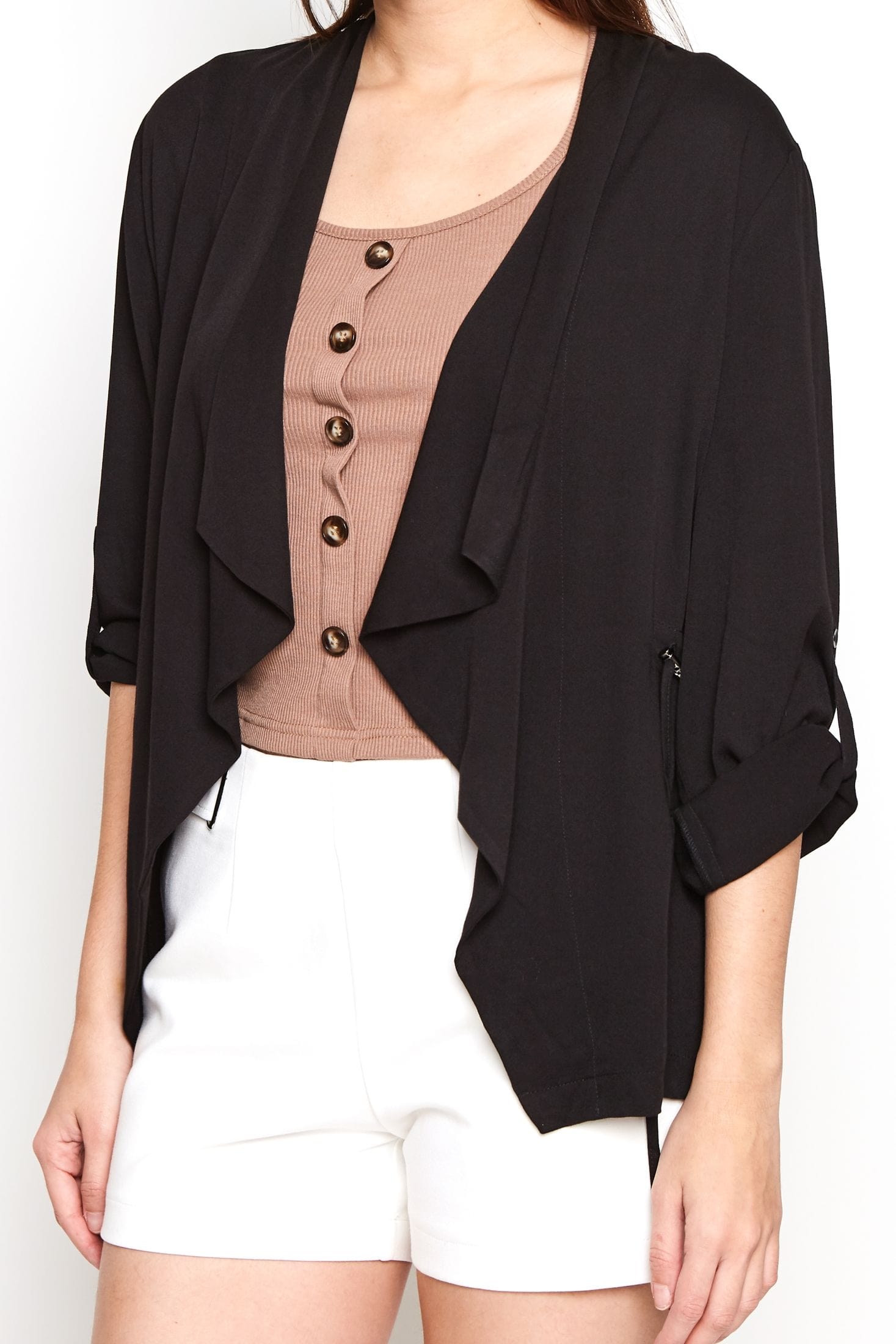 سترة سادة بدون سحاب مفتوحة بأكمام طويلة