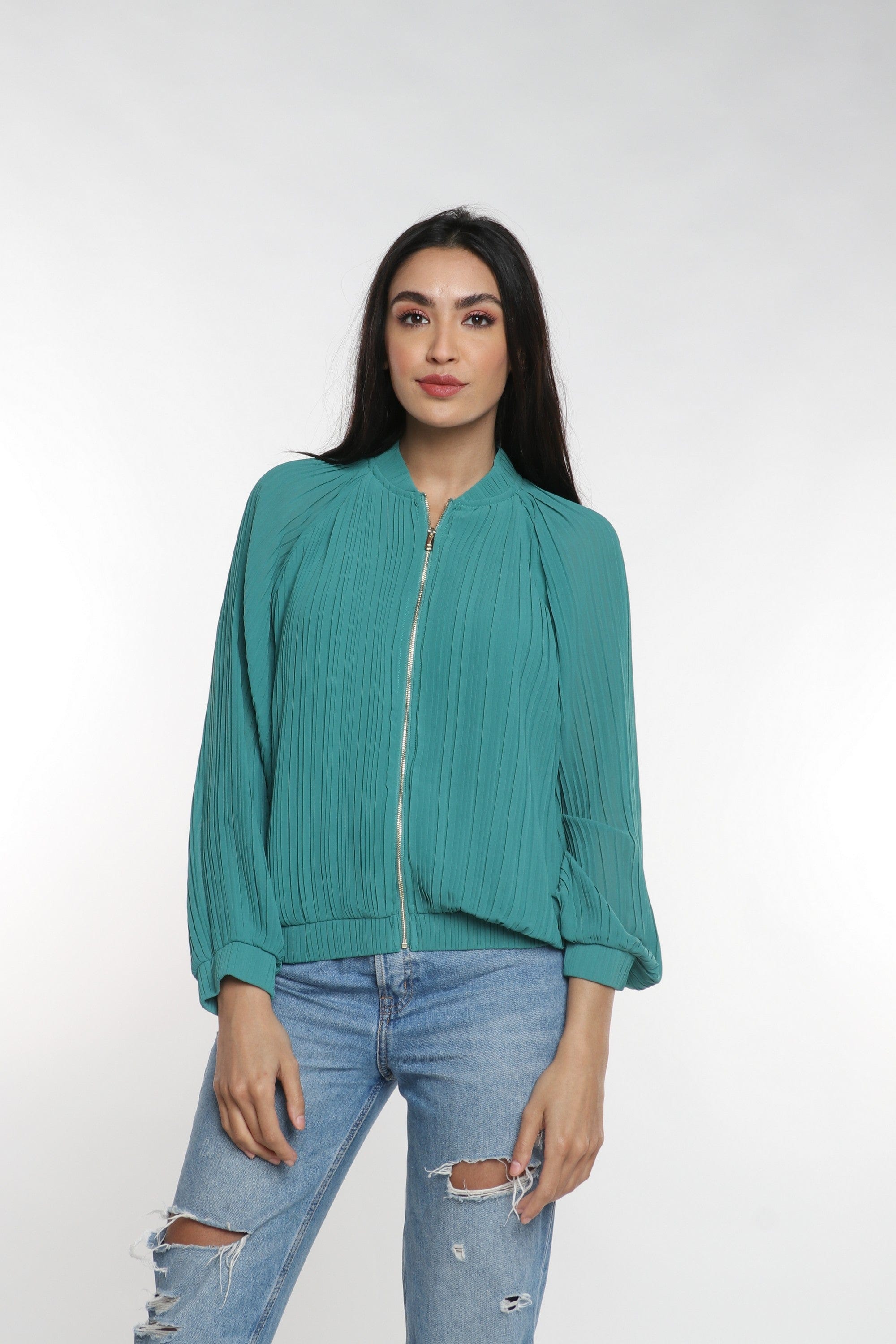 سترة سادة بكسرات بسحاب بأكمام طويلة