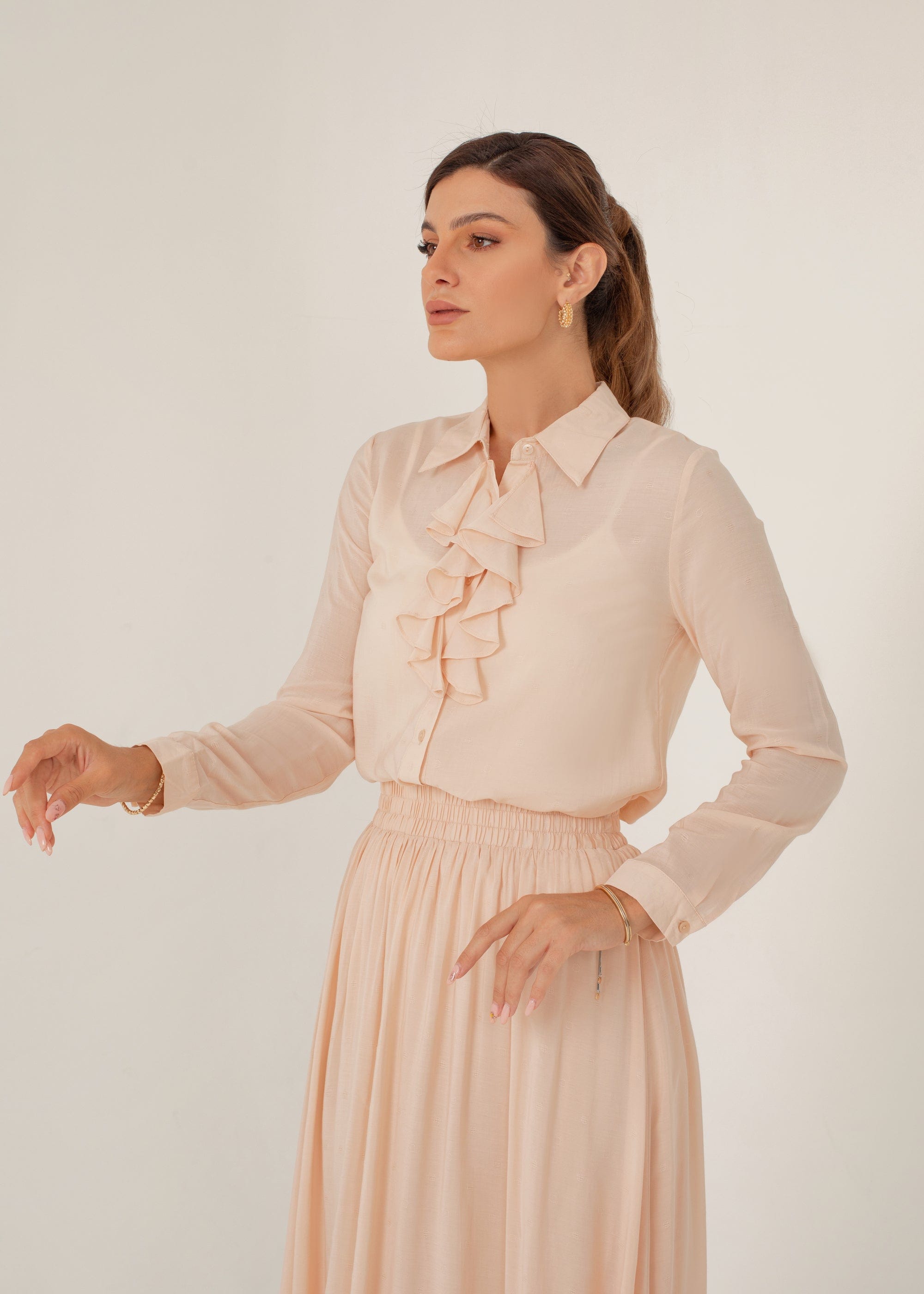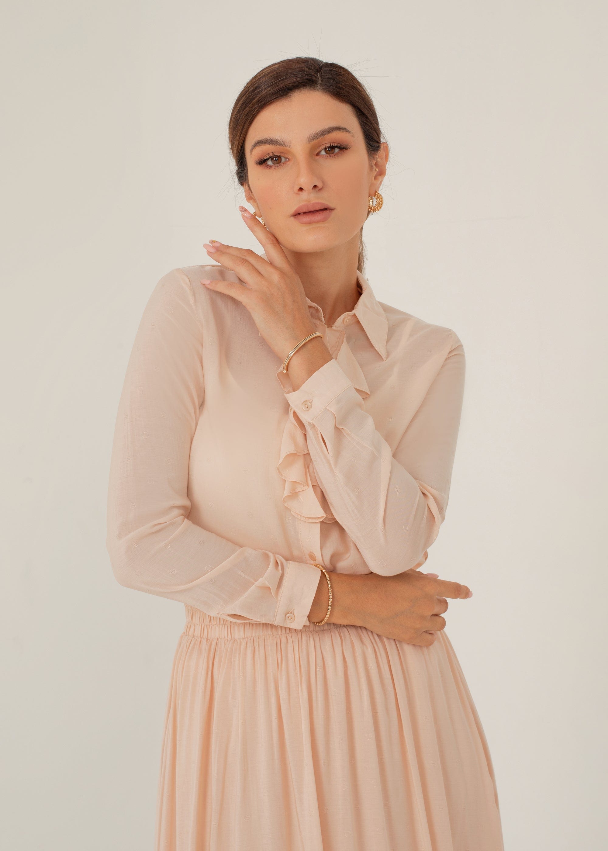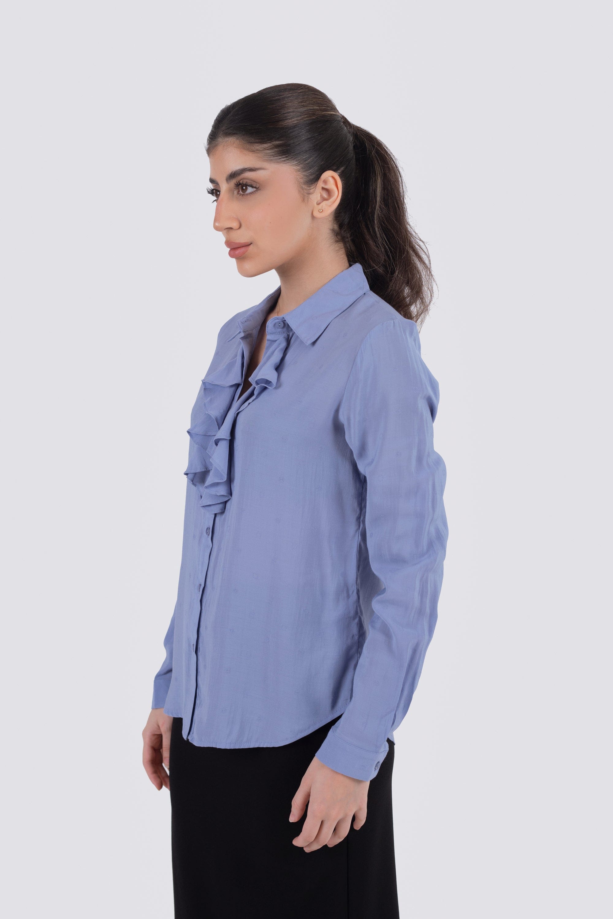 قميص قصة فرنسي مكشكش كم طويل نسائي
