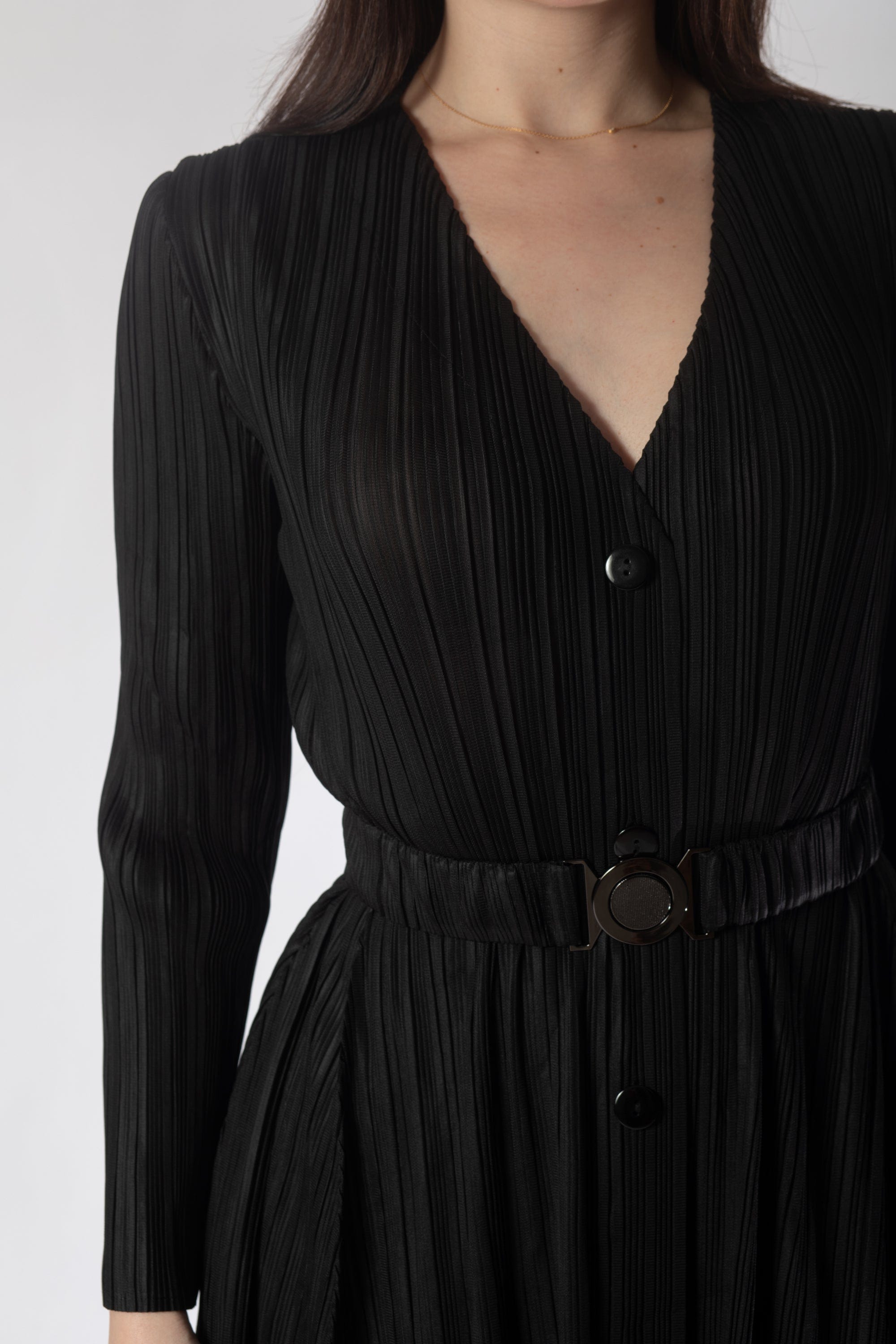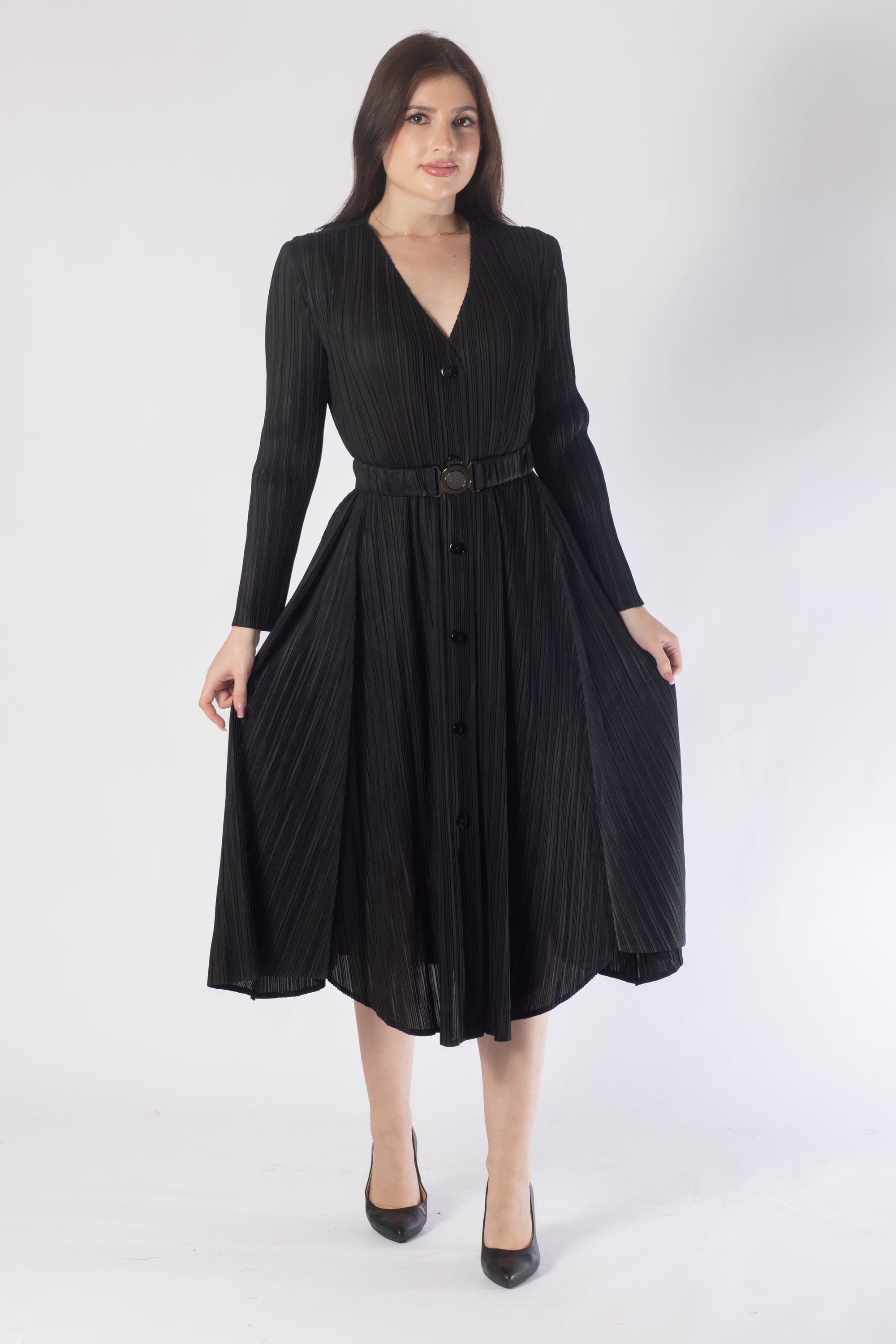 فستان ميدي بأزرار أمامية كم طويل نسائي