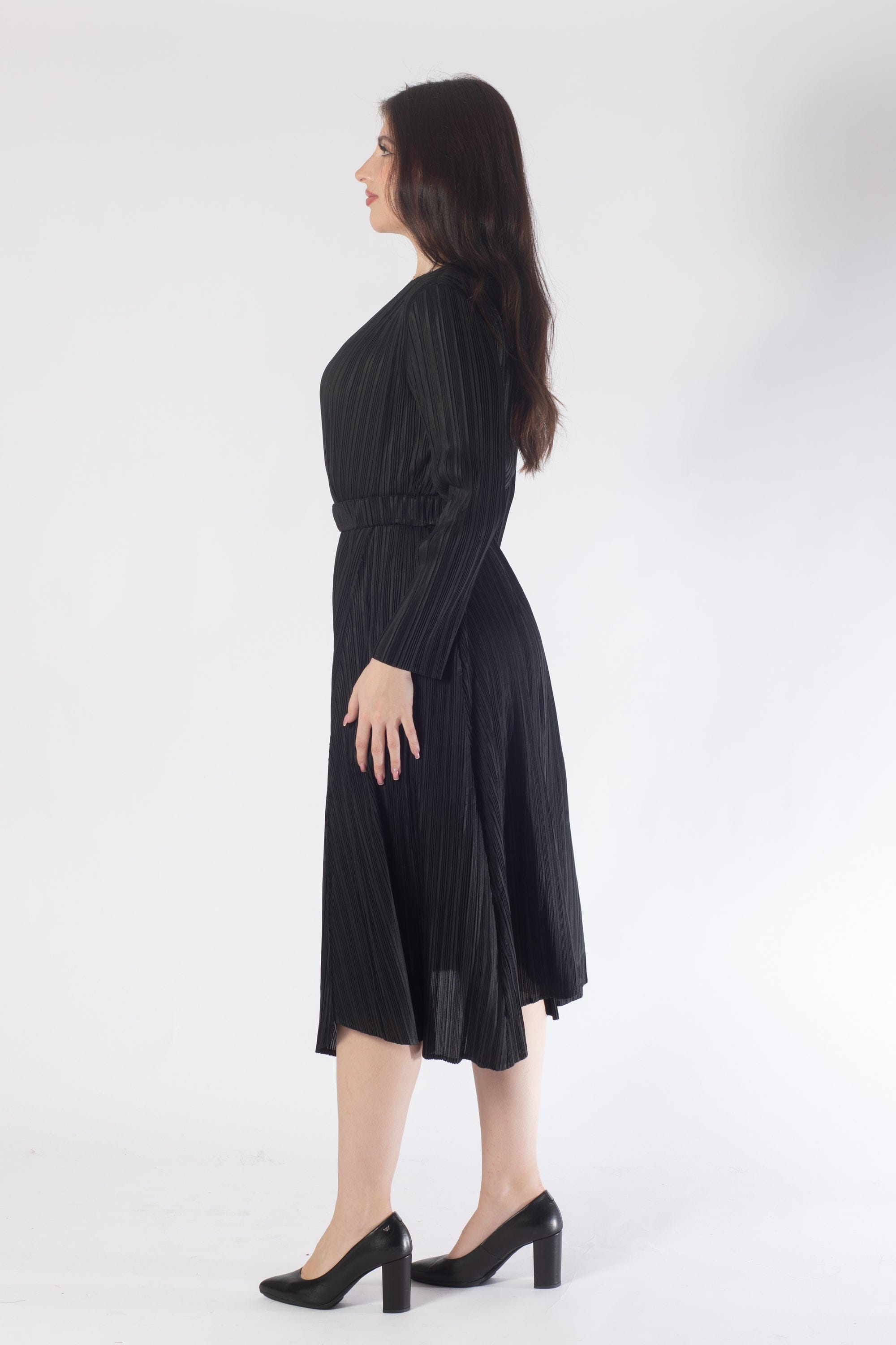 هل تبحثين عن فستان عملي وأنيق لخزانة العمل؟ هذا الفستان الأسود بقصة A وطول ميدي خيار رائع. خامة بوليستر 100% تعني أنه متين وسهل الغسيل ويحافظ على شكله خلال اليوم، بسماكة متوسطة تناسب كل المواسم. ياقة V تمنح مظهرًا مرتبًا وكم طويل بقصة عادية يضيف لمسة رسمية مناسبة للمكتب. التصميم سادة مع حزام مرفق يحدد الخصر ويمنحك شكل أنثوي من دون مبالغة. الإغلاق بزر يجعل الارتداء سلساً، وهو بلا بطانة وبدون جيوب للحفاظ على خطوط نظيفة. ستحبين كيف يتحرك معك خلال يوم العمل، ومناسب للاجتماعات الرسمية أو لتنسيق أكثر راحة في يوم مكتبي مزدحم. اعثري على مقاسك في فاشن السعودية وأضيفي هذه القطعة المتنوعة إلى خزانة ملابسك اليوم.