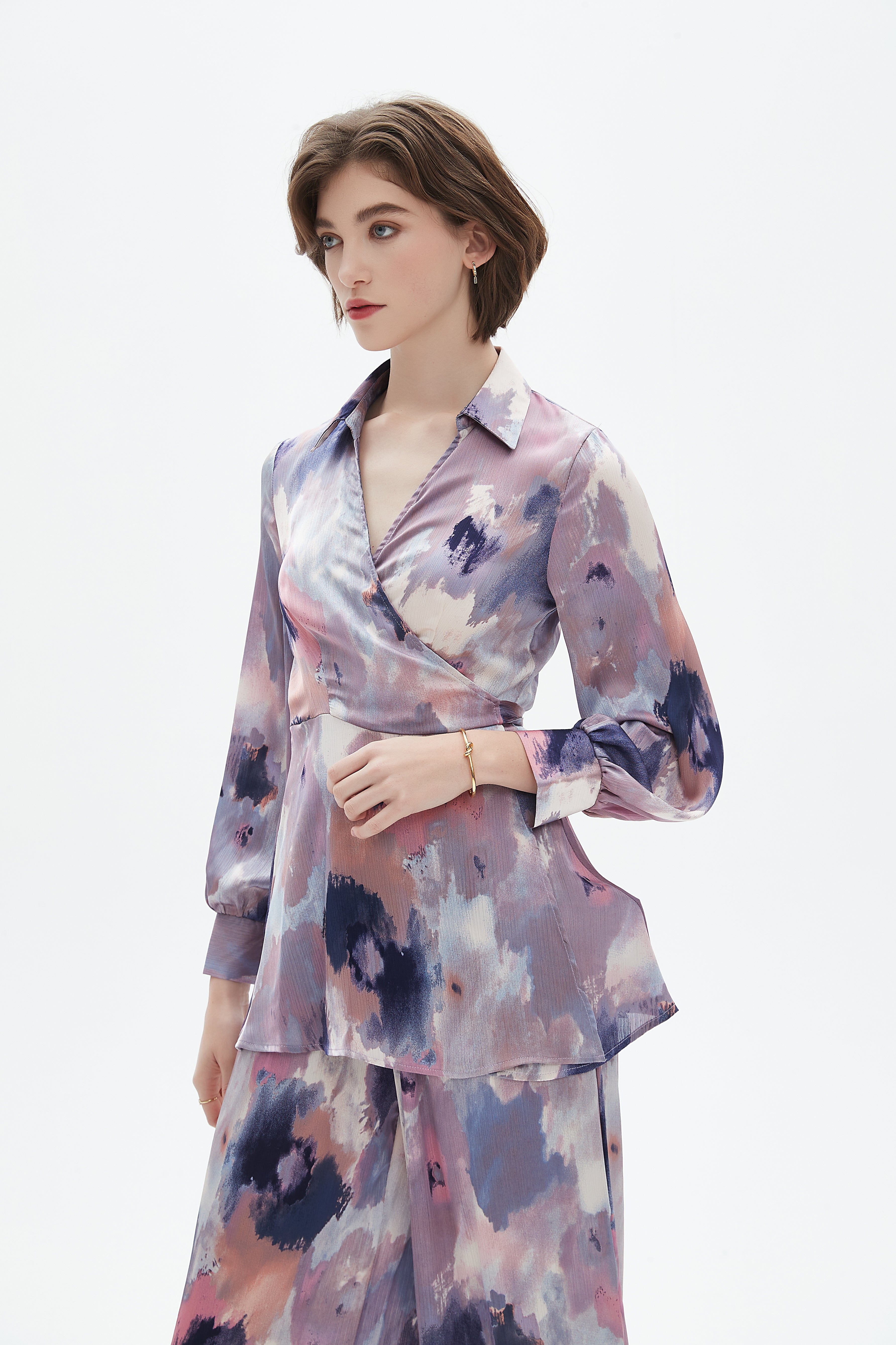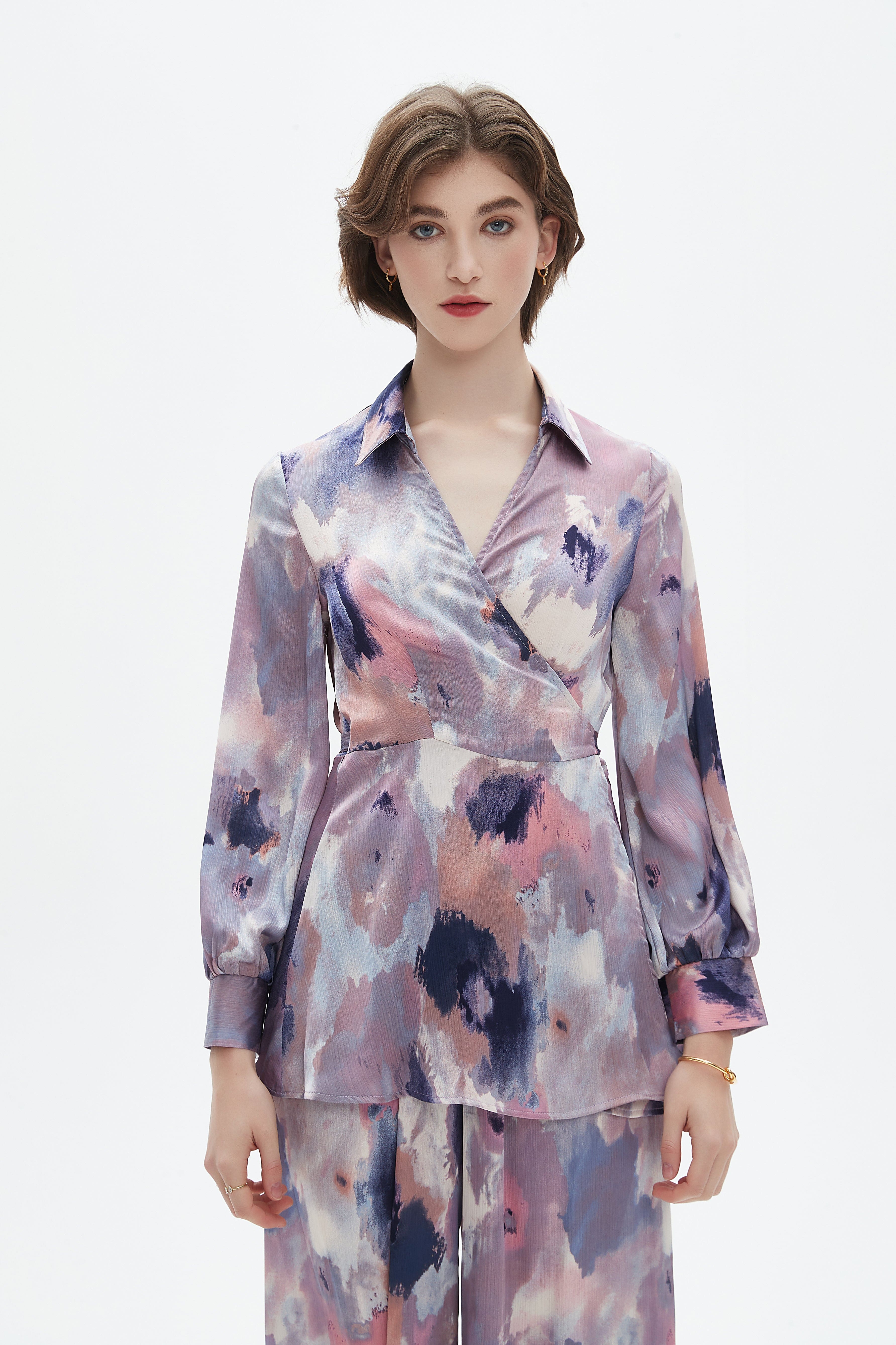 بلوزة نسائية بلوزة بطول الخصر منقوشة بأكمام طويلة وياقة قميص