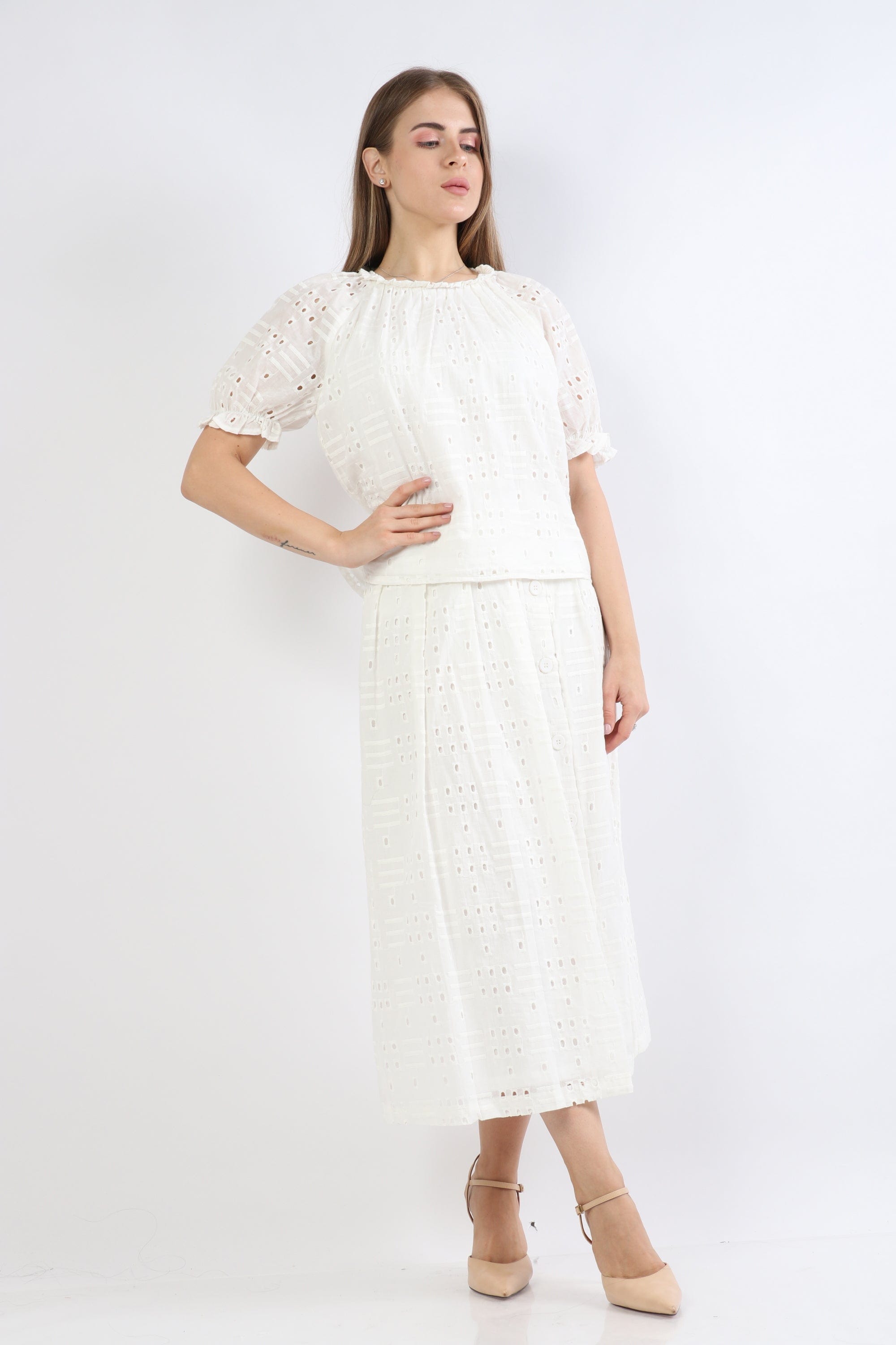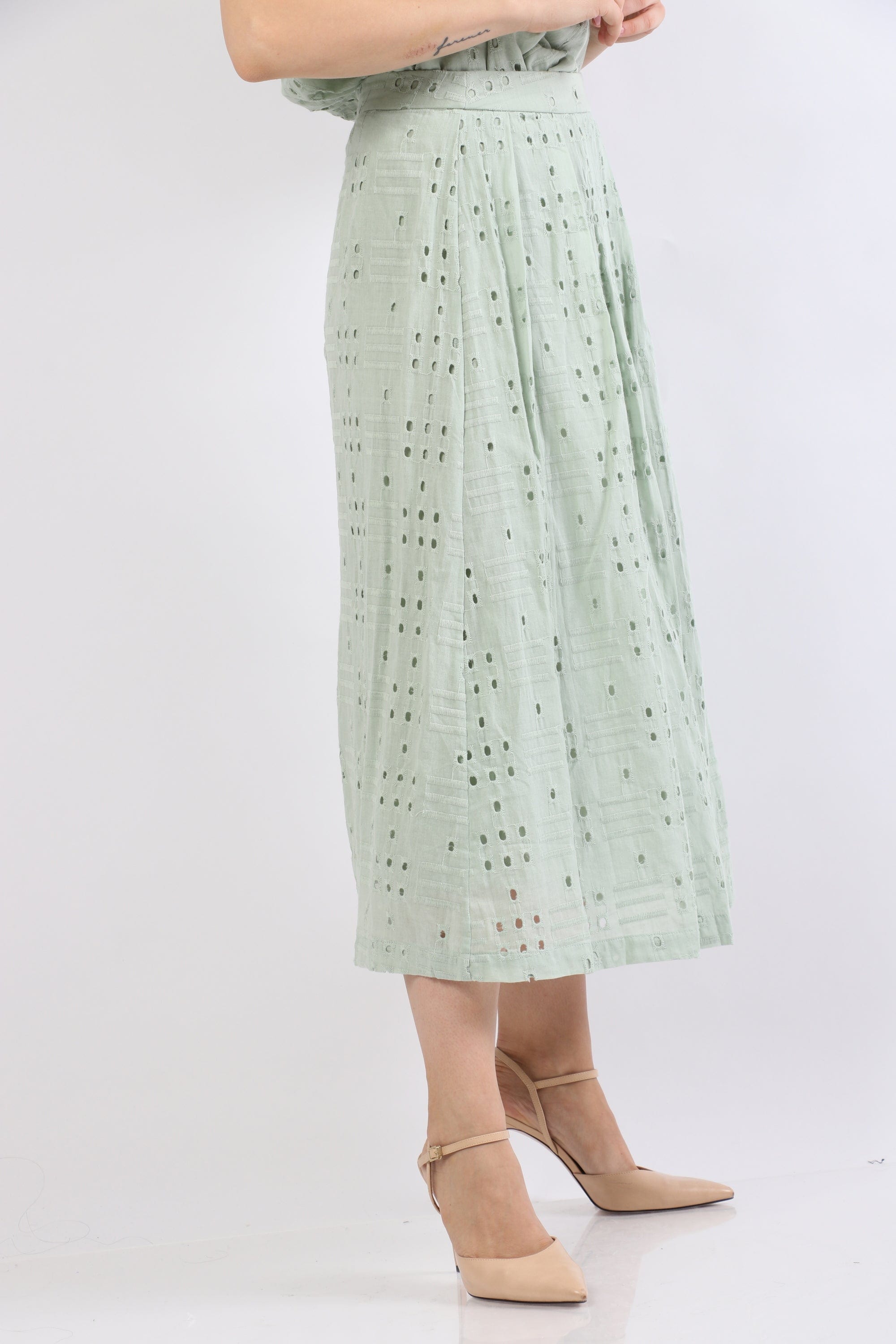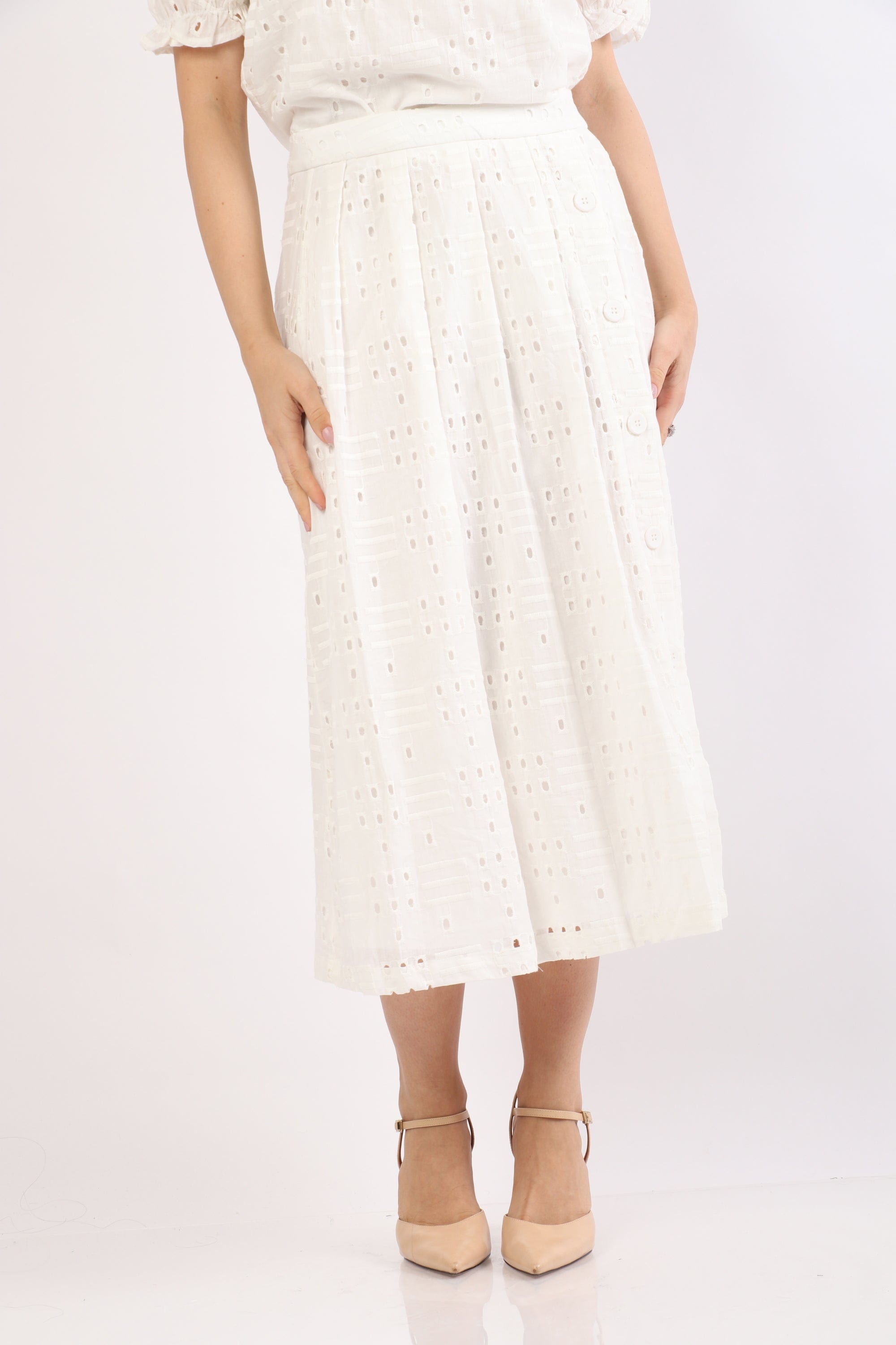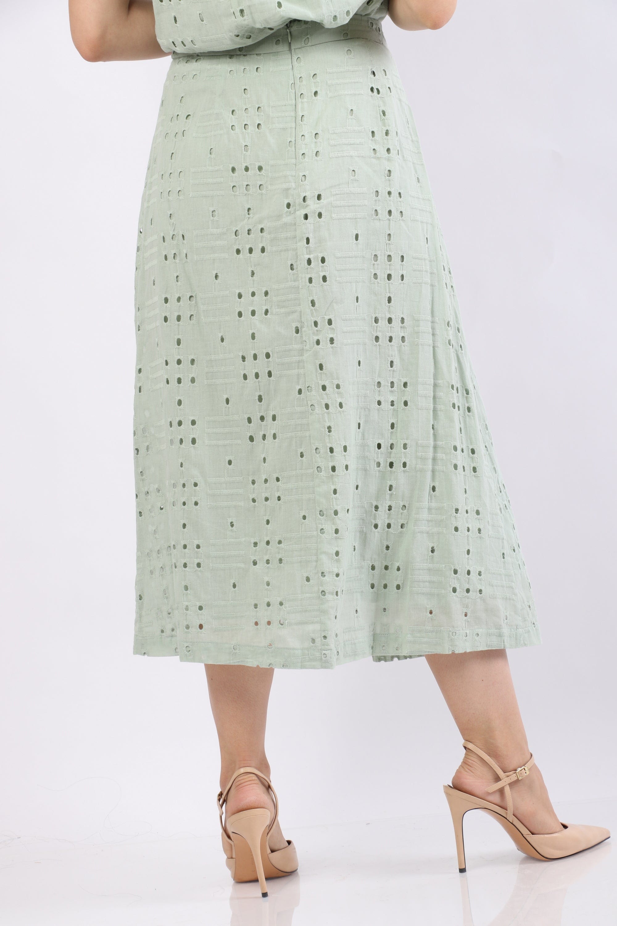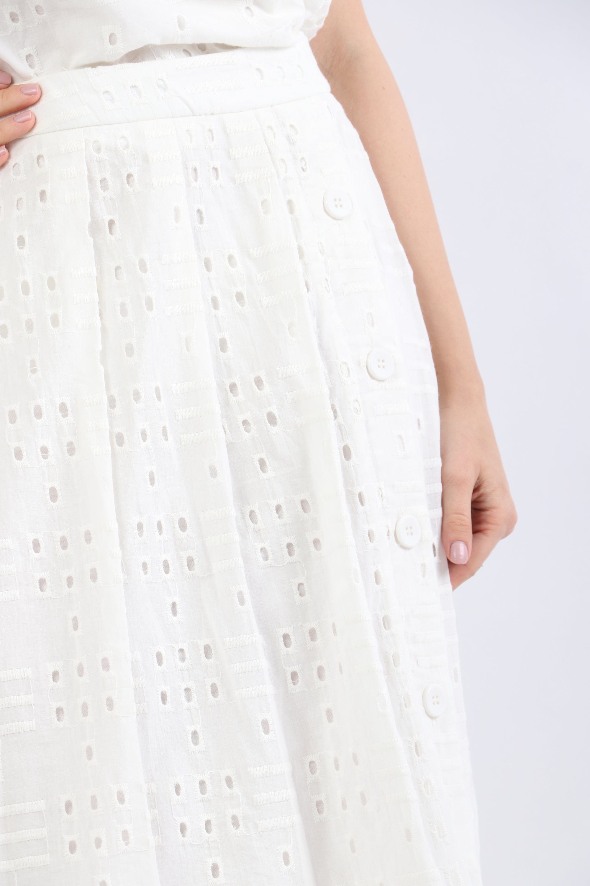 تنورة ميدي هاي ويست مطرزة دانتيل