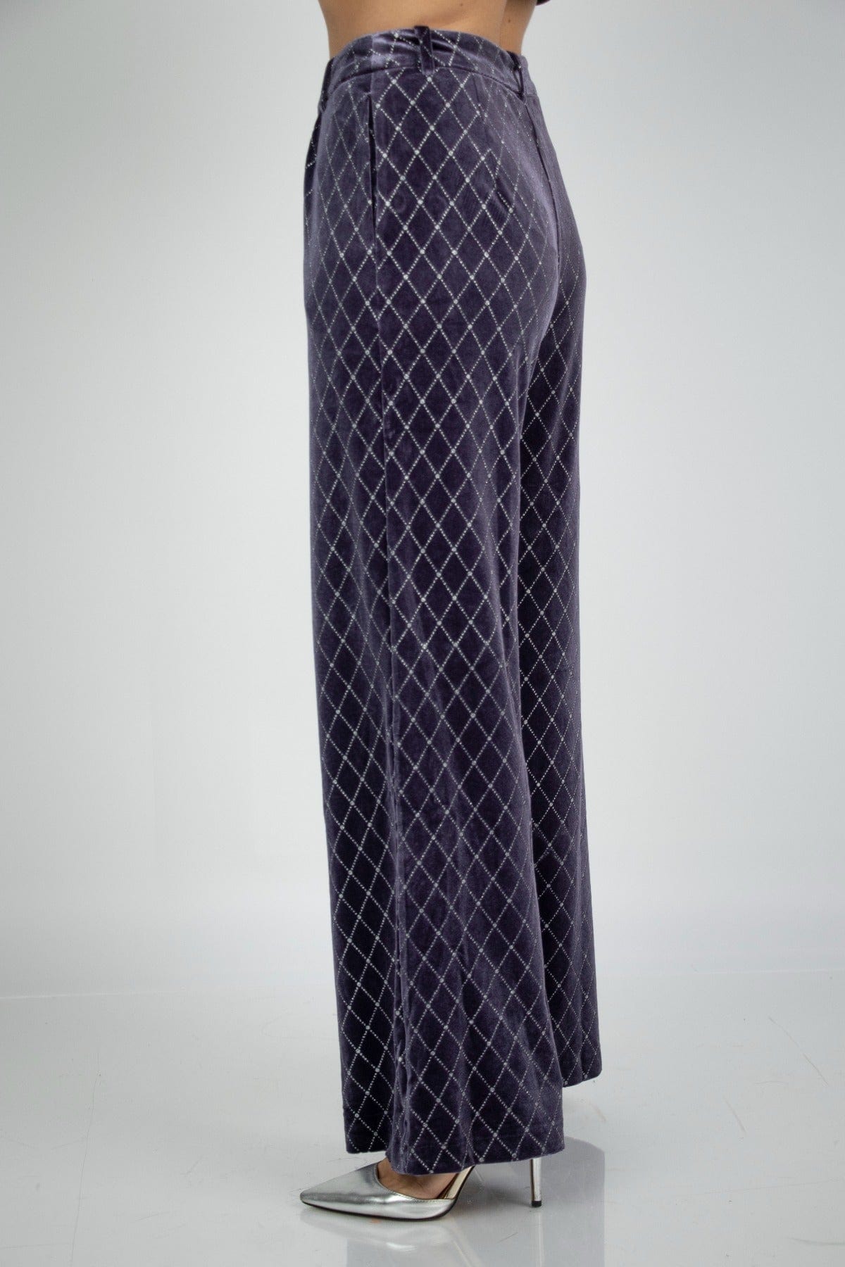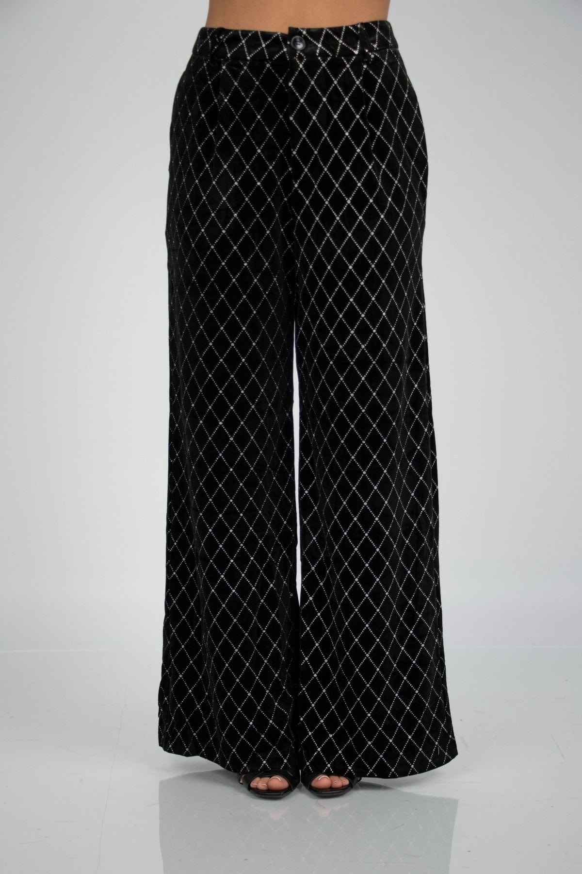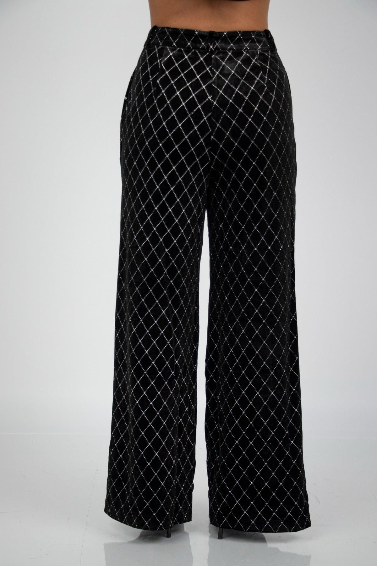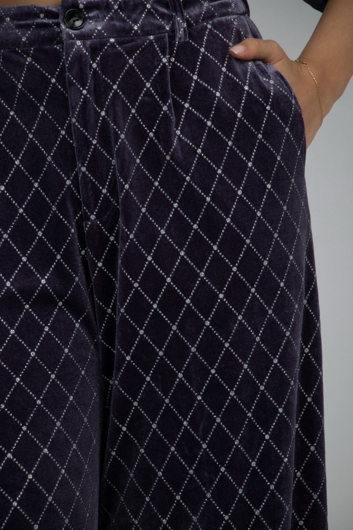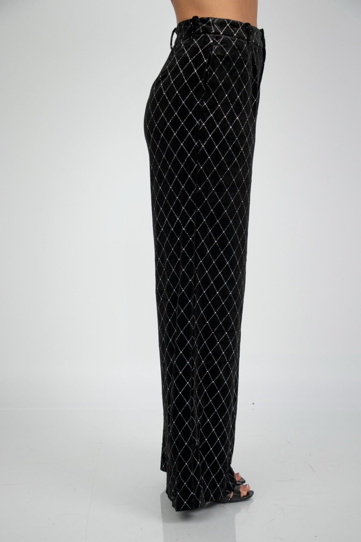 بنطلون مربعات هاي ويست واسع طويل نسائي