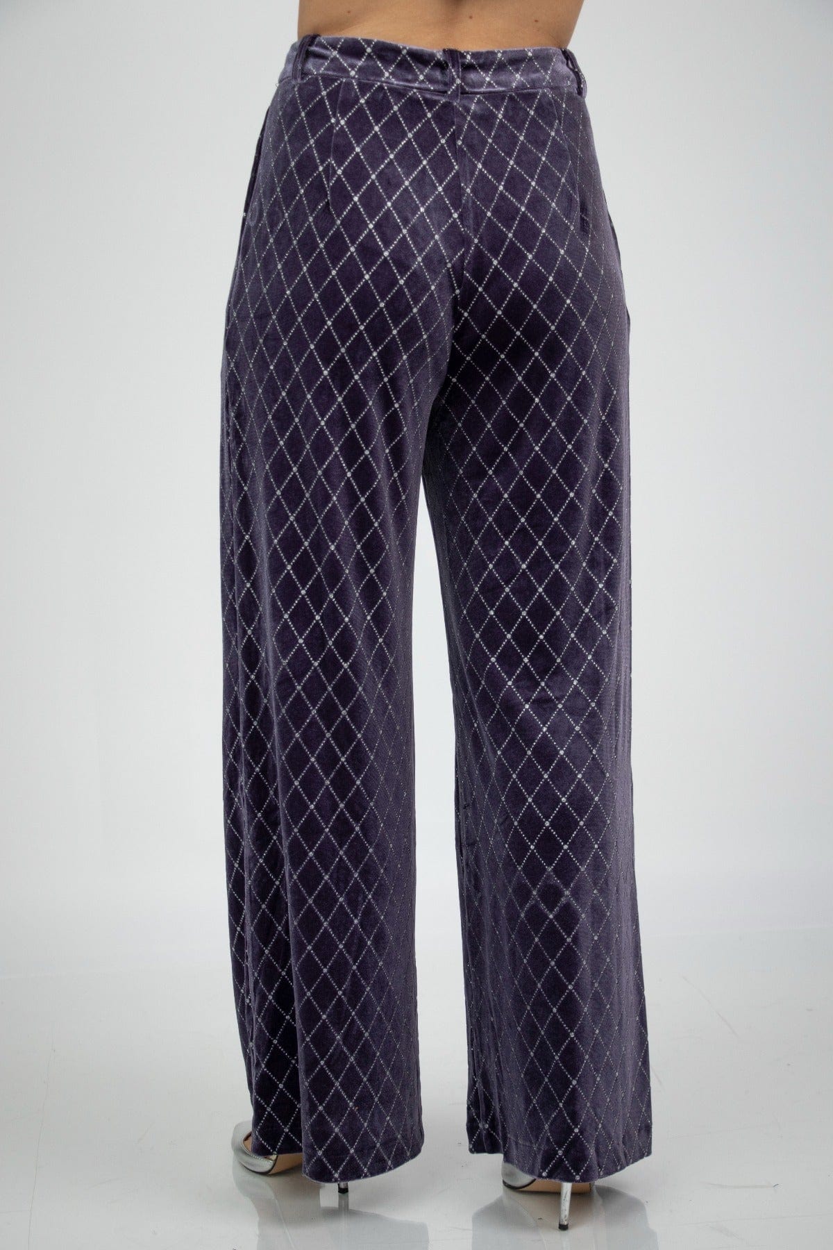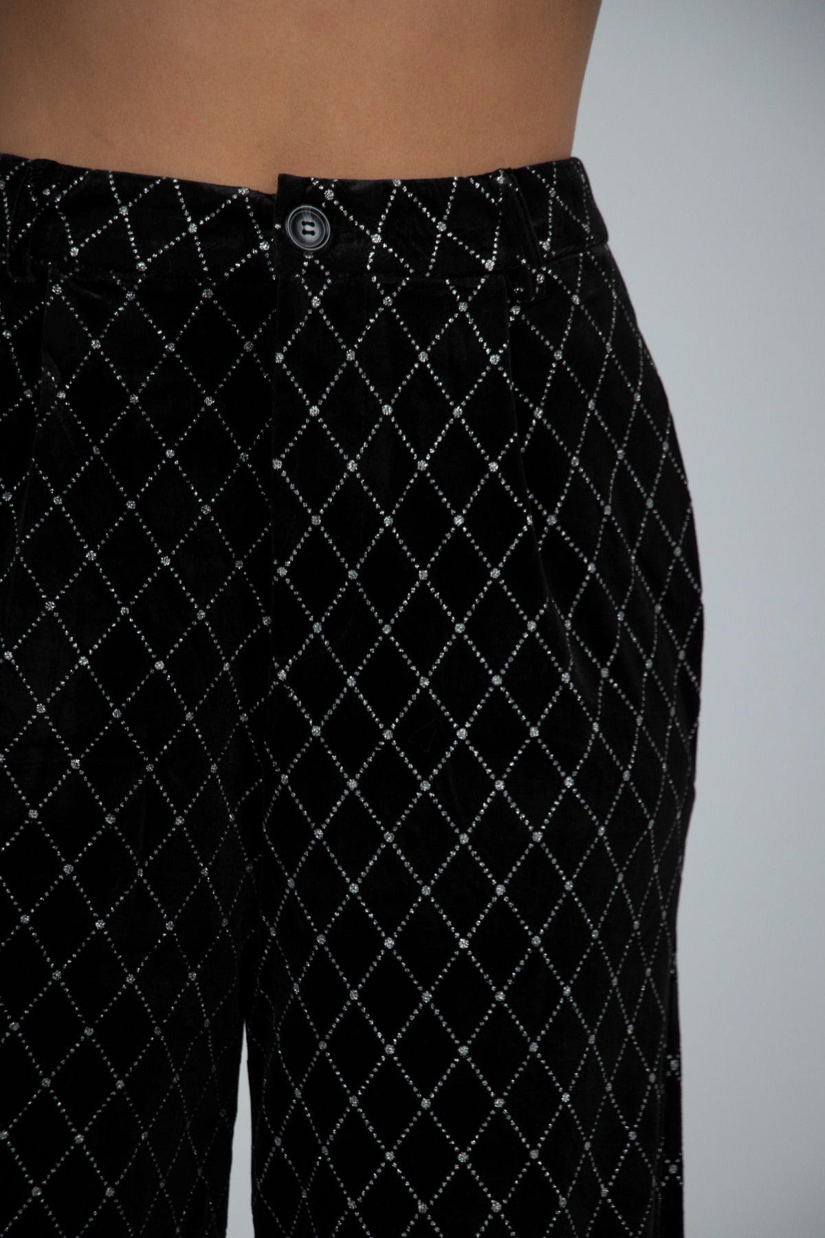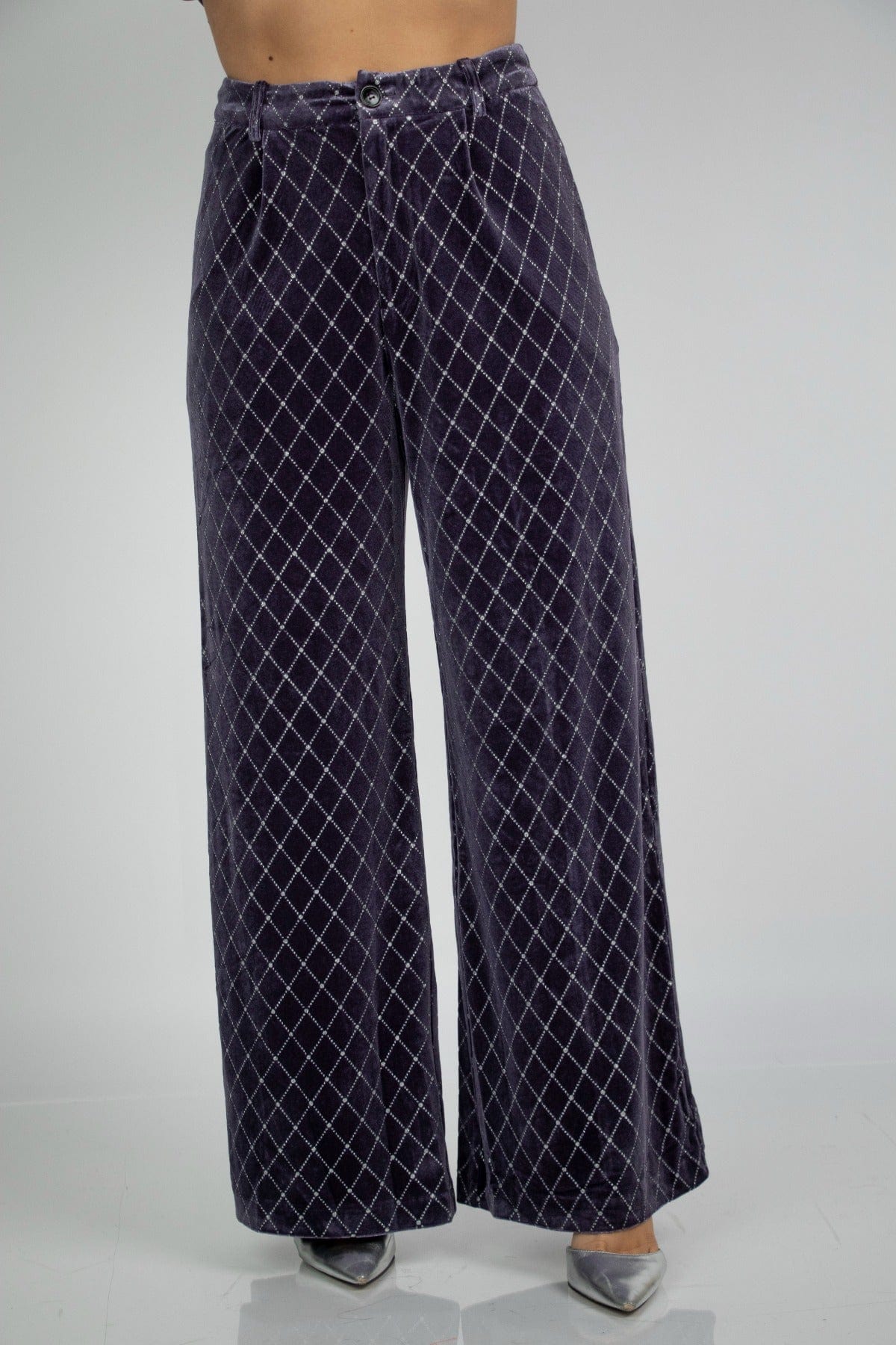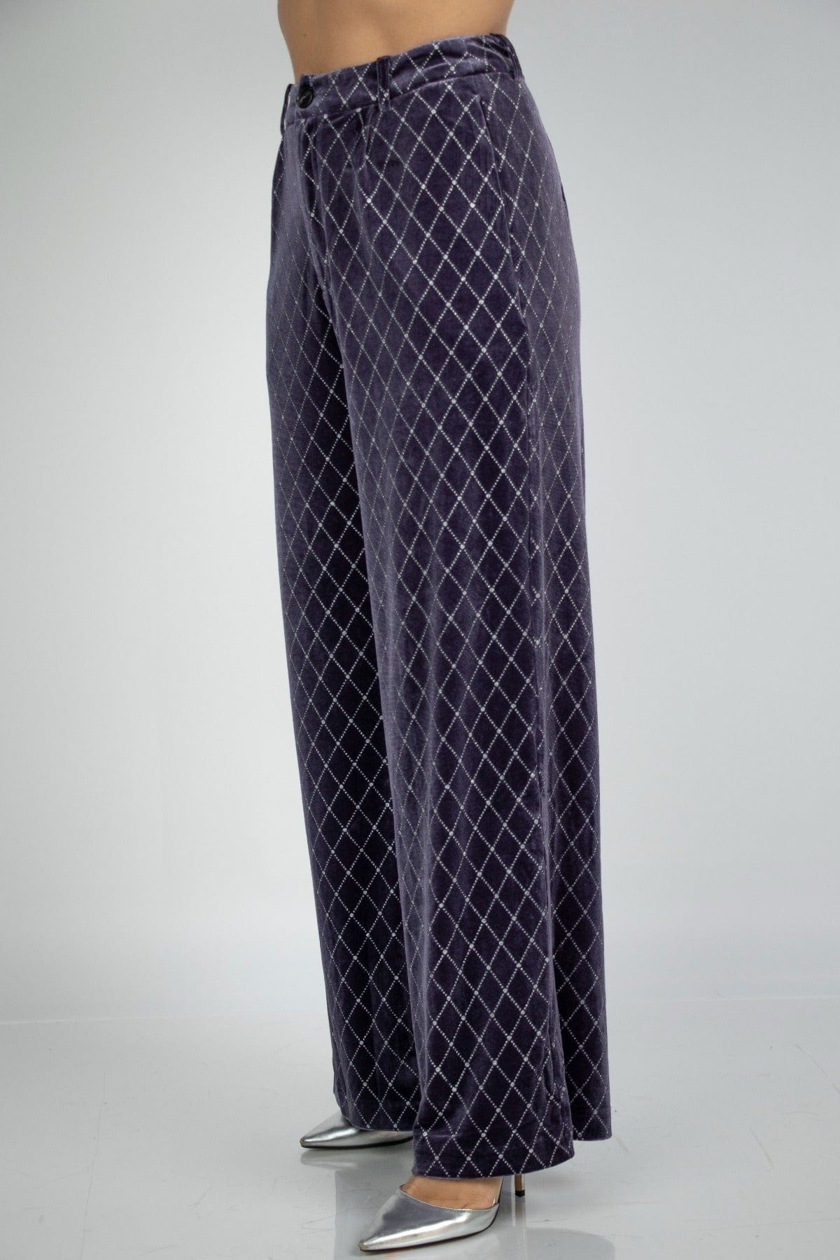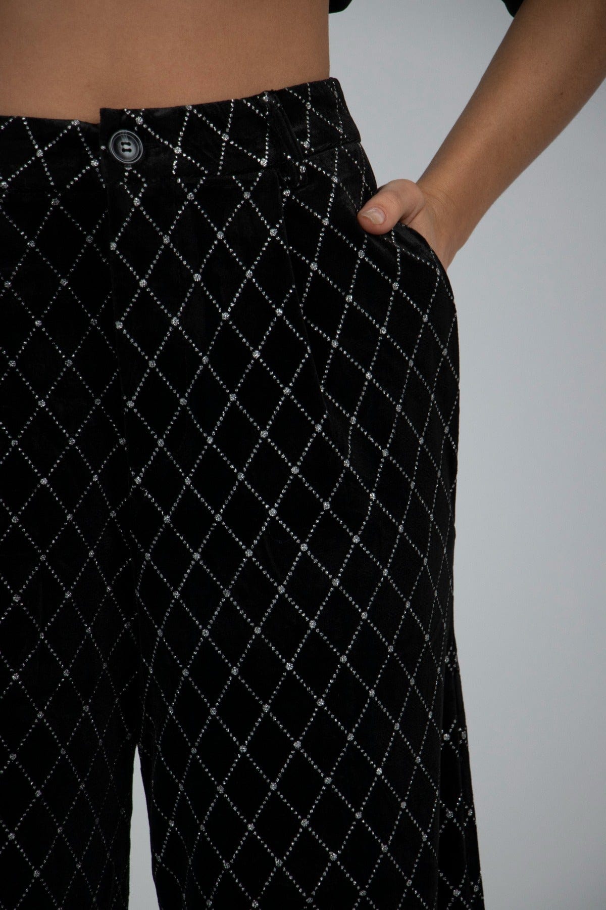 بنطلون مربعات هاي ويست واسع طويل نسائي