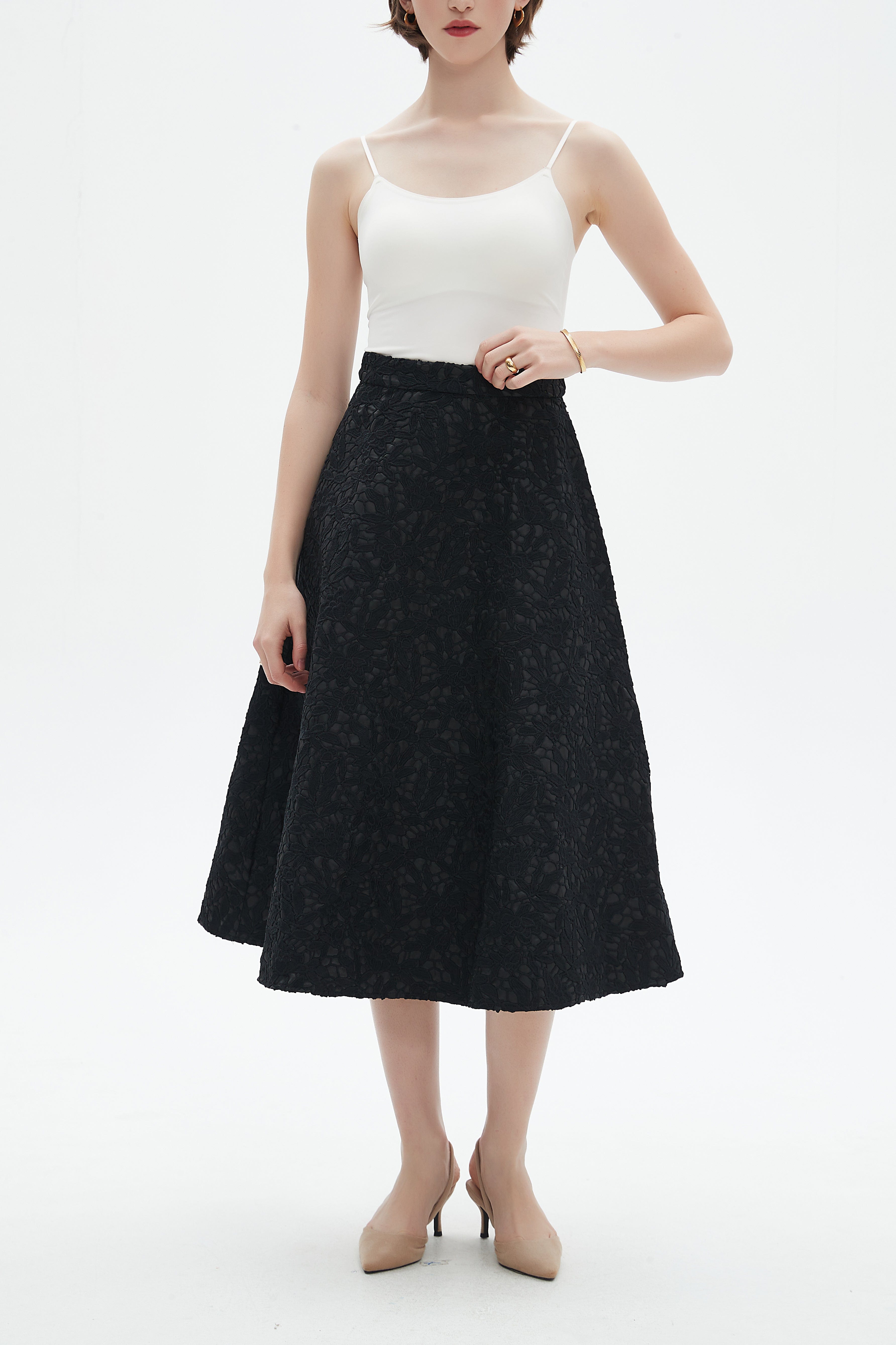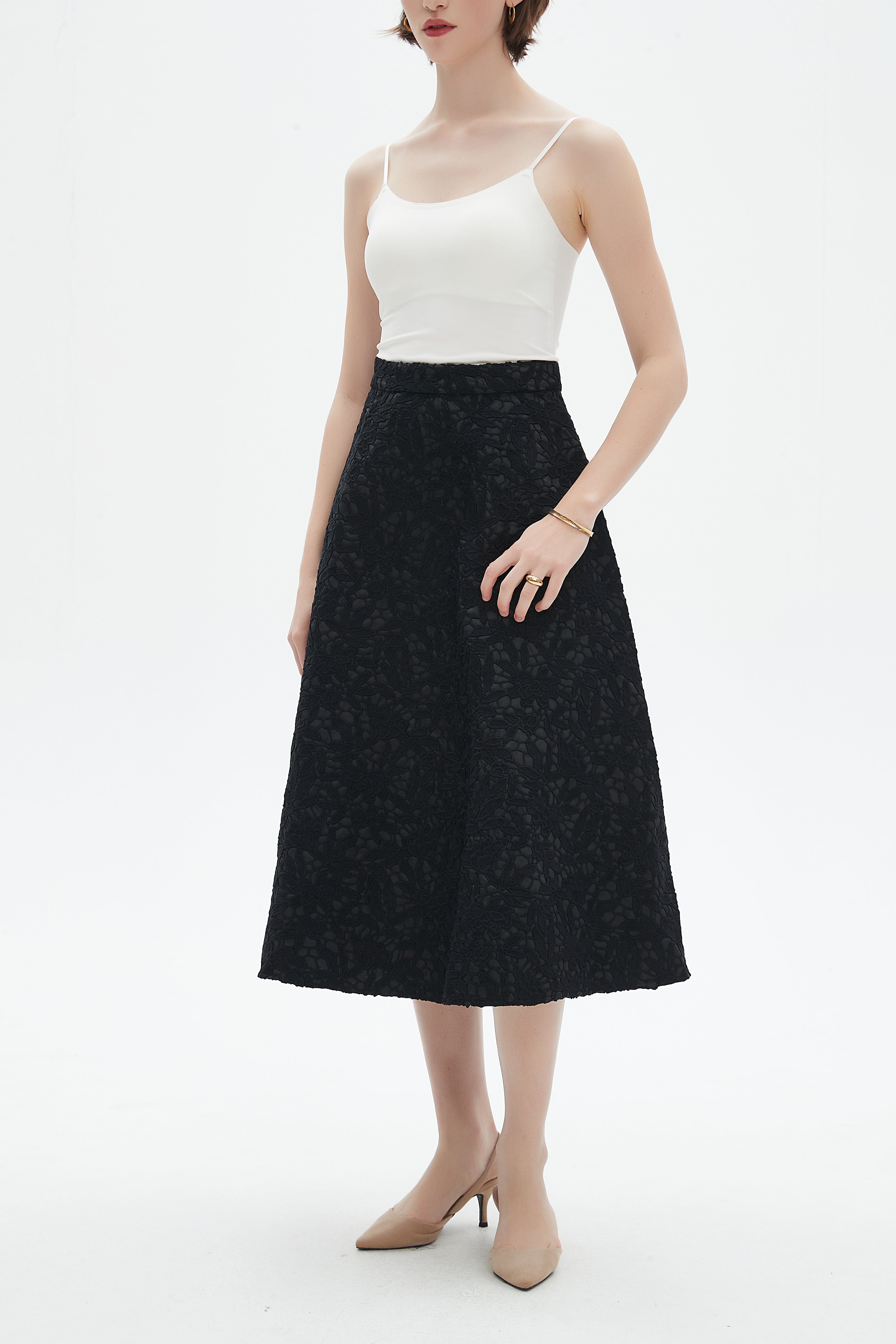 تنورة نسائية ميدي مطرزة تطريز ورورد