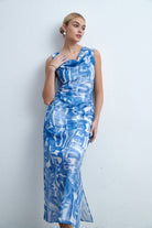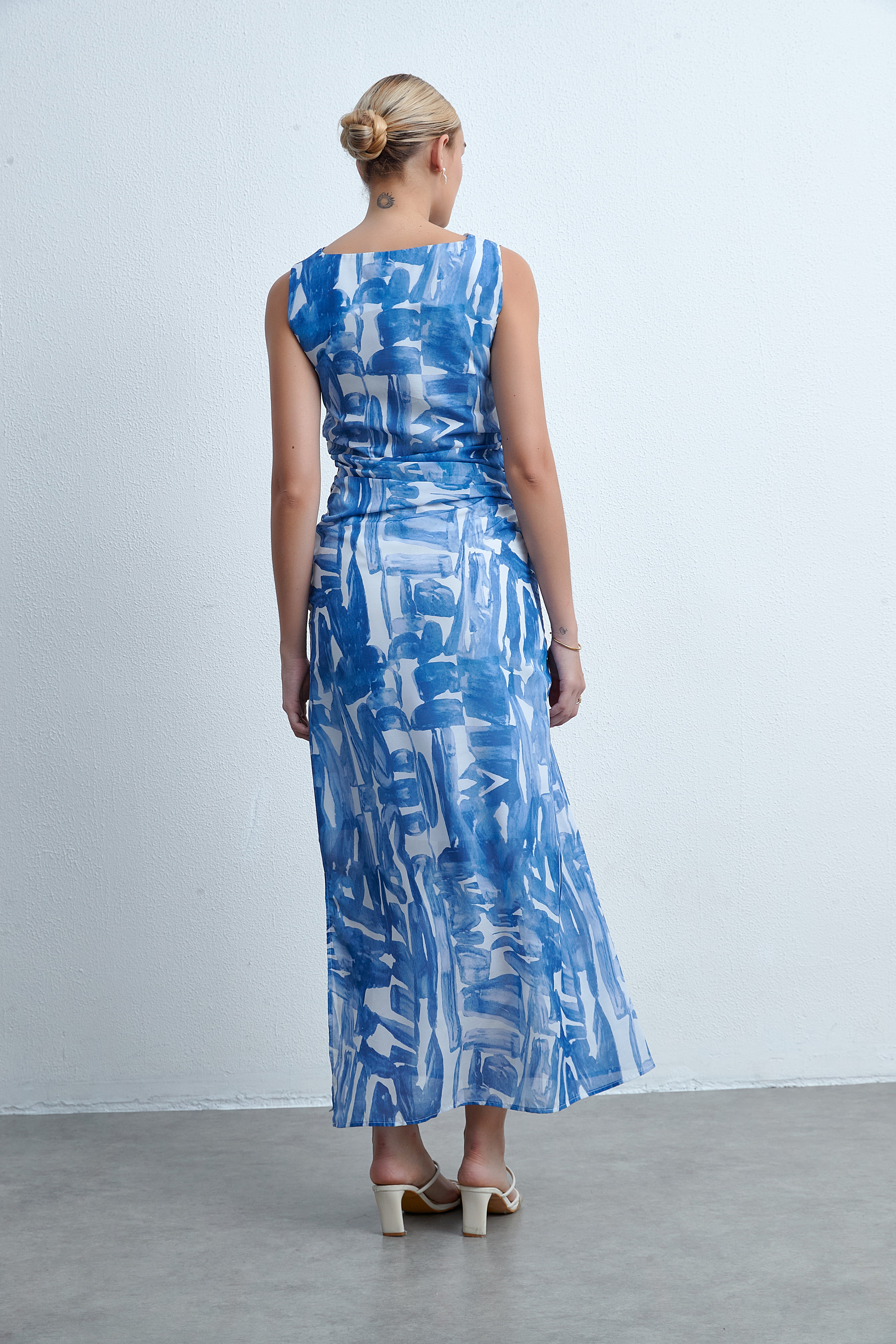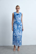فستان ميدي مطبوع بدون أكمام