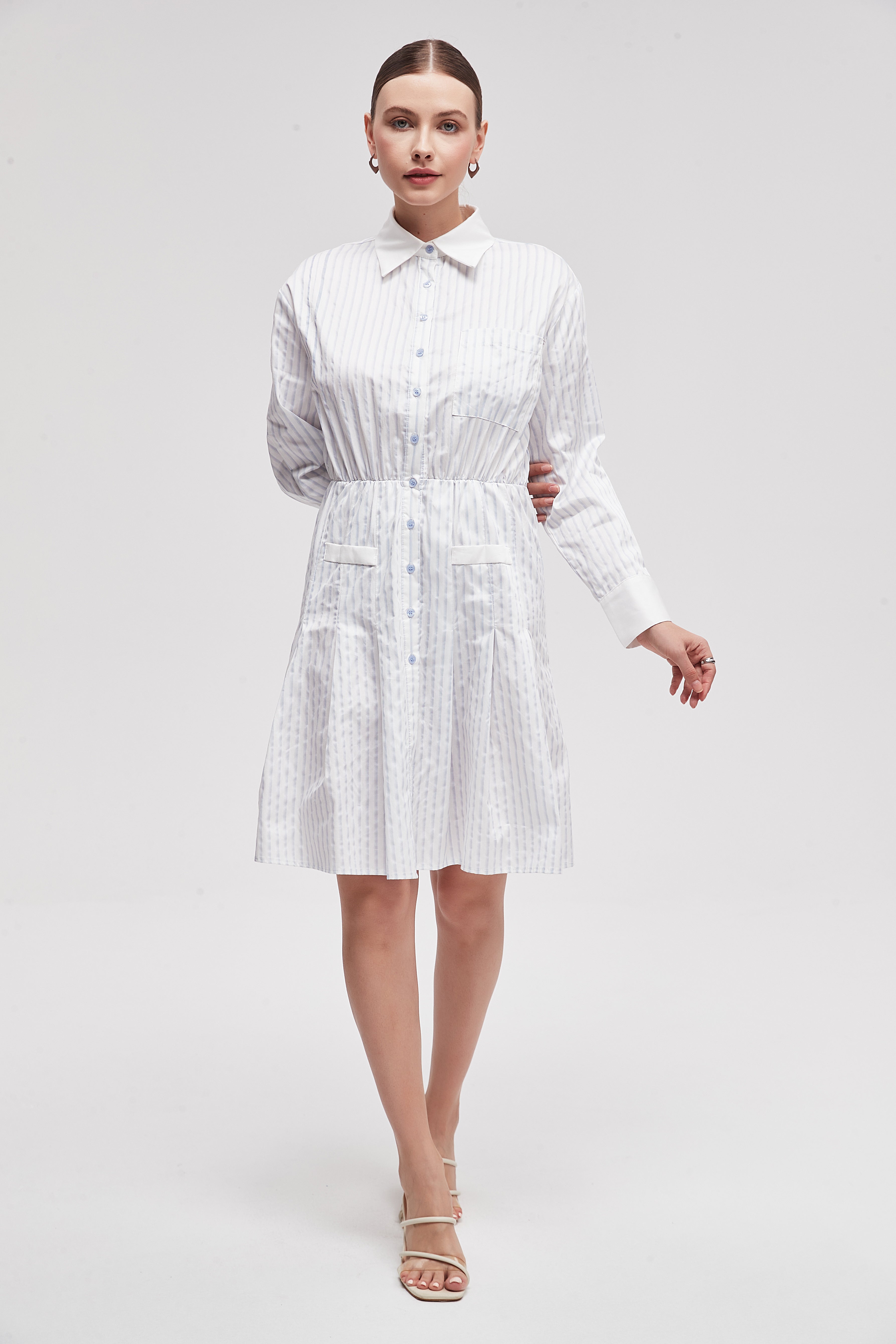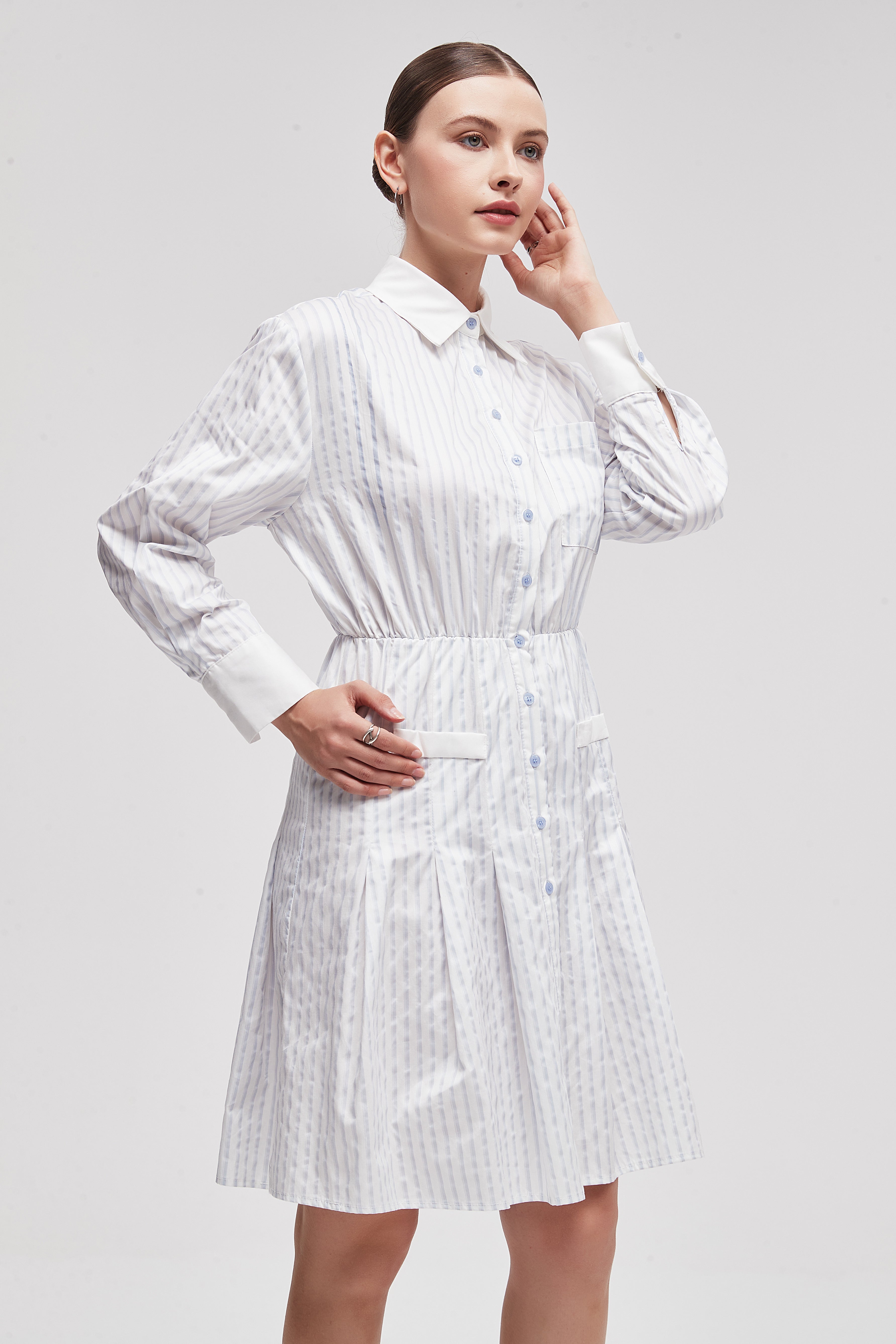 فستان قصير بكم طويل وياقة قميص