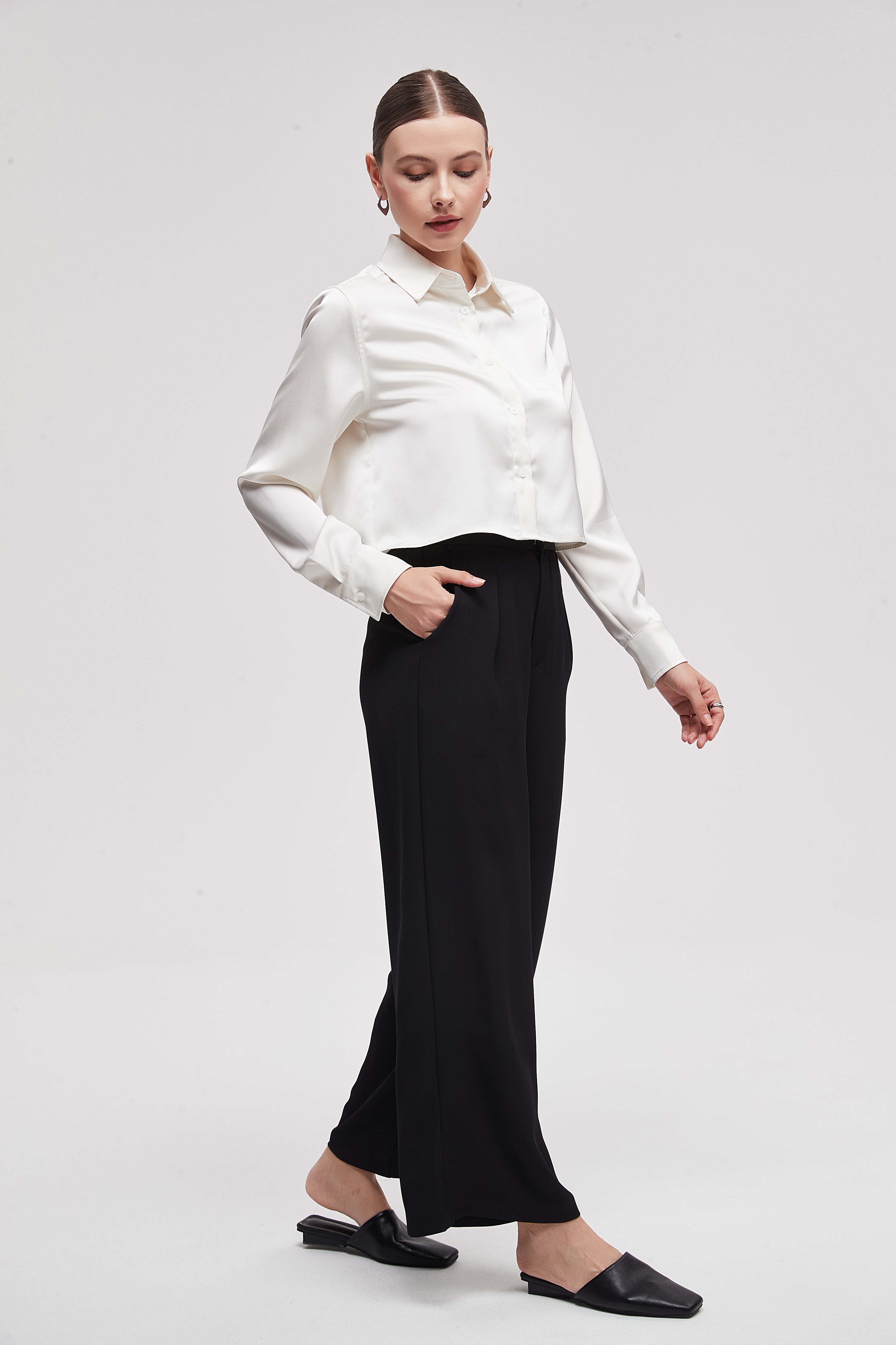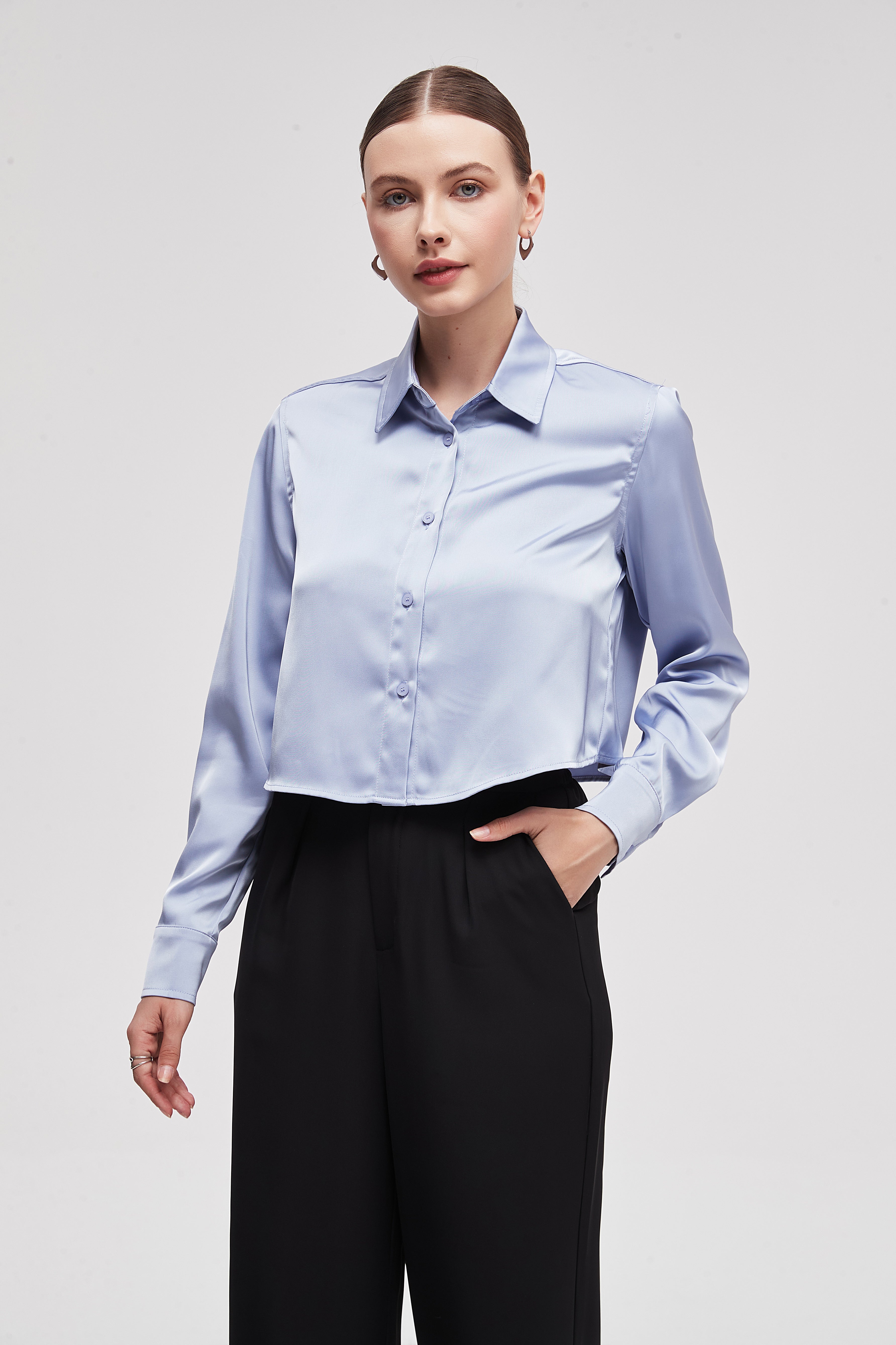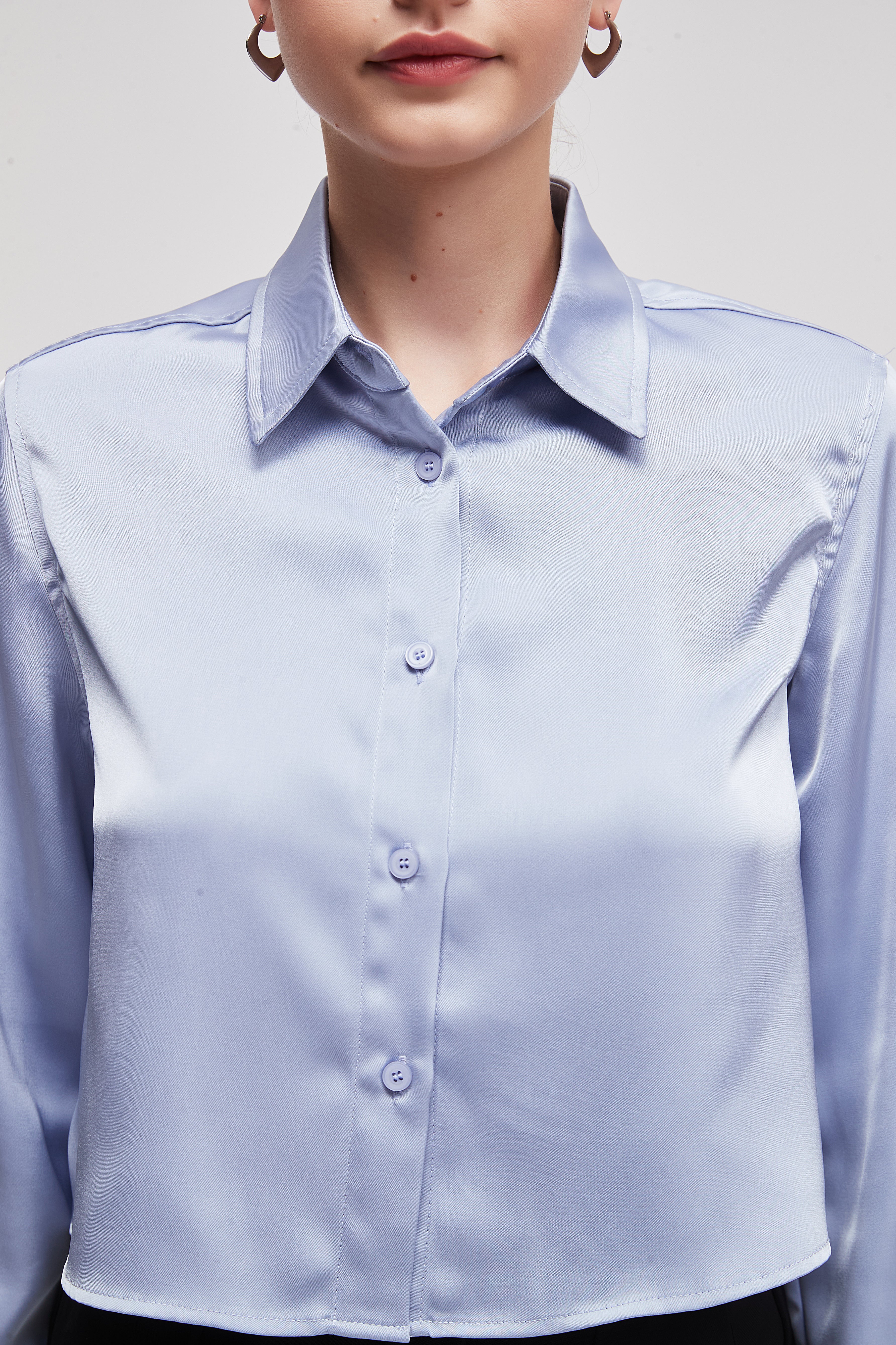 بلوزة بتصميم قميص بأكمام طويلة وياقة قميص
