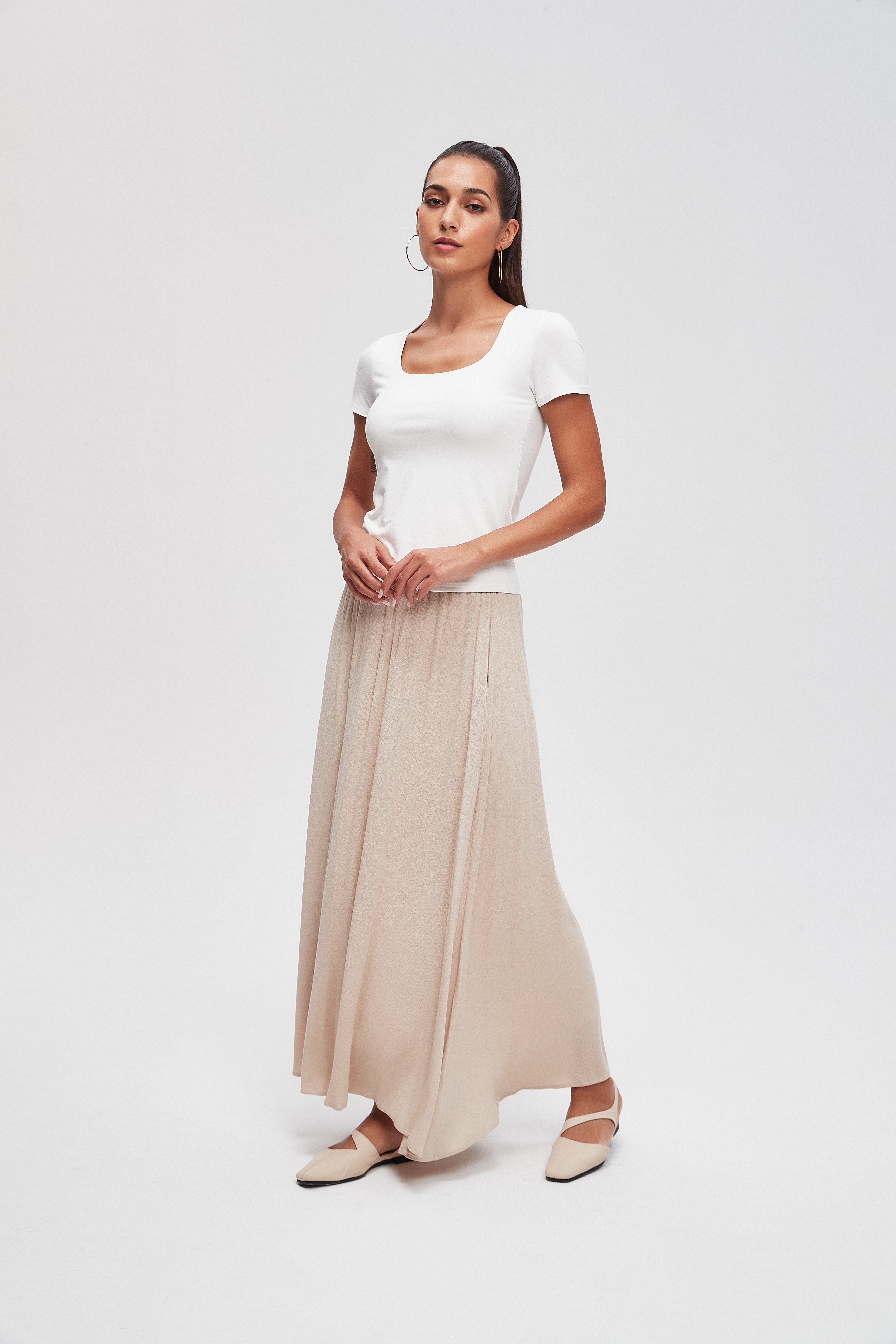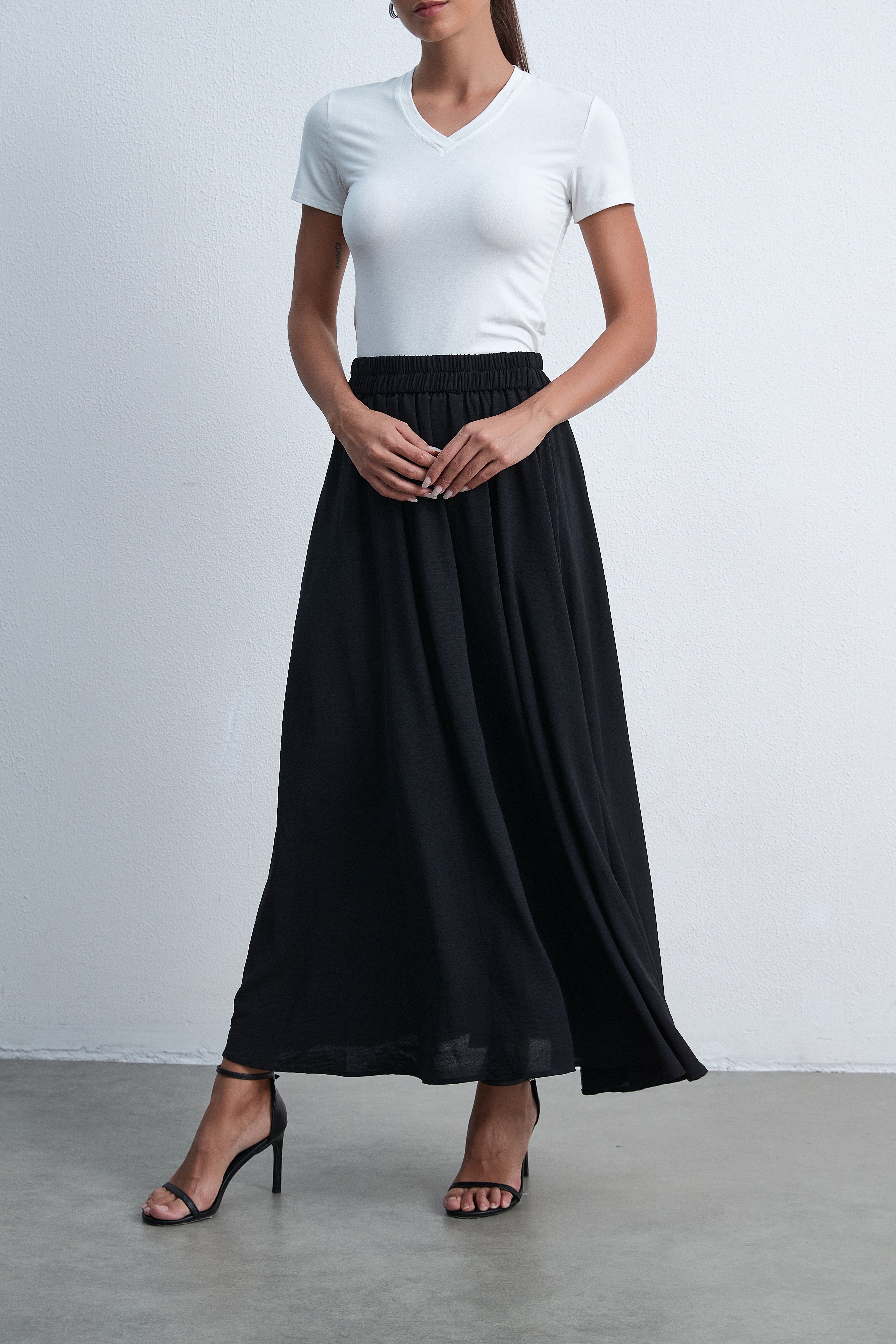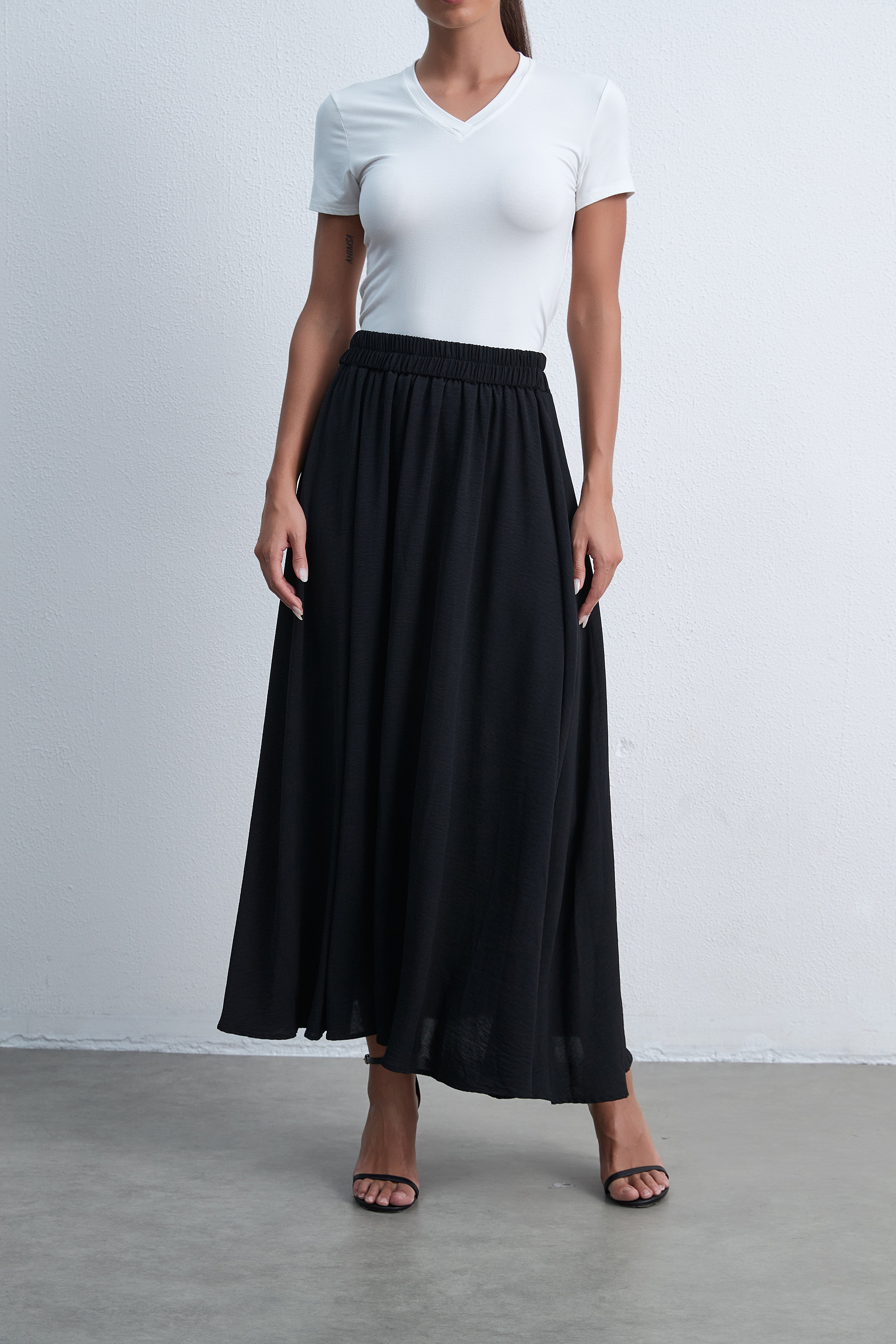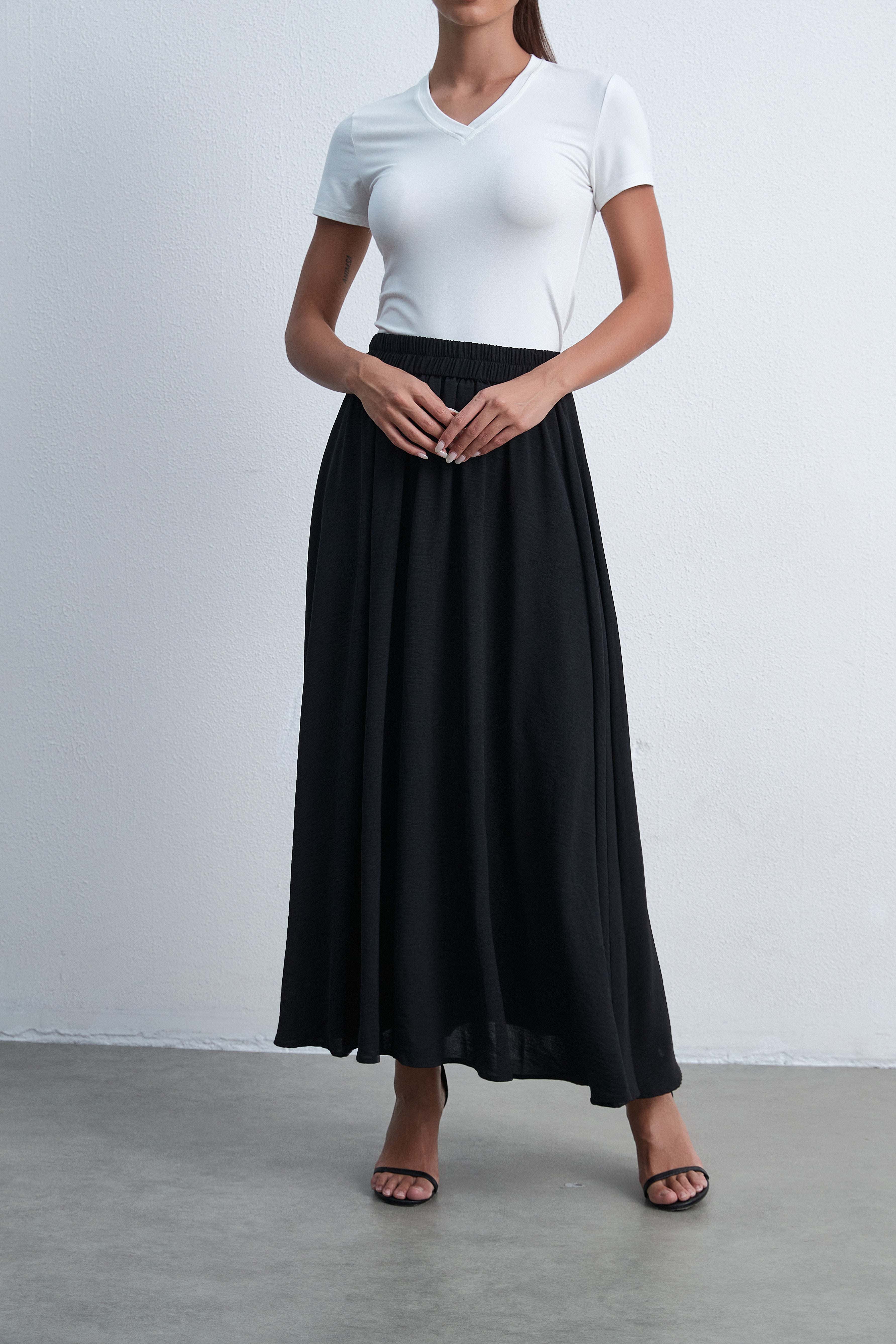 تضفي "تنورة سادة طويلة بقصة واسعة" لمسة من الأناقة الكلاسيكية على إطلالتك اليومية. تتميز هذه التنورة بتصميمها البسيط والواسع، ما يجعلها الخيار المثالي للراحة والموضة في آن واحد. يمكن تنسيقها بسهولة مع مختلف أنواع البلوزات والأحذية، مما يتيح لكِ إمكانية الابتكار في مظهرك. تأتي هذه التنورة بألوان متعددة تناسب جميع الأذواق. لا تفوتي فرصة الحصول عليها، وكوني دائمًا على الموضة. اطلبِ الآن عبر الإنترنت لتكوني من أوائل من يمتلكن هذا التصميم الرائع! رقم المنتج: lv0152s252bk