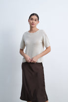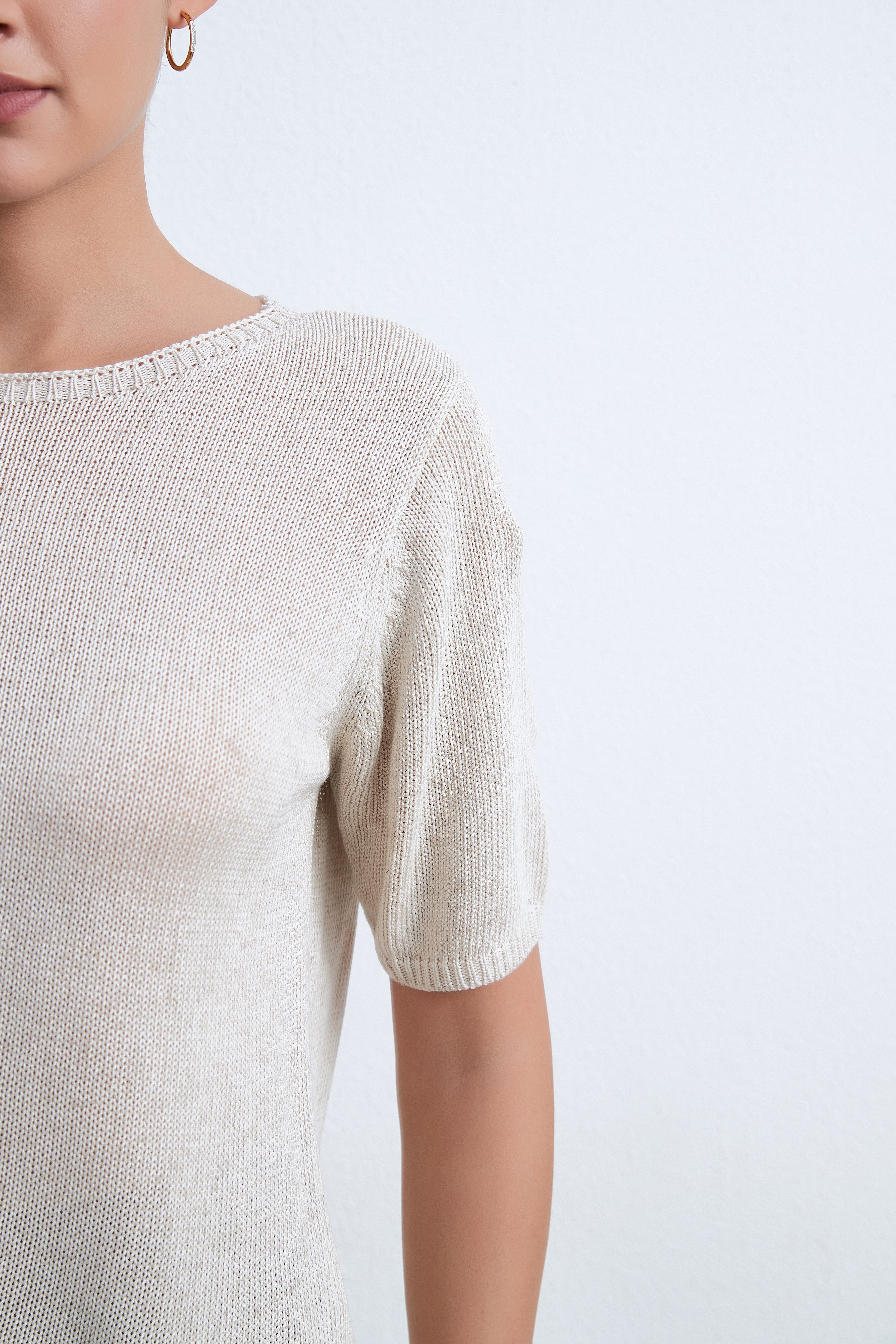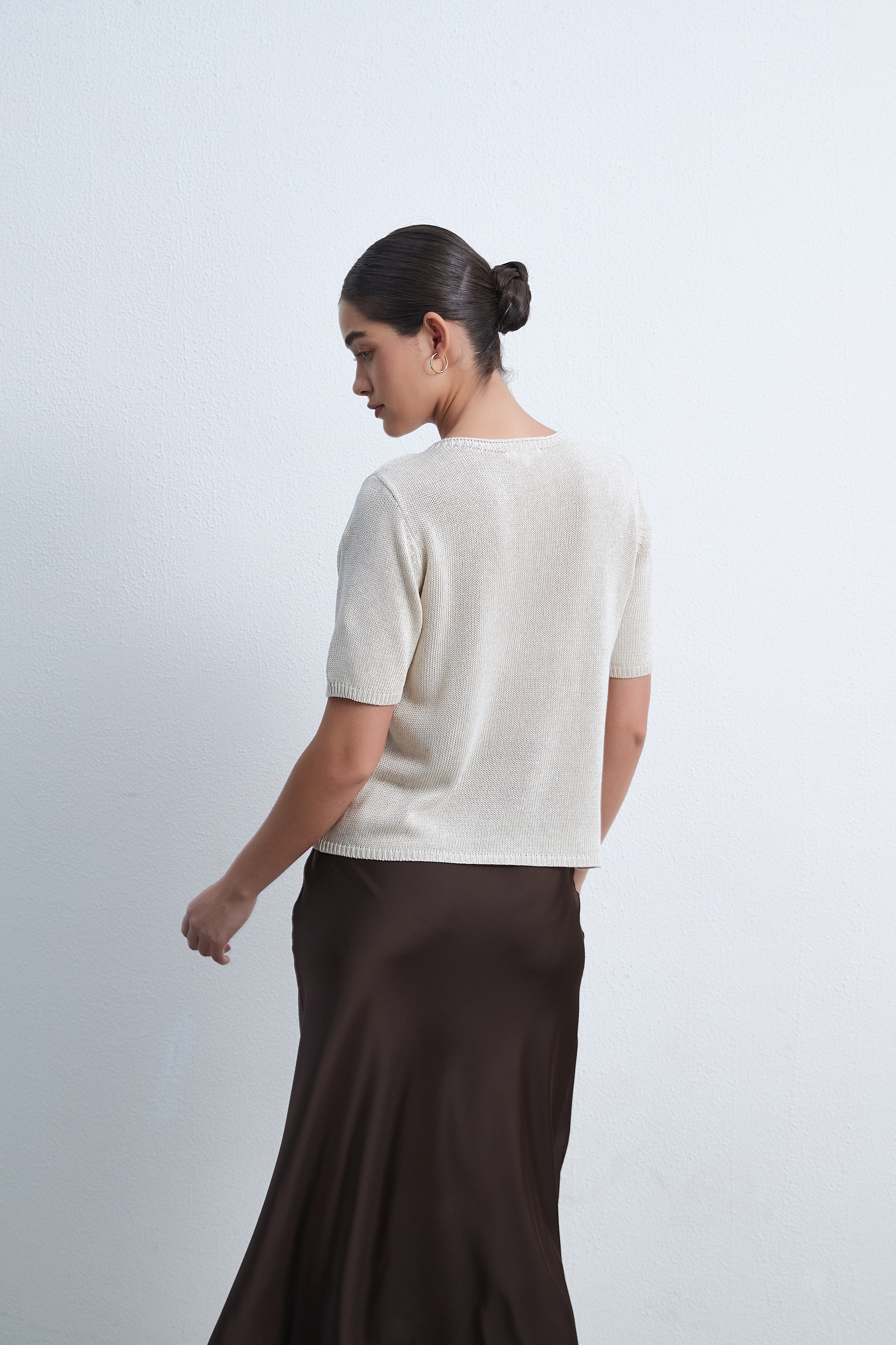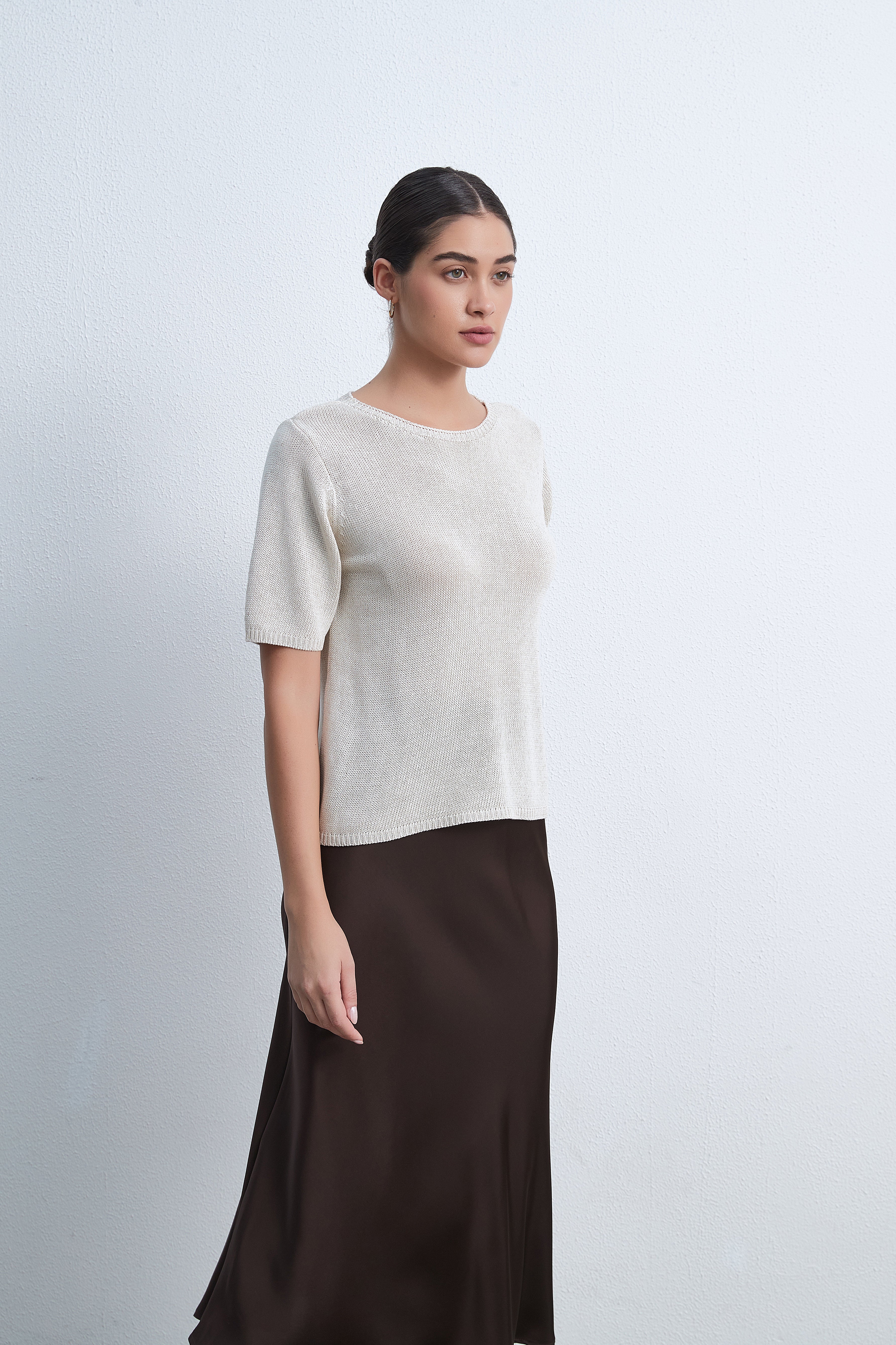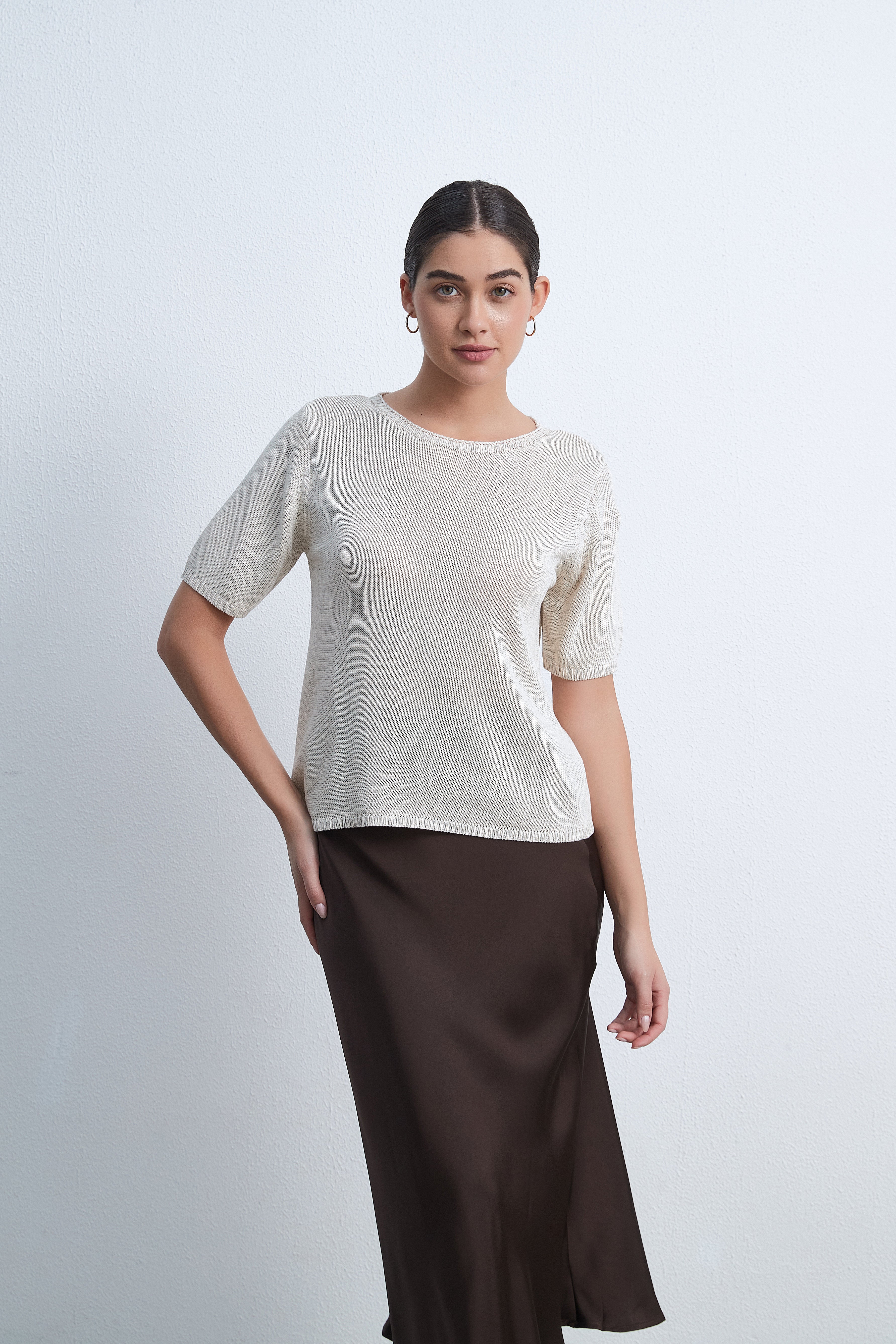 بلوزة بطول الخصر نصف كم سادة