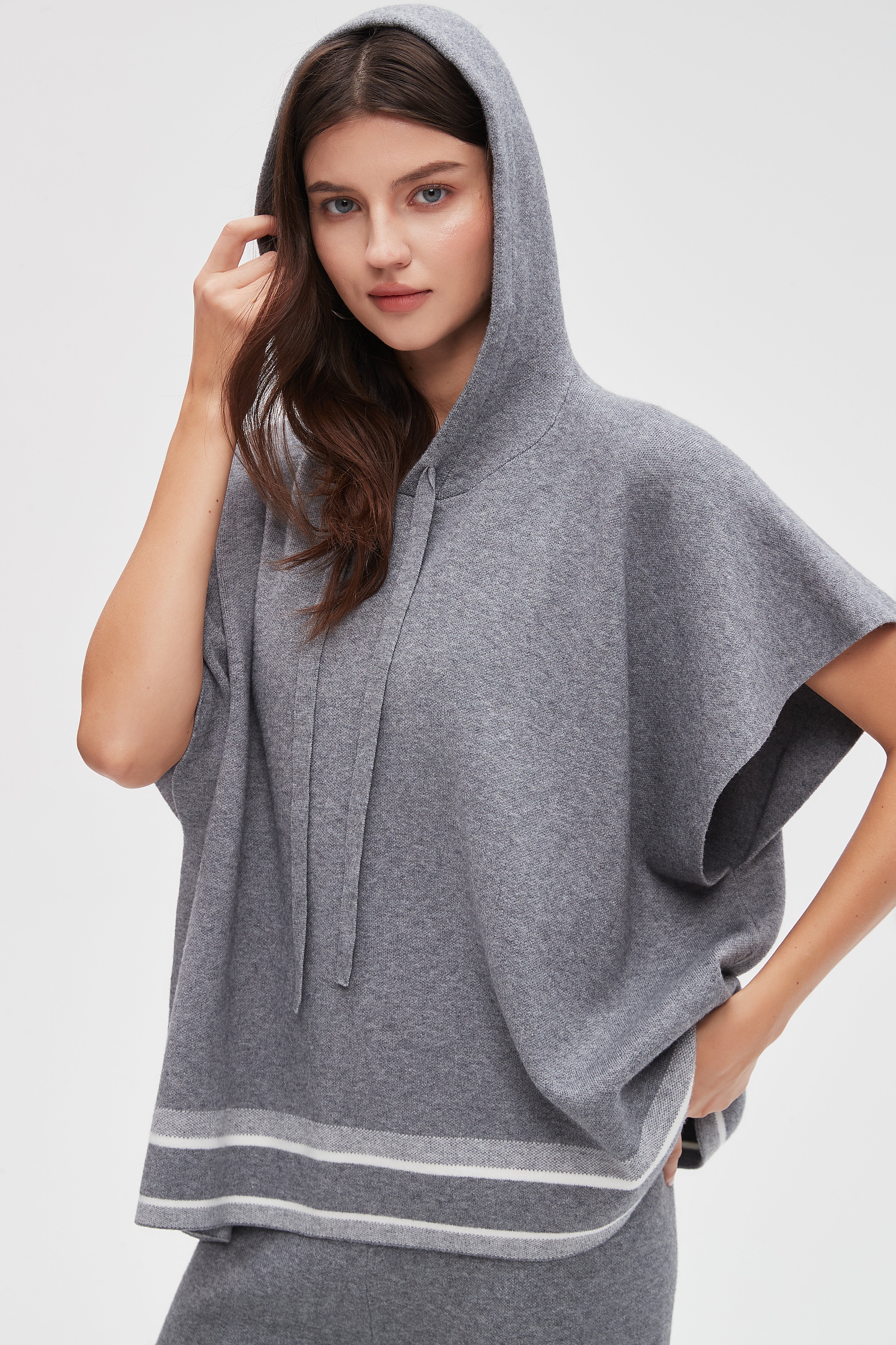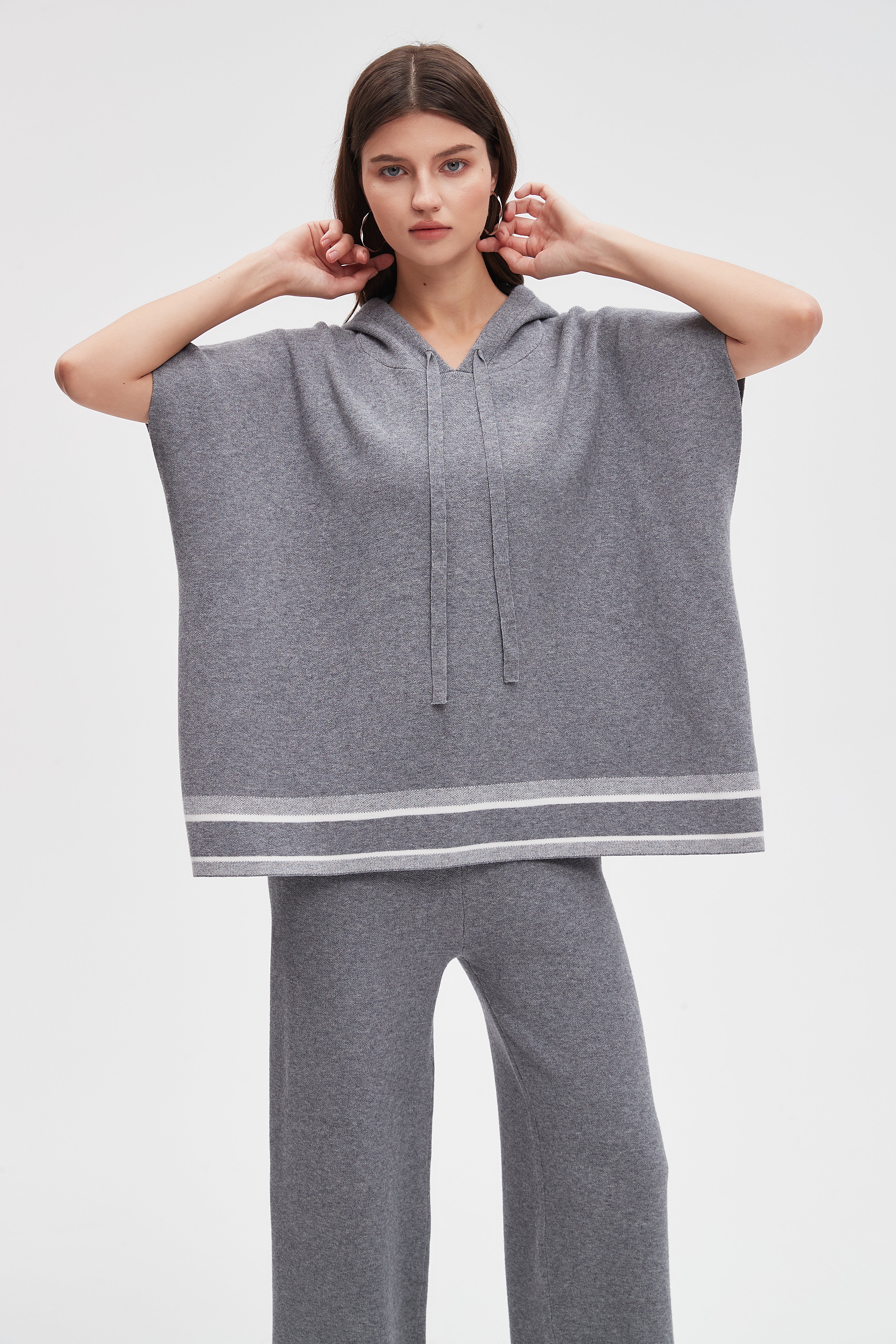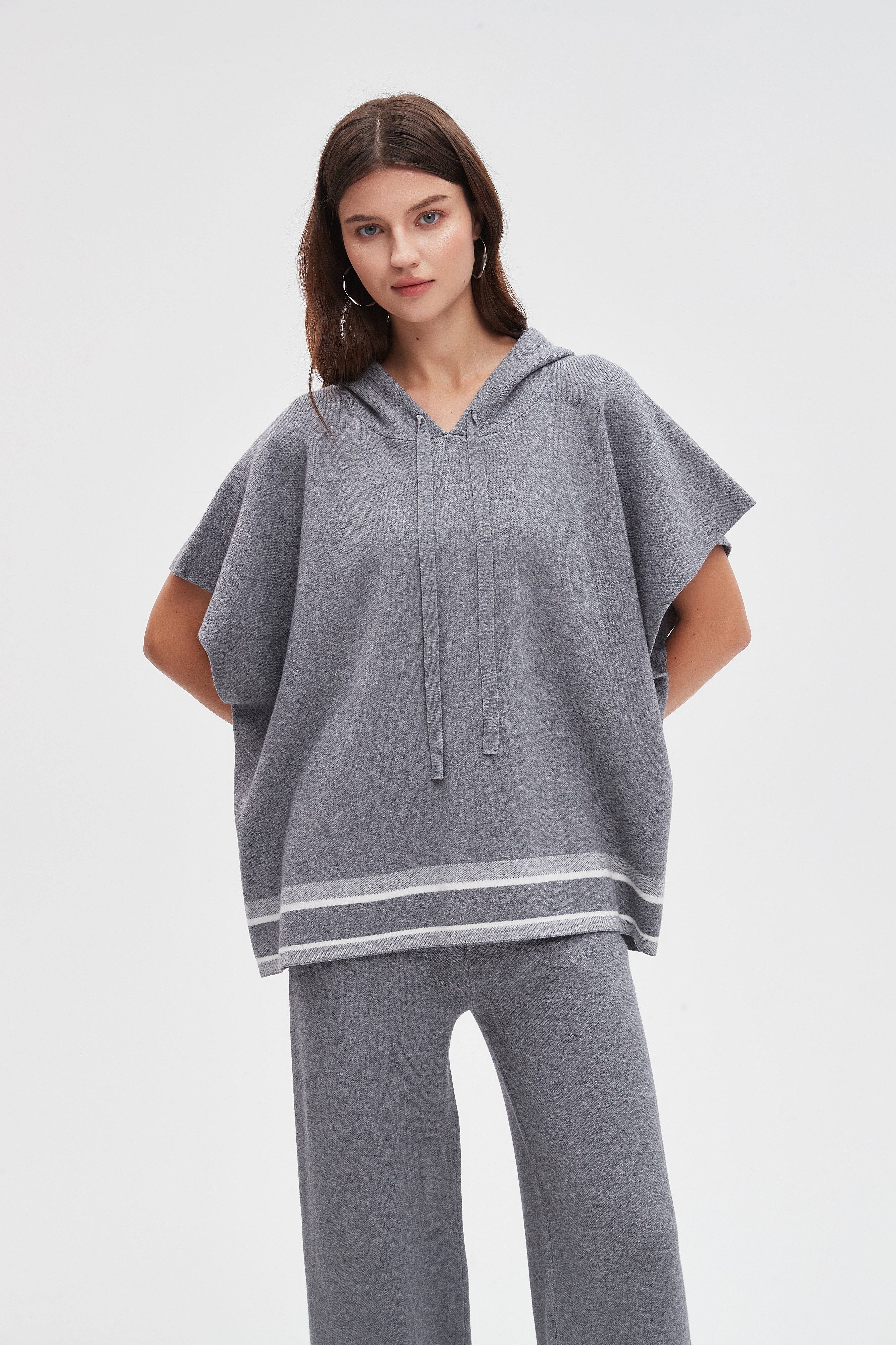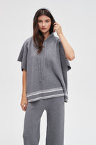 كنزة بكم قصير مخططة بالعرض من أسفل