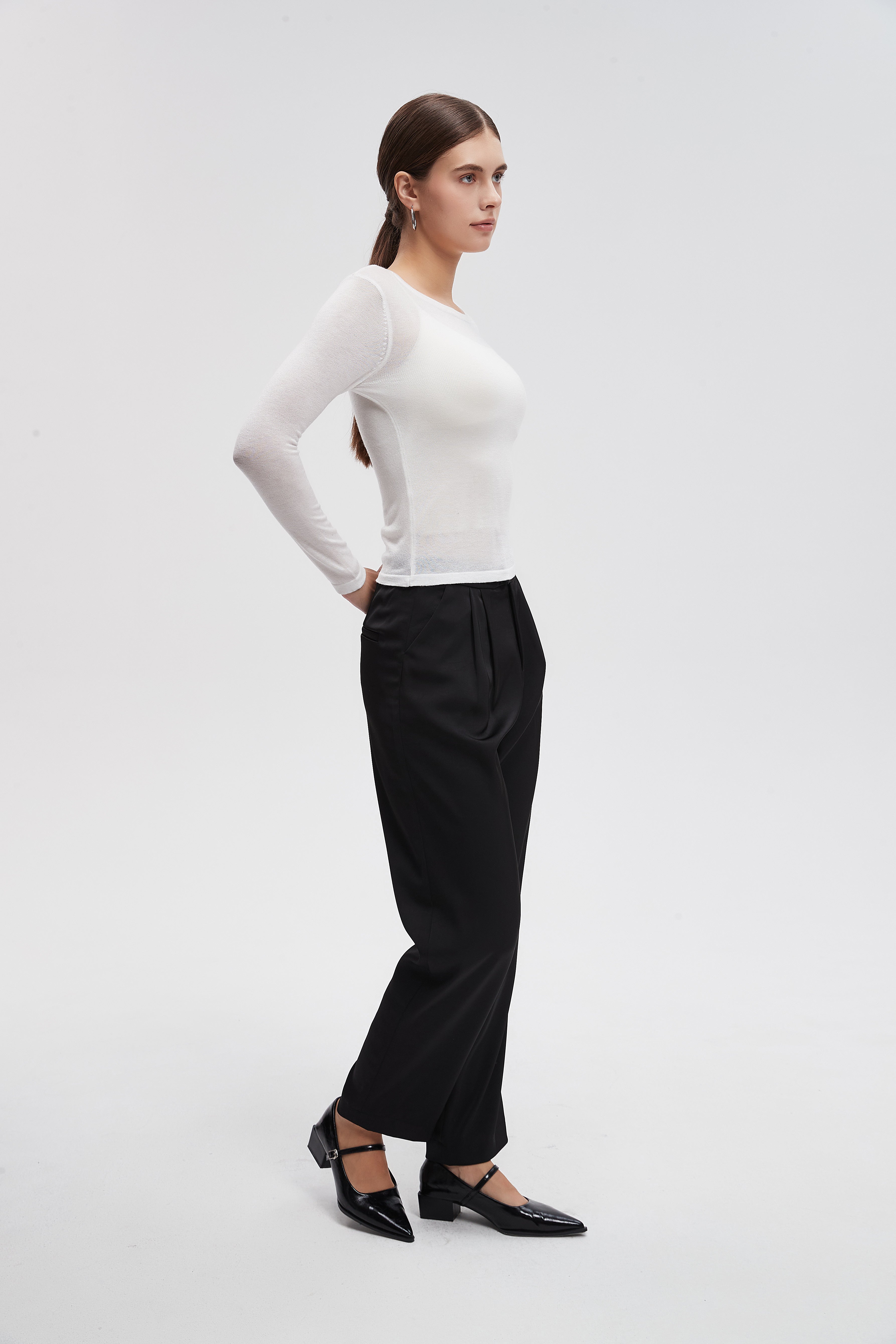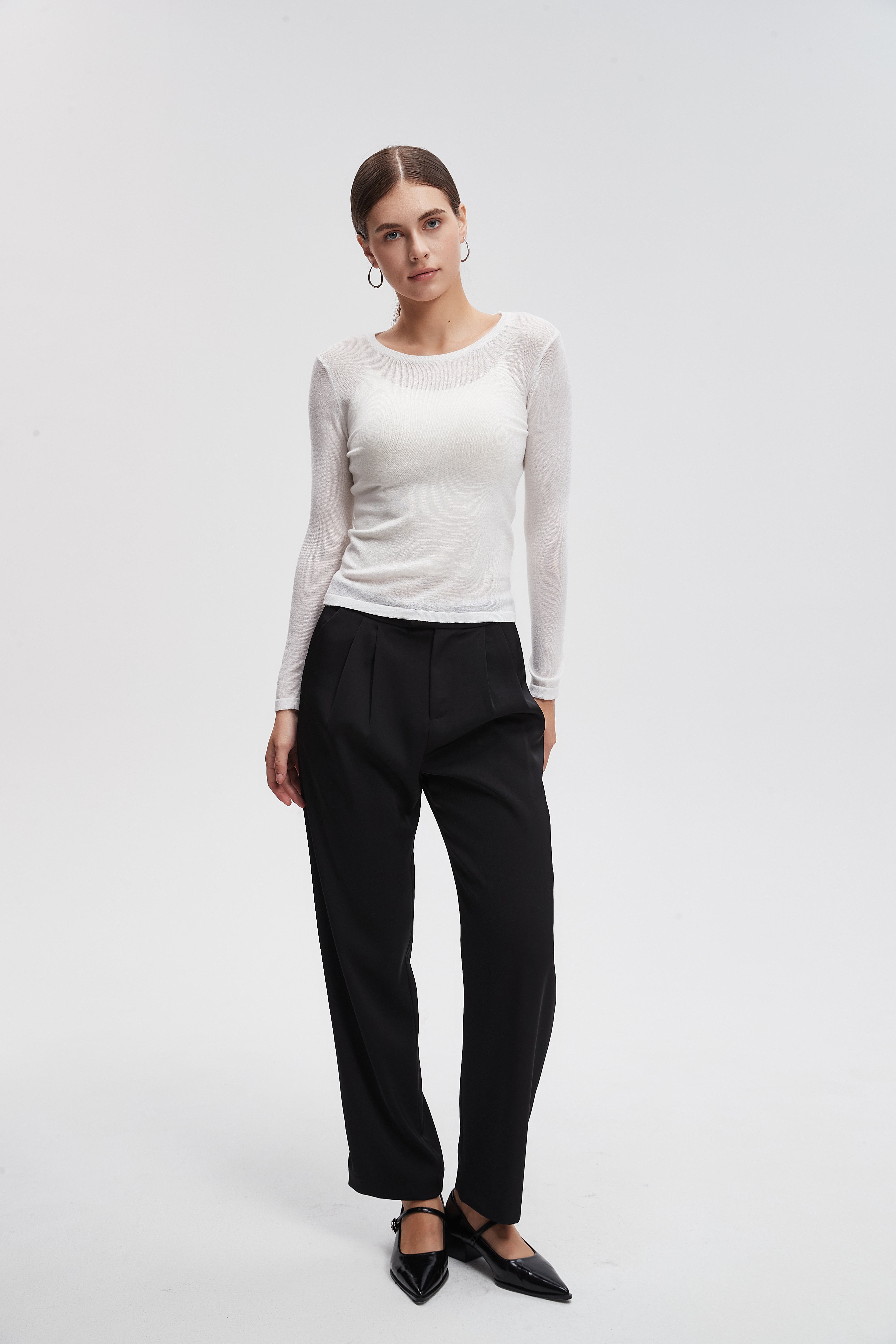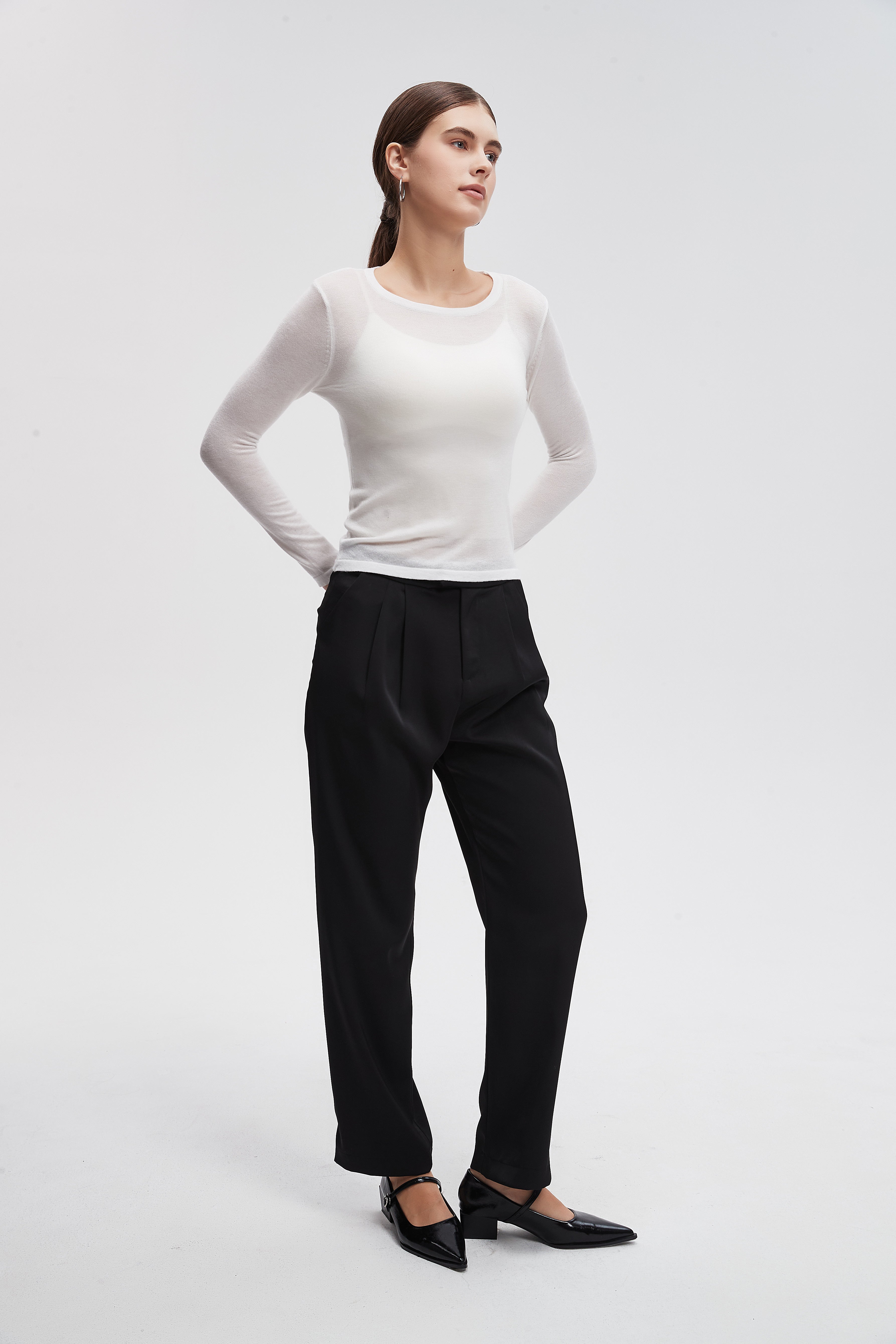 بنطلون كلاسيك سادة بكسرات وسحاب