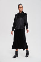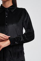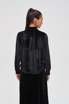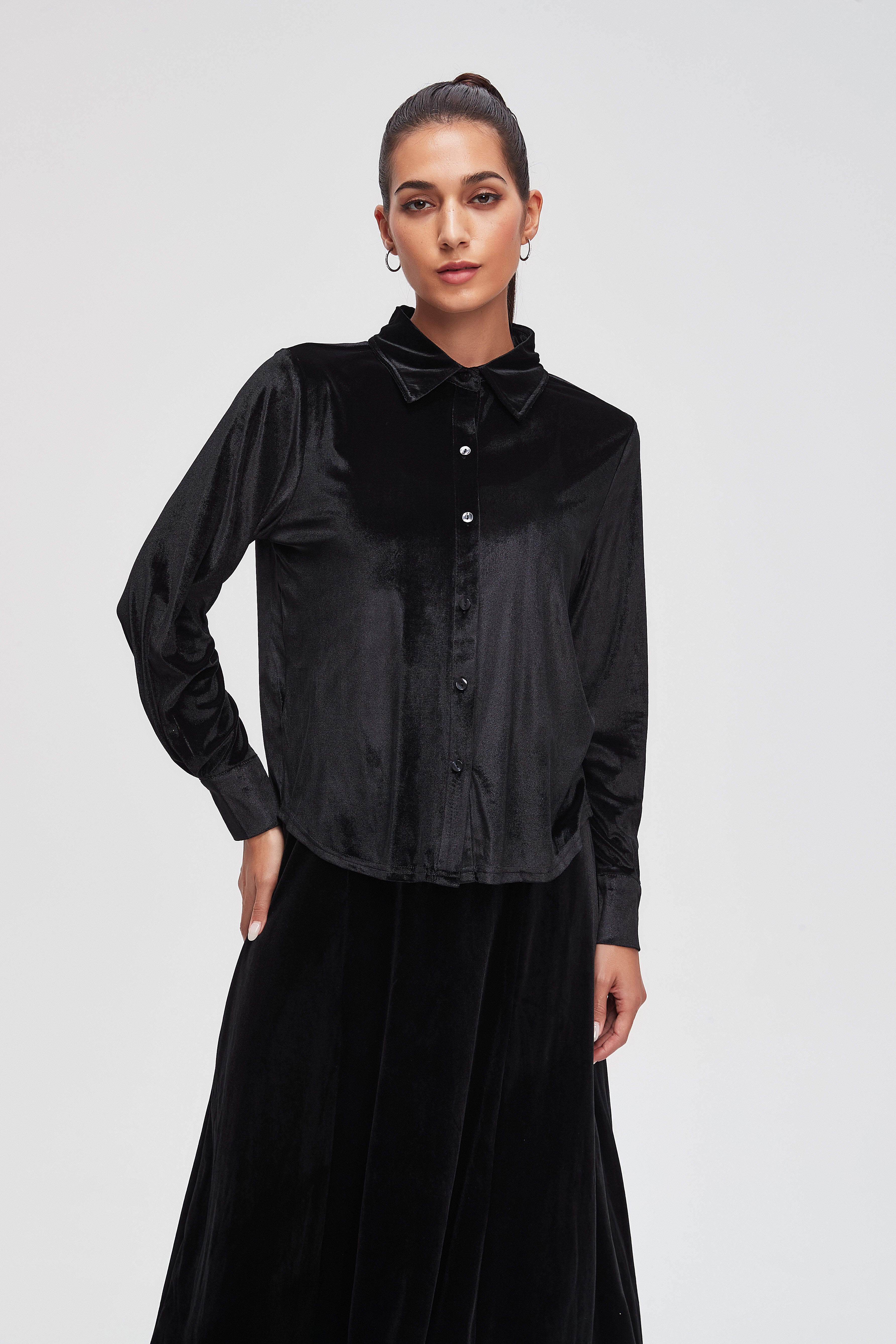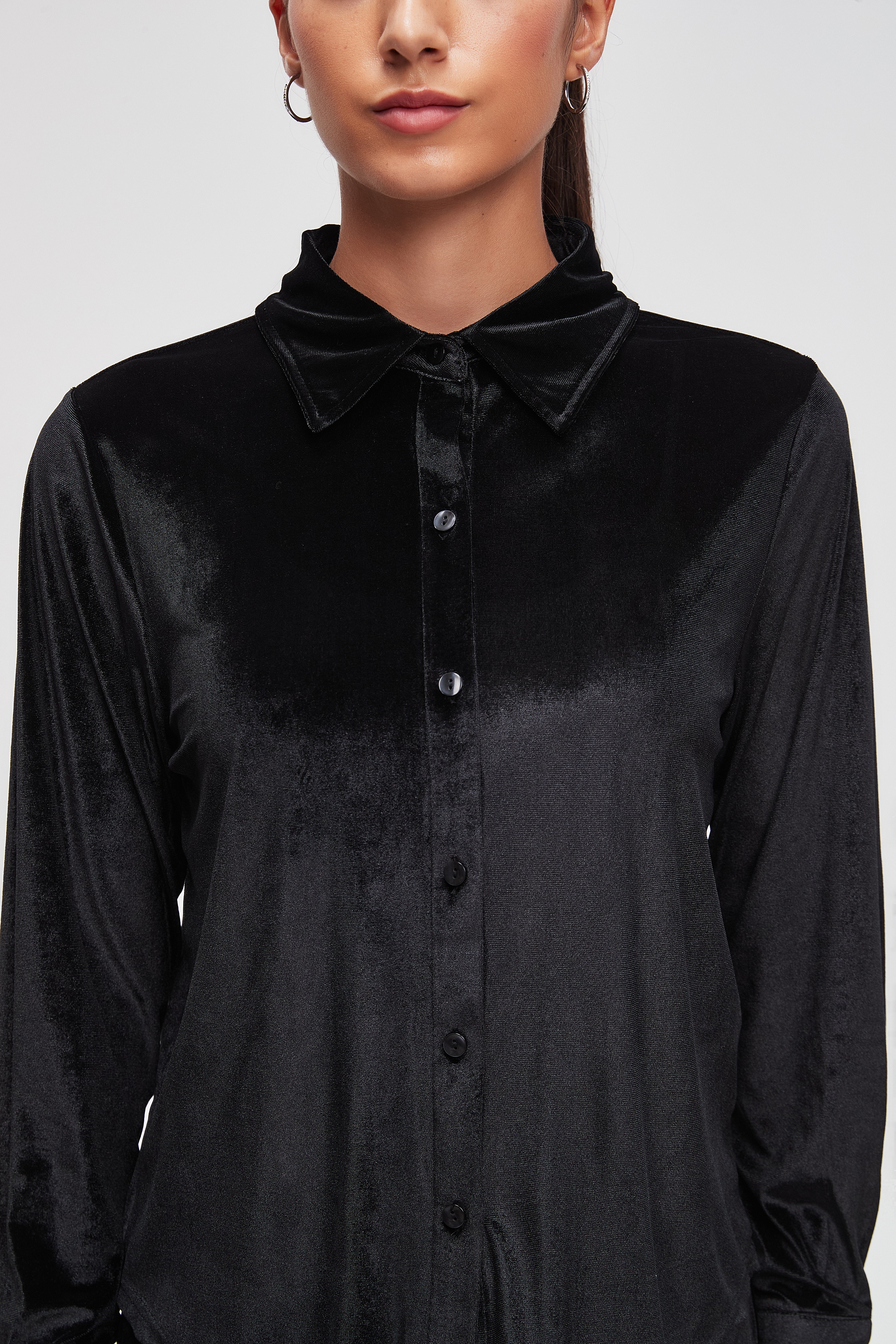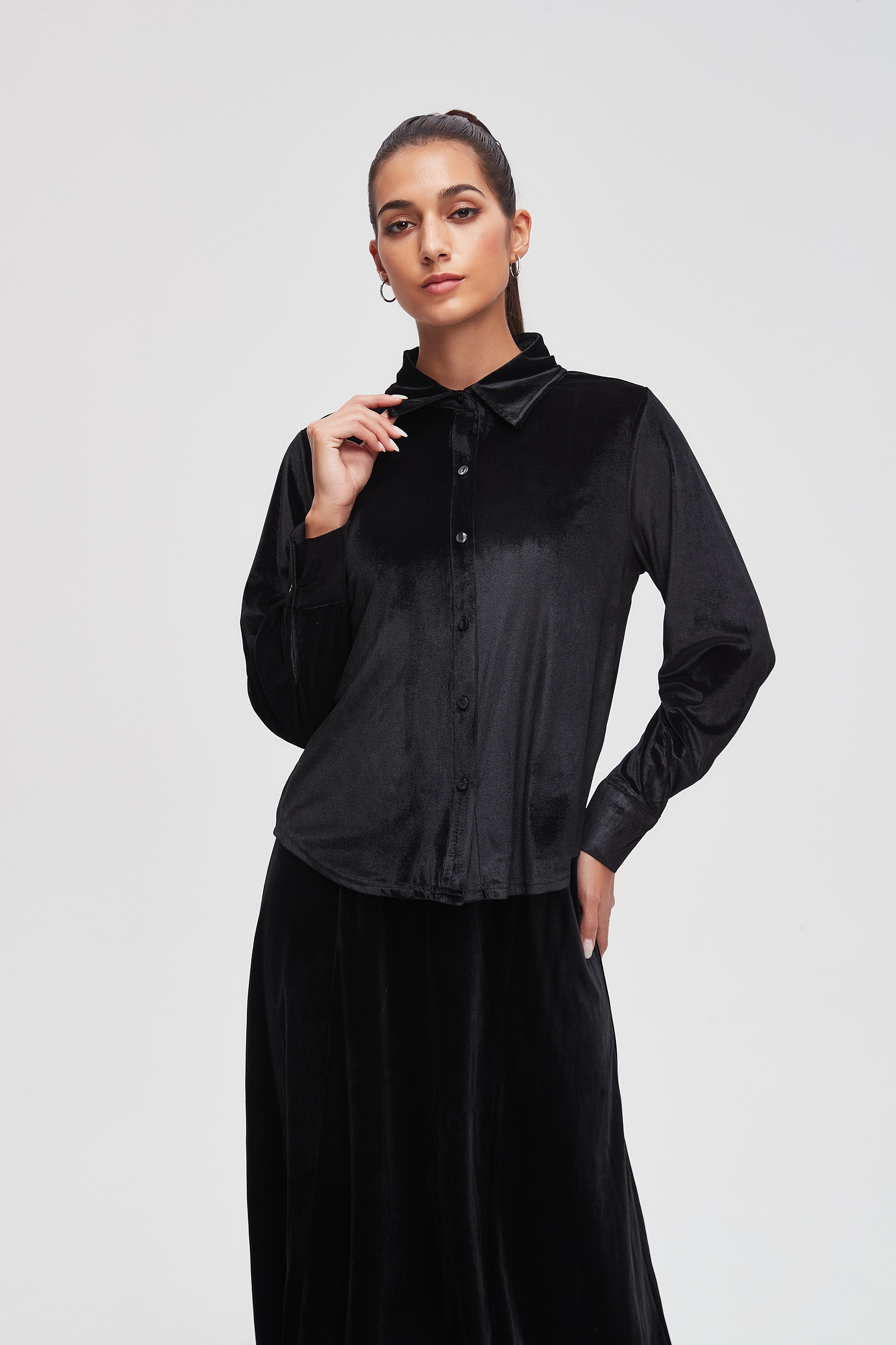 بلوزة سادة بكم طويل وياقة قميص