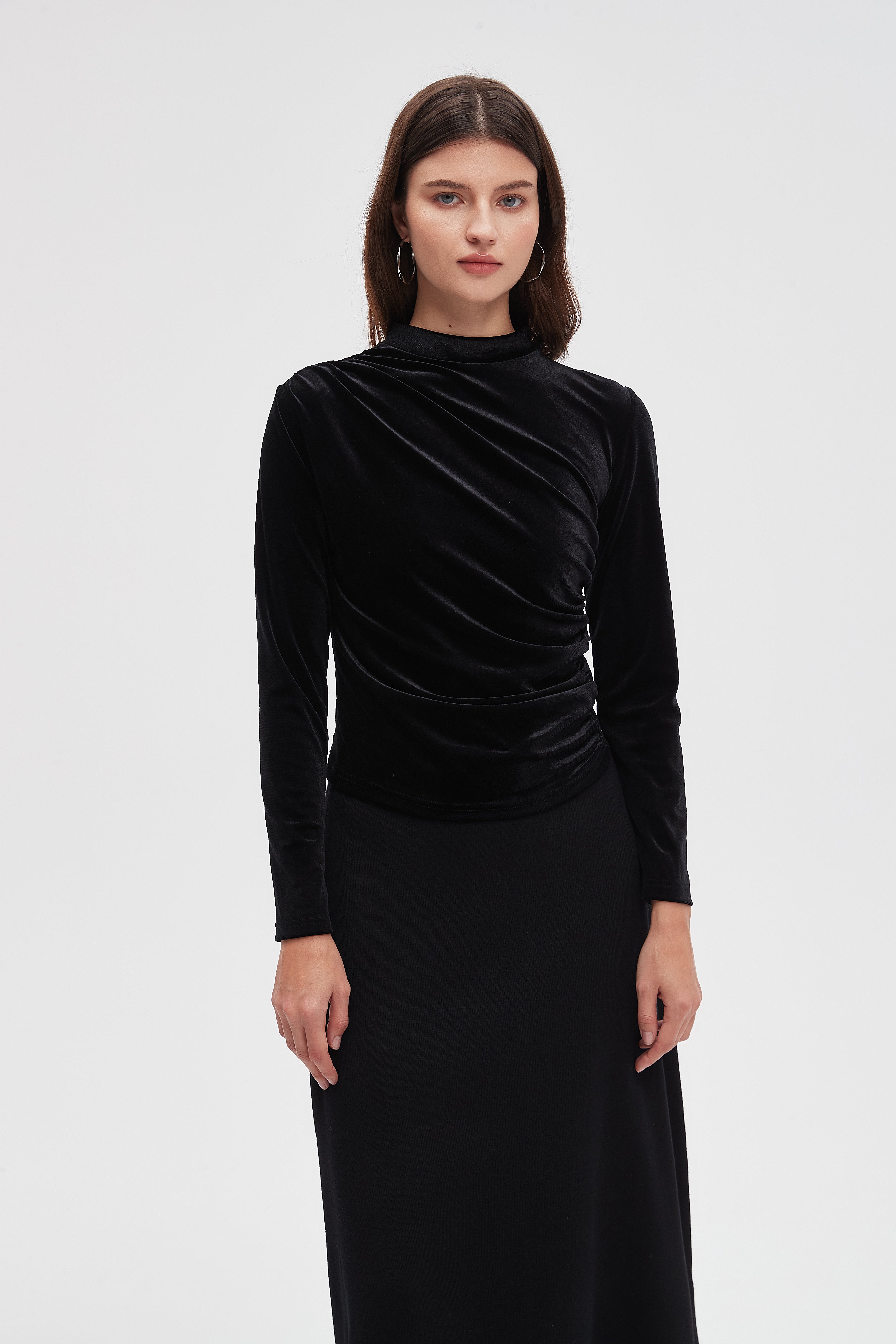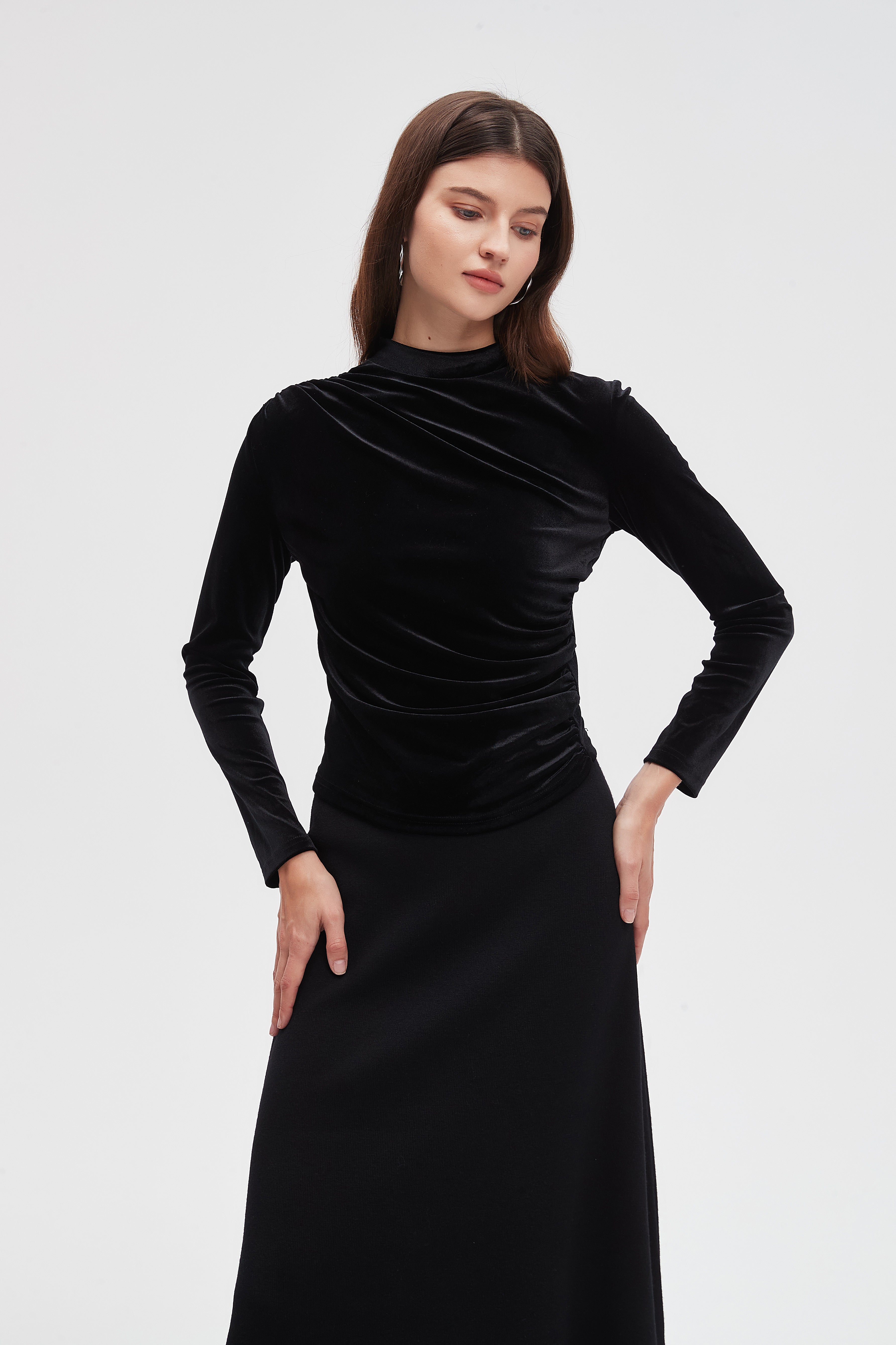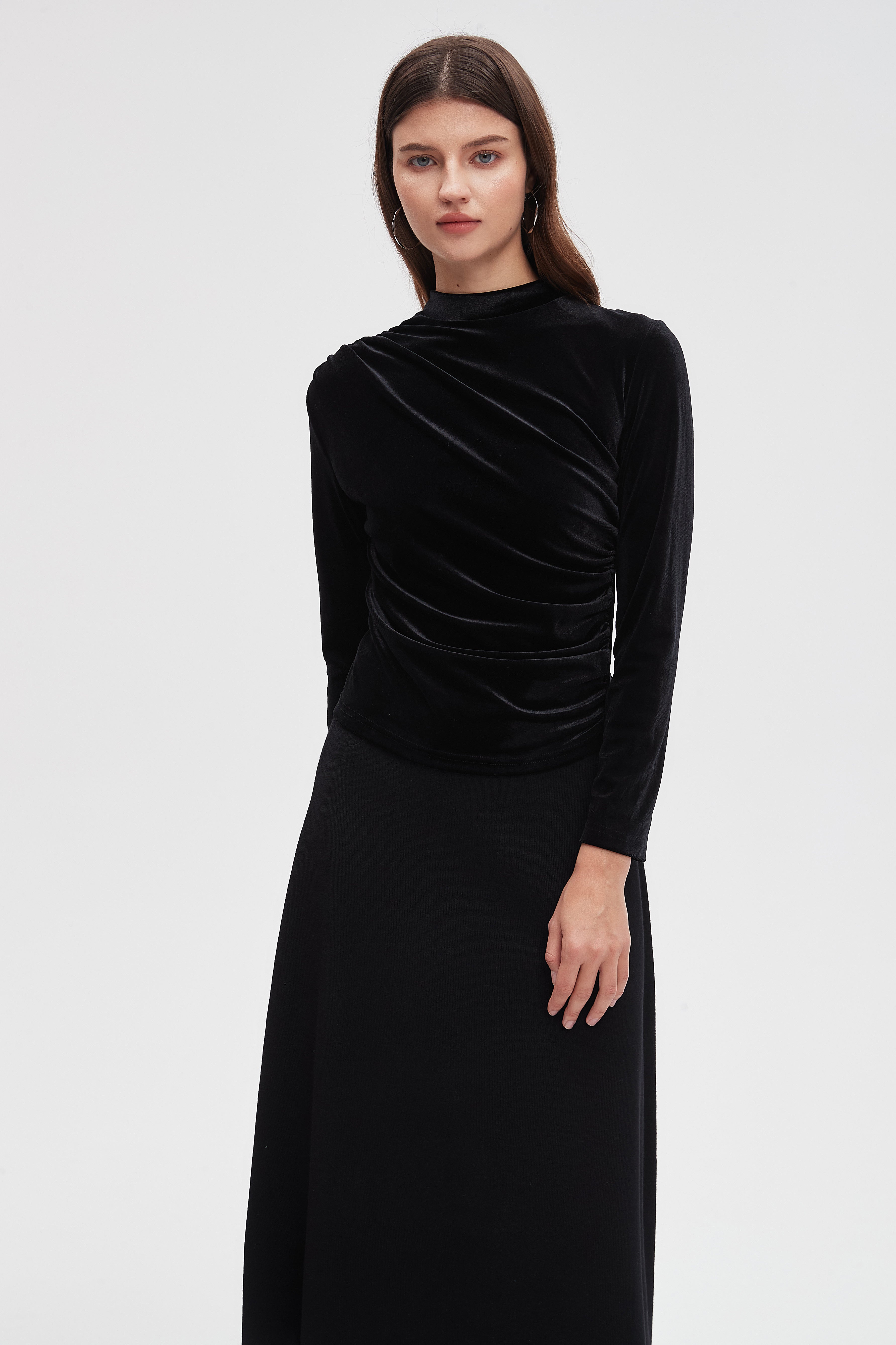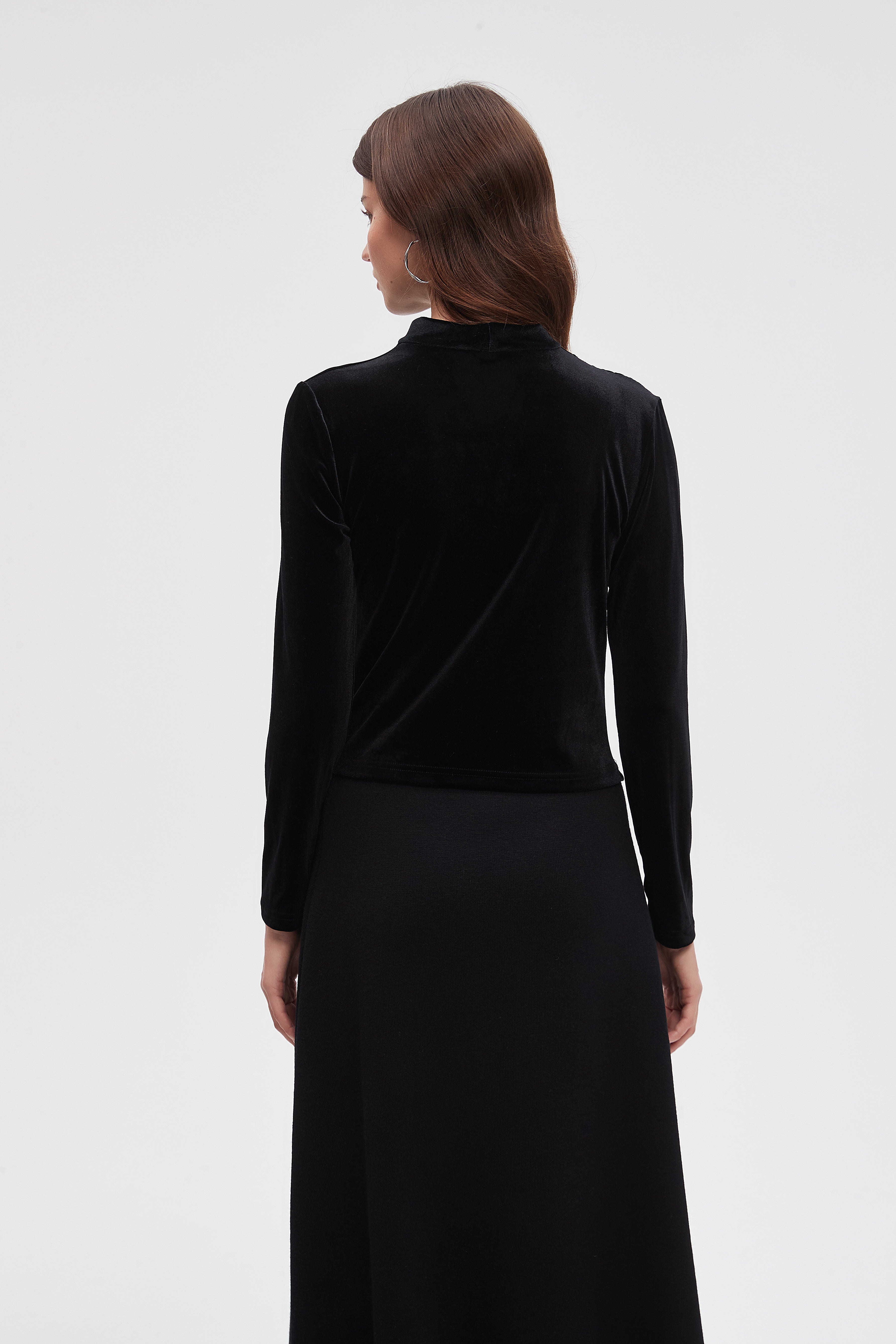 بلوزة بطول الخصر سادة بكم طويل ورقبة عالية