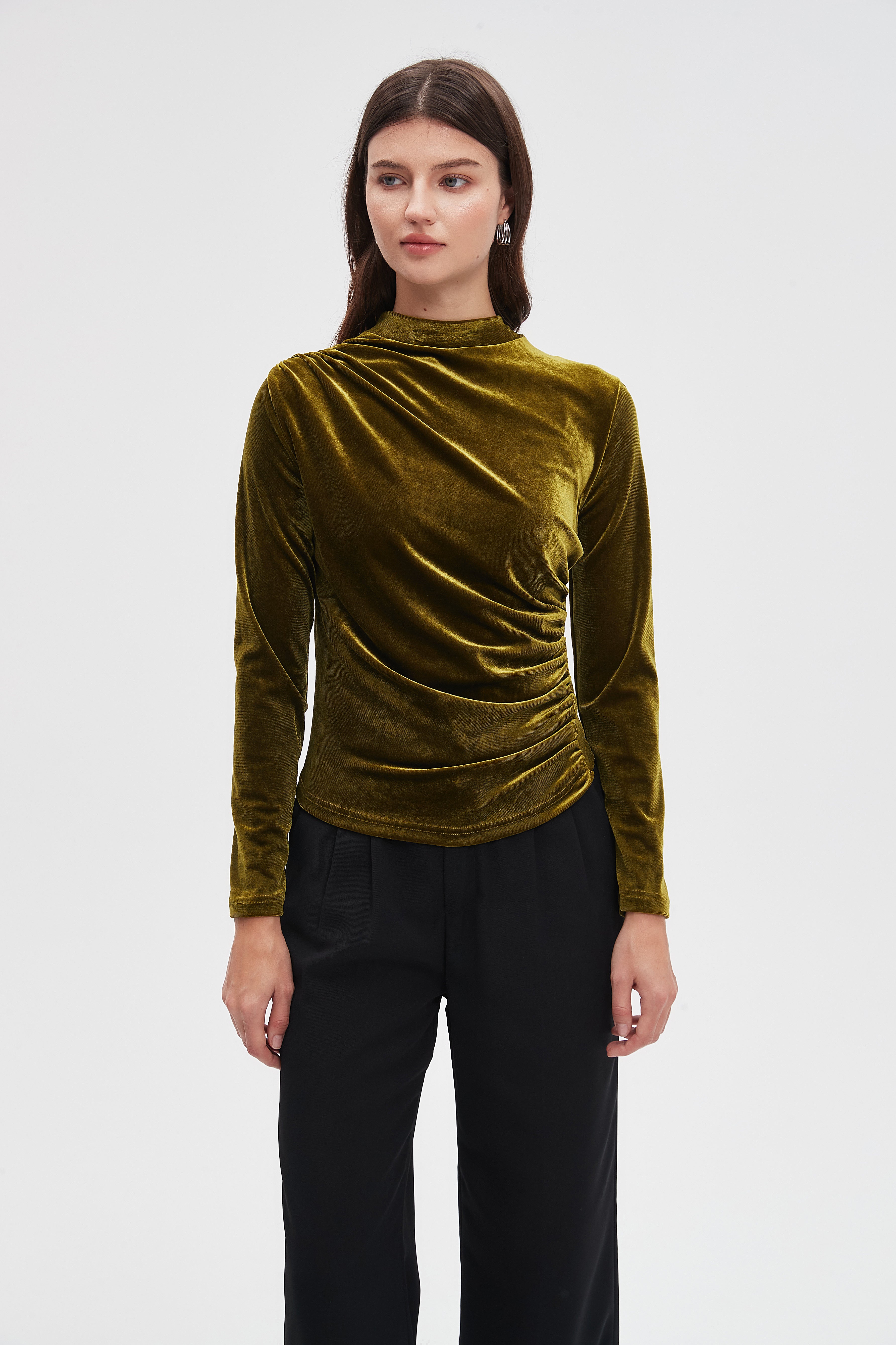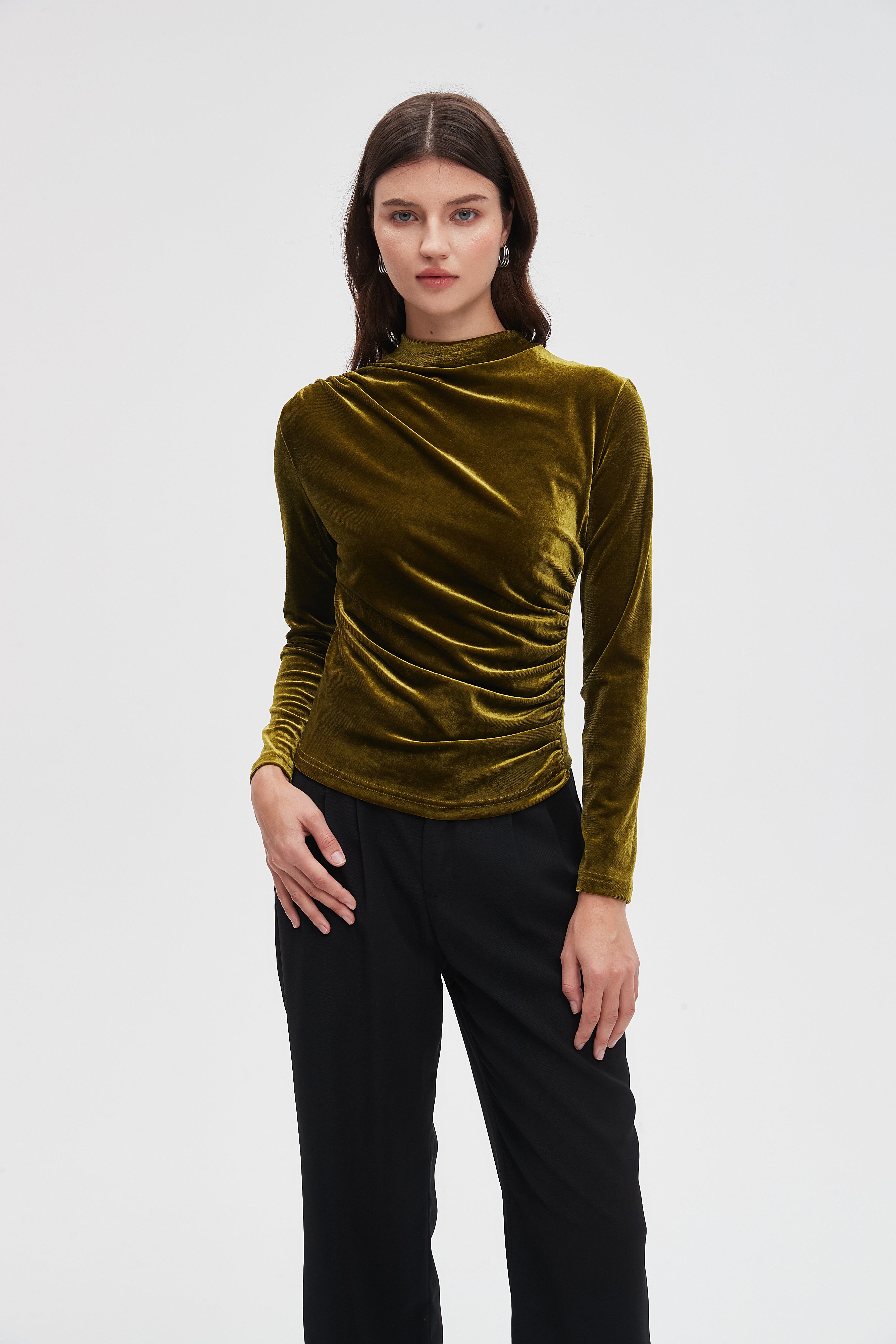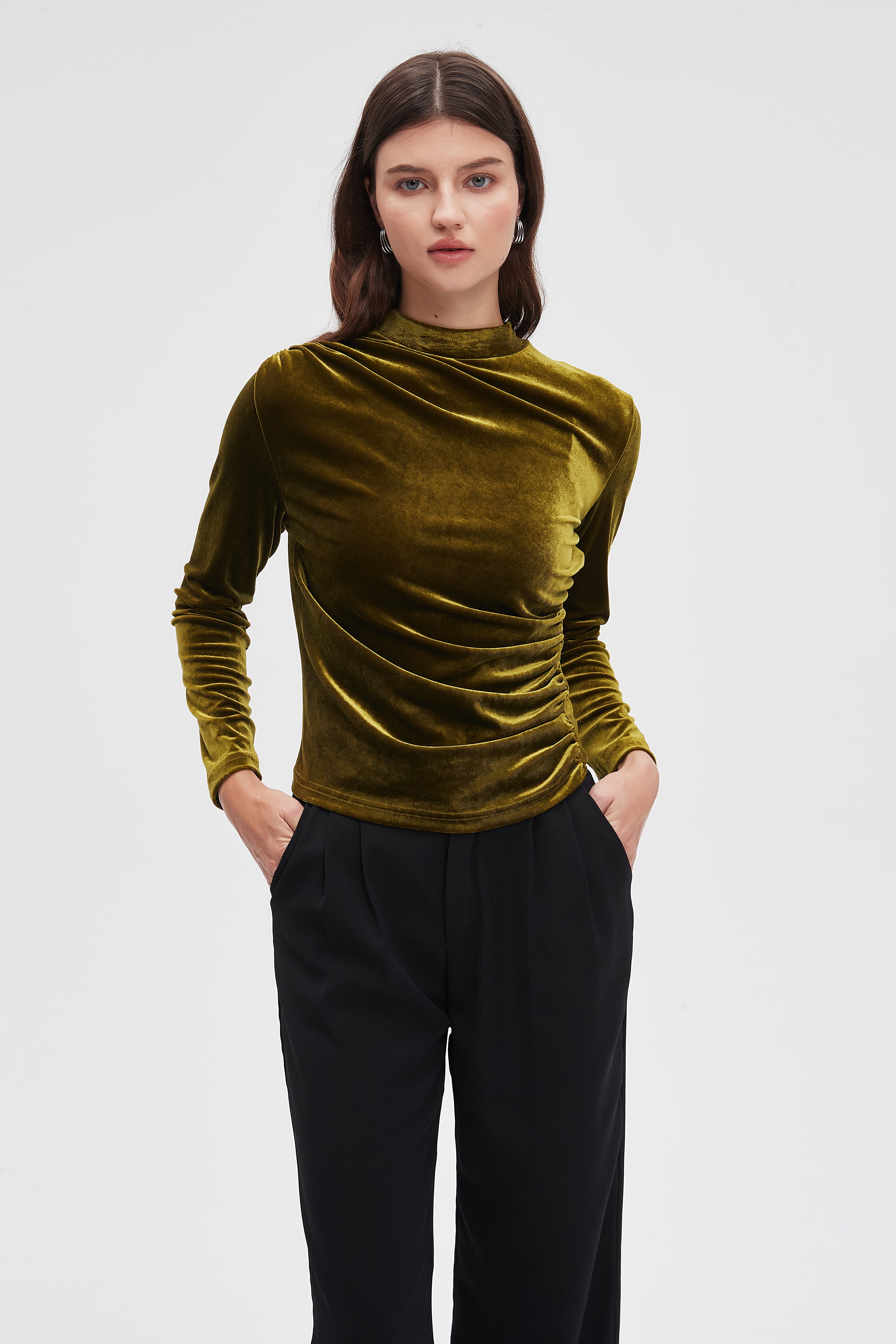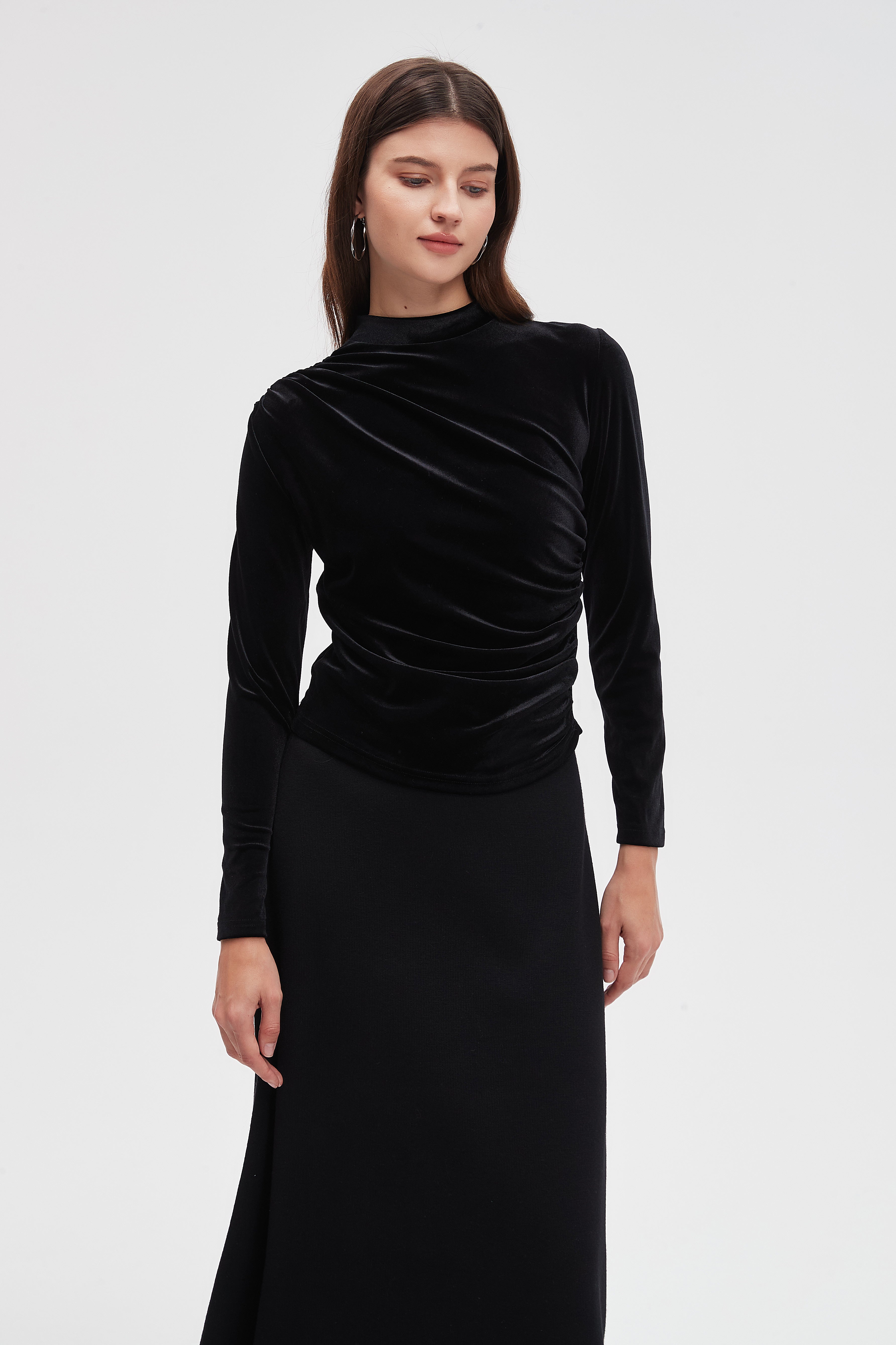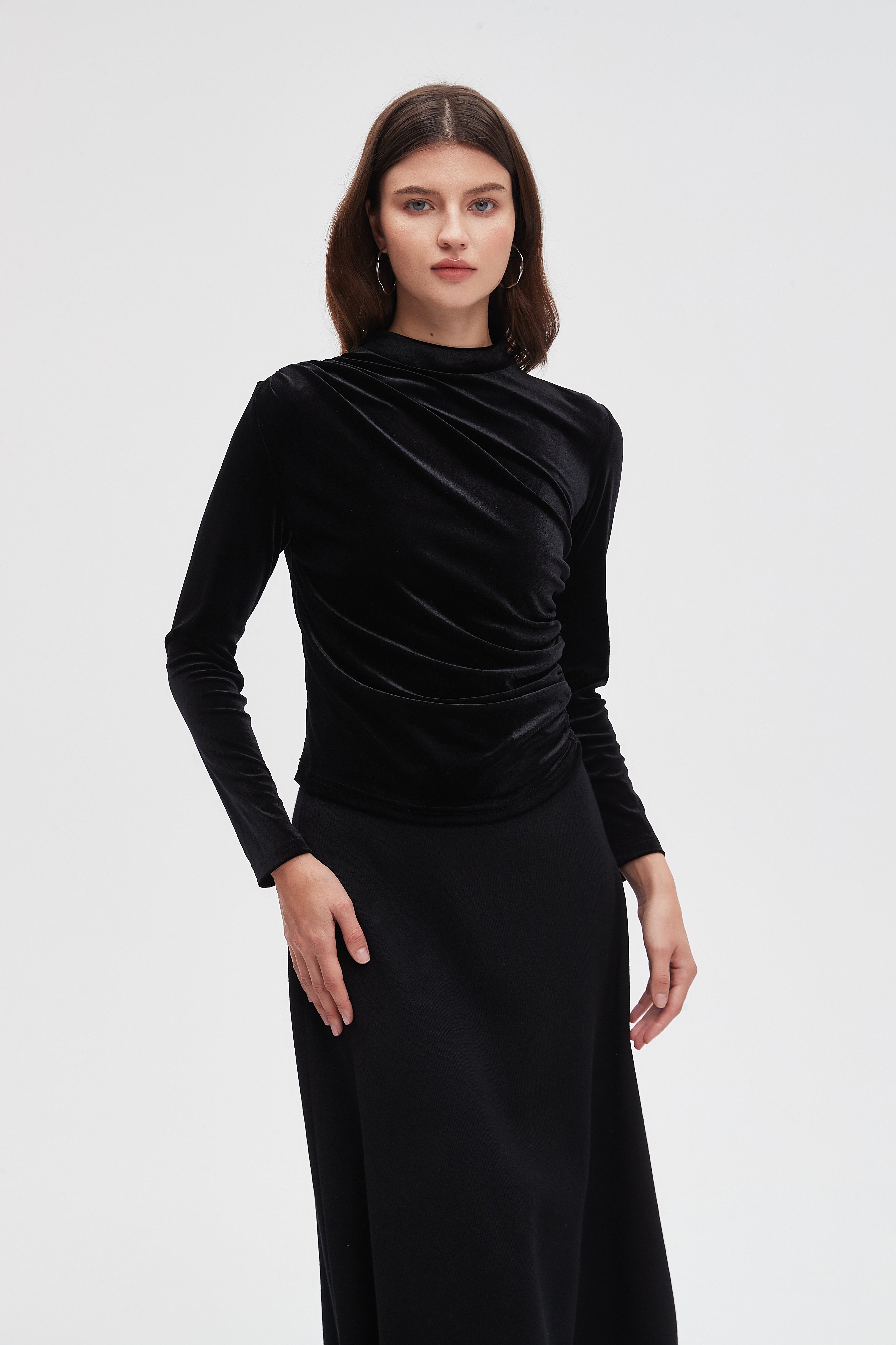 بلوزة بطول الخصر سادة بكم طويل ورقبة عالية