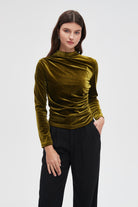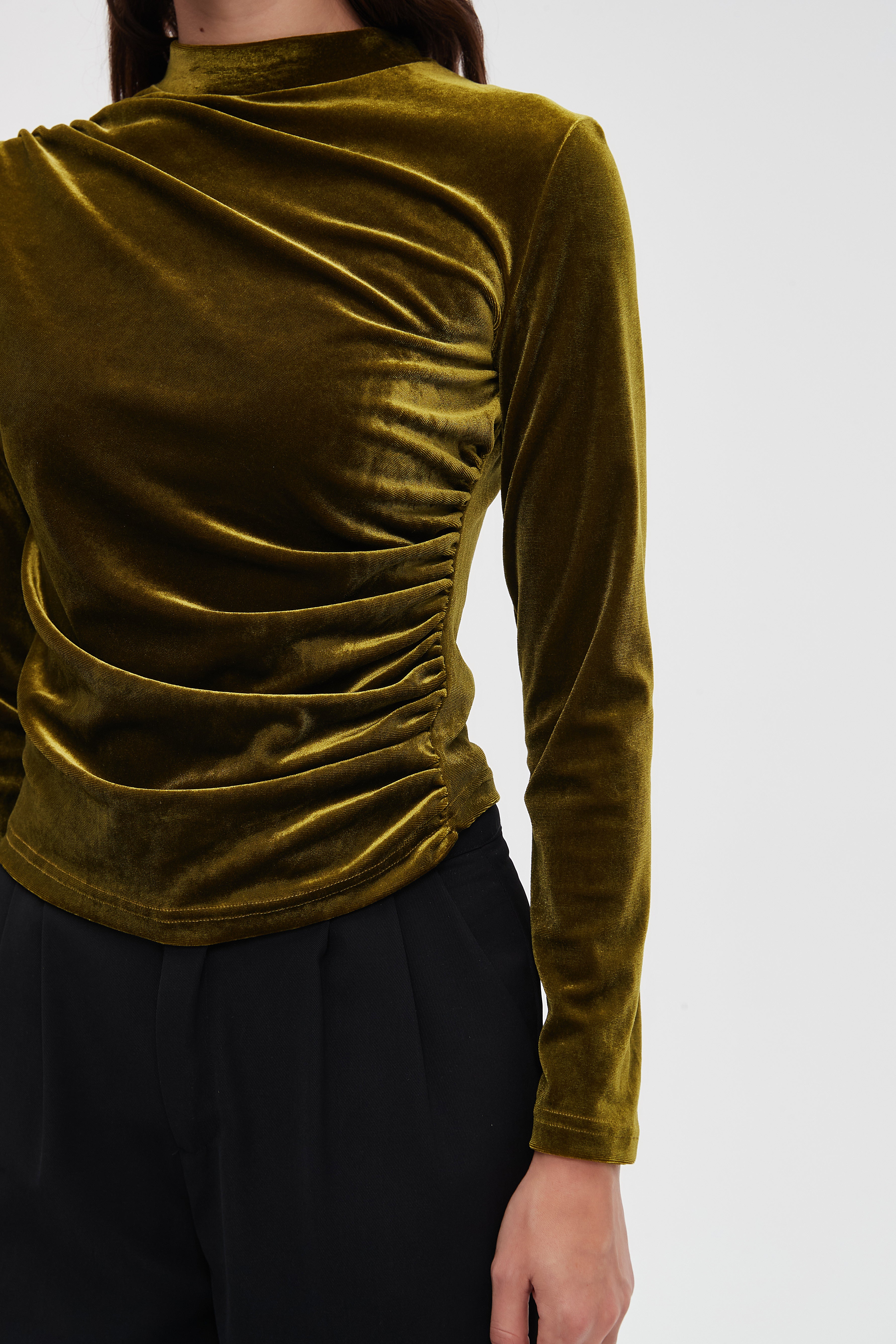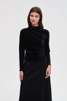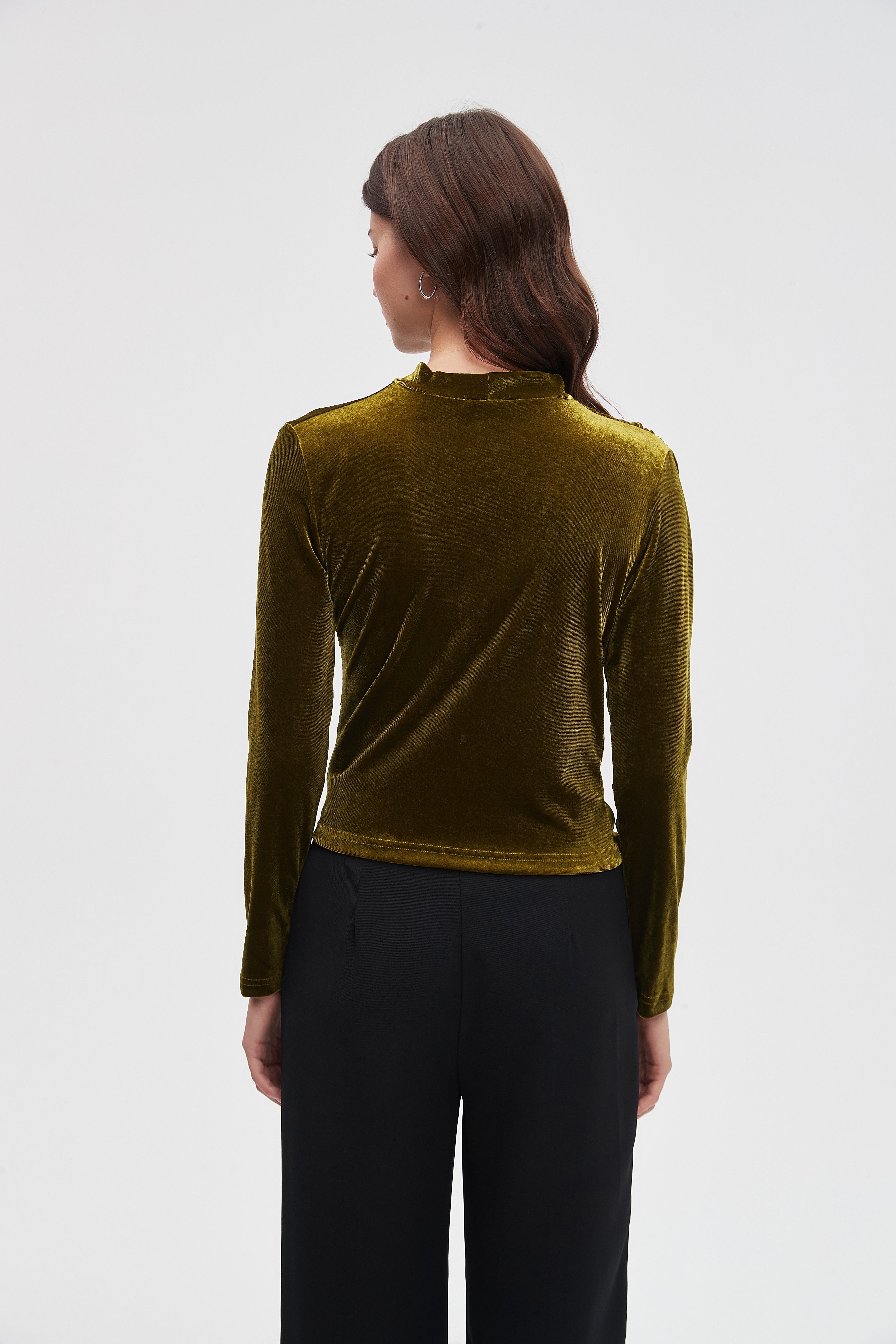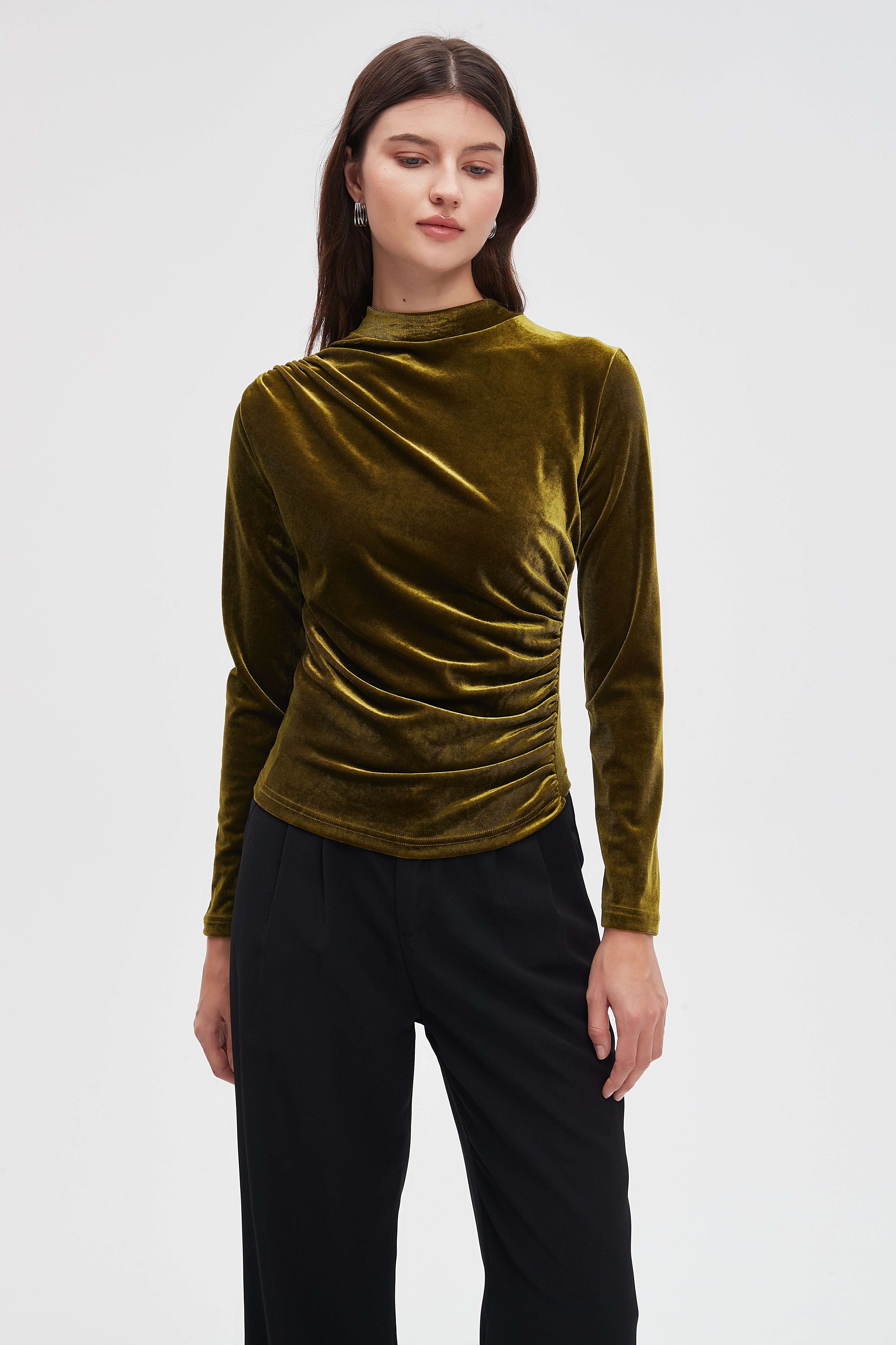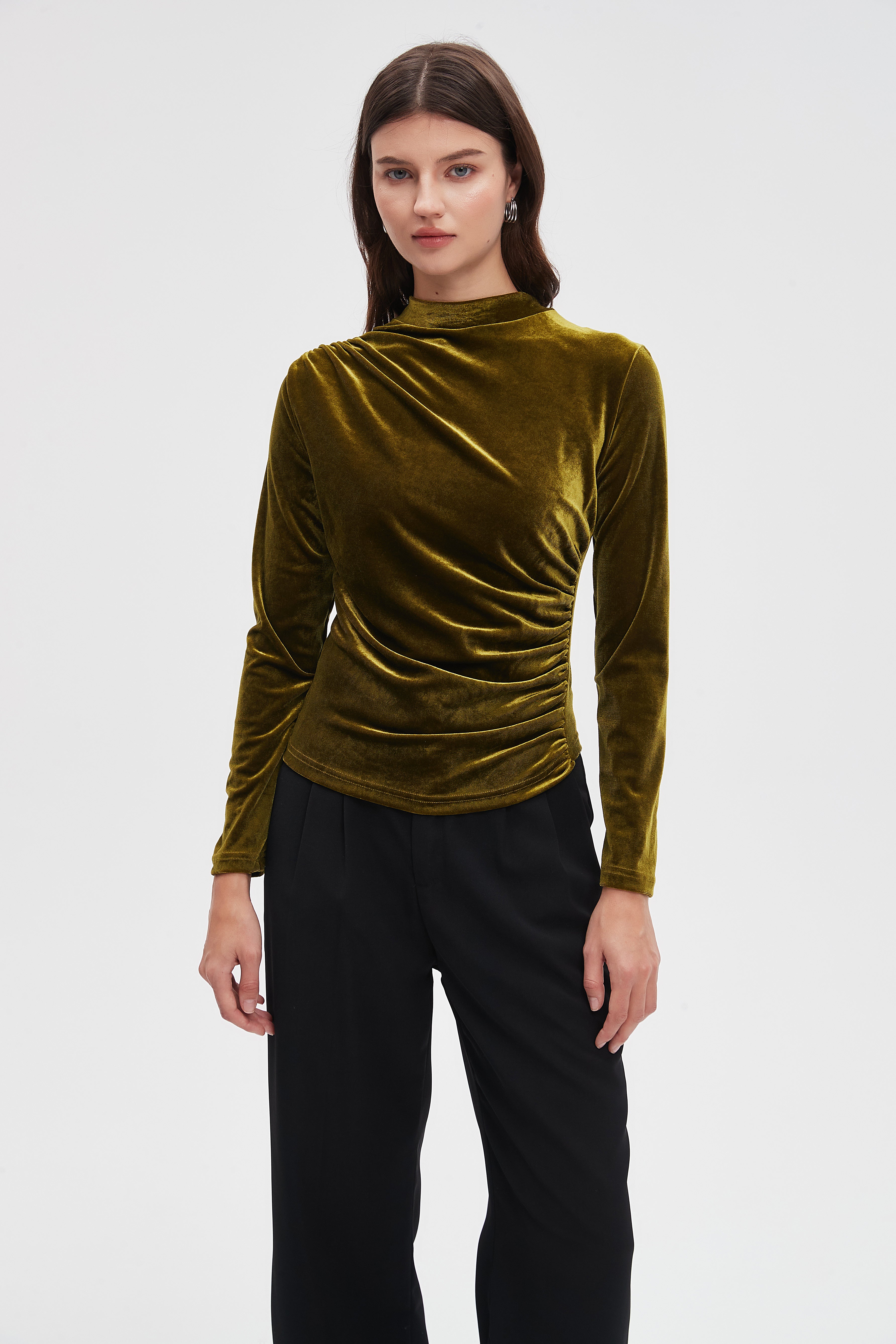 بلوزة بطول الخصر سادة بكم طويل ورقبة عالية