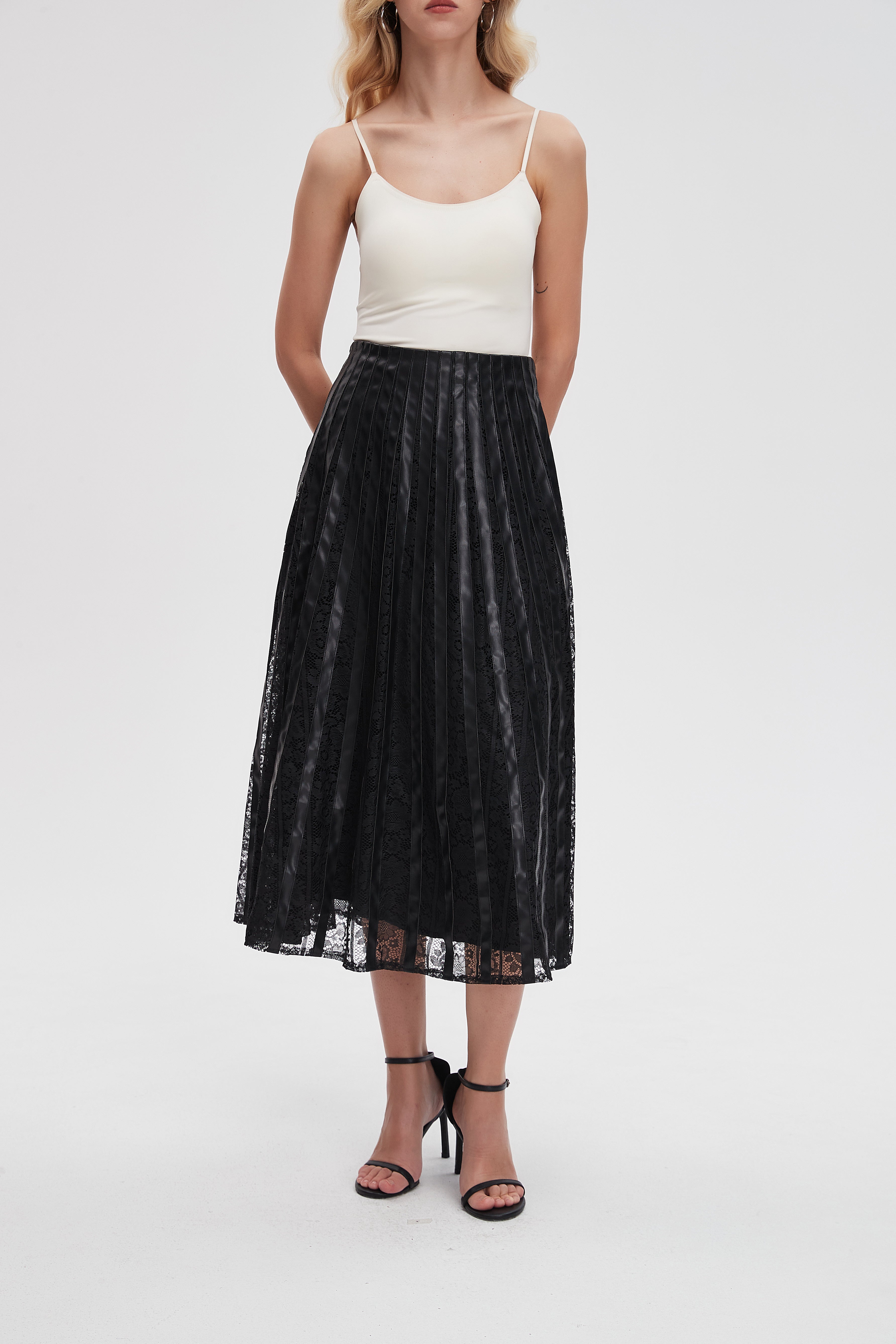 تضفي جيبة ميدي بليسيه بدانتيل لمسة أنثوية ساحرة على إطلالتك اليومية. مصنوعة من خامات عالية الجودة، تتميز هذه الجيبة بتصميمها الفريد الذي يجمع بين الأناقة والراحة. الدانتيل يضيف لمسة من الرقي، بينما يسمح التصميم البليسيه بالحركة السلسة والحرية في التنقل. تتناسب هذه الجيبة مع مختلف الأوقات، سواء في العمل أو اللقاءات الاجتماعية. اجعليها جزءاً من خزانة ملابسك اليوم واحتفظي بإطلالة مميزة. لا تفوتي الفرصة، قومي بطلب جيبتك الآن عبر الإنترنت! رقم المنتج: lv0277w254cz