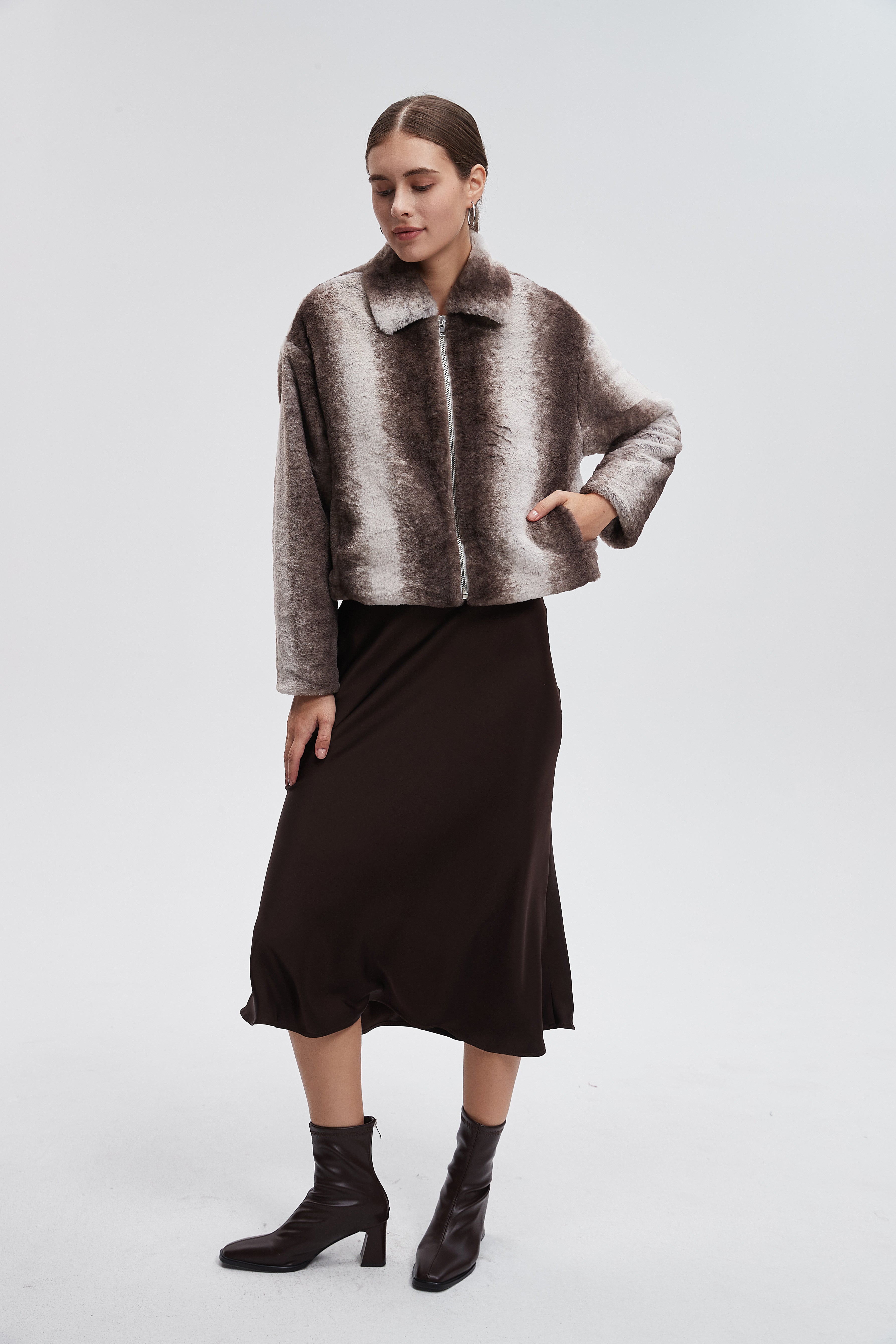 جاكيت فرو قصير متدرج اللون باكمام طويلة