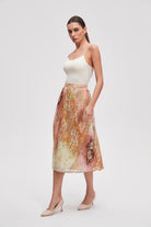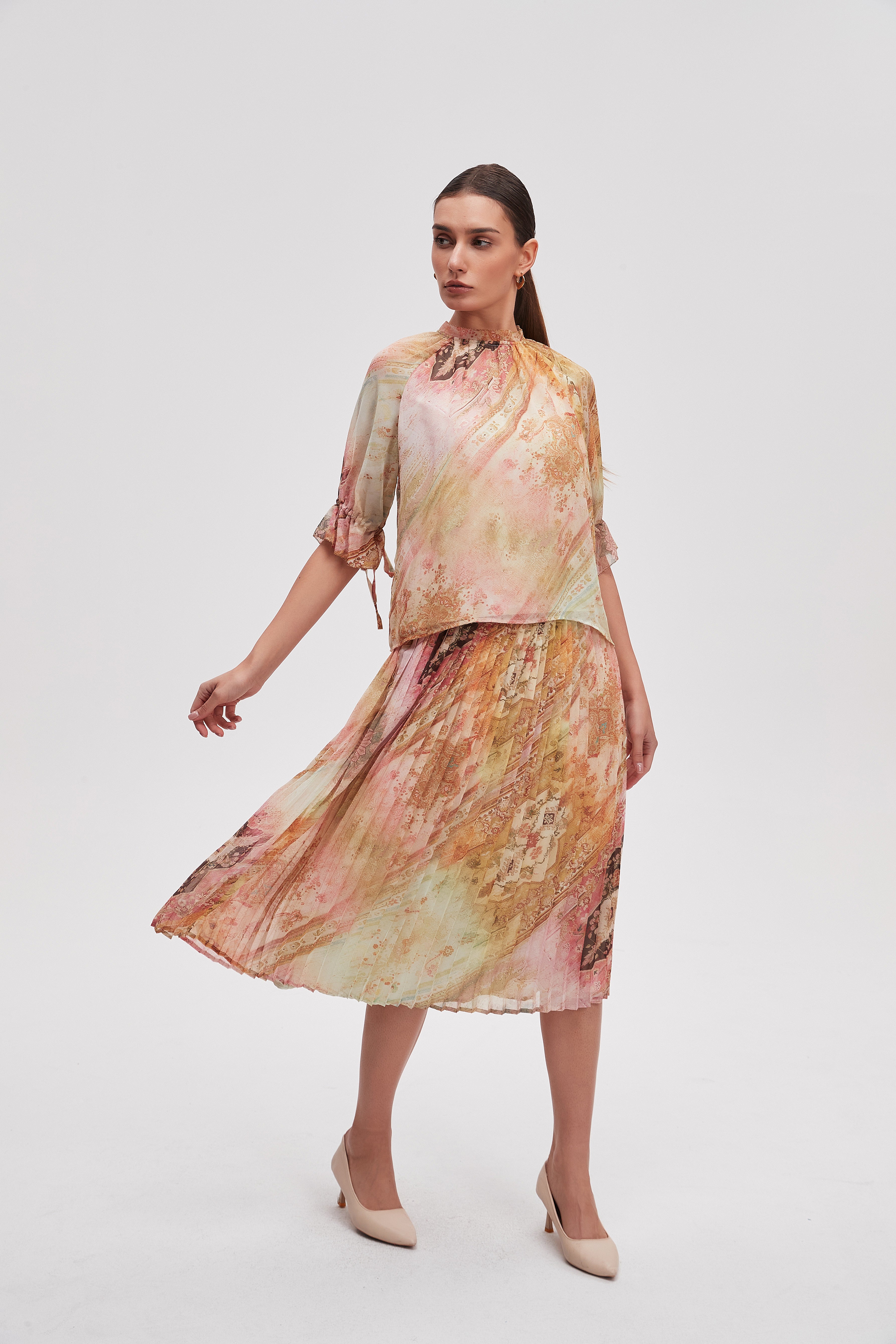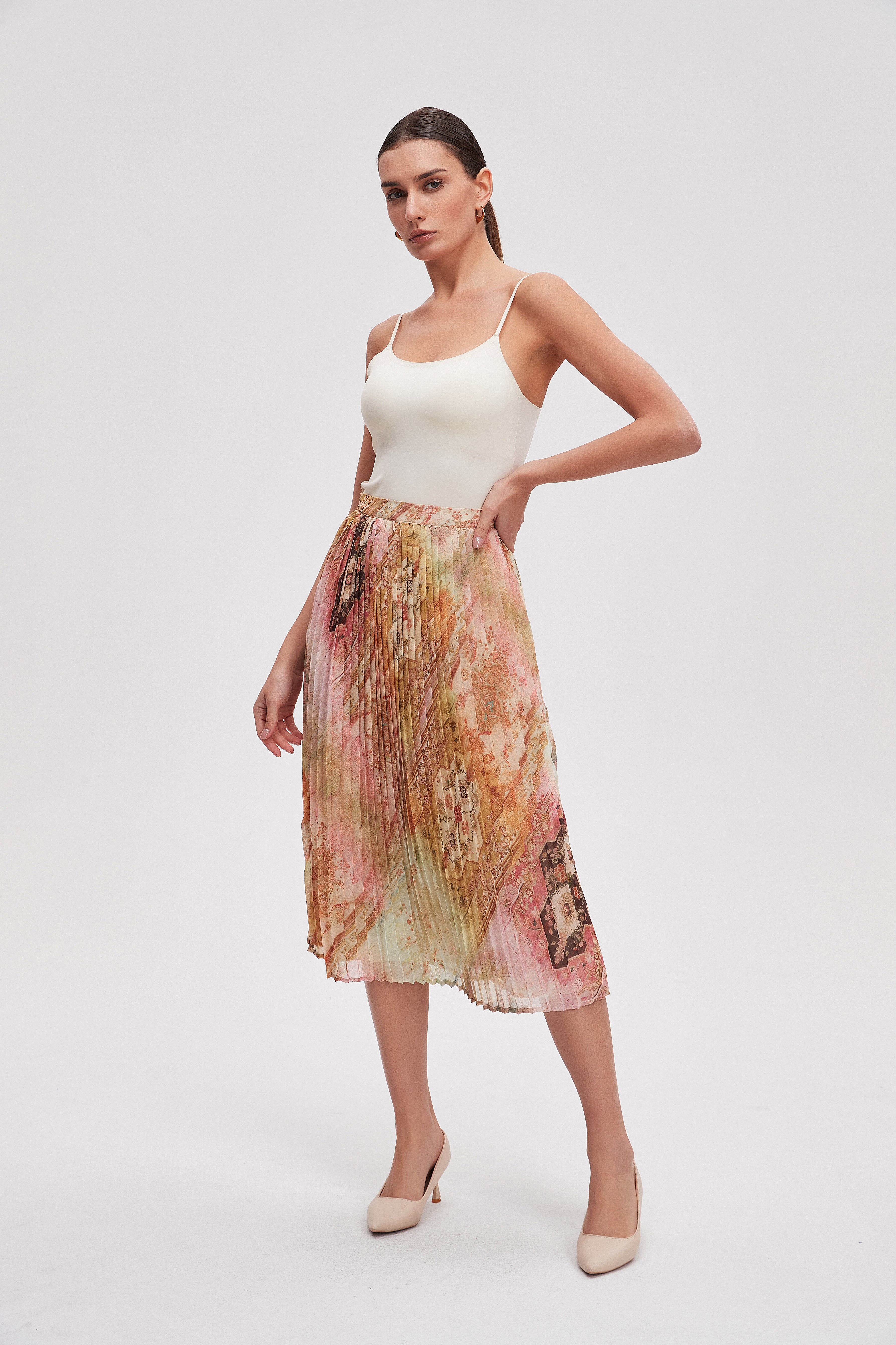 تمنحك تنورة ميدي منقوشة قصة واسعة فرصة فريدة لاستكشاف عالم الموضة بطريقة جديدة. تجمع هذه التنورة بين الألوان الزاهية والنقوش المعقدة، مما يجعلها قطعة مركزية في خزانة ملابسك. تصميمها الواسع يضمن لك الراحة والحركة السلسة، مما يعزز من أناقتك في كل مناسبة. تعتبر هذه التنورة خياراً حيوياً لكل امرأة تسعى لإضفاء لمسة من الجمال على إطلالتها. لذا، لا تترددي في إضافة هذه التحفة الفنية إلى ملابسك، فهي ستسرع من عملية اختيارك للأزياء وتضمن لك إطلالة مميزة وملهمة. رقم المنتج: lv0545s261vt
