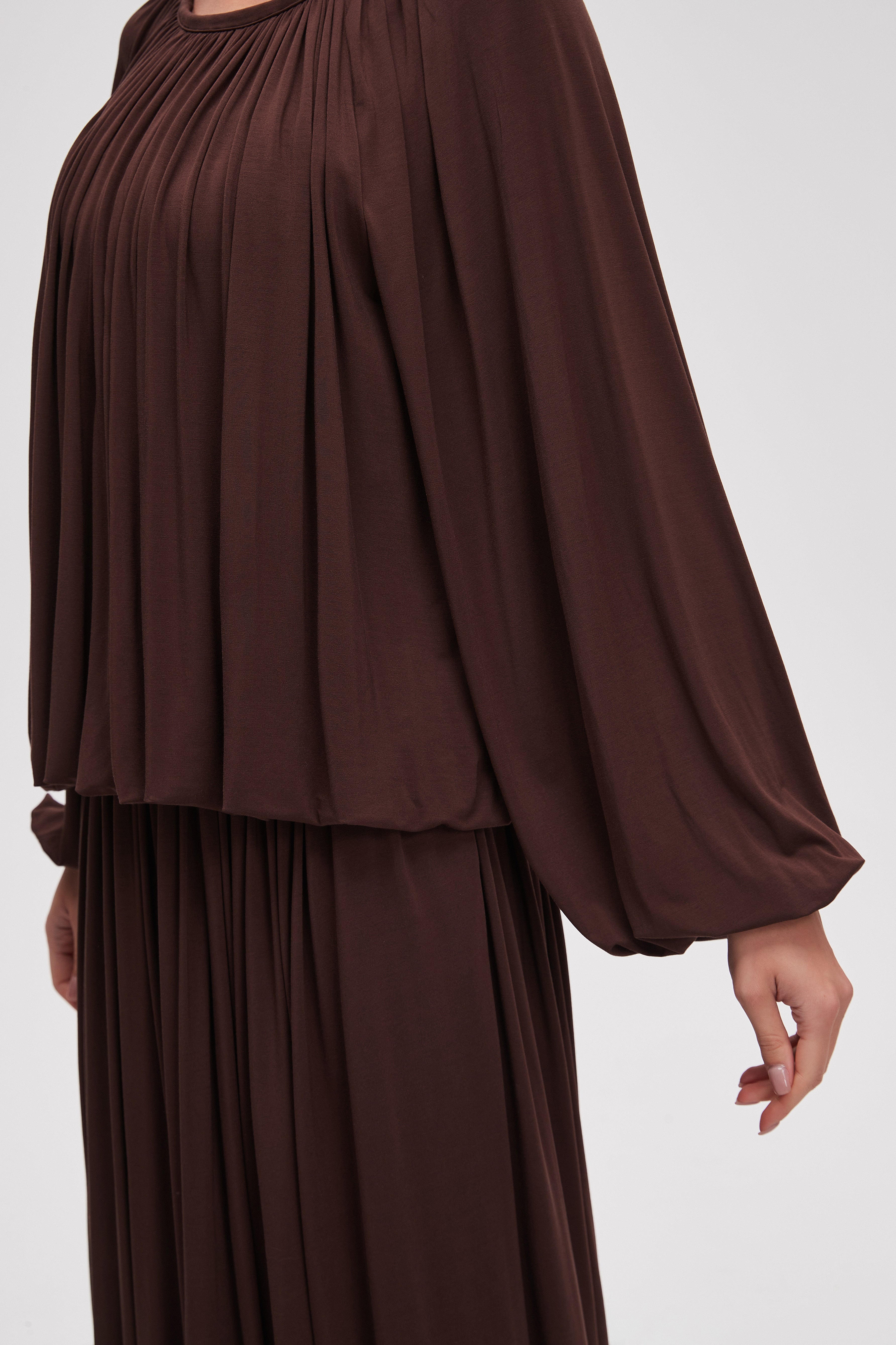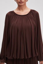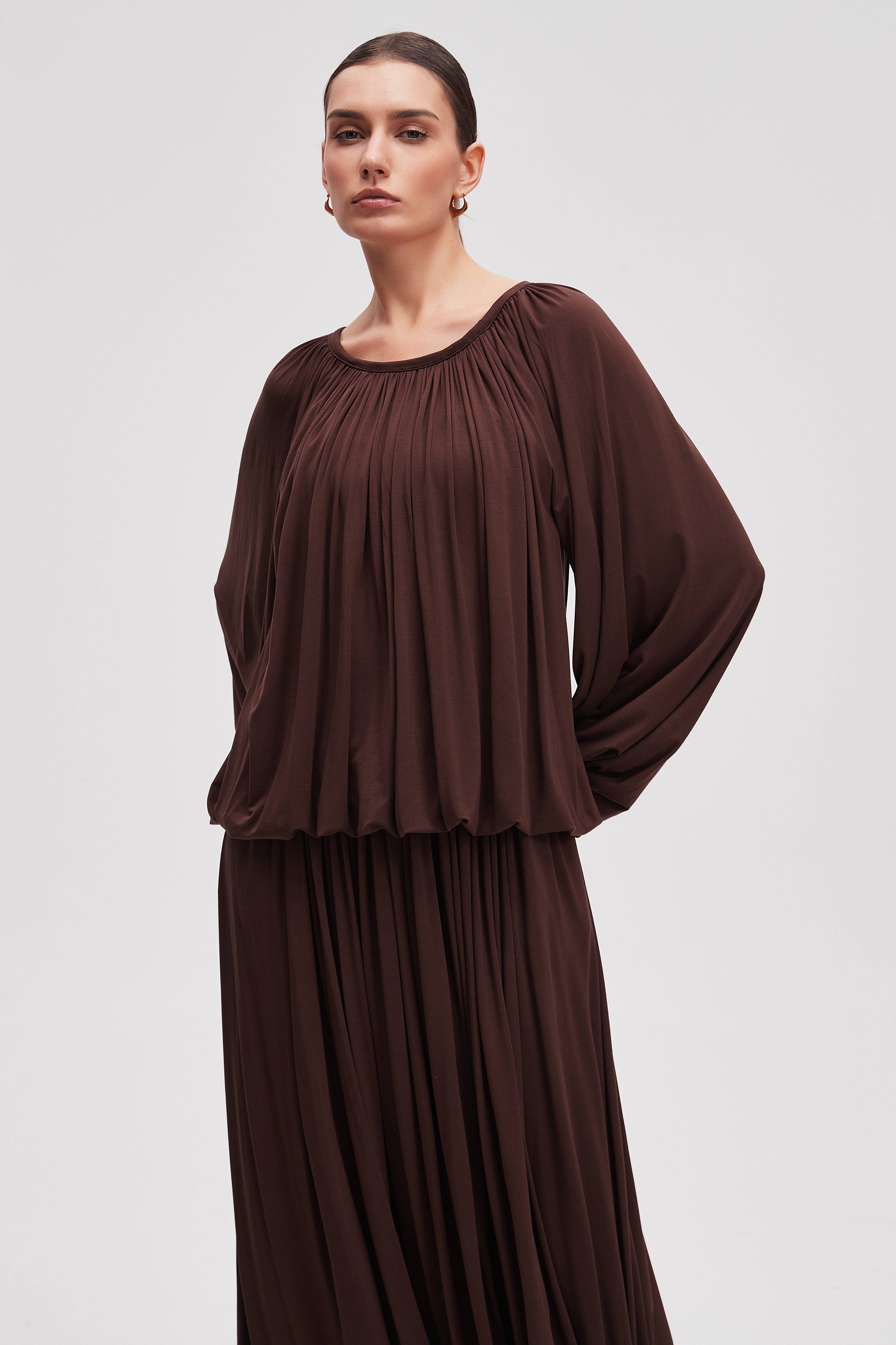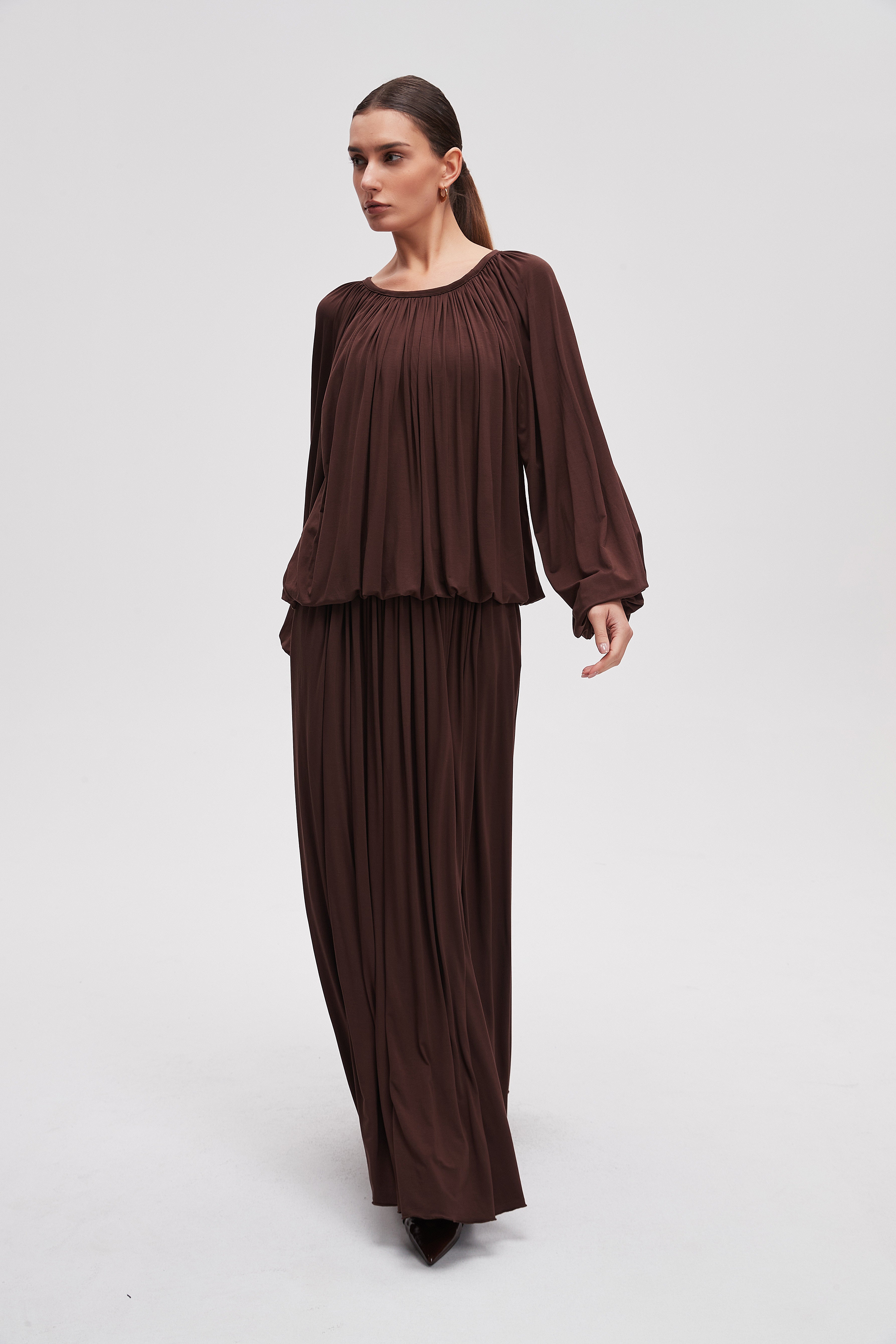 بلوزة متوسطة الطول سادة كم طويل