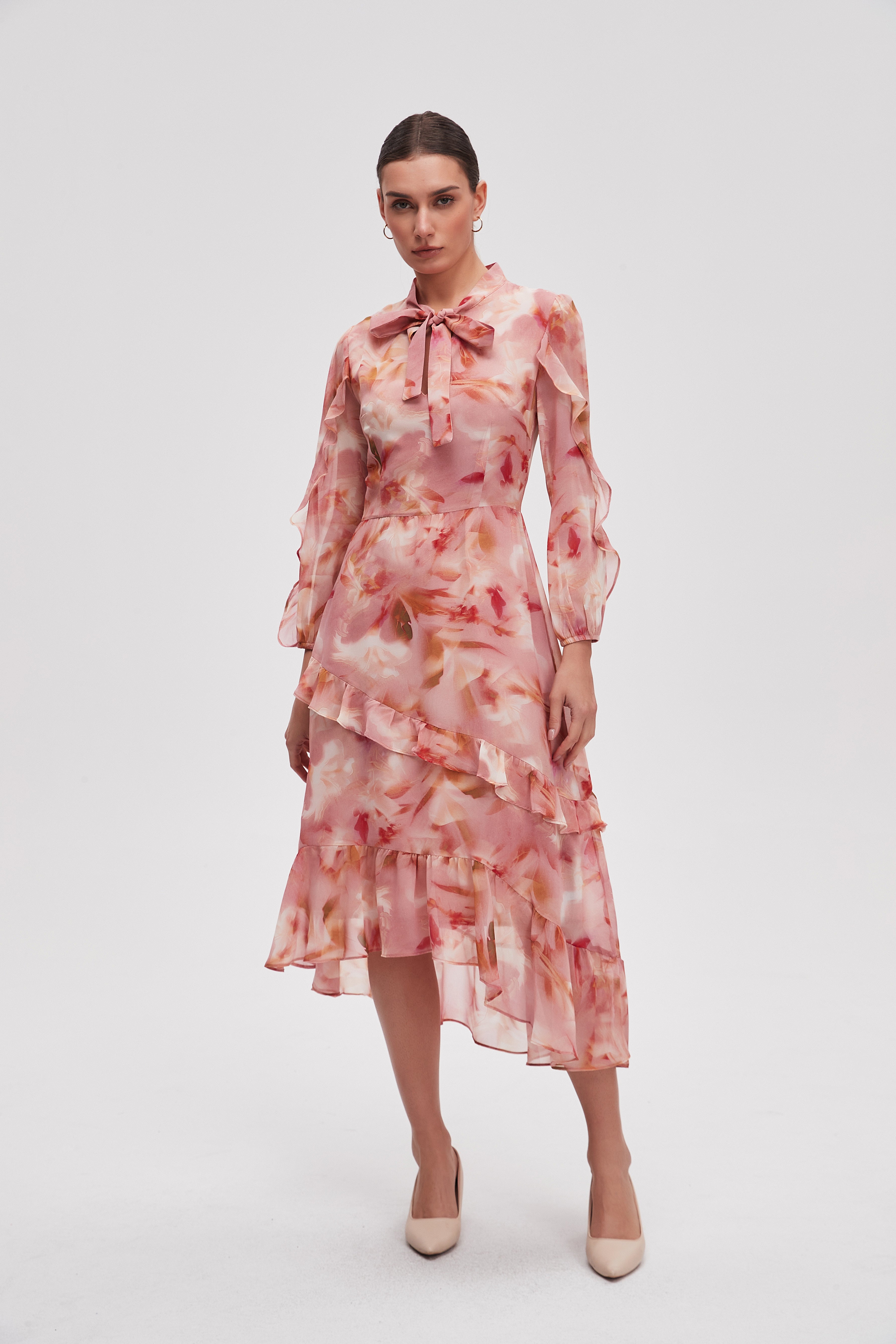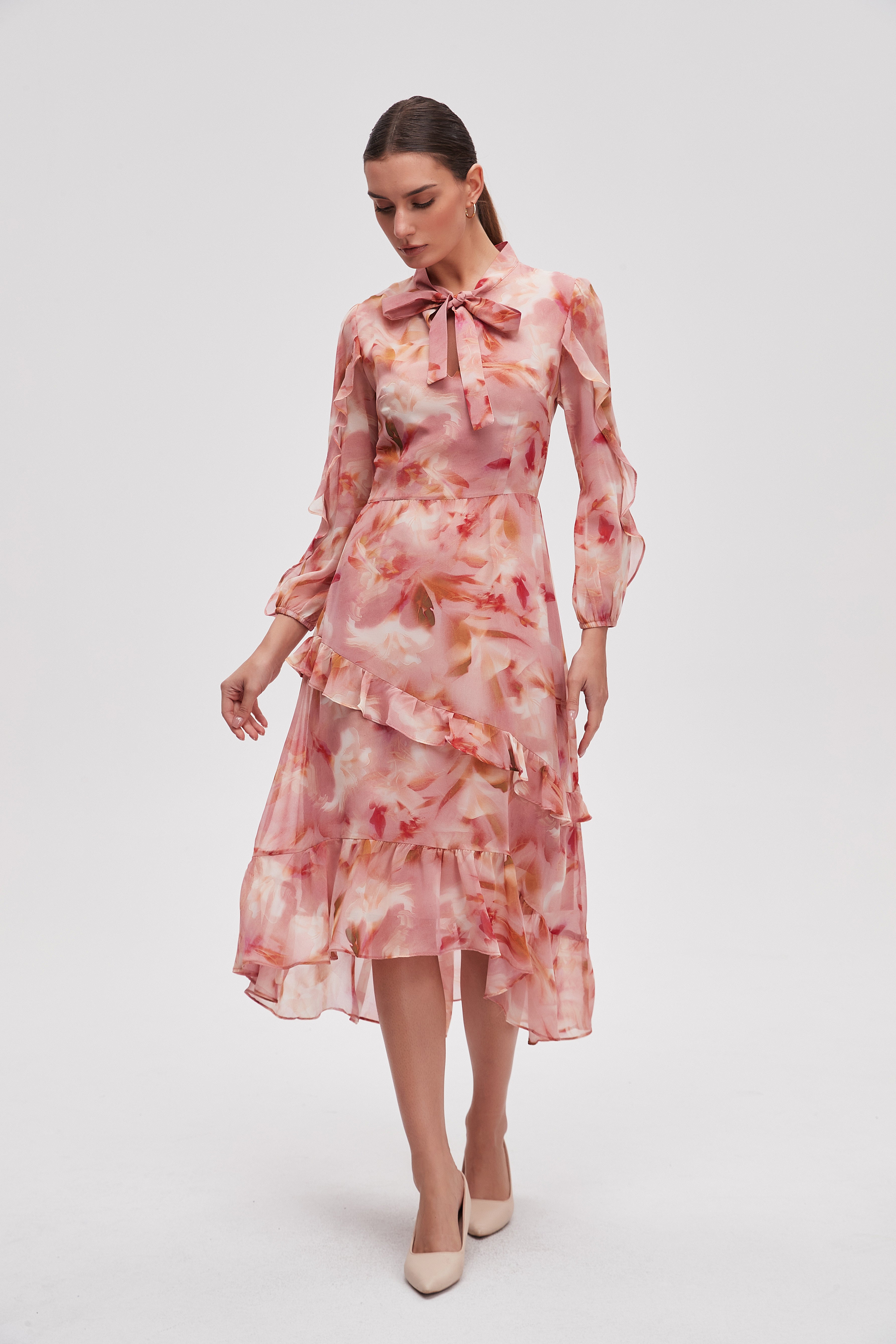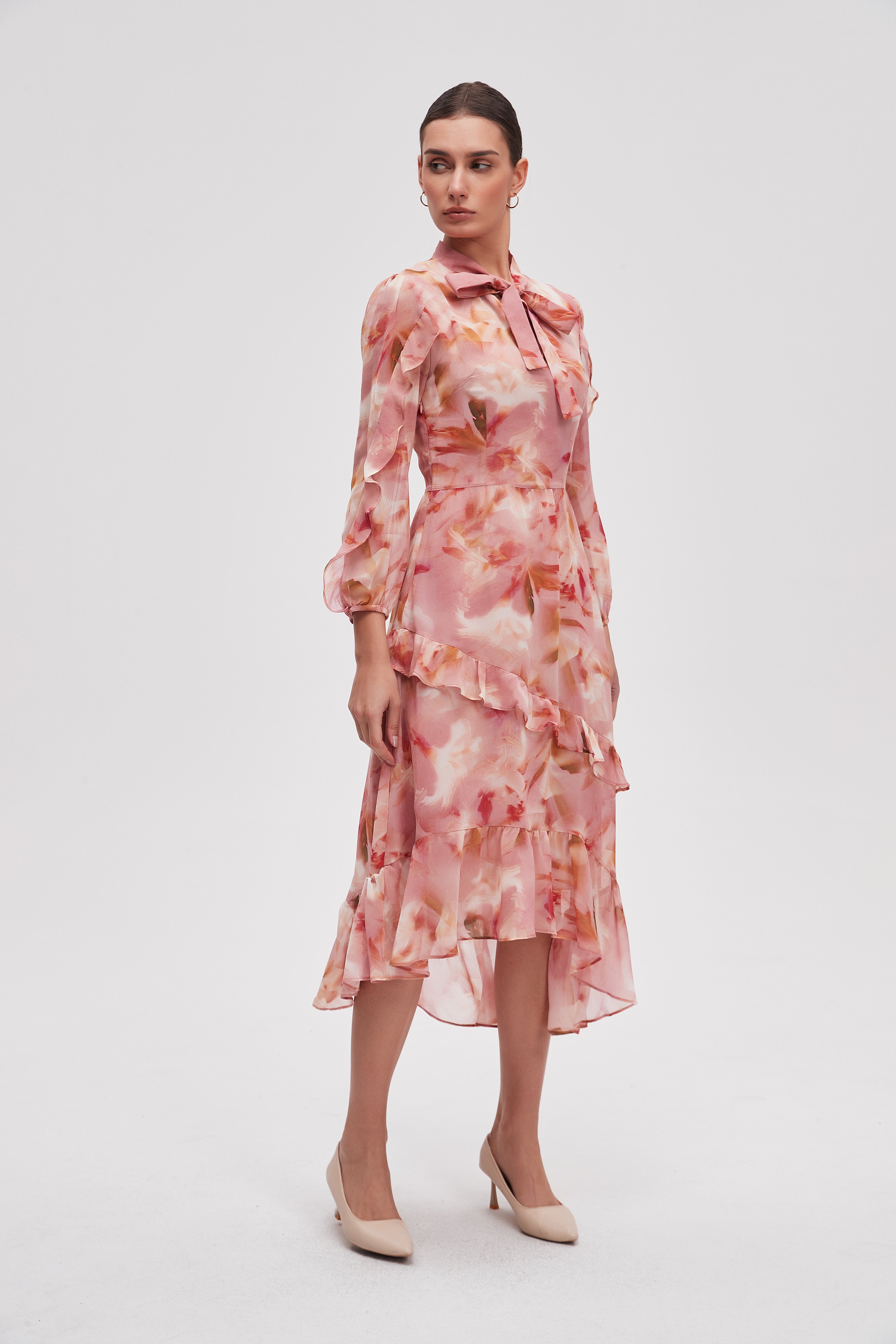 فستان ميدي منقوش كم طويل