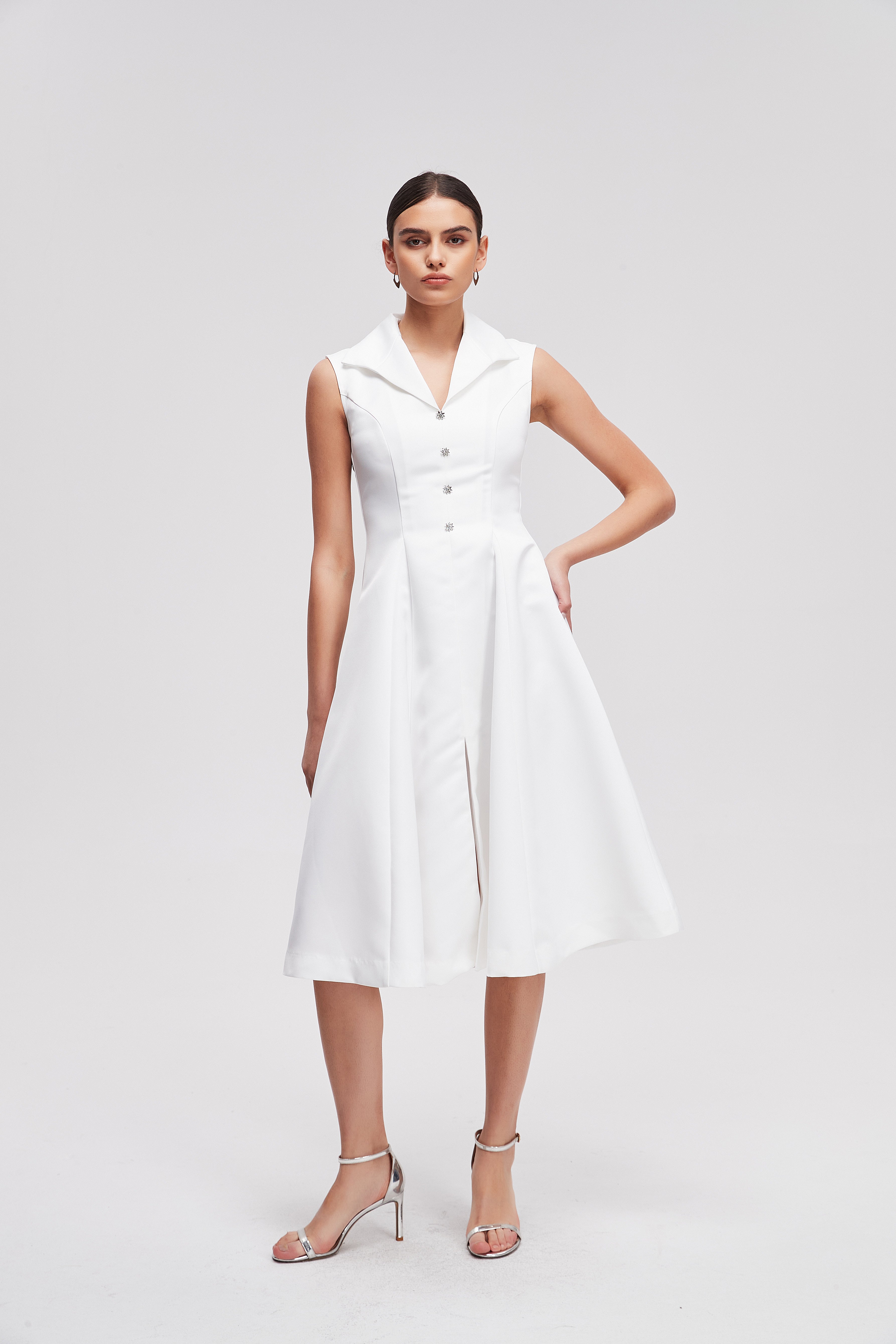فستان بدون كم بطول الركبة سادة