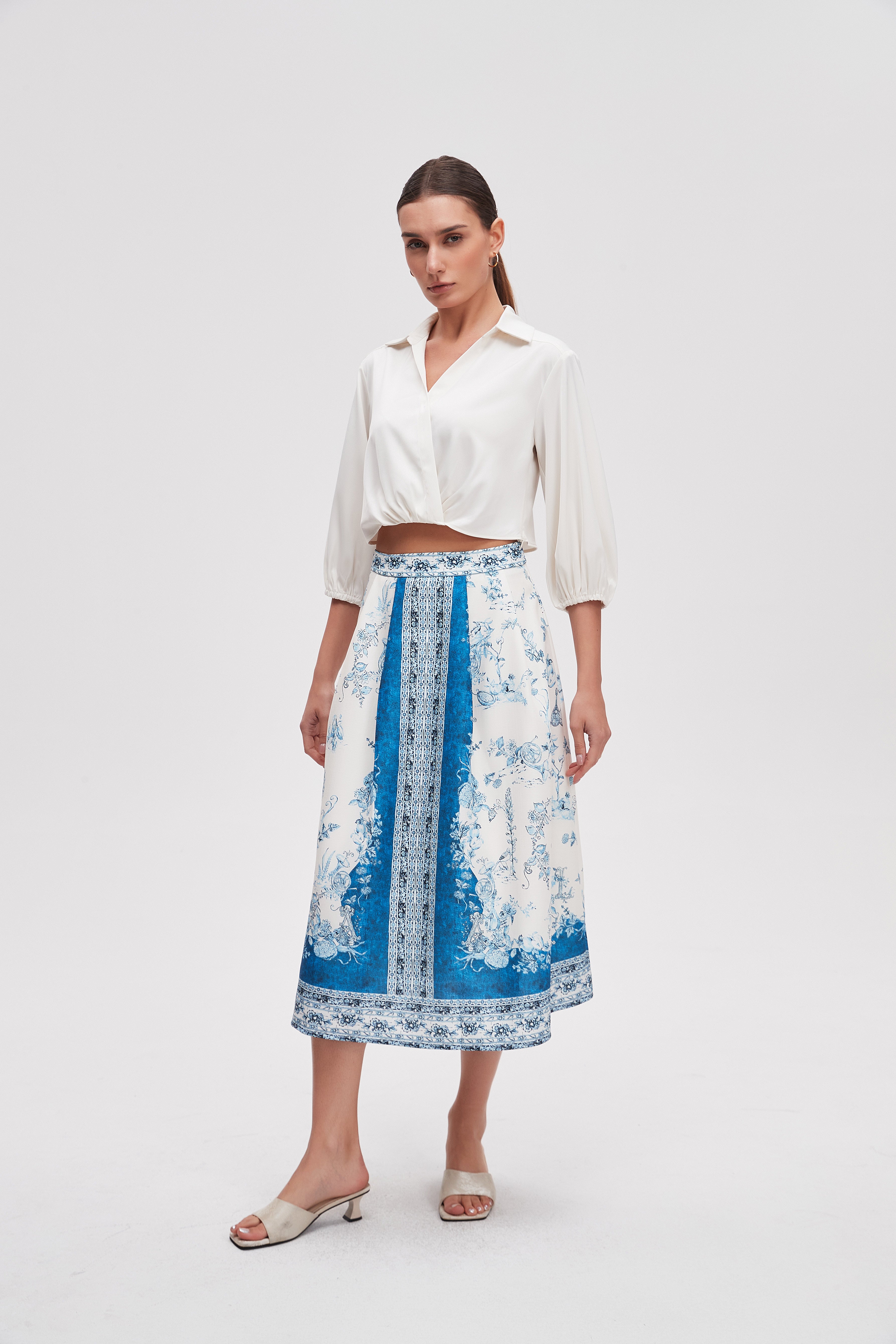 تنورة ميدي منقوشة قصة واسعة