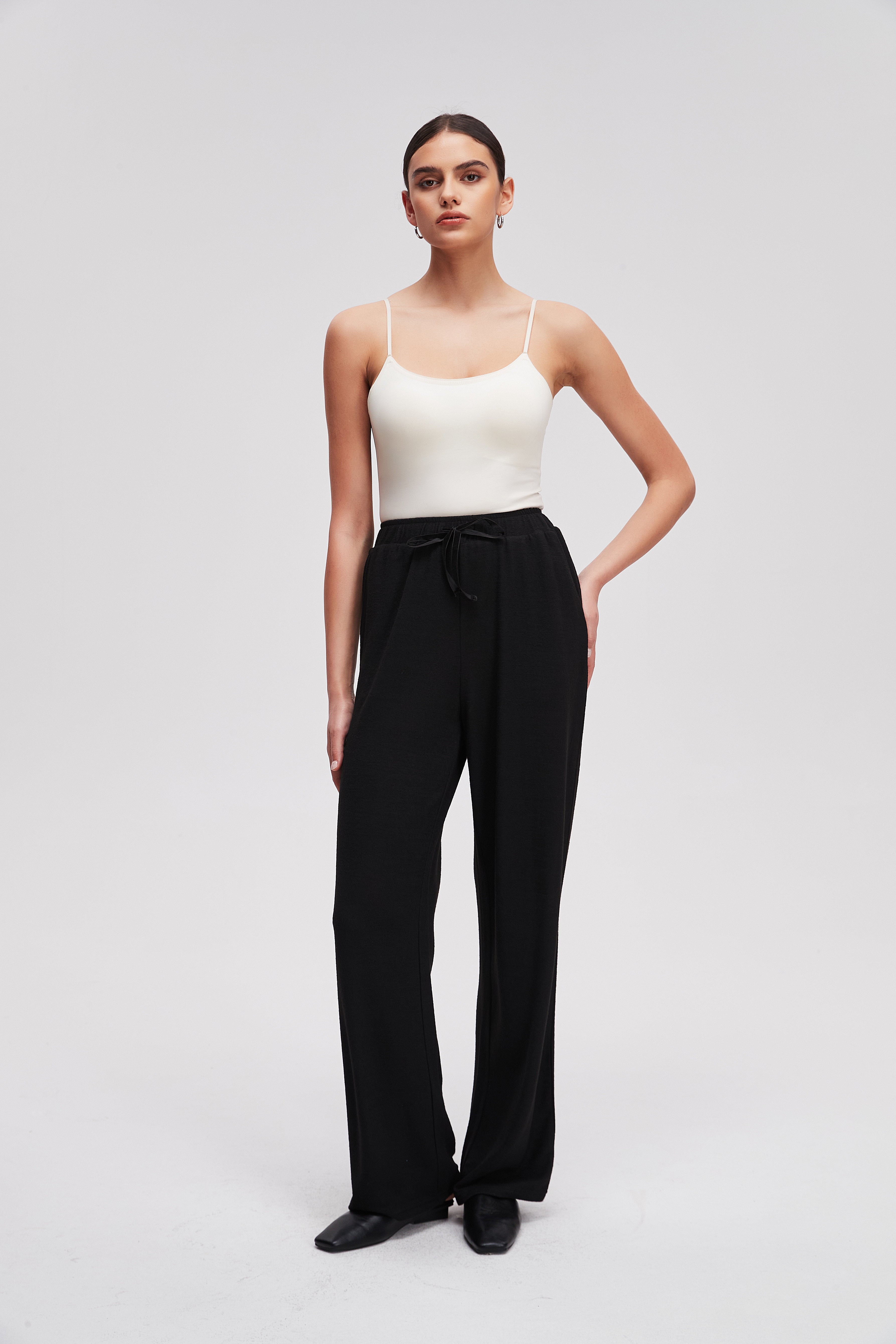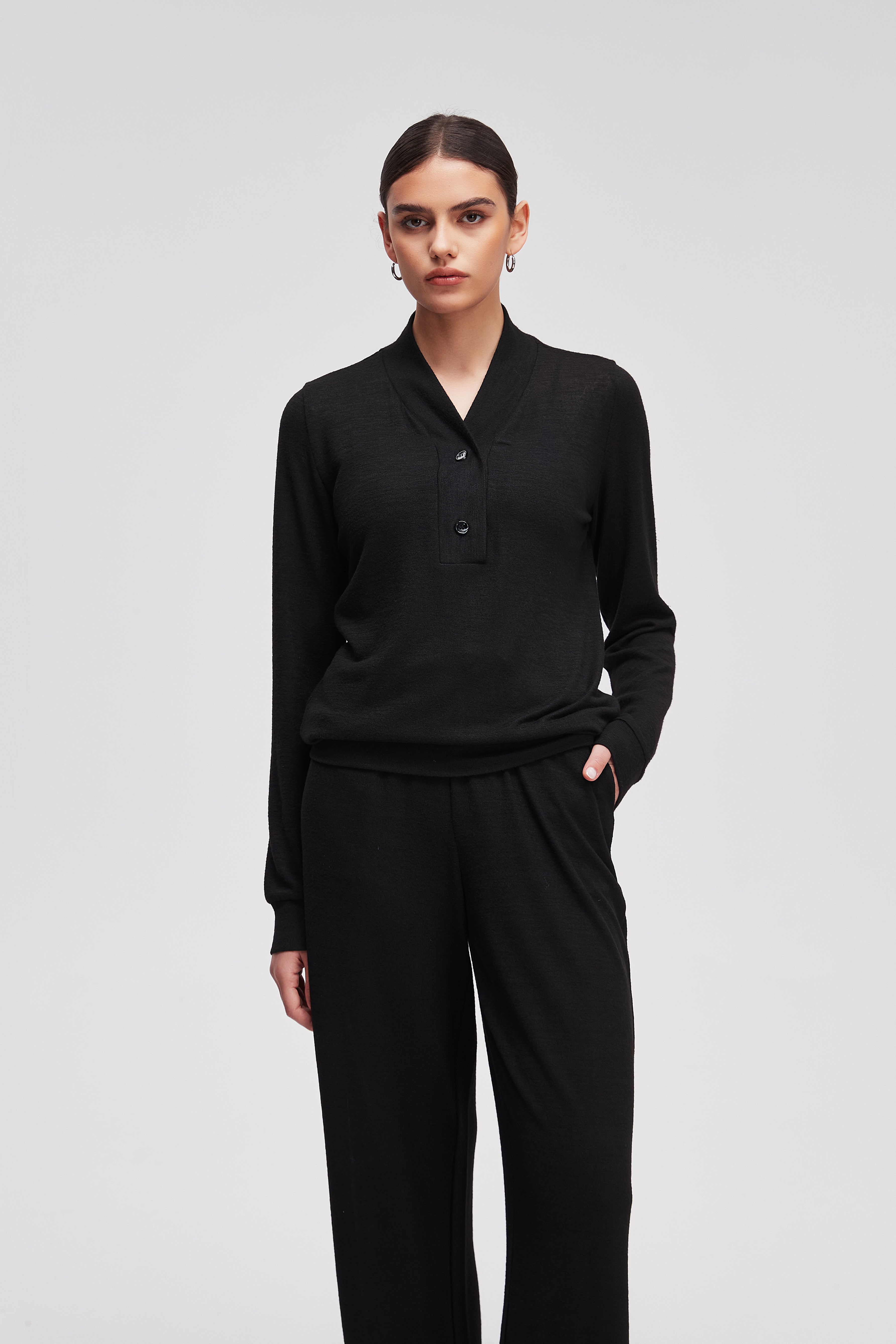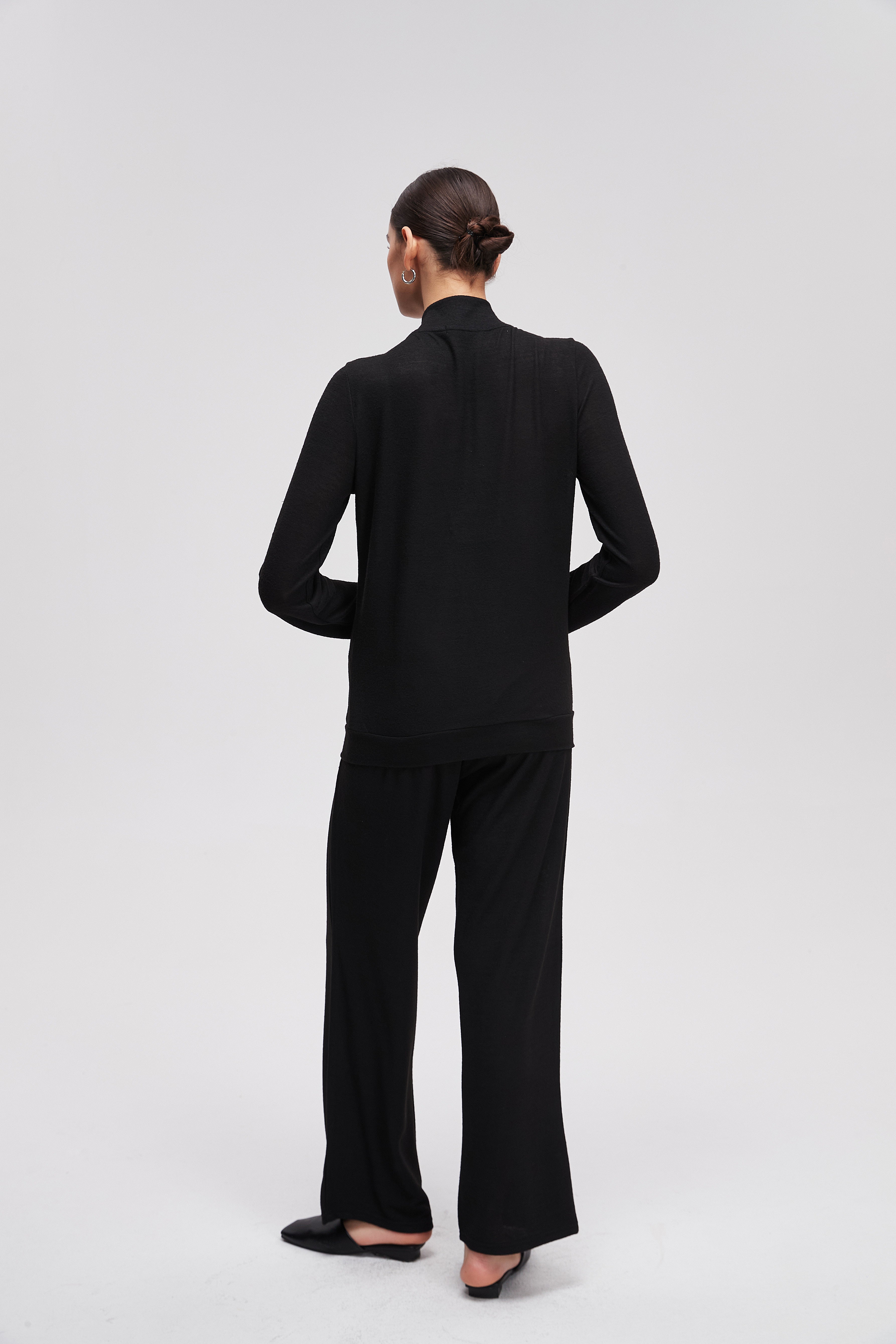 بيجامة بكم طويل وبنطلون برجل واسعة سادة