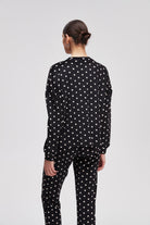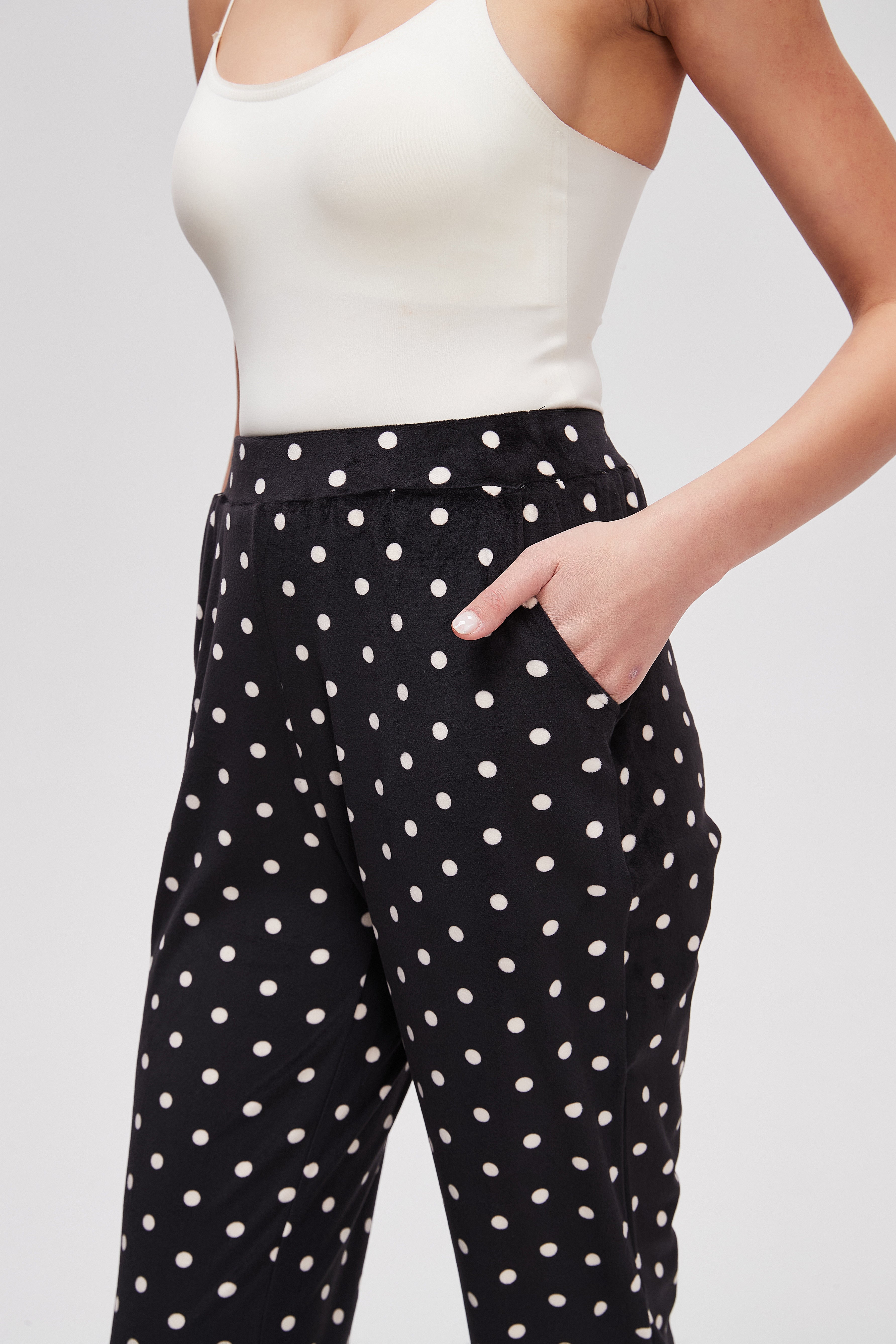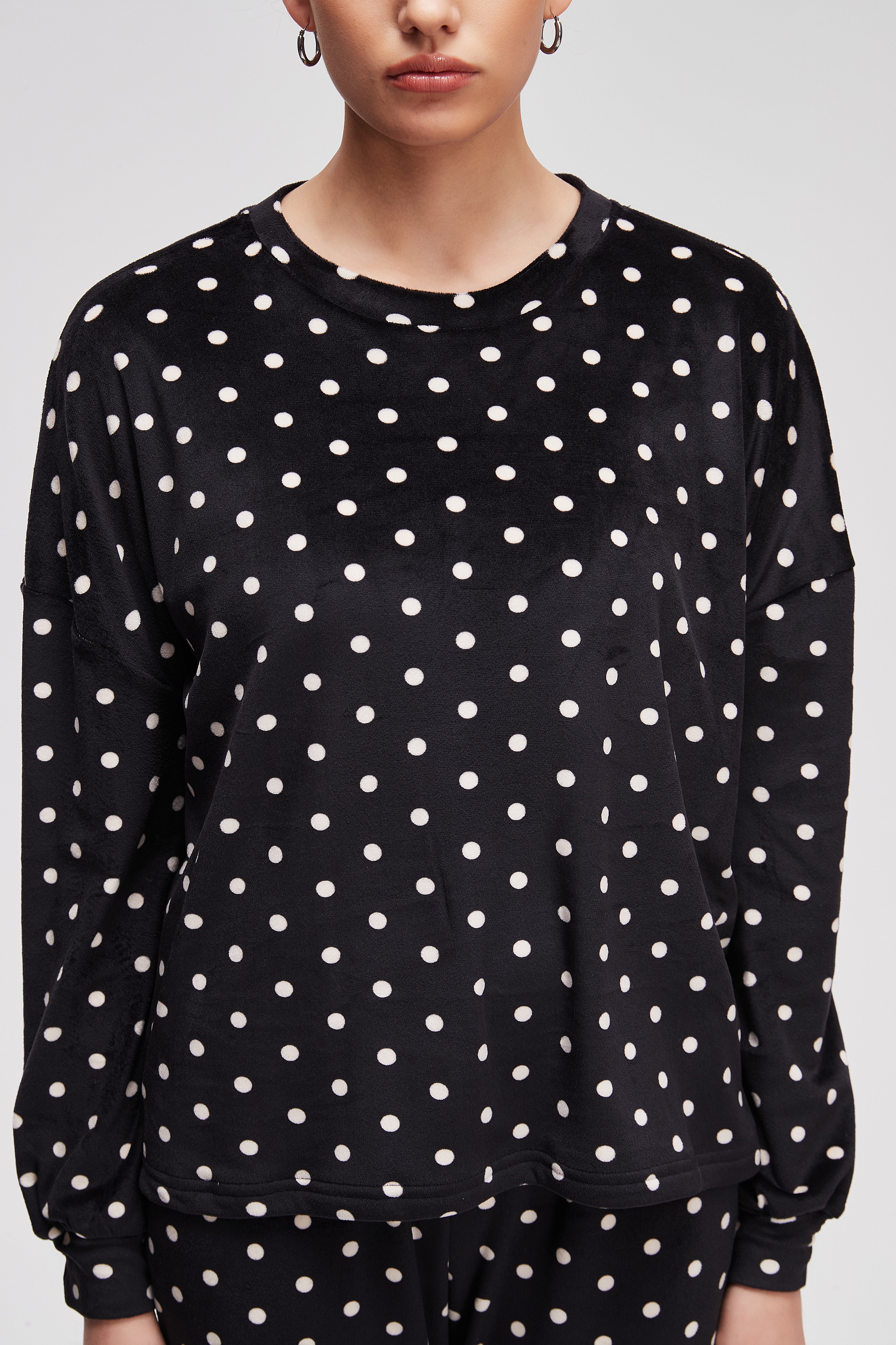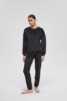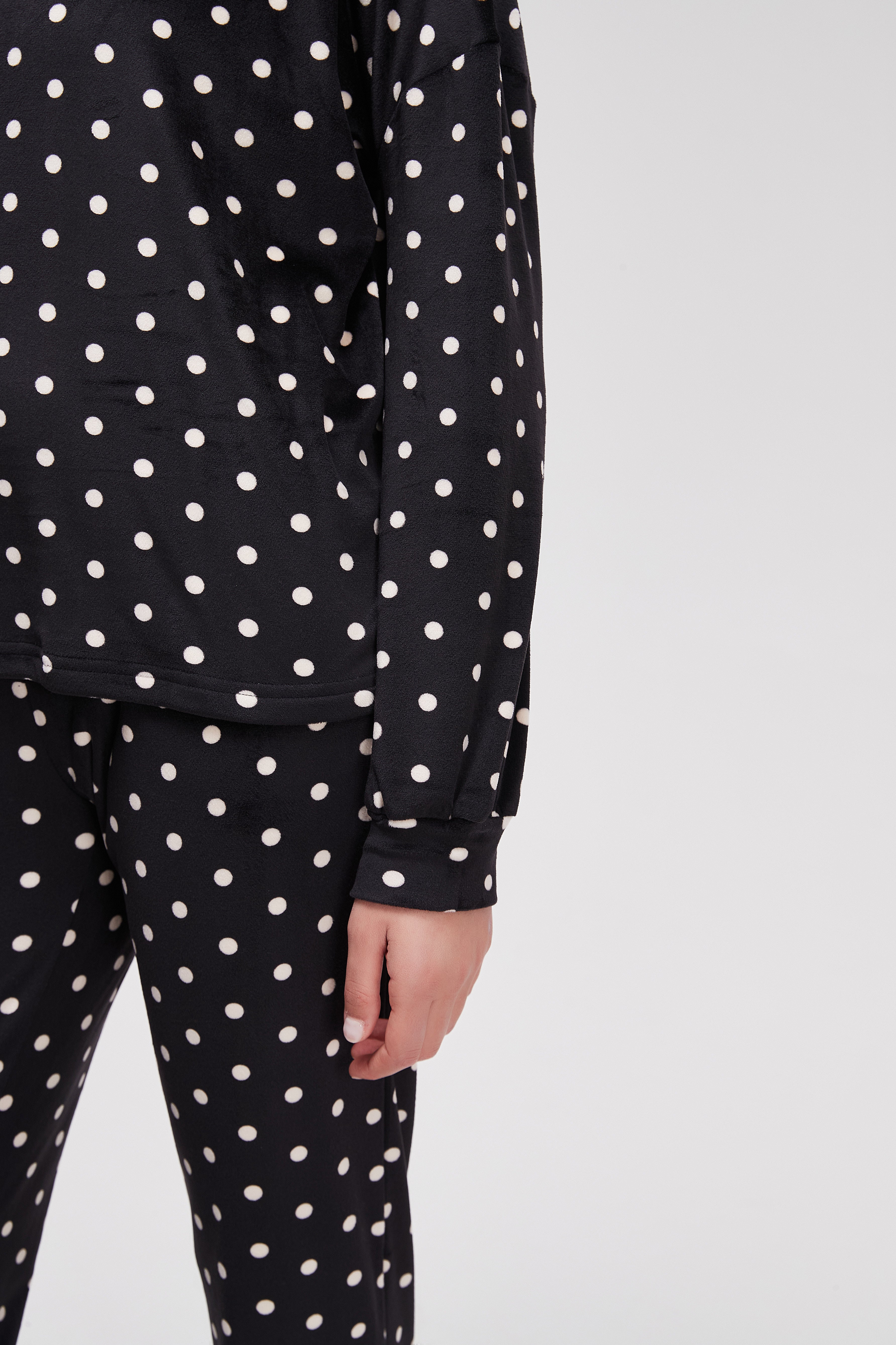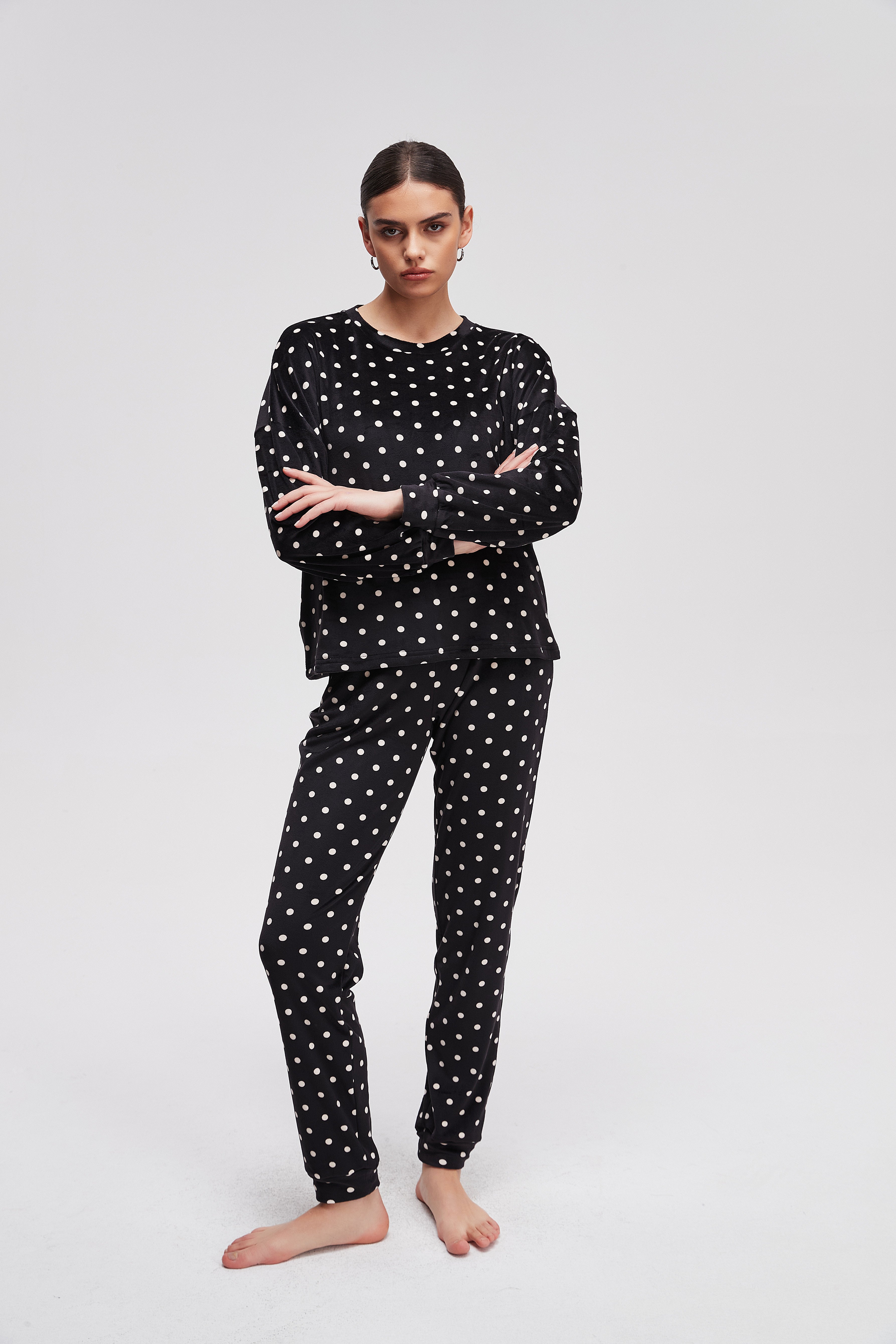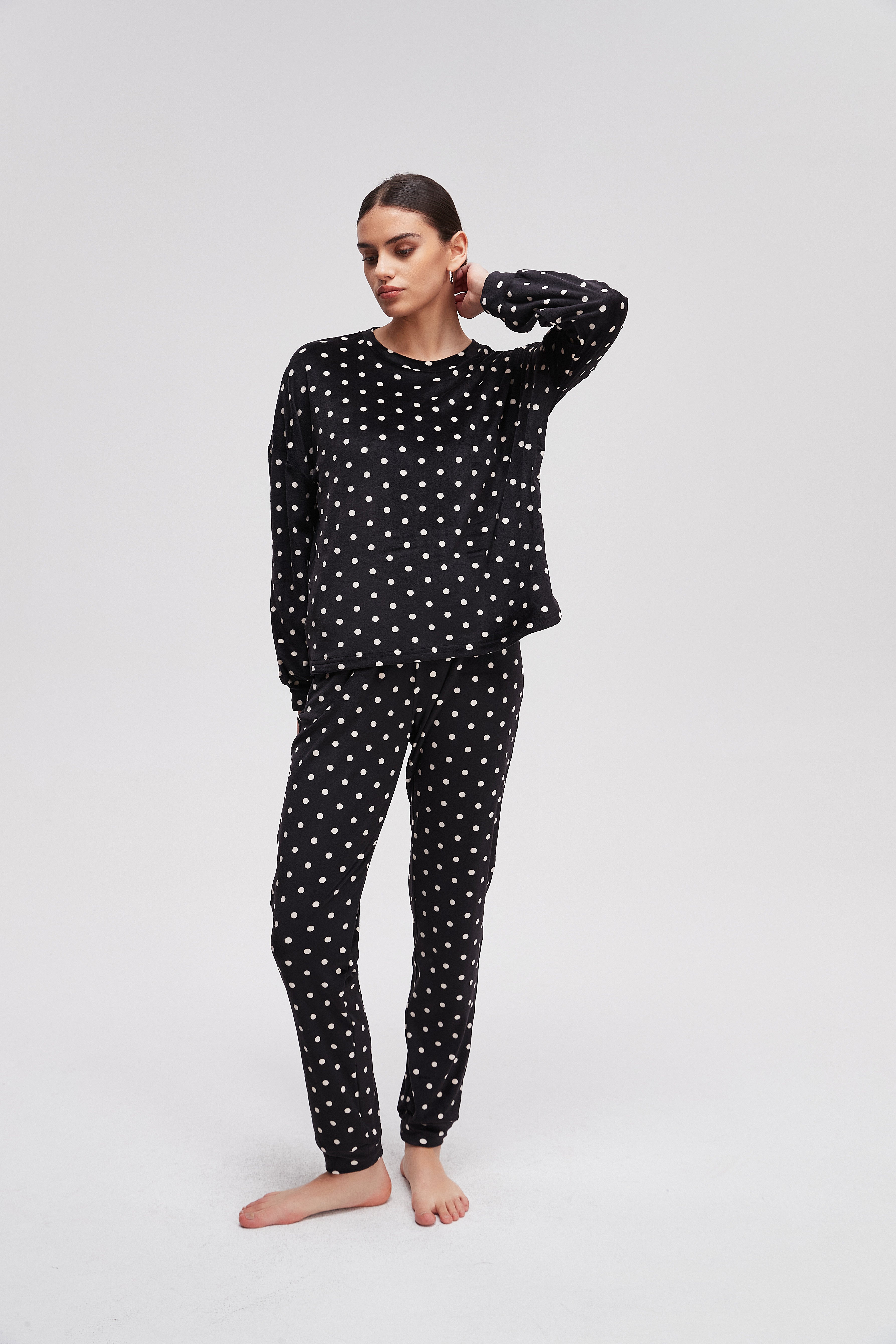بيجامة منقطة بكم طويل وبنطلون طويل