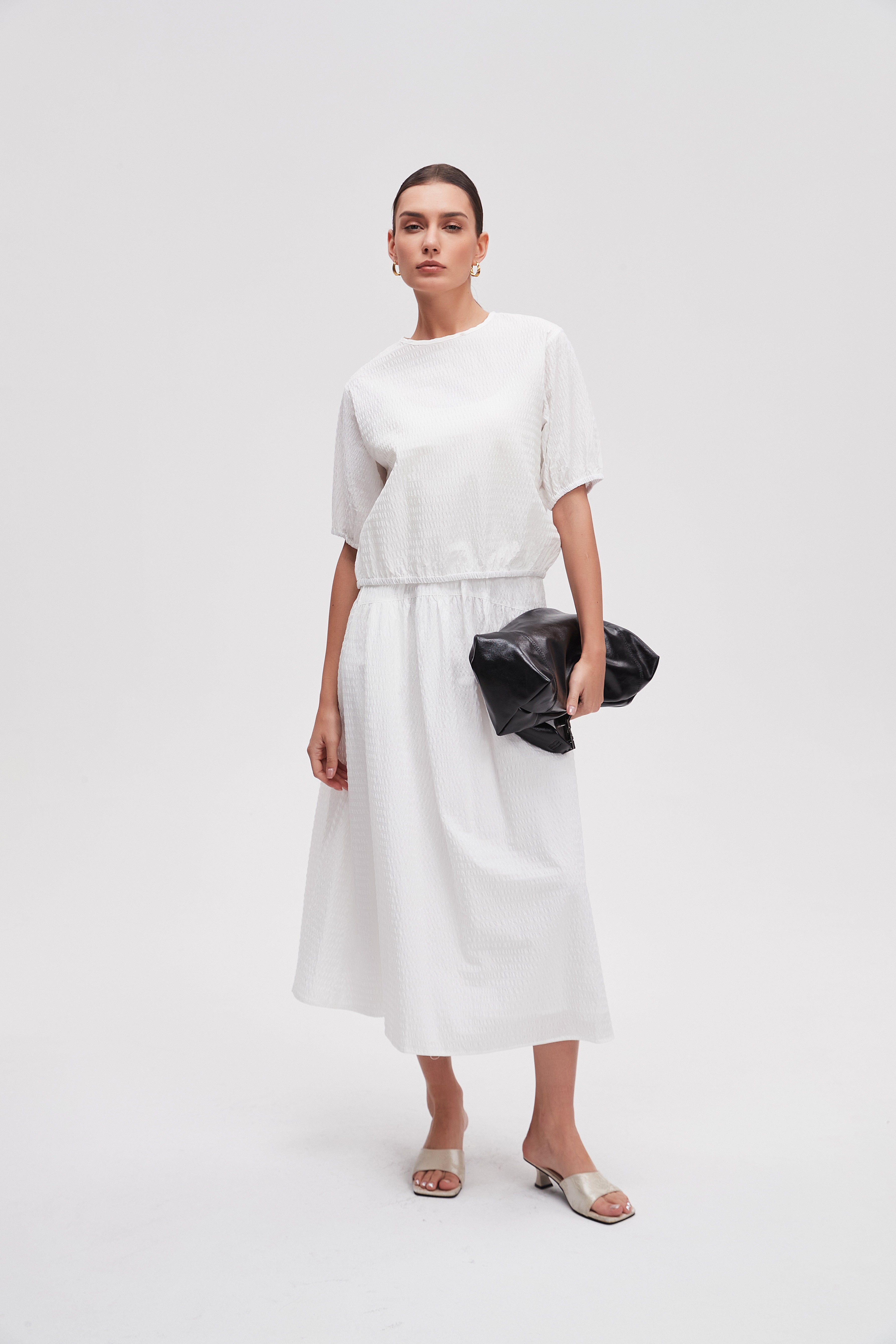 تعتبر "تنورة ميدي سادة قصة واسعة" خيارًا مثاليًا لكل امرأة تسعى إلى إضافة لمسة من الأناقة إلى خزانتها. هذه التنورة تتميز بقصتها الواسعة التي تمنحك حرية الحركة وتضفي لمسة من الراحة على إطلالتك. مصنوعة من أقمشة عالية الجودة، تضمن لك شعورًا فريدًا طوال اليوم. يمكن تنسيقها بسهولة مع أي قطعة ملابس، سواء كانت بلوزة بسيطة أو توب مزخرف، مما يجعلها قطعة شاملة تناسب كافة المناسبات. تبرز هذه التنورة بألوانها المتنوعة التي تضفي حيوية على إطلالتك، مما يجعلها خيارًا حيويًا في عالم الموضة. رقم المنتج: lv0710s261to