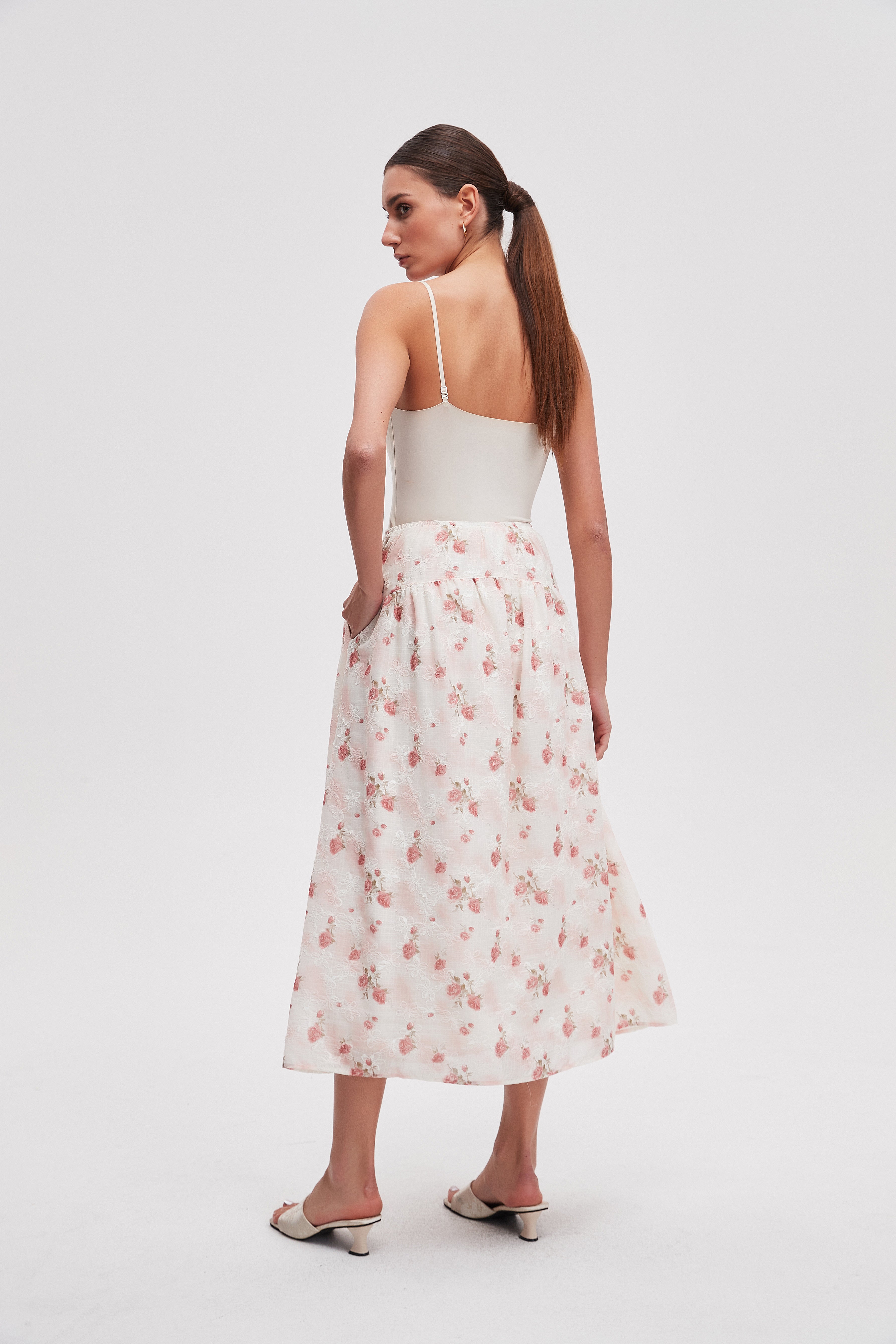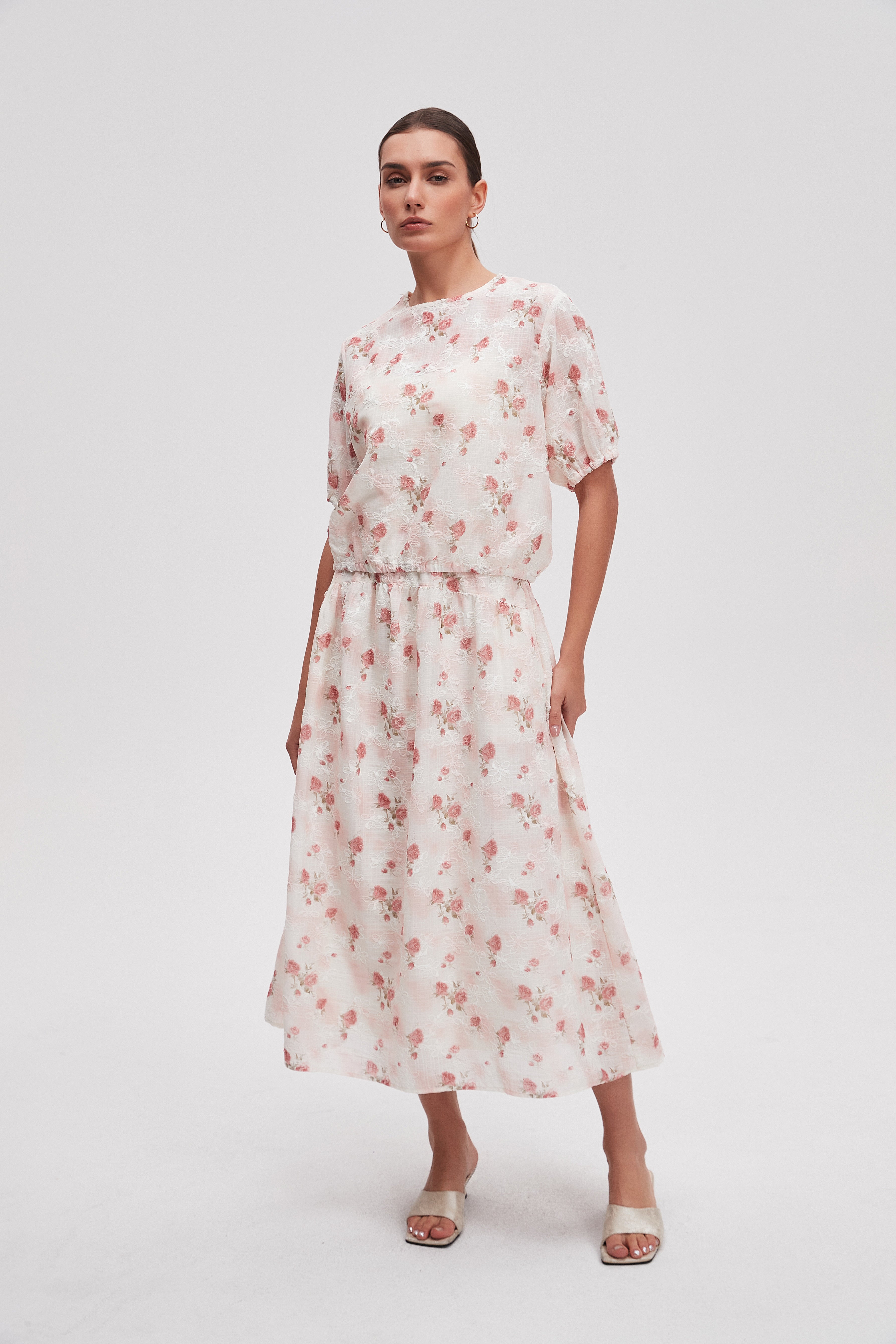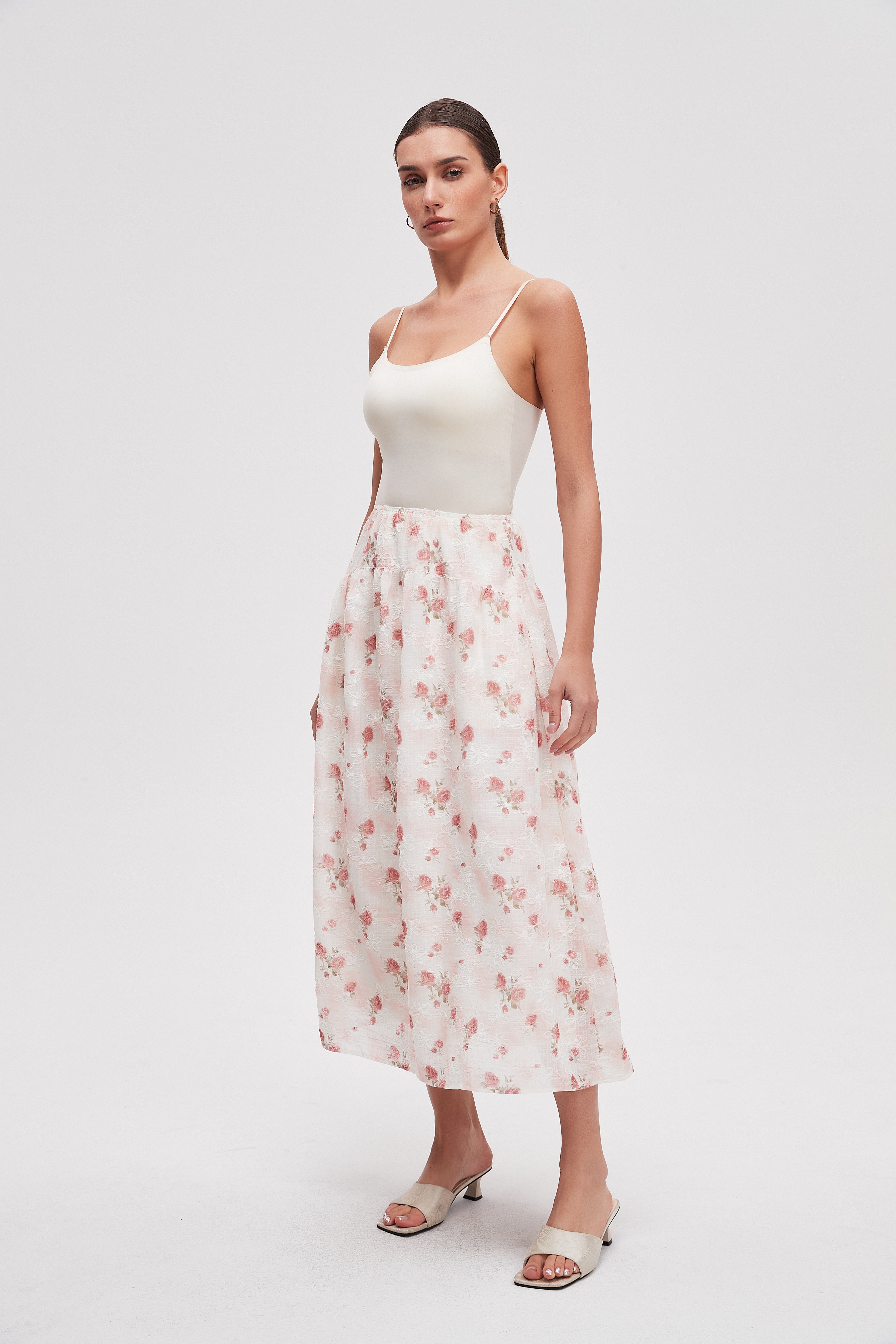تنورة ميدي منقوشة قصة واسعة