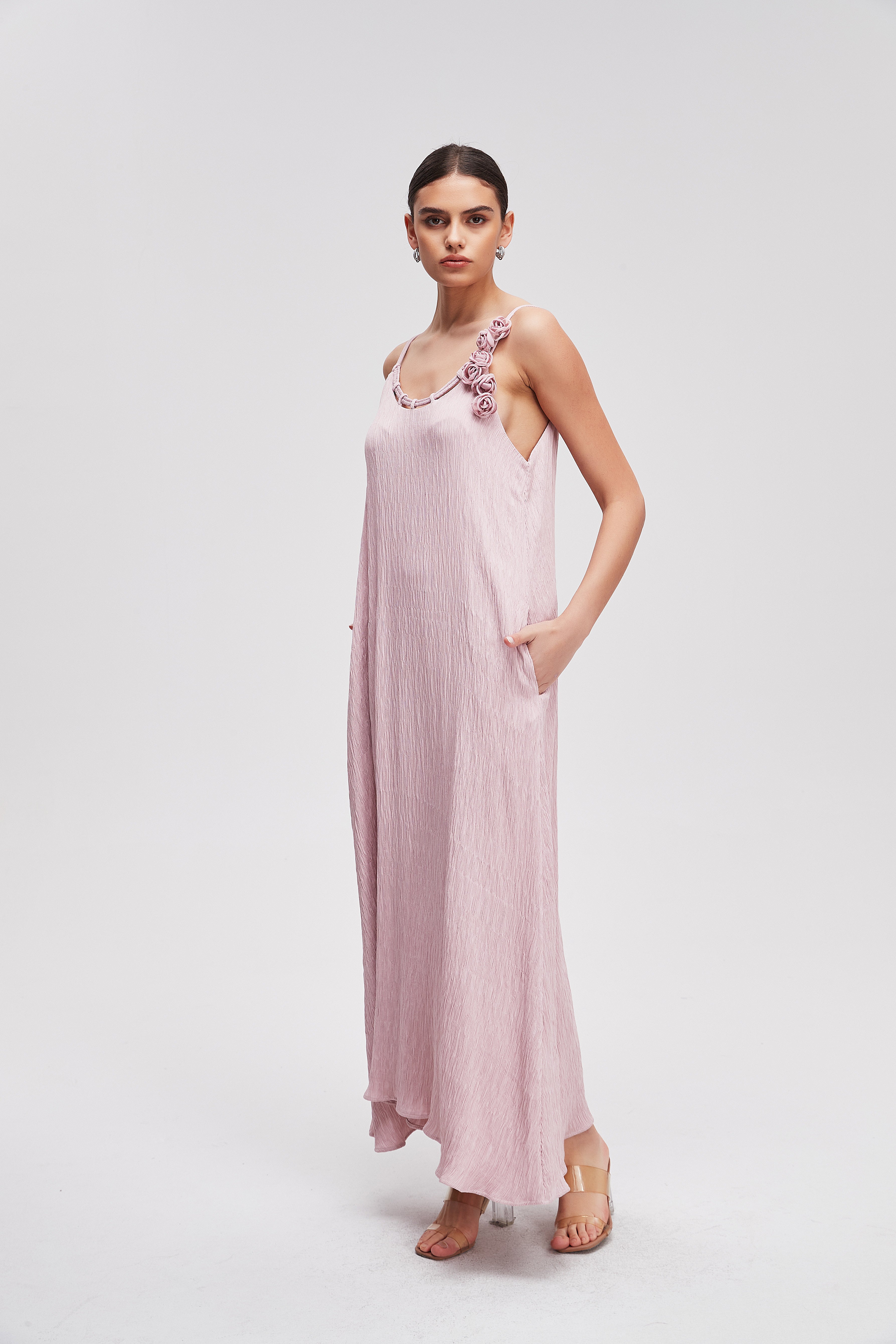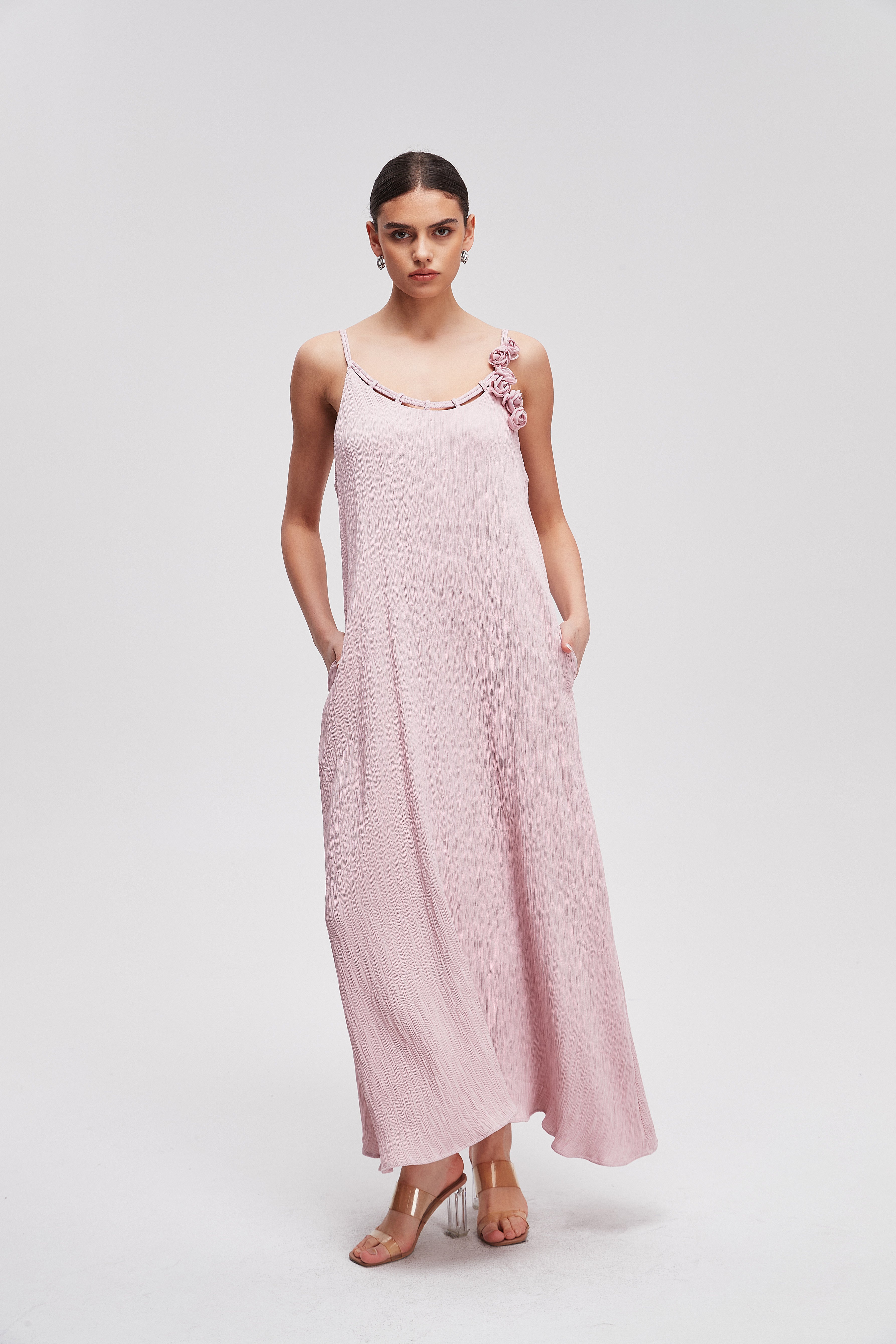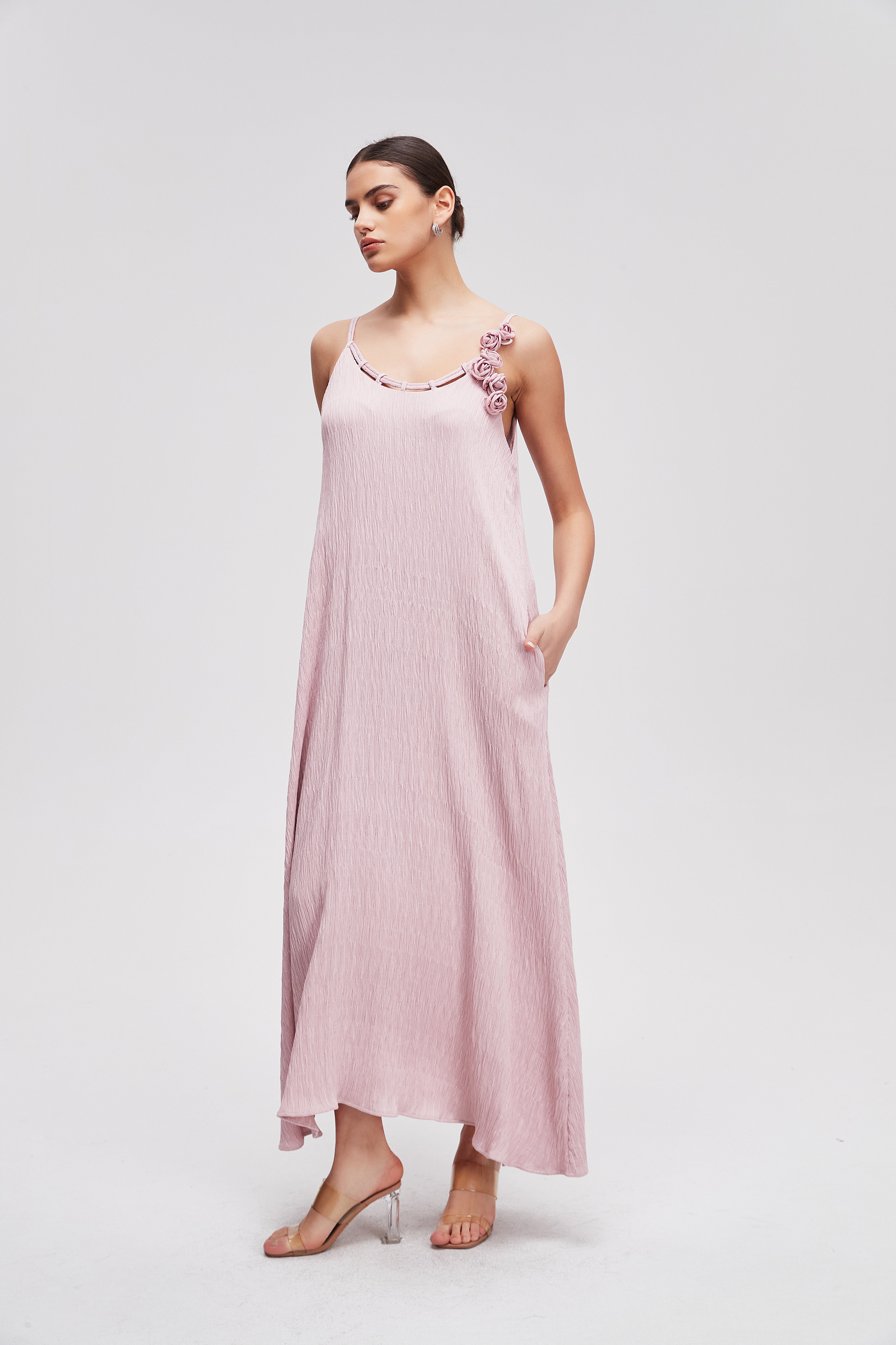 تمنحك الأناقة والراحة مع فستان حمالات طويل قصة واسعة"، تصميم يجمع بين البساطة والجمال. هذا الفستان يتفرد بقصته الواسعة التي تمنحك حرية الحركة، بينما تضيف الورود الجانبية لمسة من الأنوثة والرقي. مصنوع من خامات عالية الجودة، هذا الفستان مثالي لمختلف المناسبات، سواء كانت حفلة أو لقاء مع الأصدقاء. أضيفي لمسة من الأناقة إلى خزانتك مع هذا التصميم الرائع. لا تفوتي فرصة اقتناء هذا الفستان المميز، قومي بطلبه الآن عبر الإنترنت واستمتعي بإطلالة ساحرة! رقم المنتج: lv0734s261pb