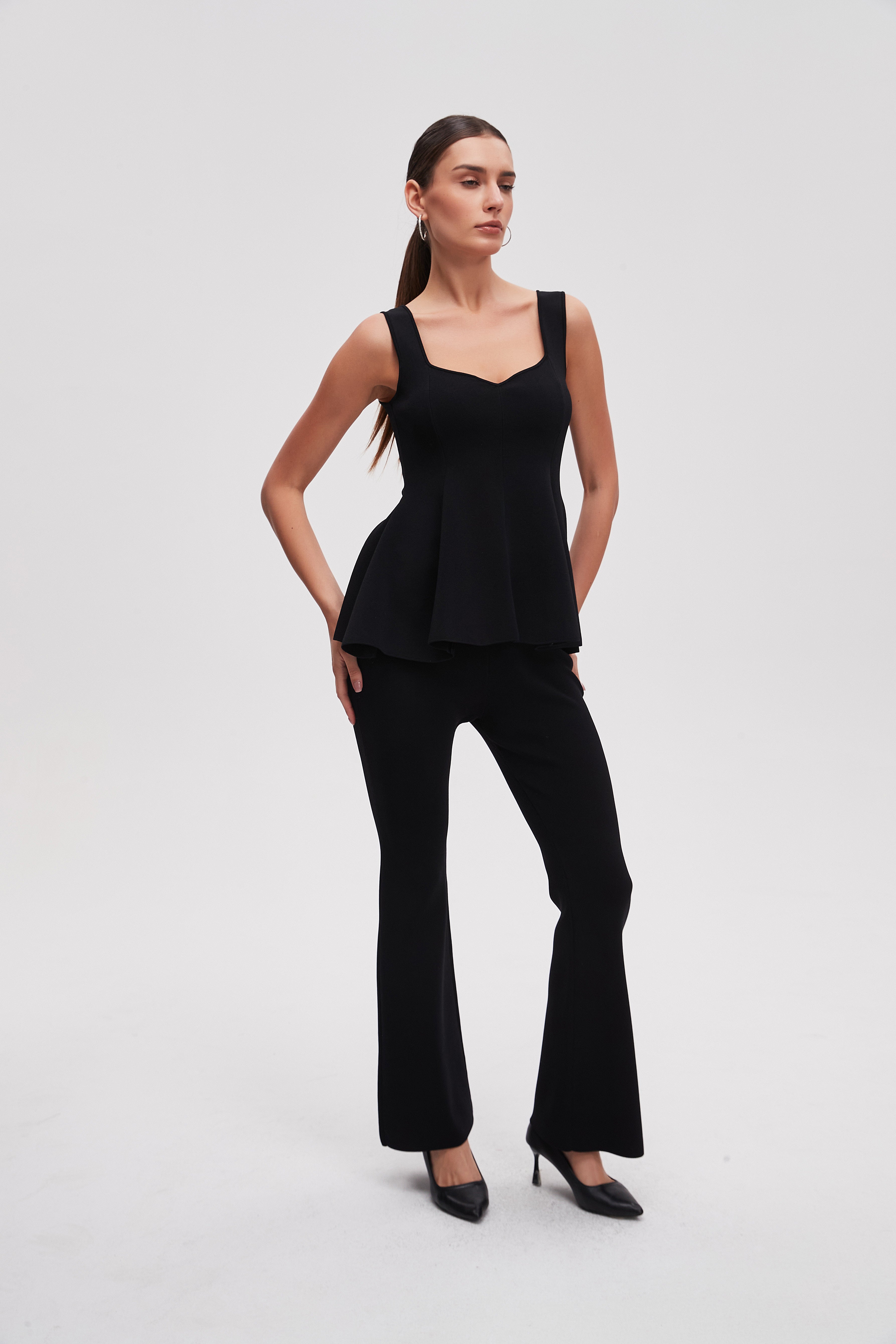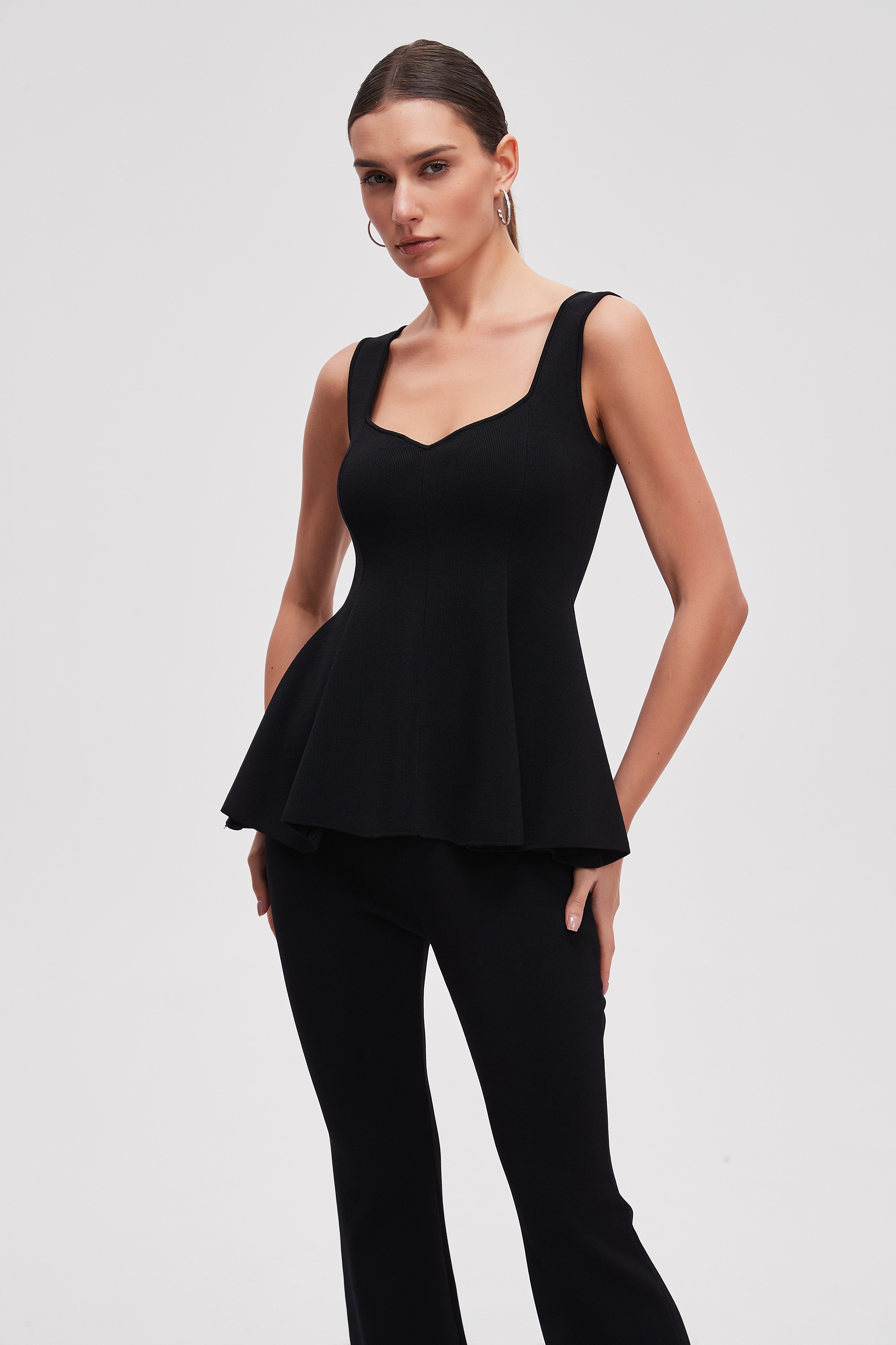 بلوزة متوسطة الطول سادة بدون اكمام