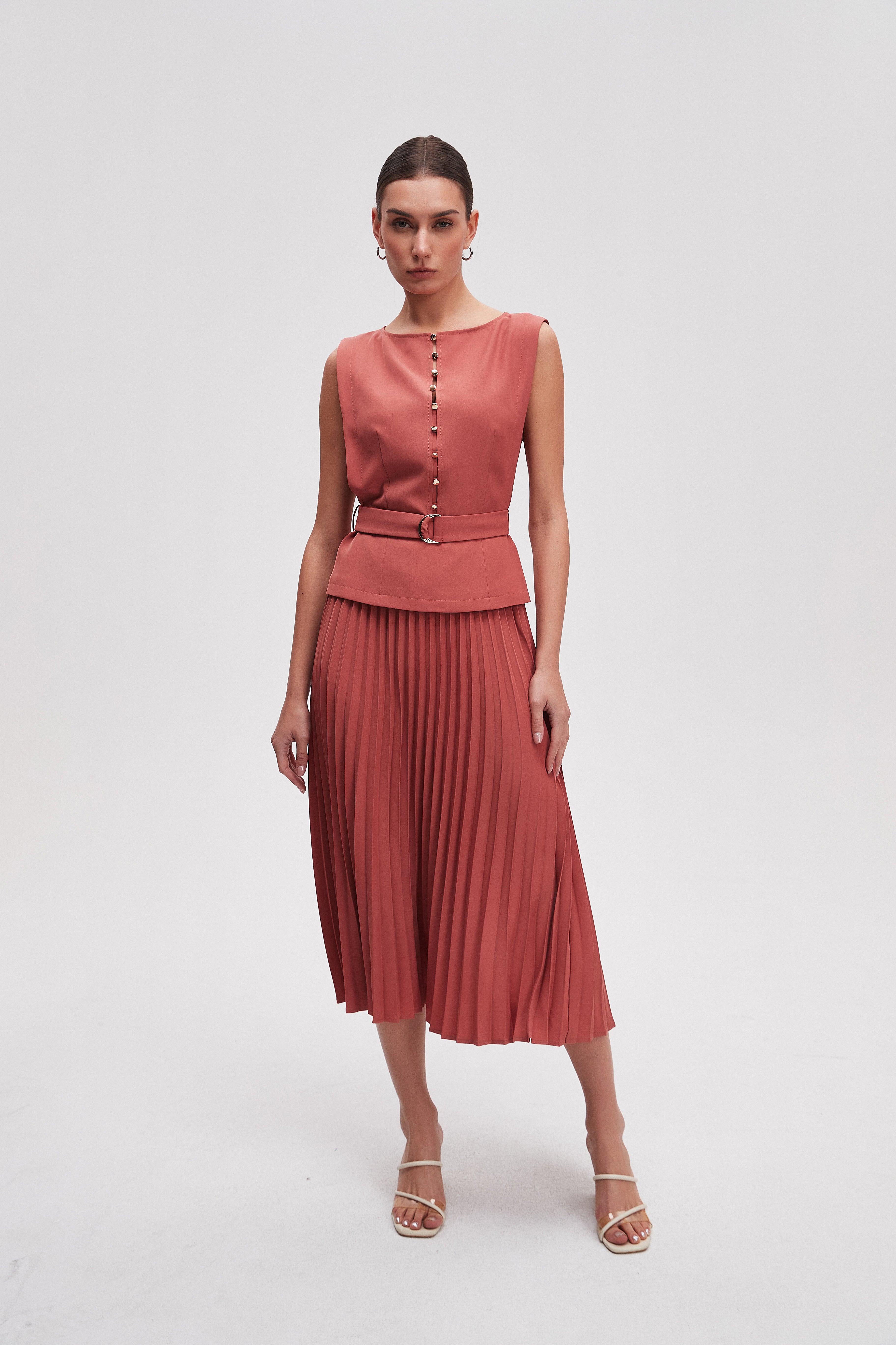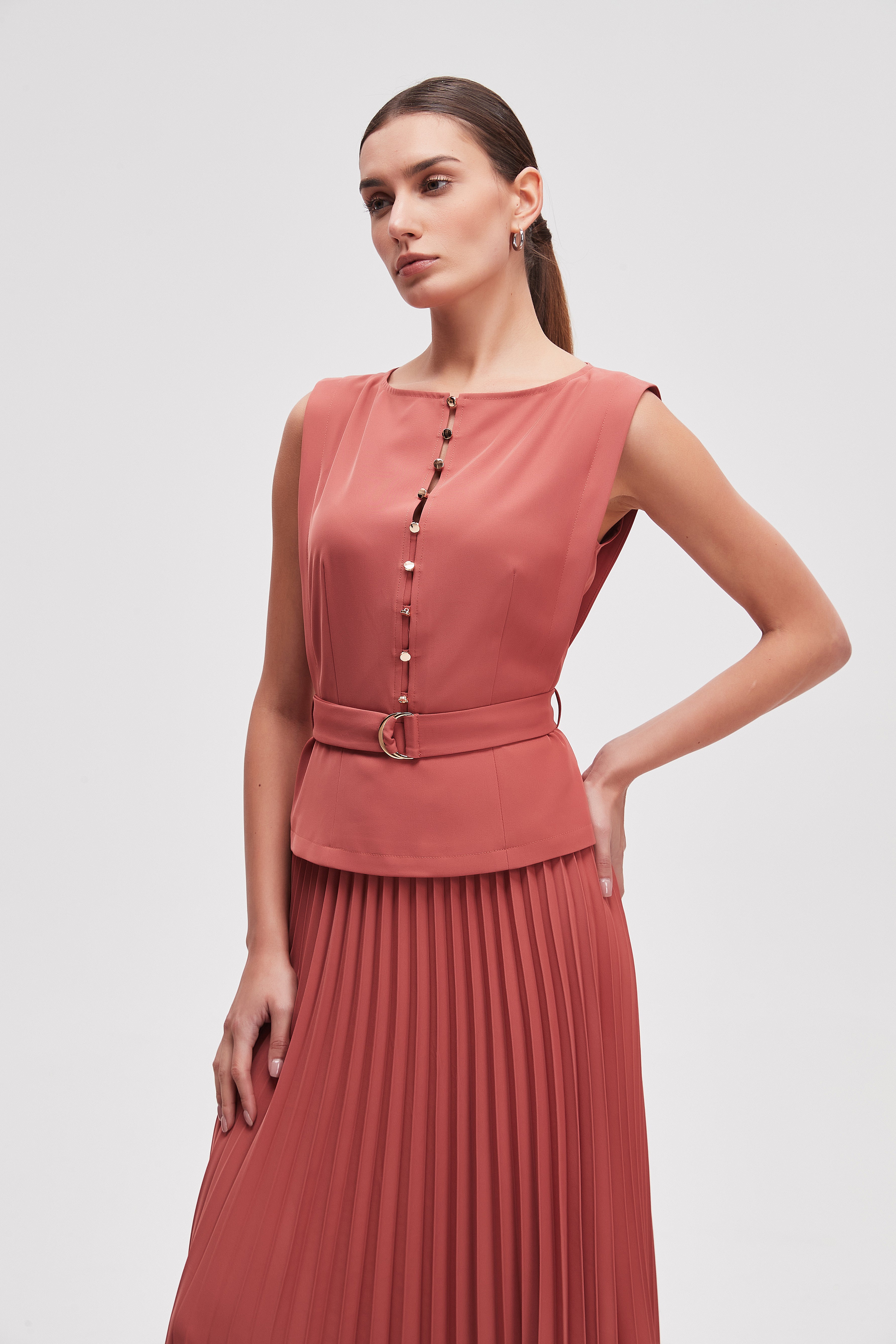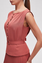 بلوزة قصيرة سادة بدون اكمام بحزام