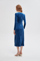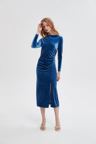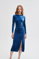 فستان ميدي ساده بأكمام طويله وفتحه من الجمب