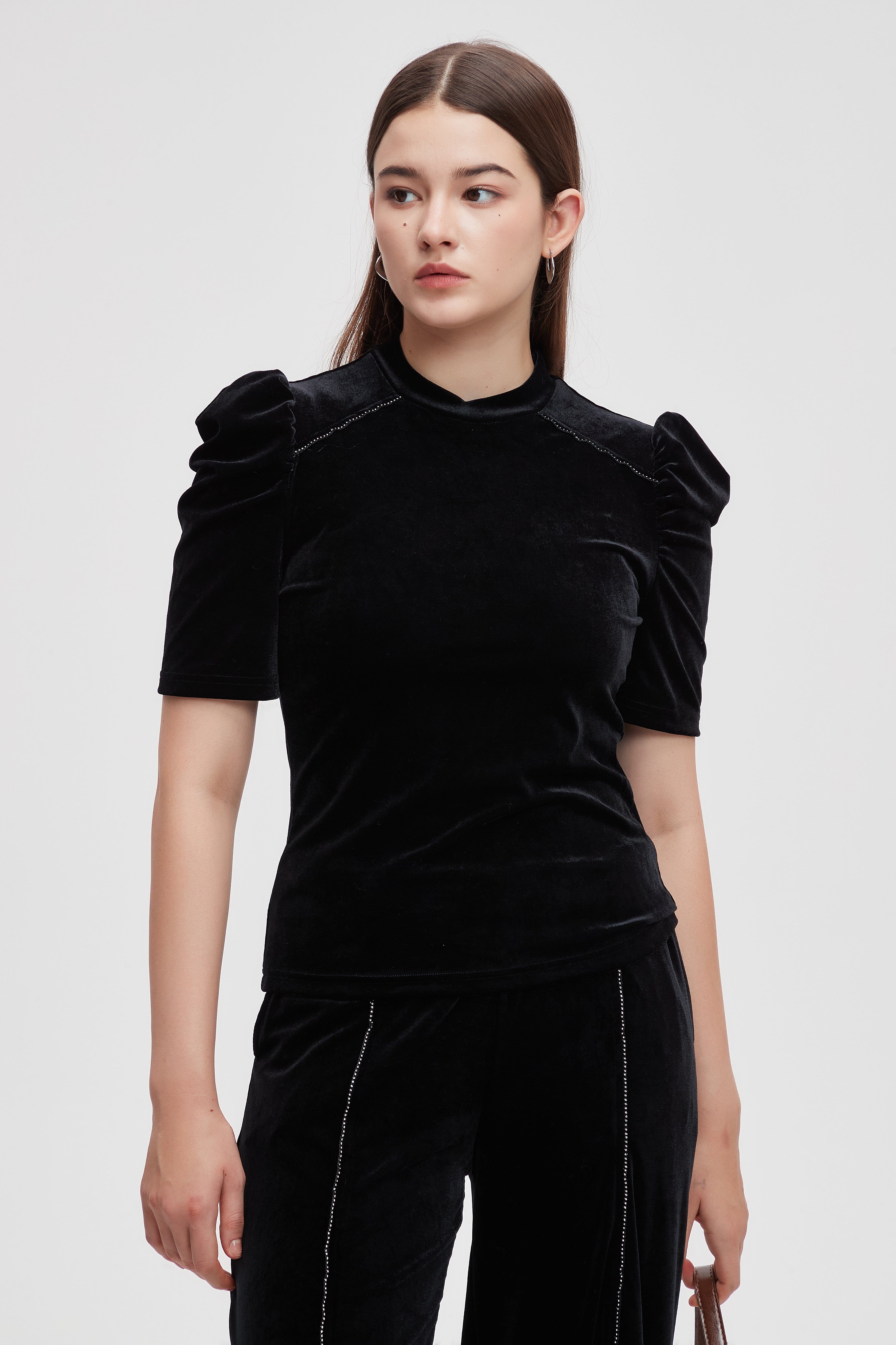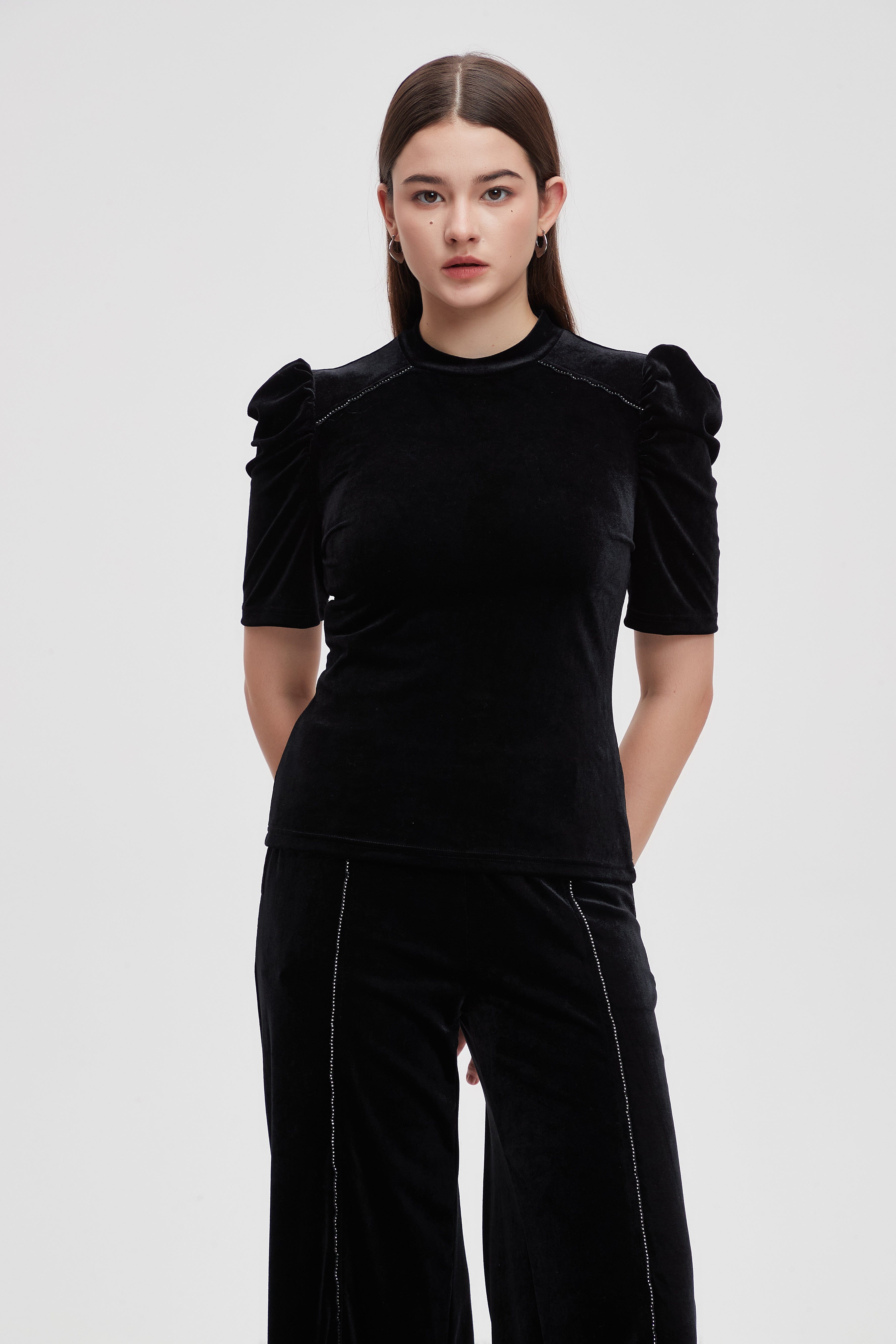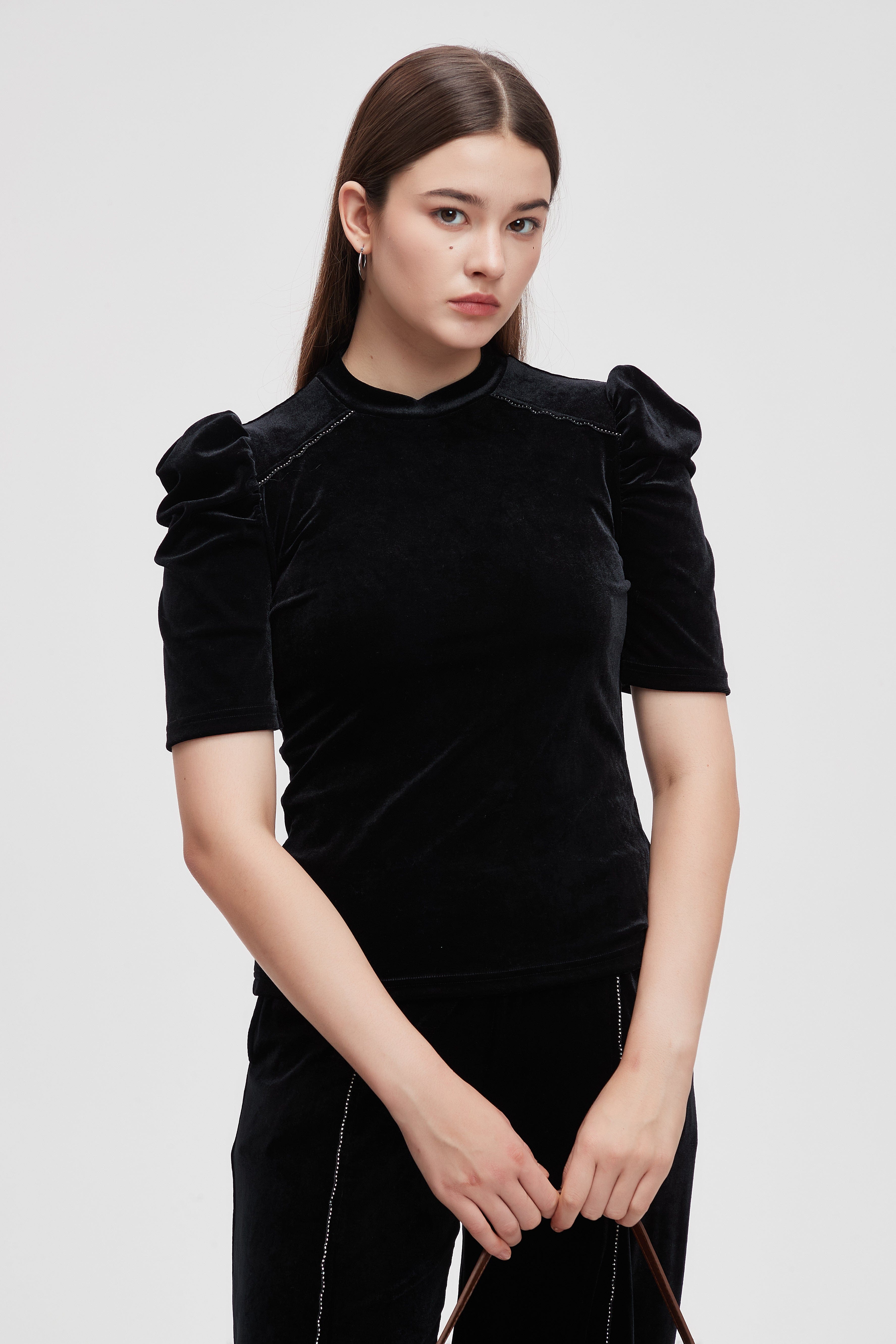 بلوزة نصف كم مطرزة فصوص