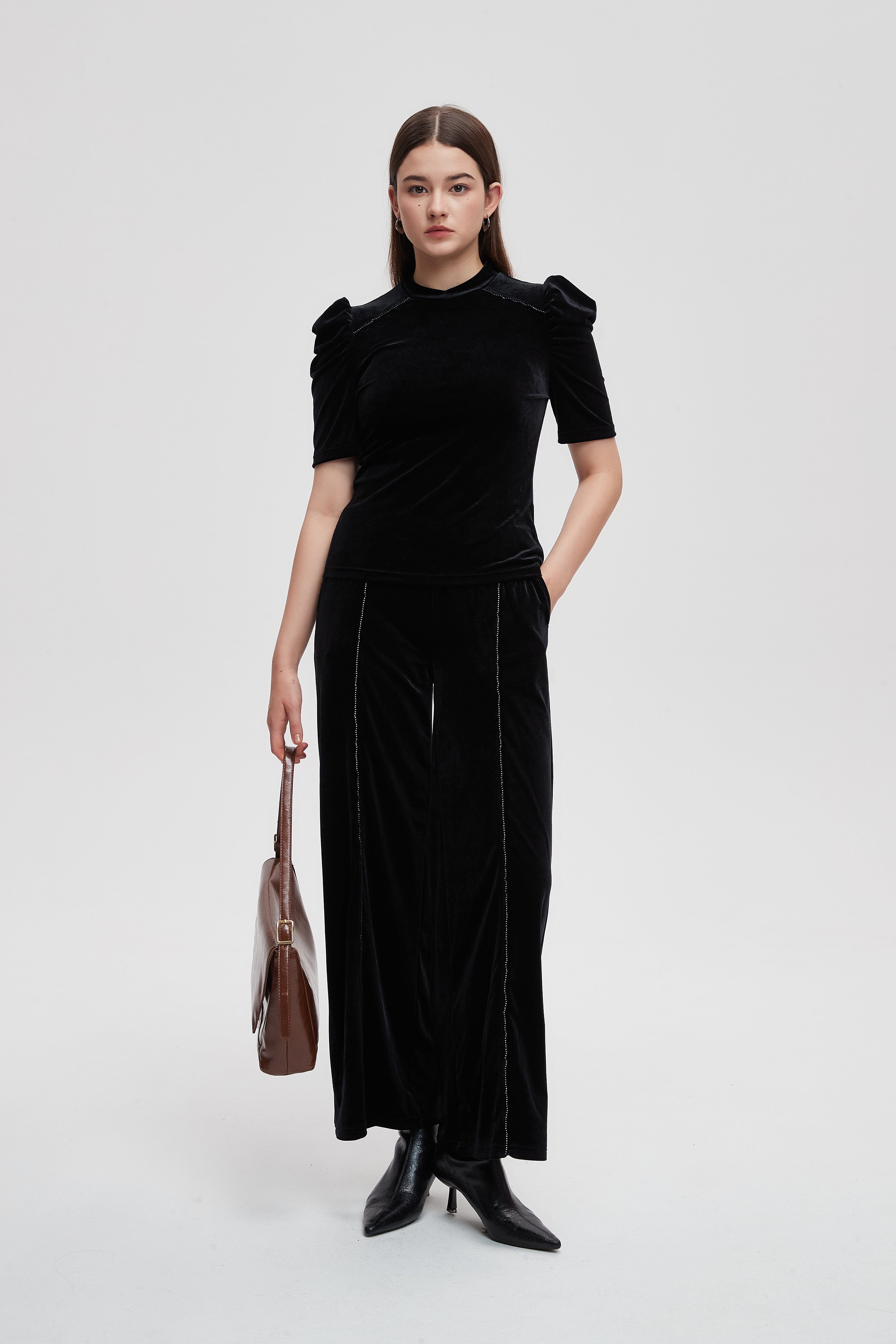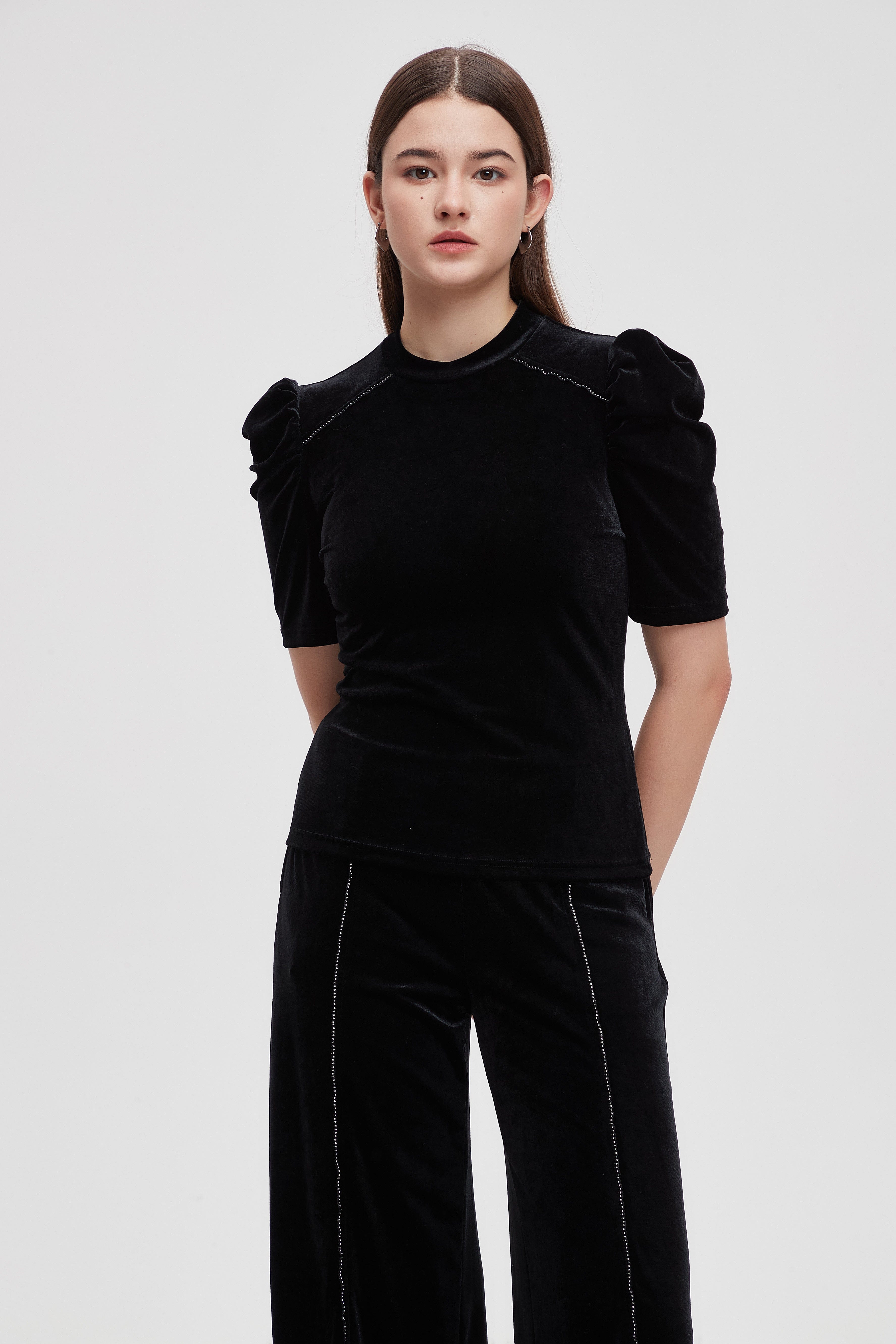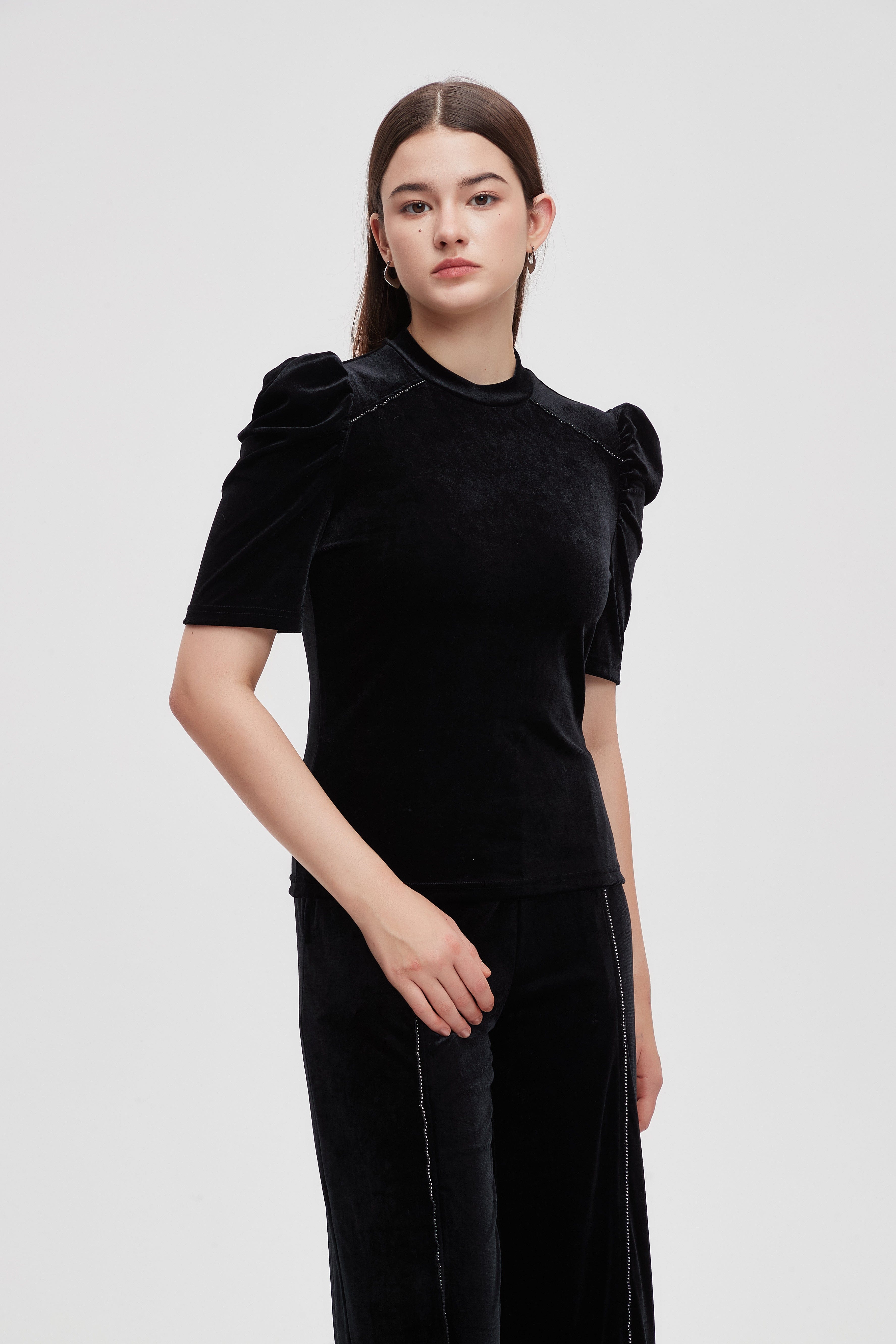 بلوزة نصف كم مطرزة فصوص