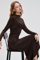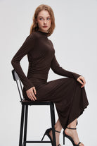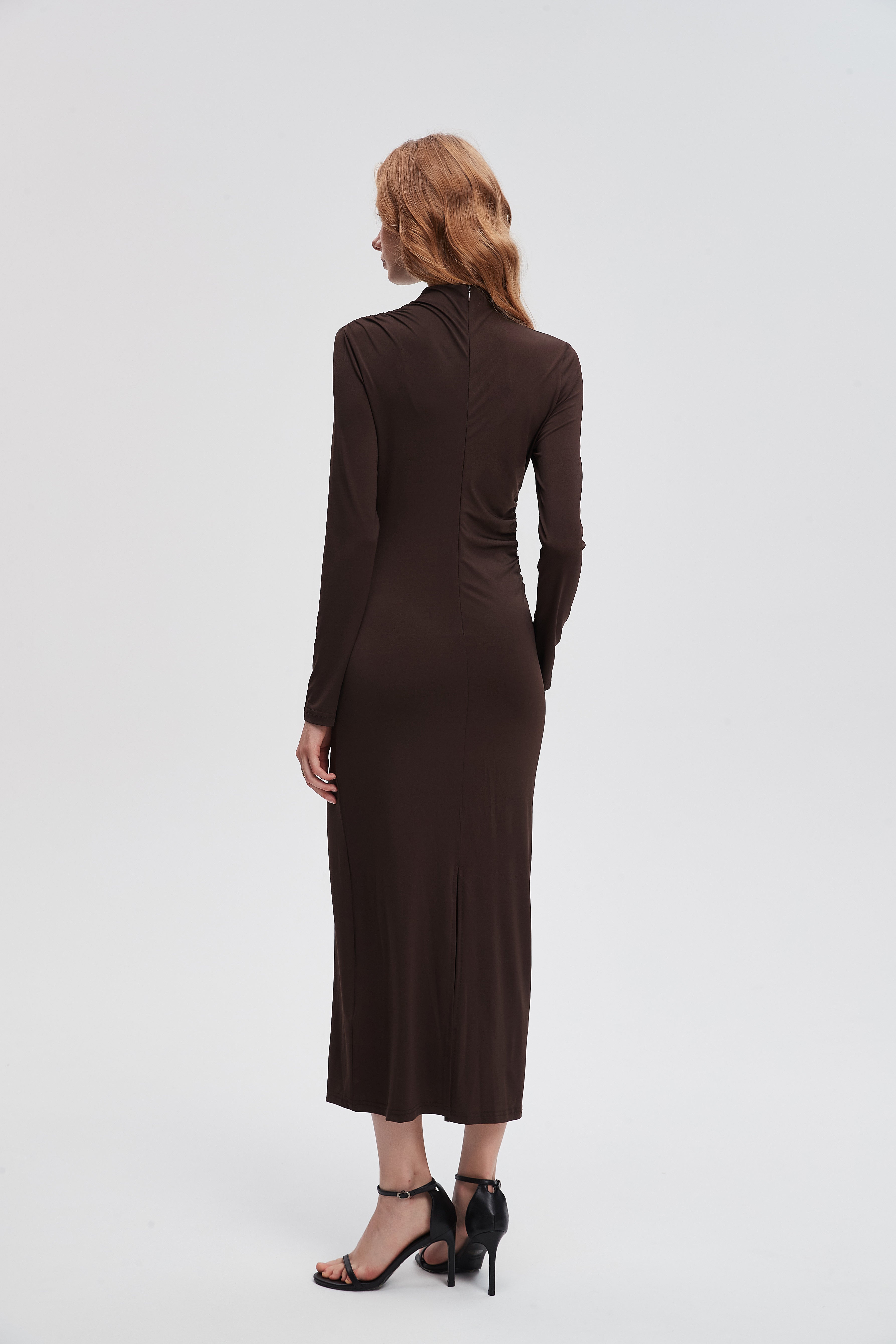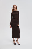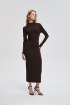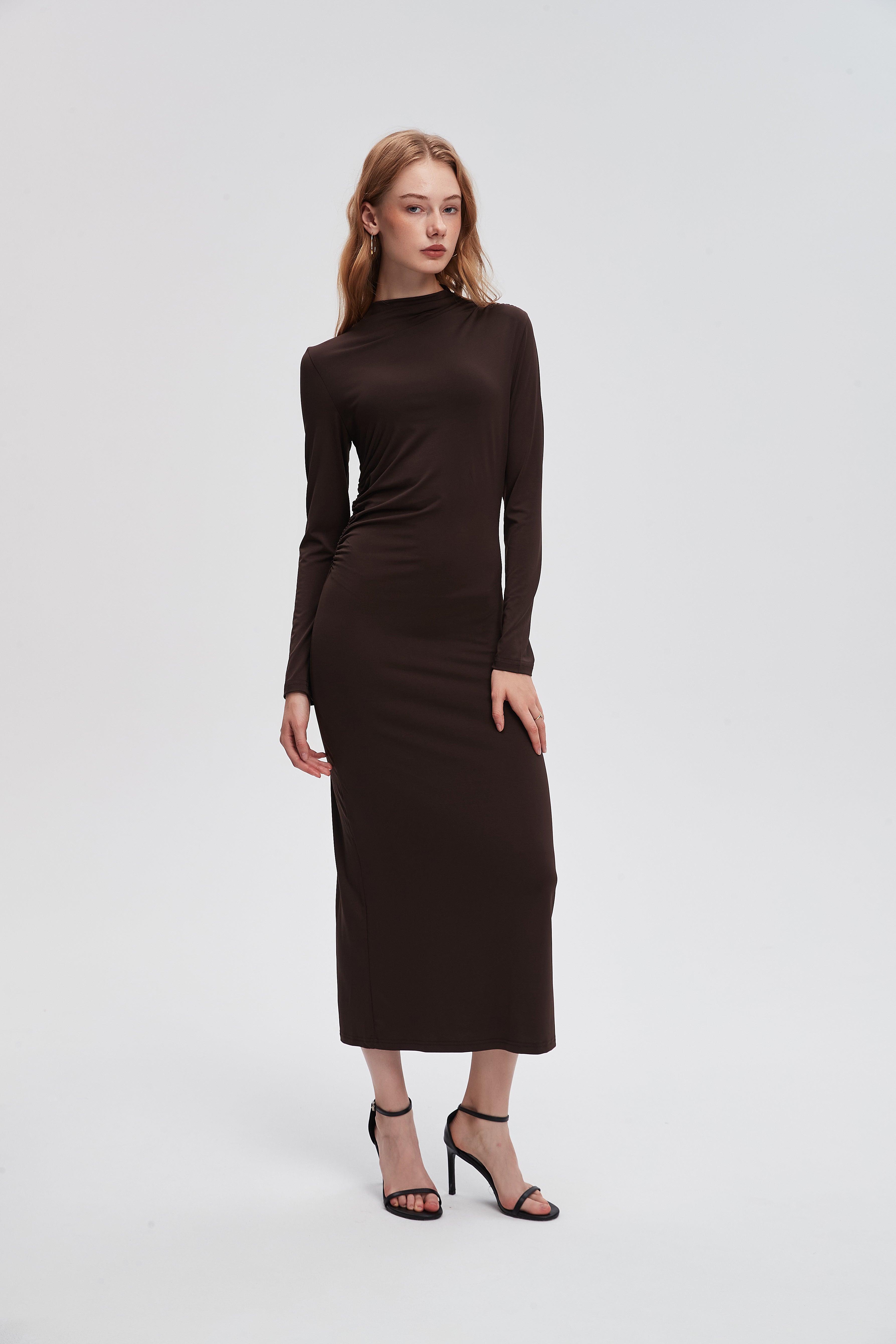 لو تبحثين عن فستان ميدي يناسب الخروجات اليومية ويعكس ذوق مواكب للموضة، هذا الفستان رائع. خامته بسماكة متوسطة وبدون بطانة ما يجعله مريحاً ومناسباً لكل المواسم؛ لا ثقيل في الصيف ولا رقيق في الشتاء إذا أضفتِ طبقات. القصة ضيقة بأسلوب بودي كون تحتضن القوام وتبرز الخطوط، وياقته العالية تضيف لمسة أنيقة، أما الأكمام الطويلة فتعطي توازن عملي للمظهر. التصميم سادة باللون البني وخالٍ من الطباعة أو التطريز، بدون جيوب أو حزام للحفاظ على خط بسيط ونظيف. بطول ميدي، يصلح للخروجات النهارية والكاجوال المسائية، وستحبين كيف يتحرك معك ويعطي إطلالة مرتبة سهلة التنسيق لخزانة أي امرأة بالغة. اعثري على مقاسك في فاشن السعودية وأضيفي هذه القطعة المتنوعة إلى خزانة ملابسك اليوم.