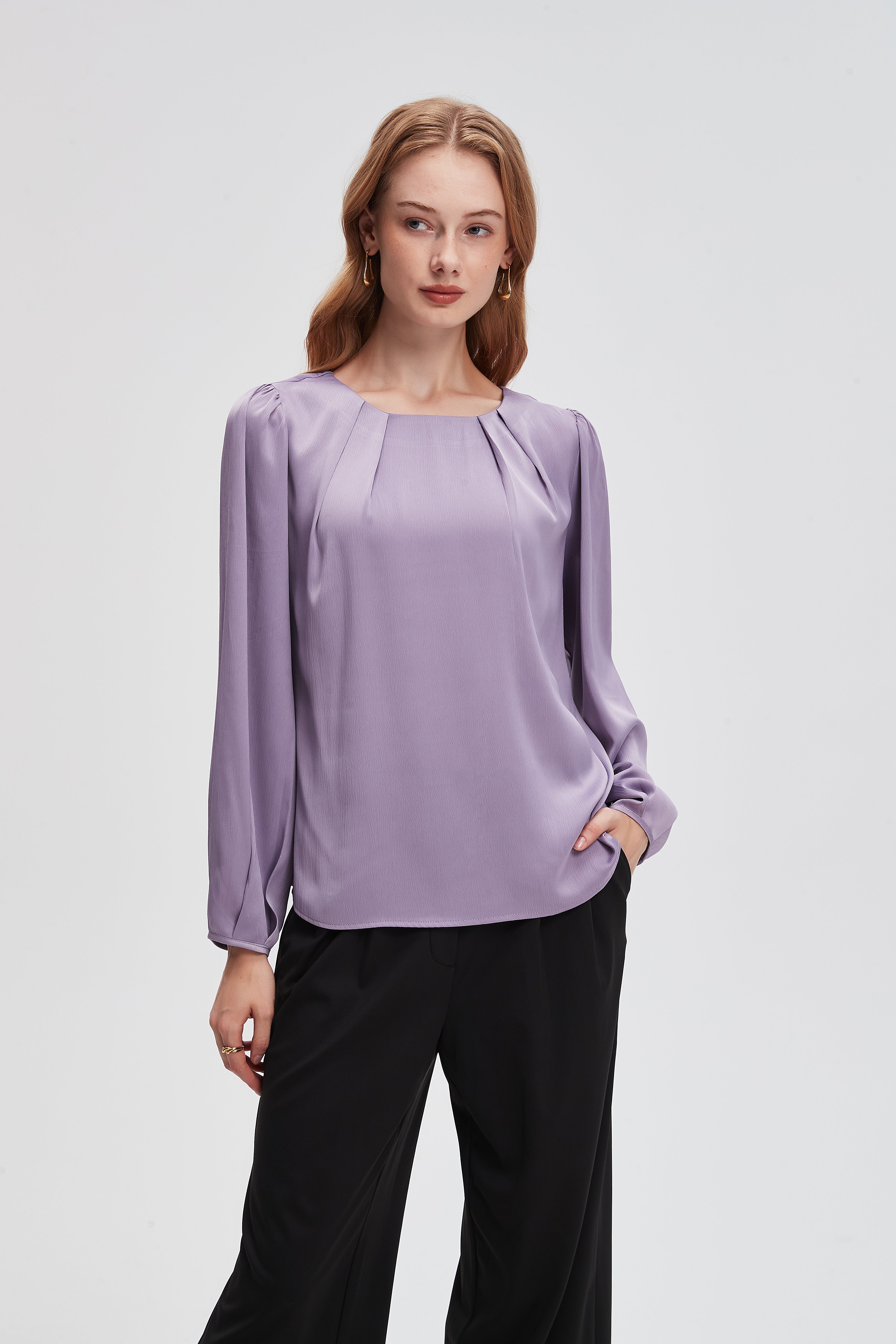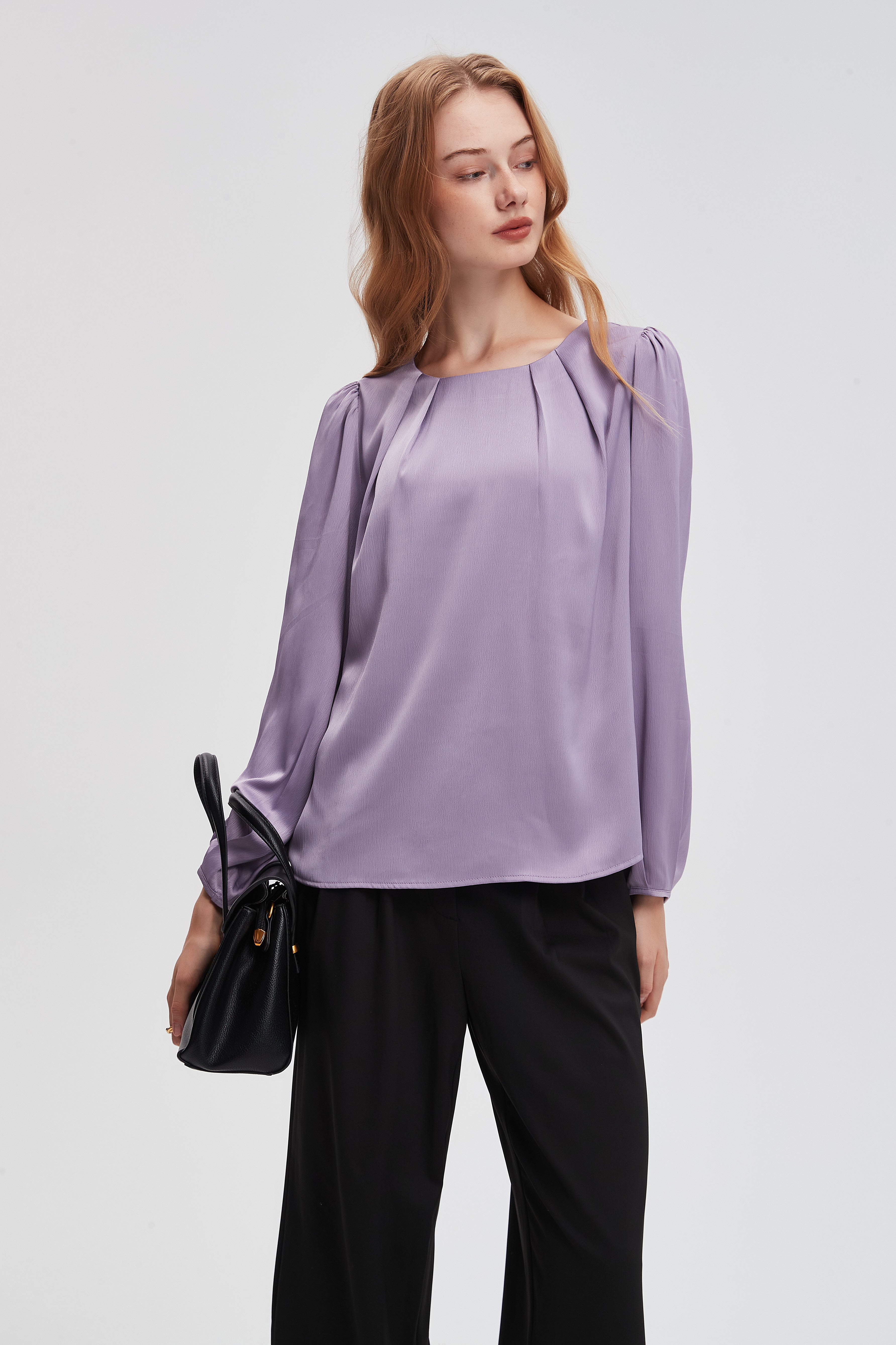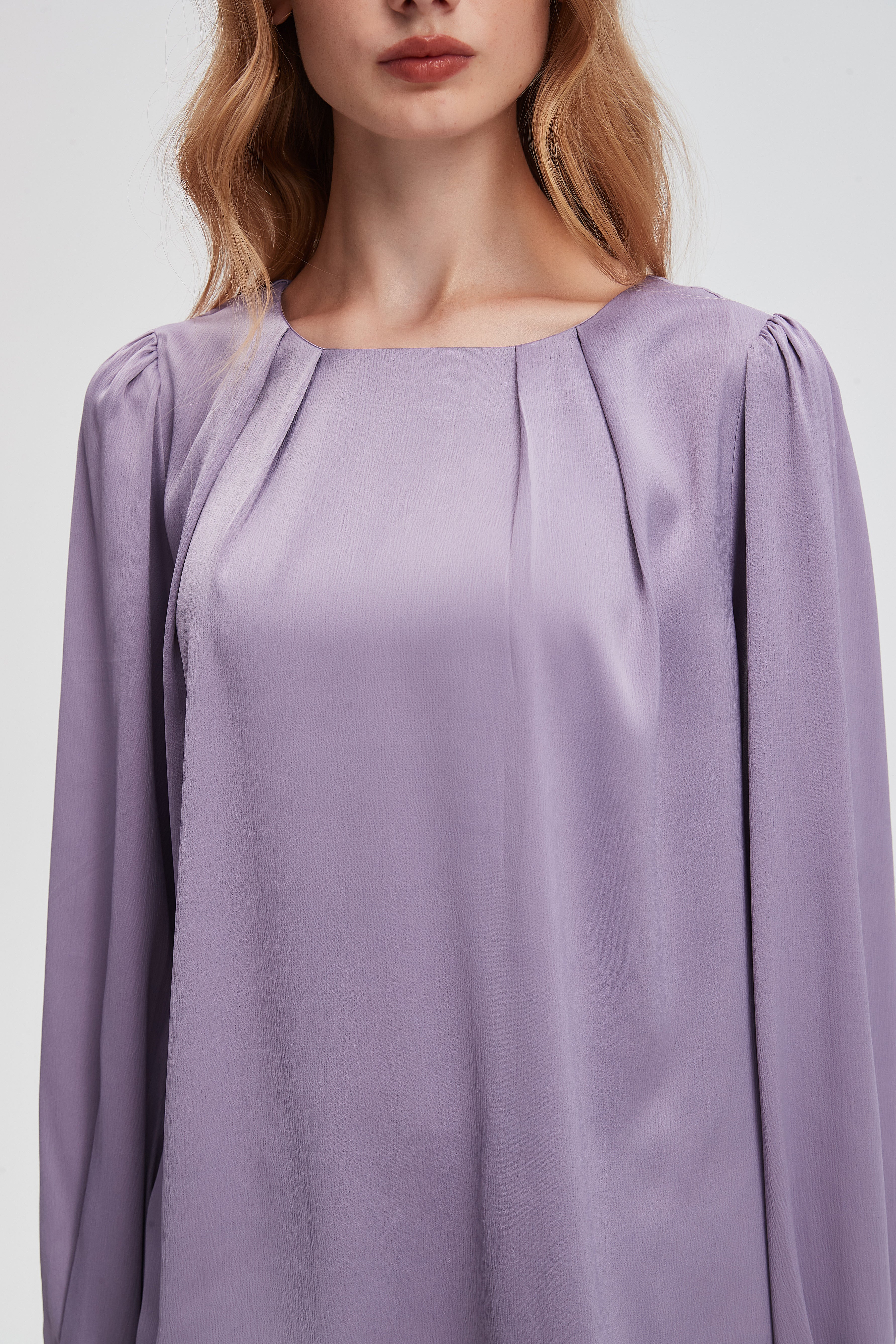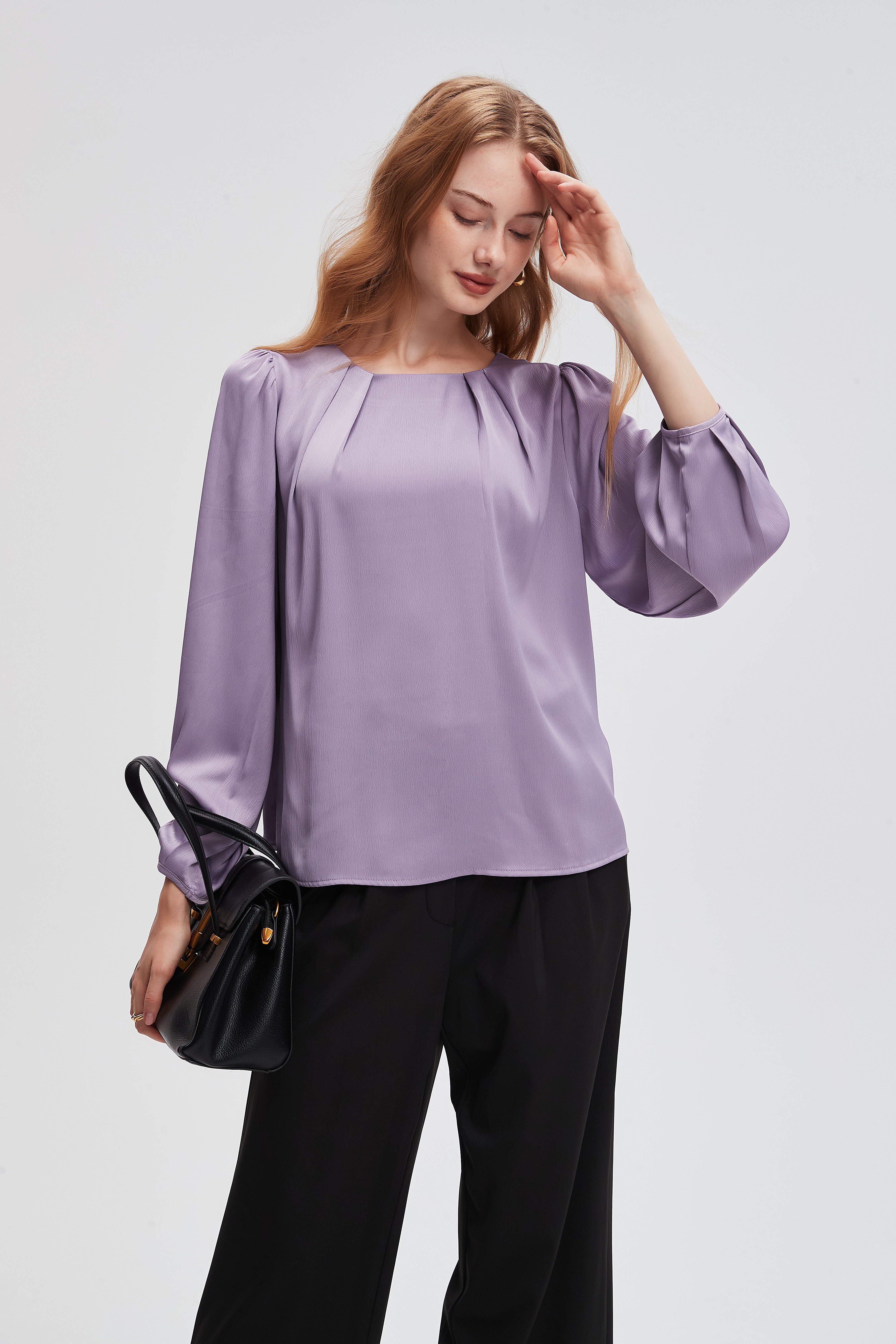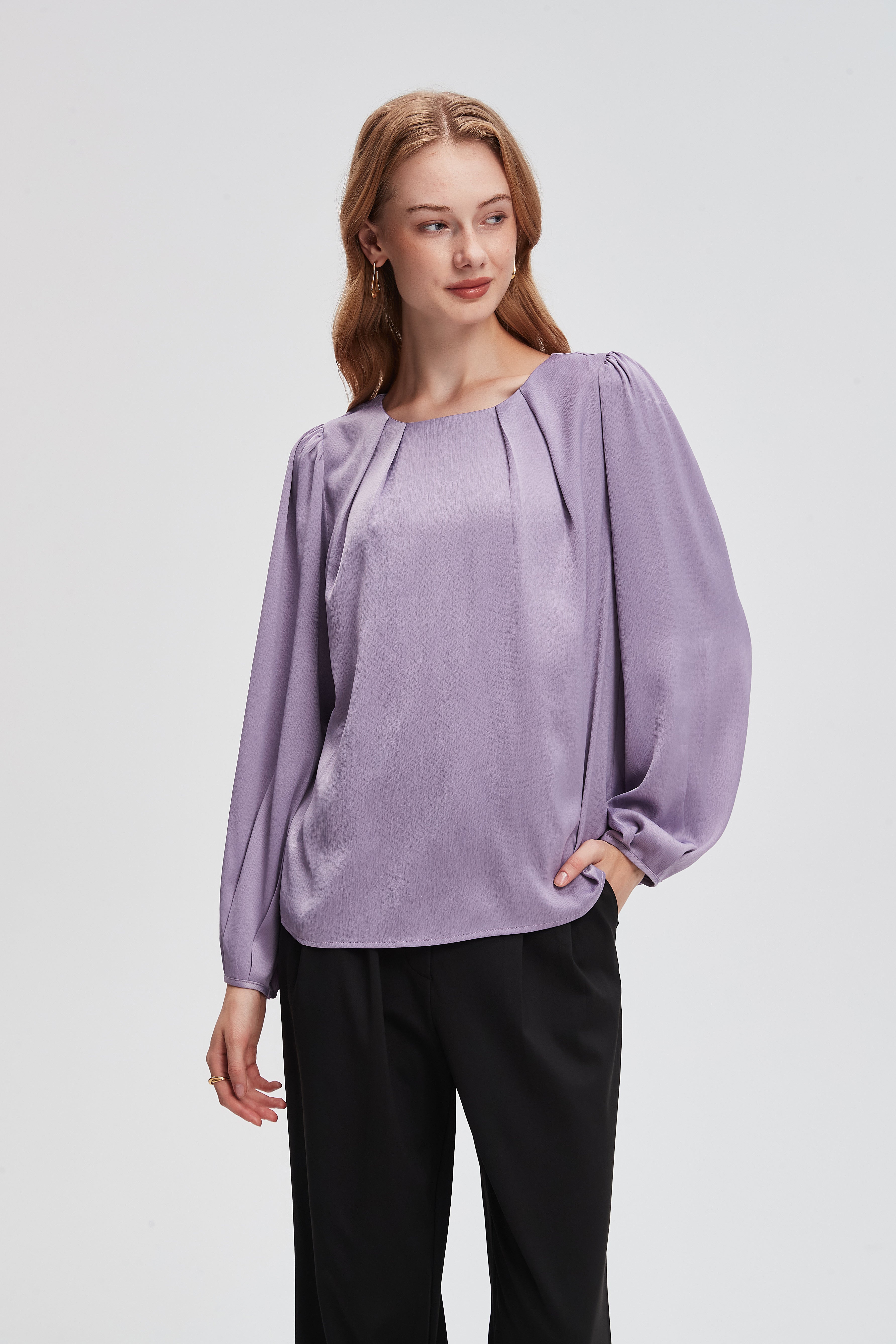 بلوزة سادة بأكمام بف واسعه