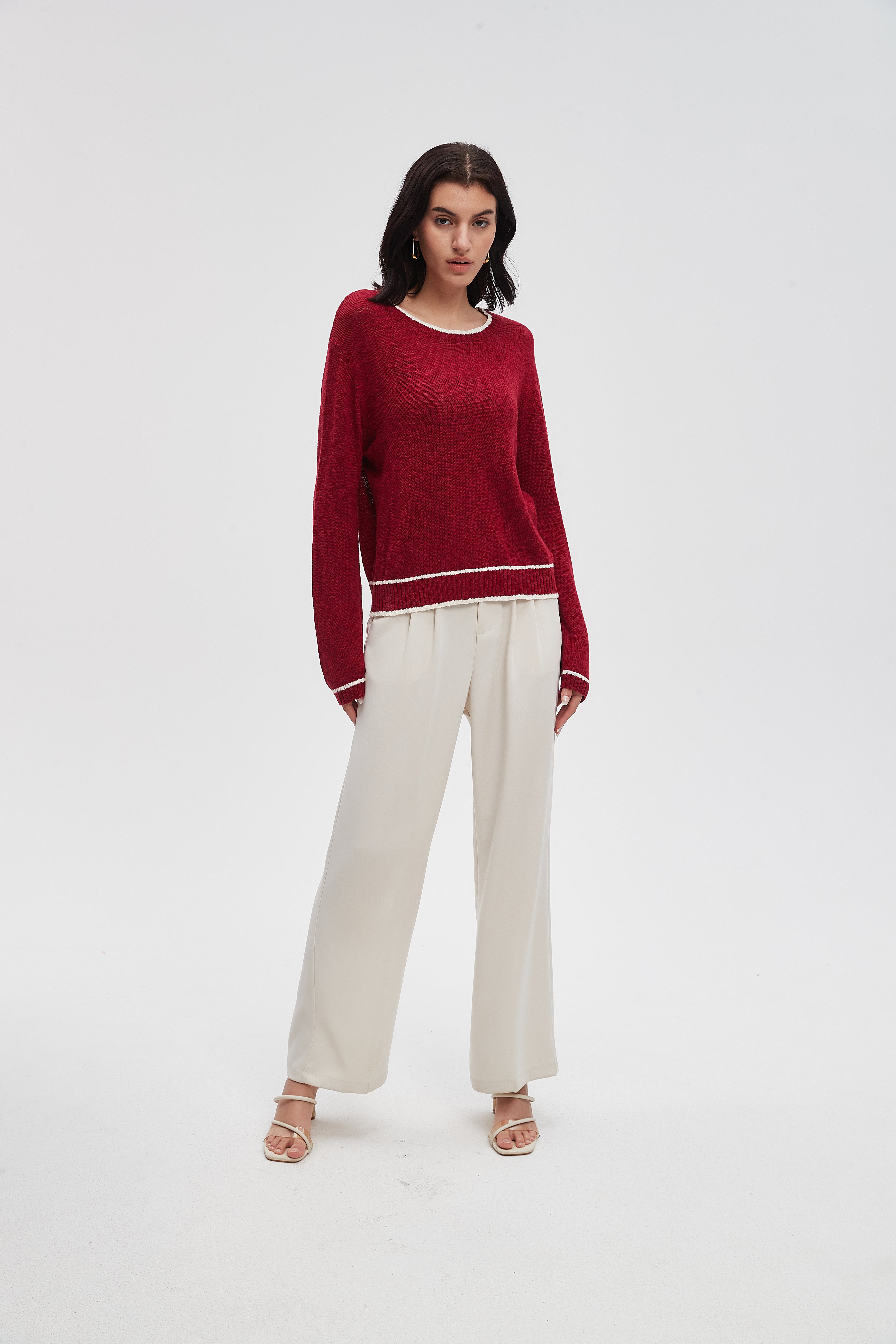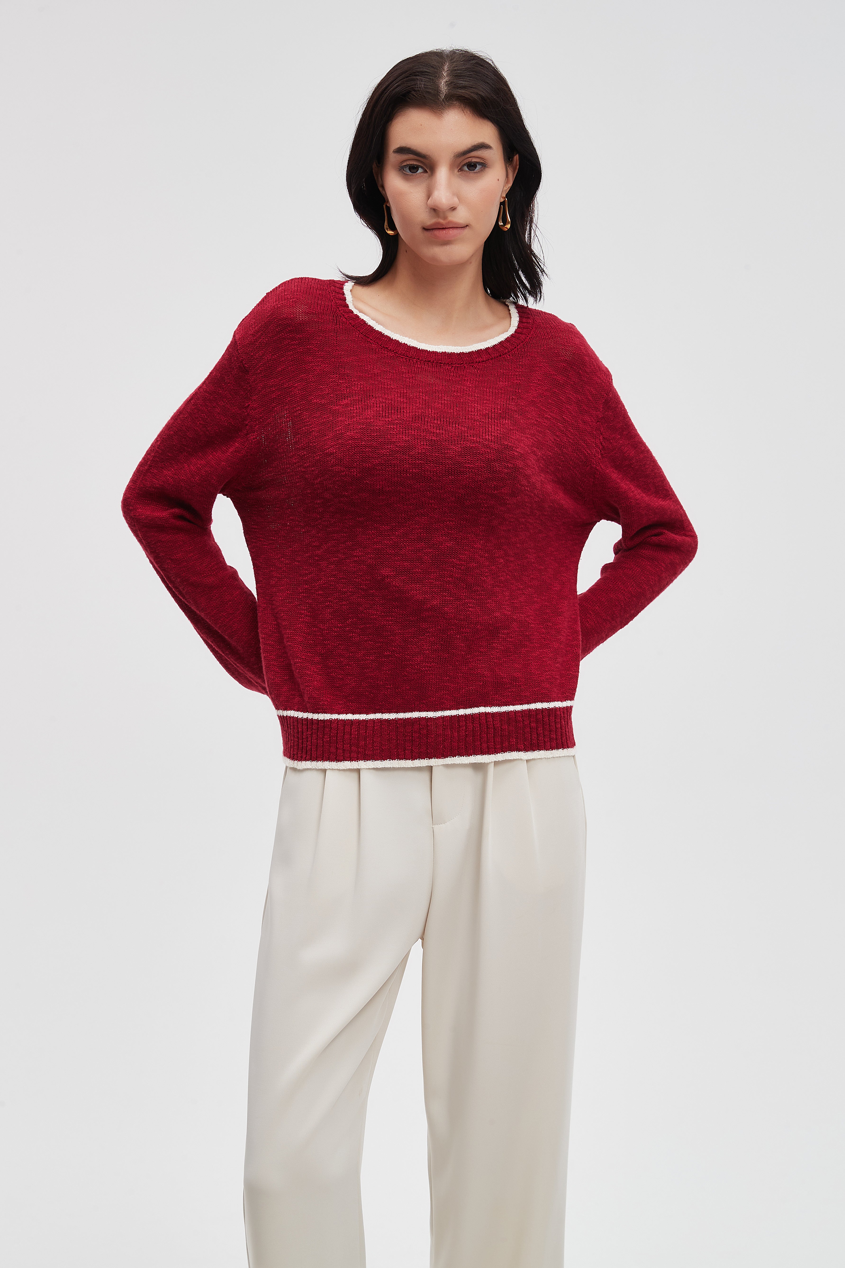 كنزة بطول الخصر بأكمام طويلة برقبة مستديرة