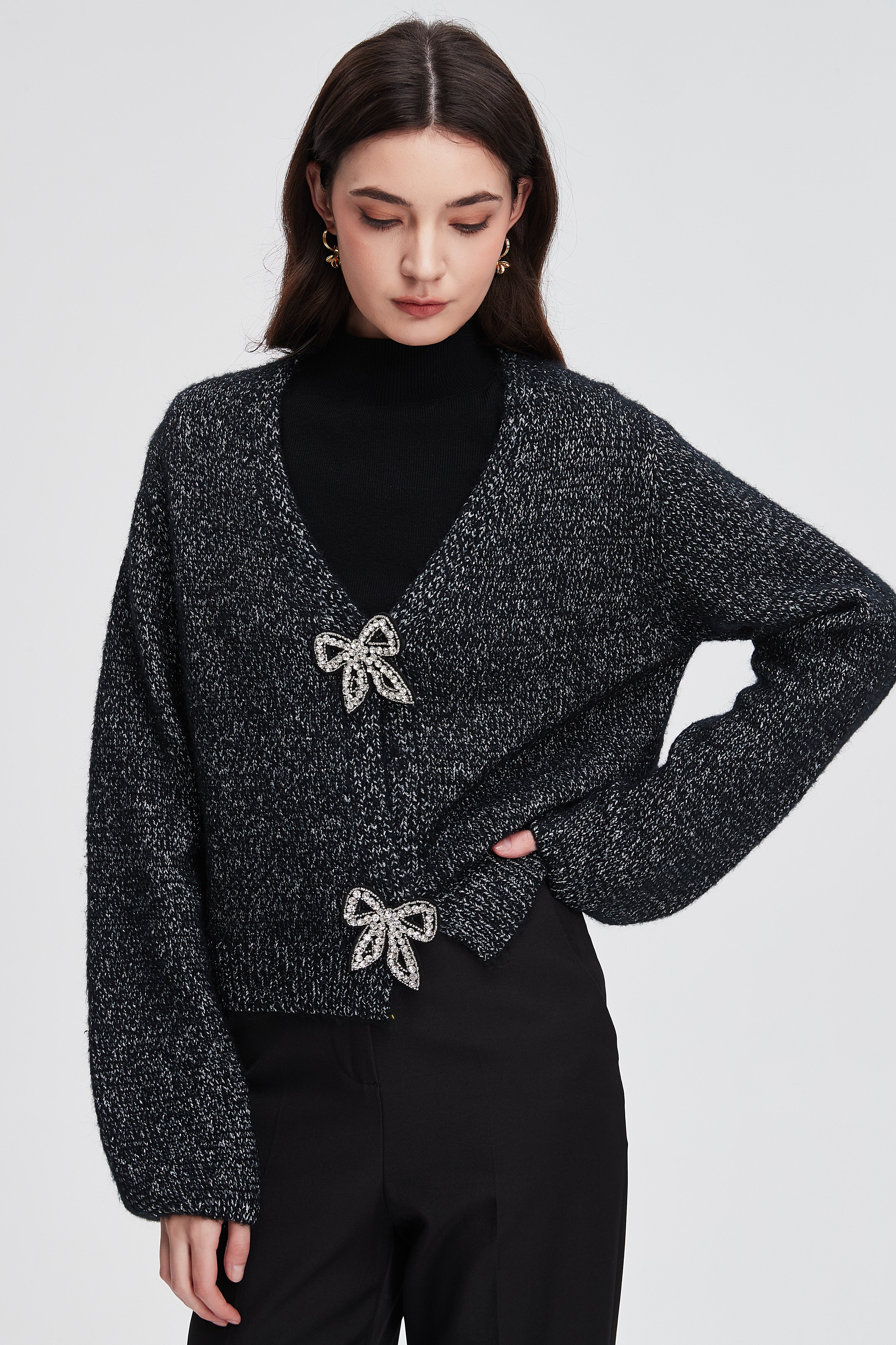 تألقي بإطلالة جريئة مع كارديجان بطول الخصر بكم طويل بتصميم عملي وأنيق يناسب مختلف المواسم. يوفر دفئاً خفيفاً مع لمسة عصرية، ويمكن تنسيقه مع الفساتين أو التوبات لإطلالة يومية مريحة وأنيقة في نفس الوقت. أطلبي الآن ولا تفوتي الفرصة