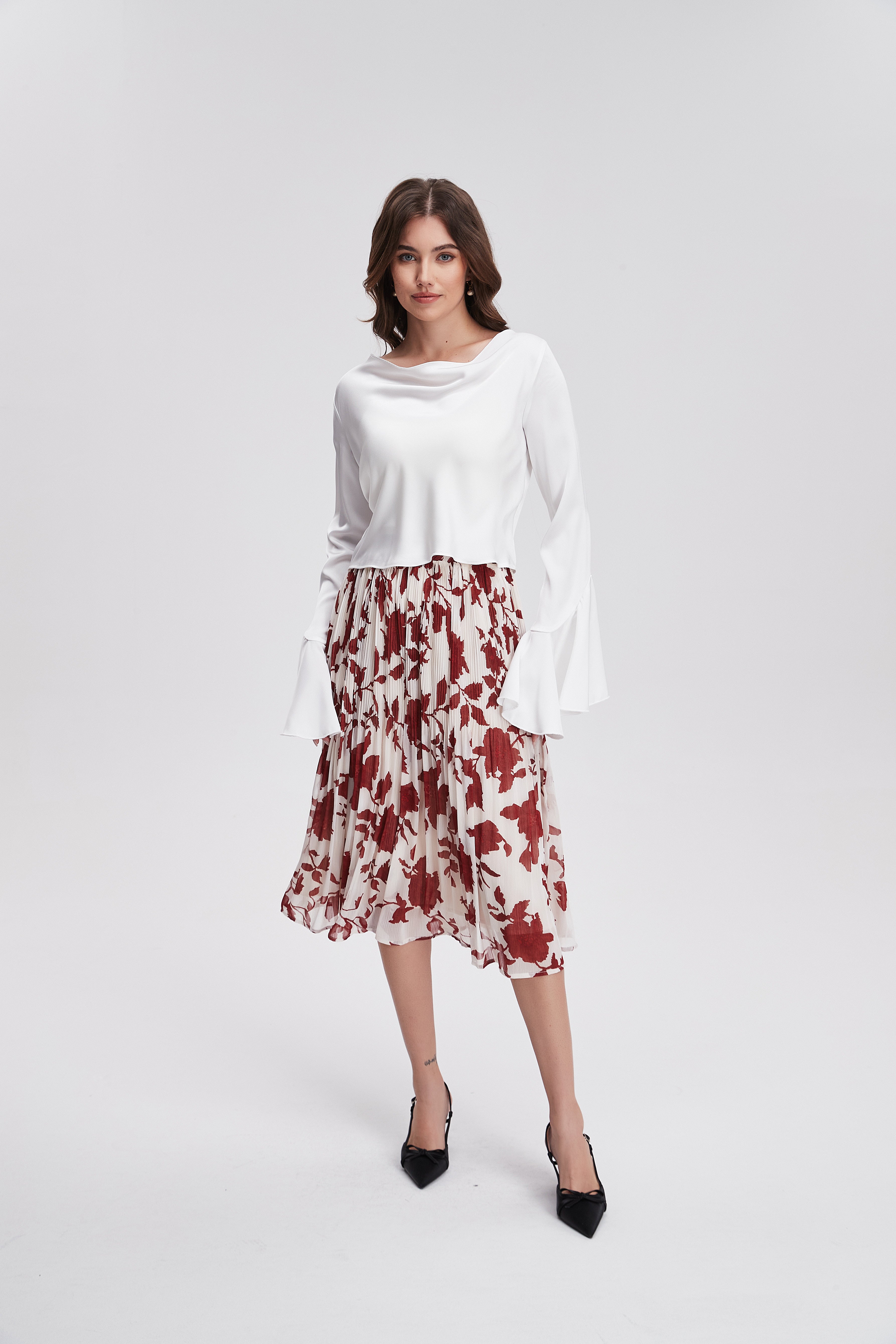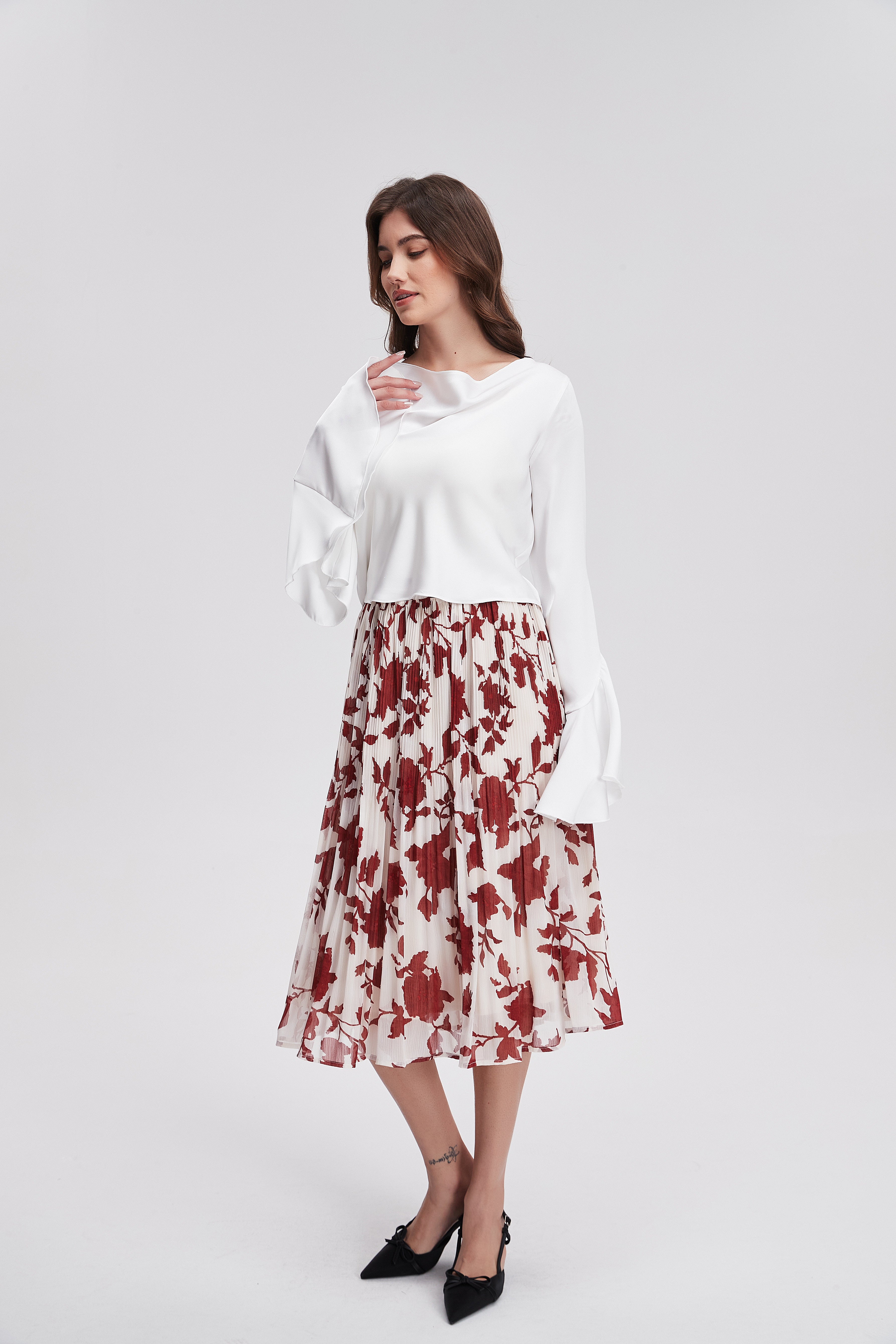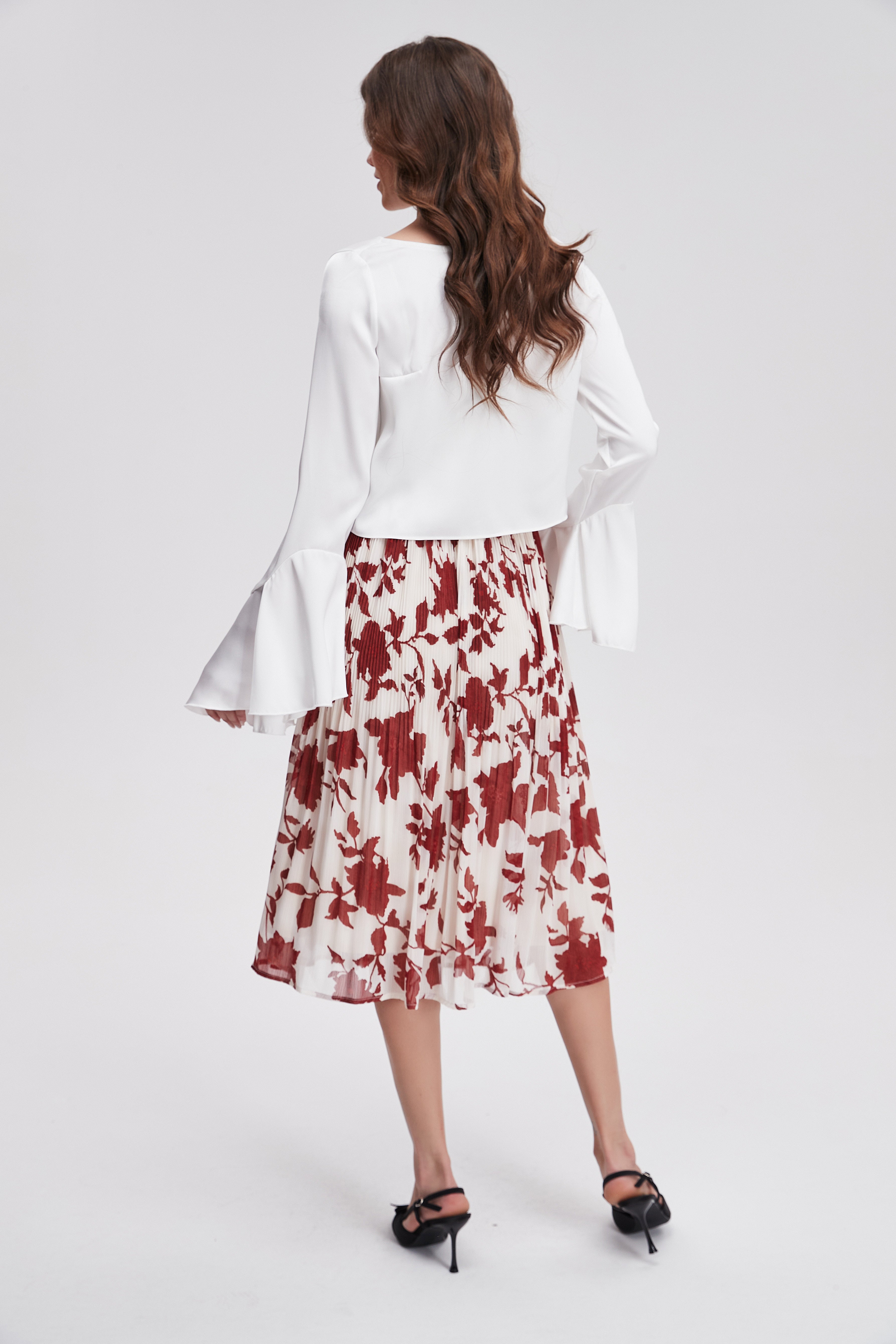 تنورة مشجرة ميدي مكشكشة