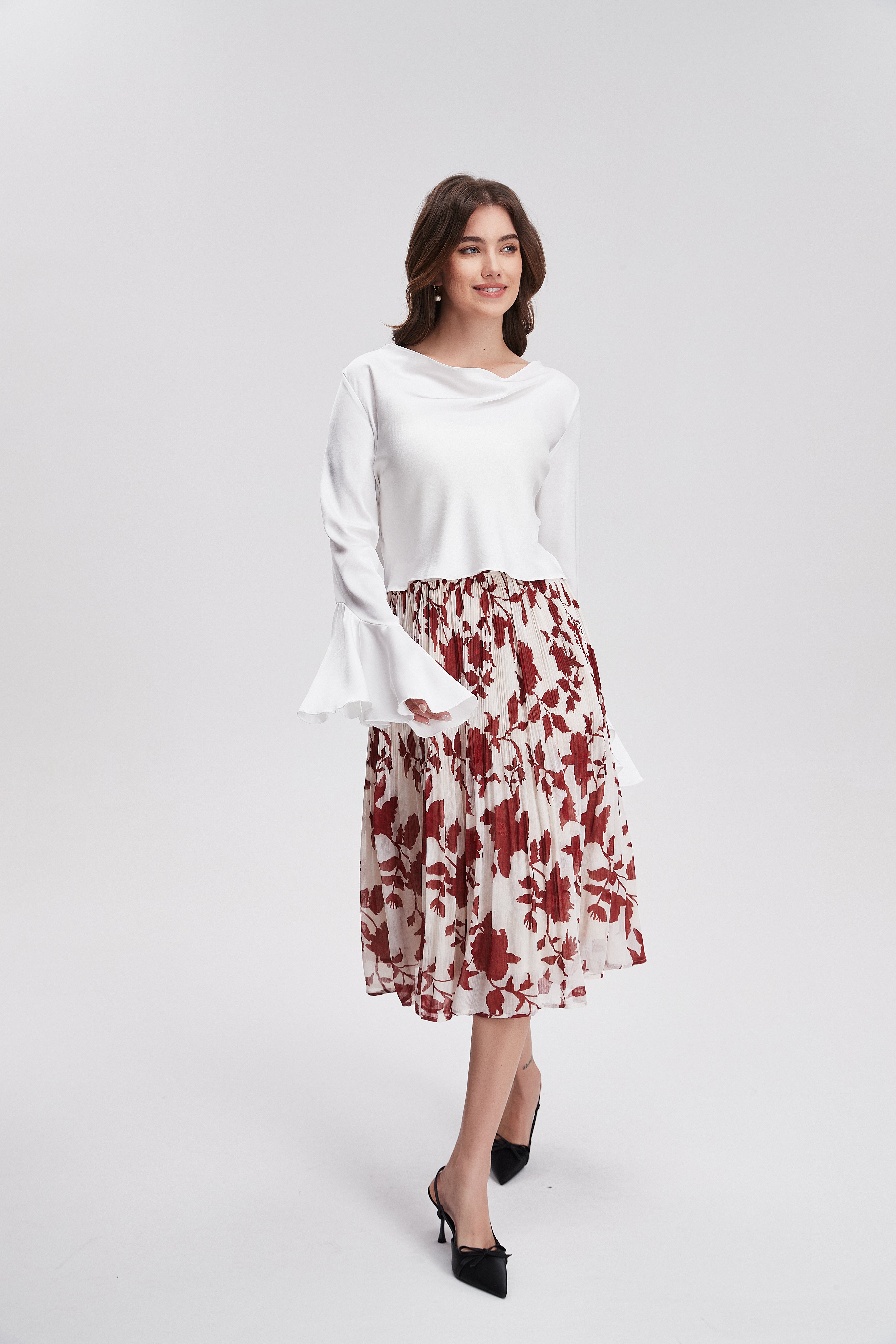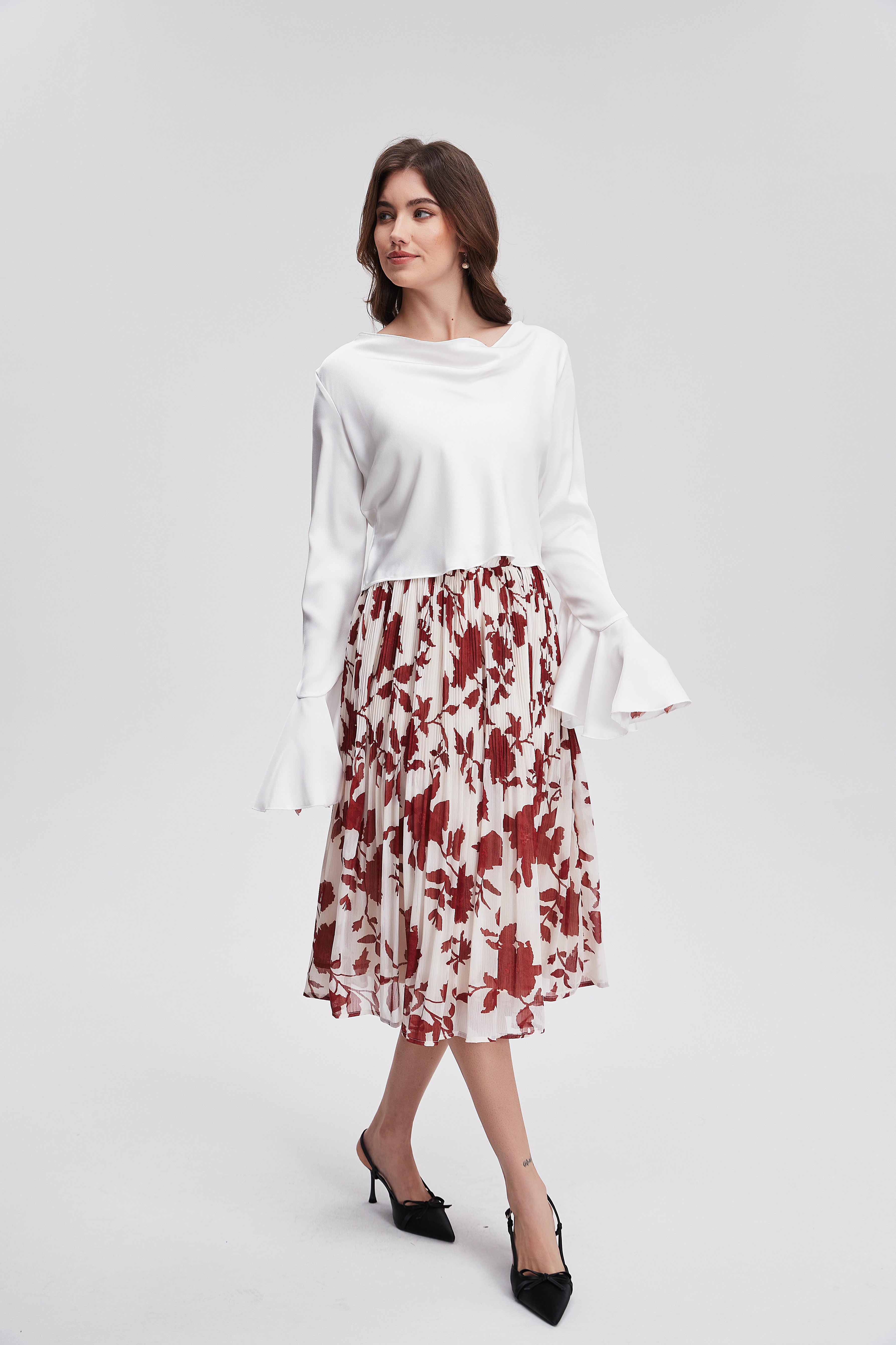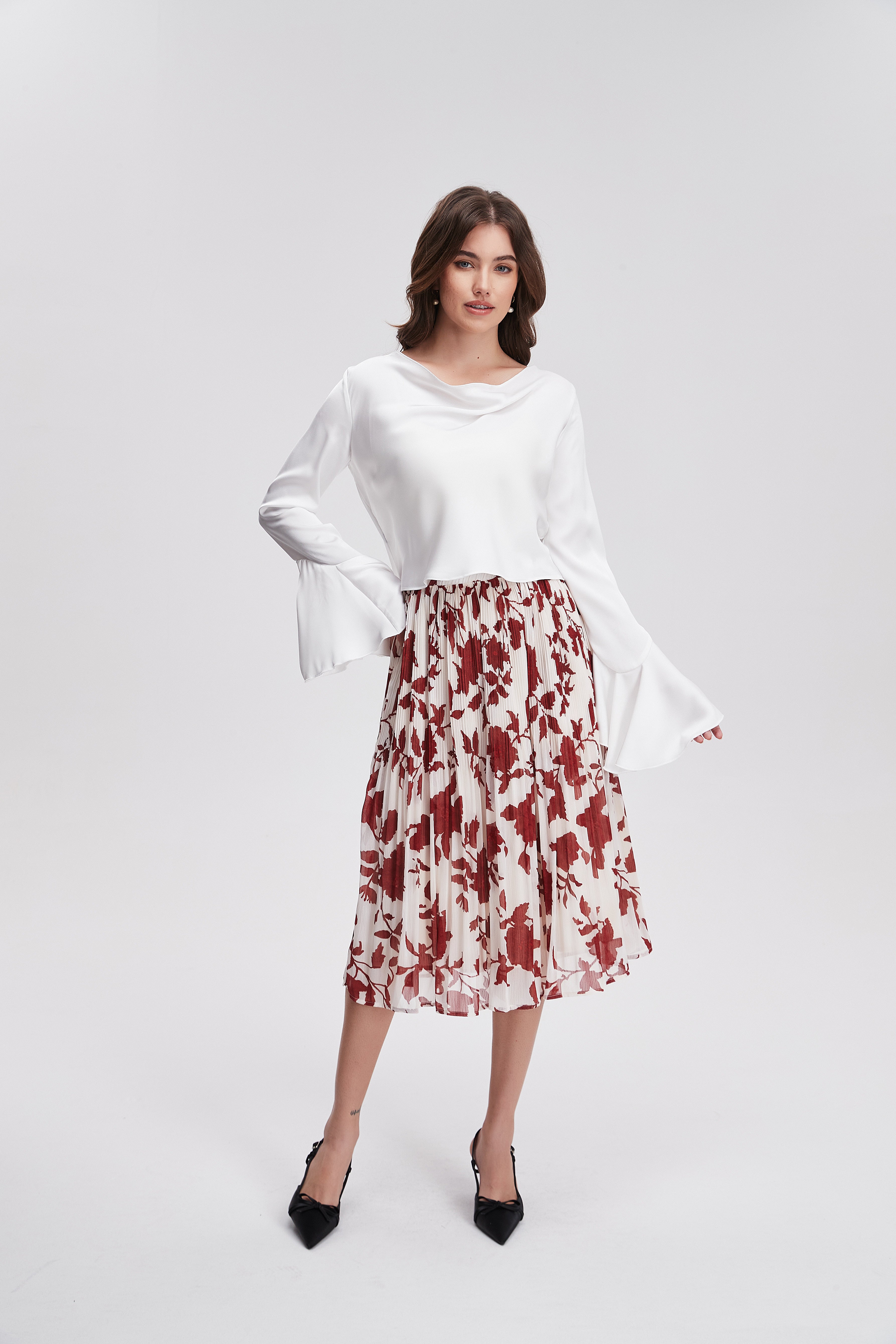 تنورة مشجرة ميدي مكشكشة